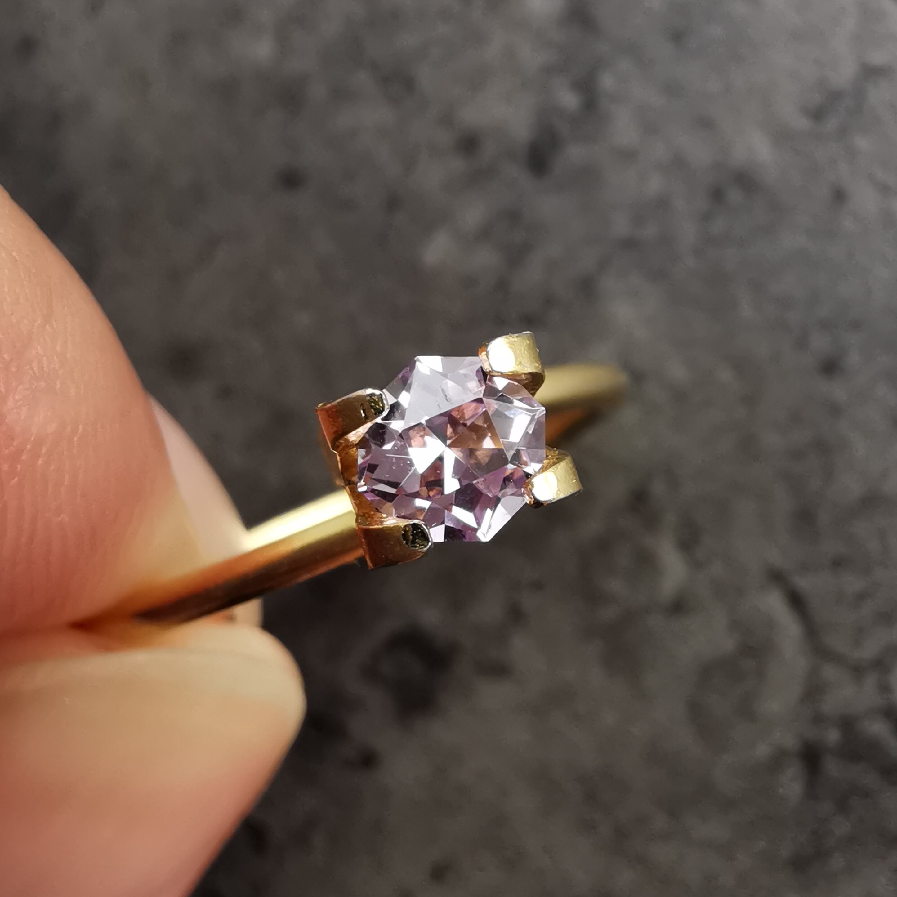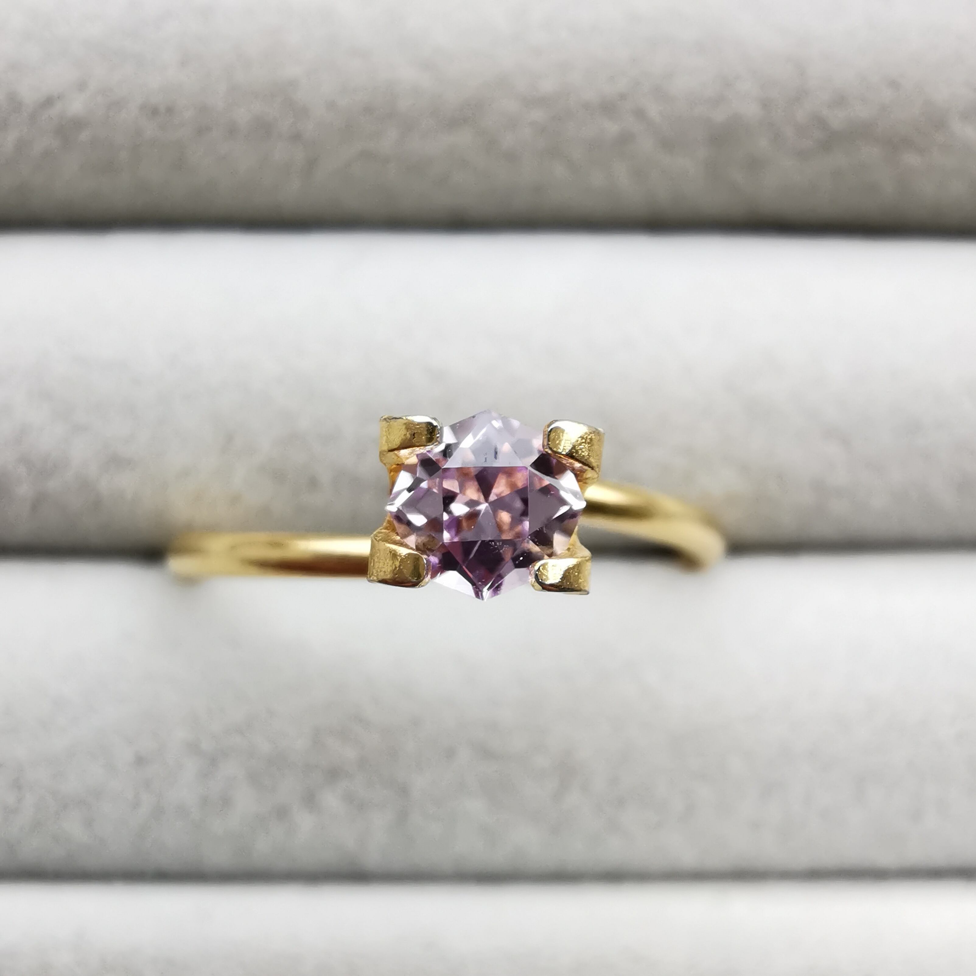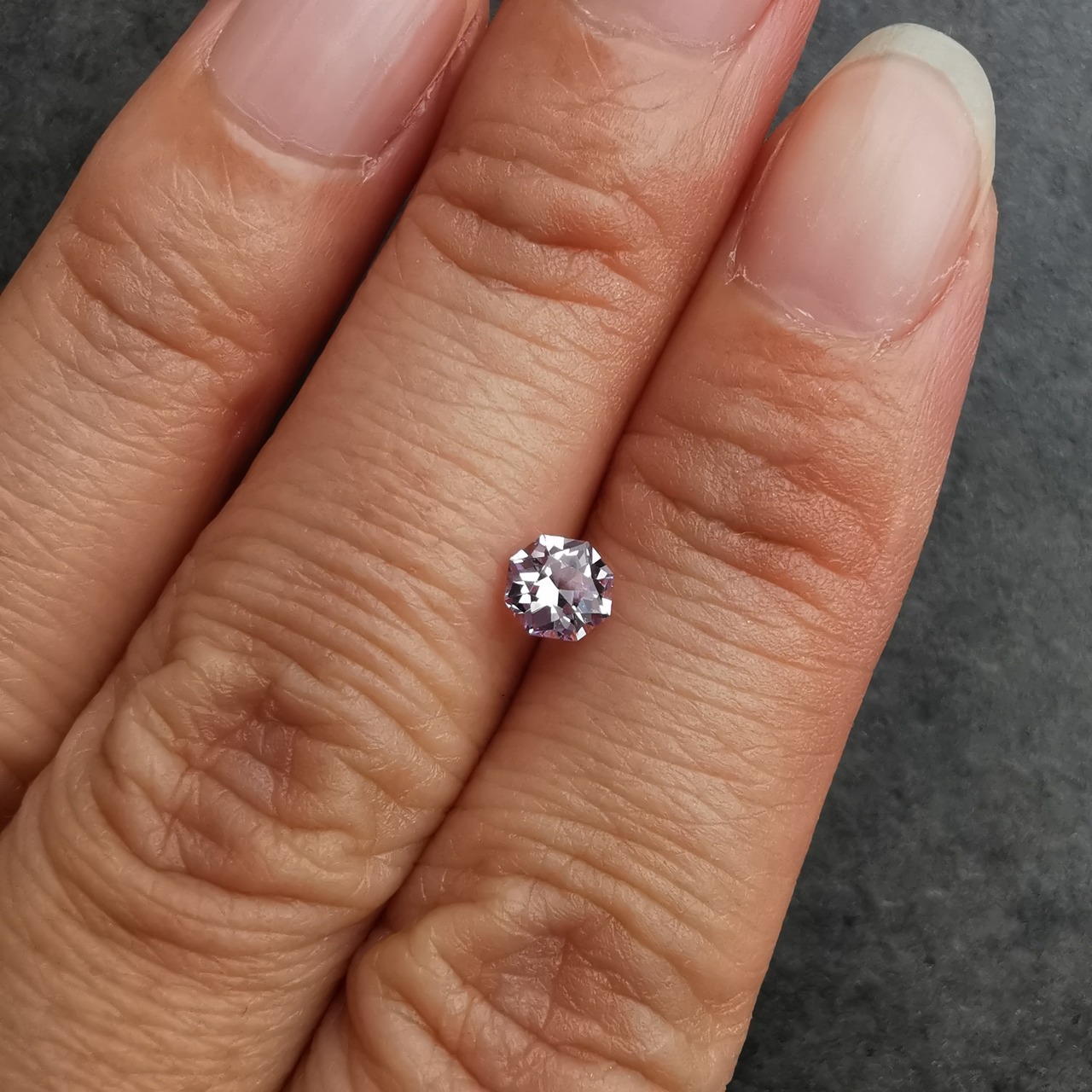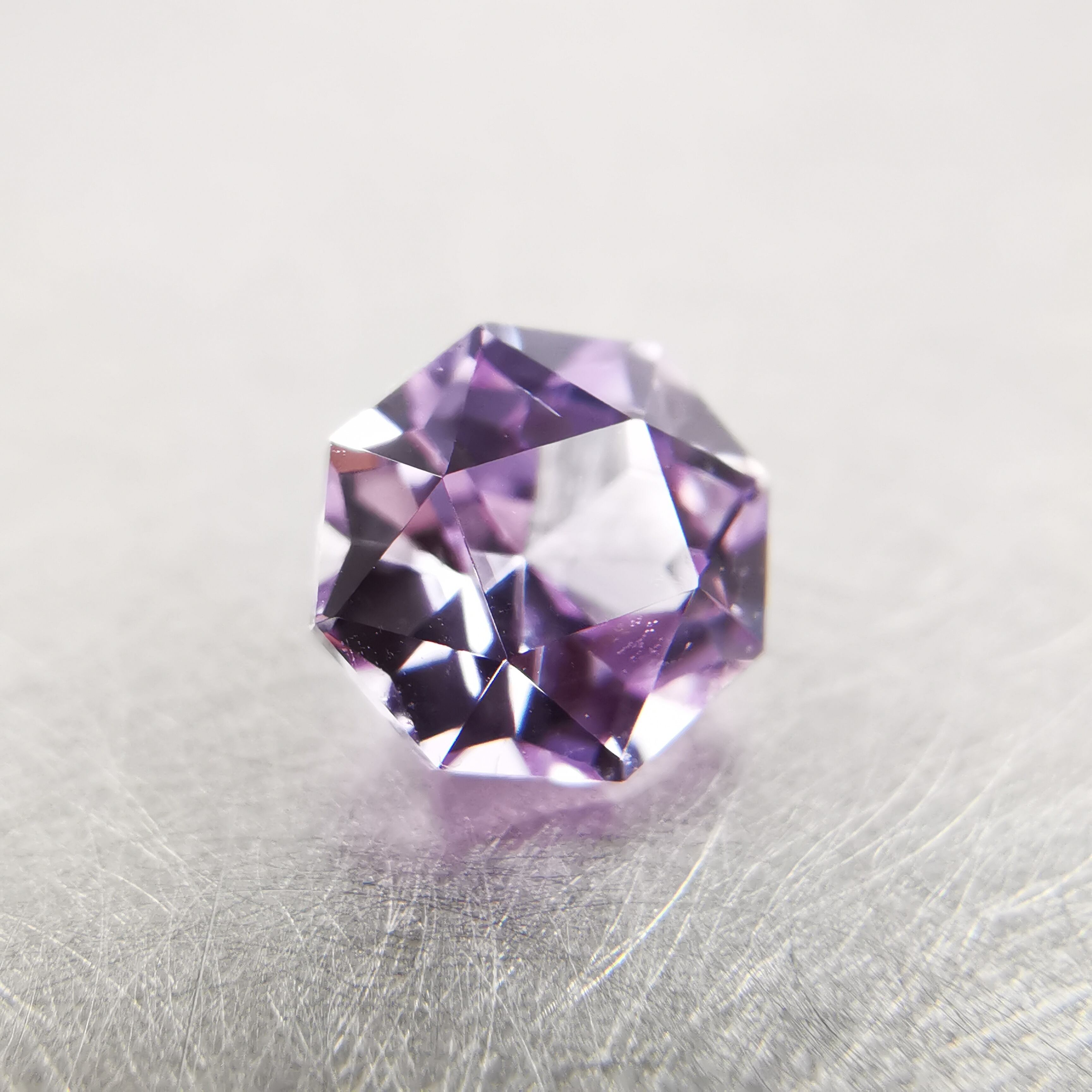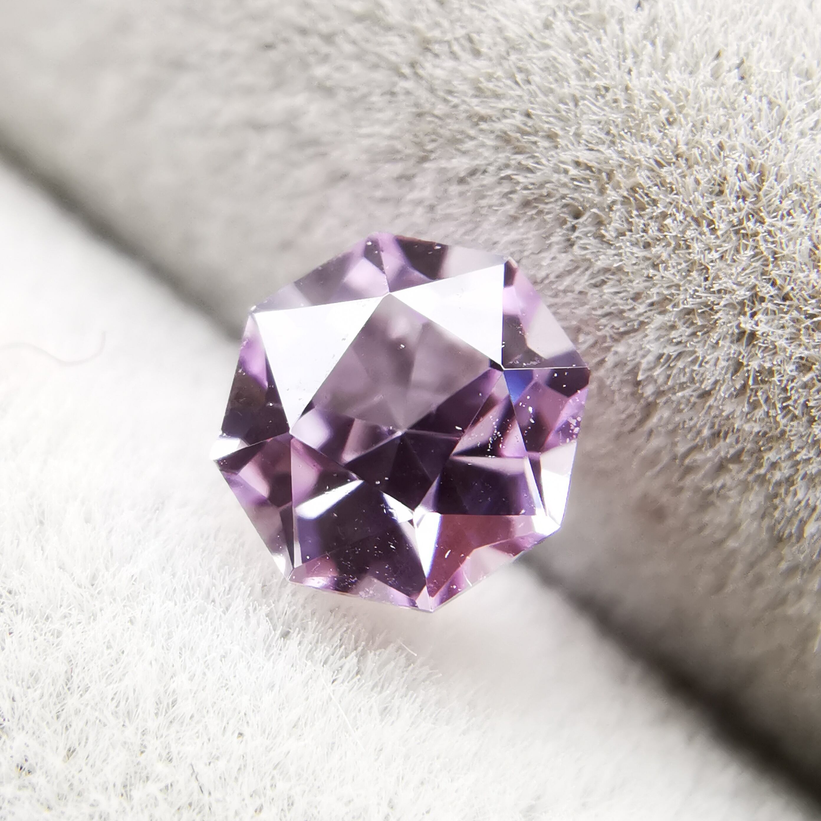ごく淡いパープルピンク、キラキラが眩しいほどの強い輝きの一石です。
