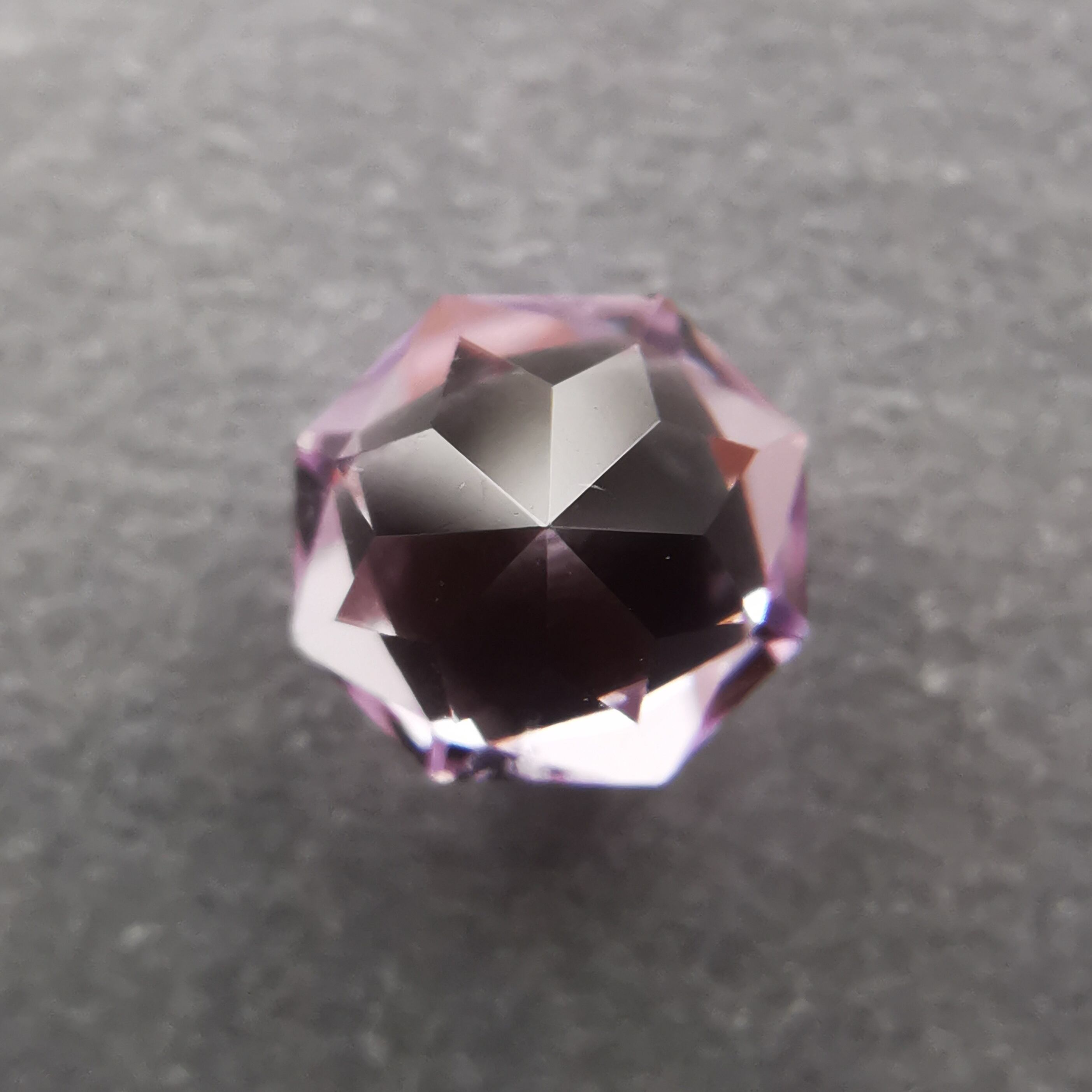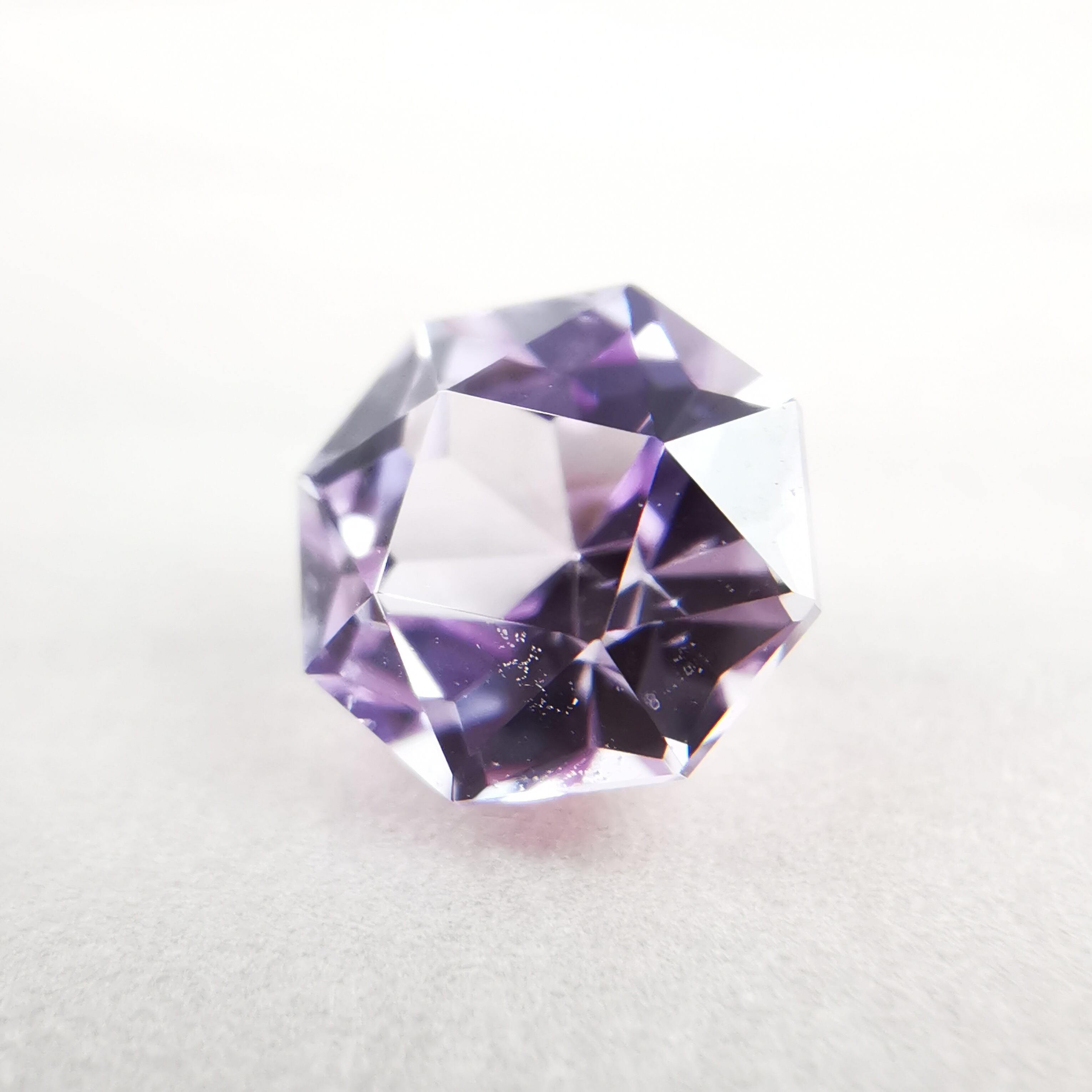 フォルムは8角形、テーブル面は4角形、キュレット周りは花のようにカットされています。