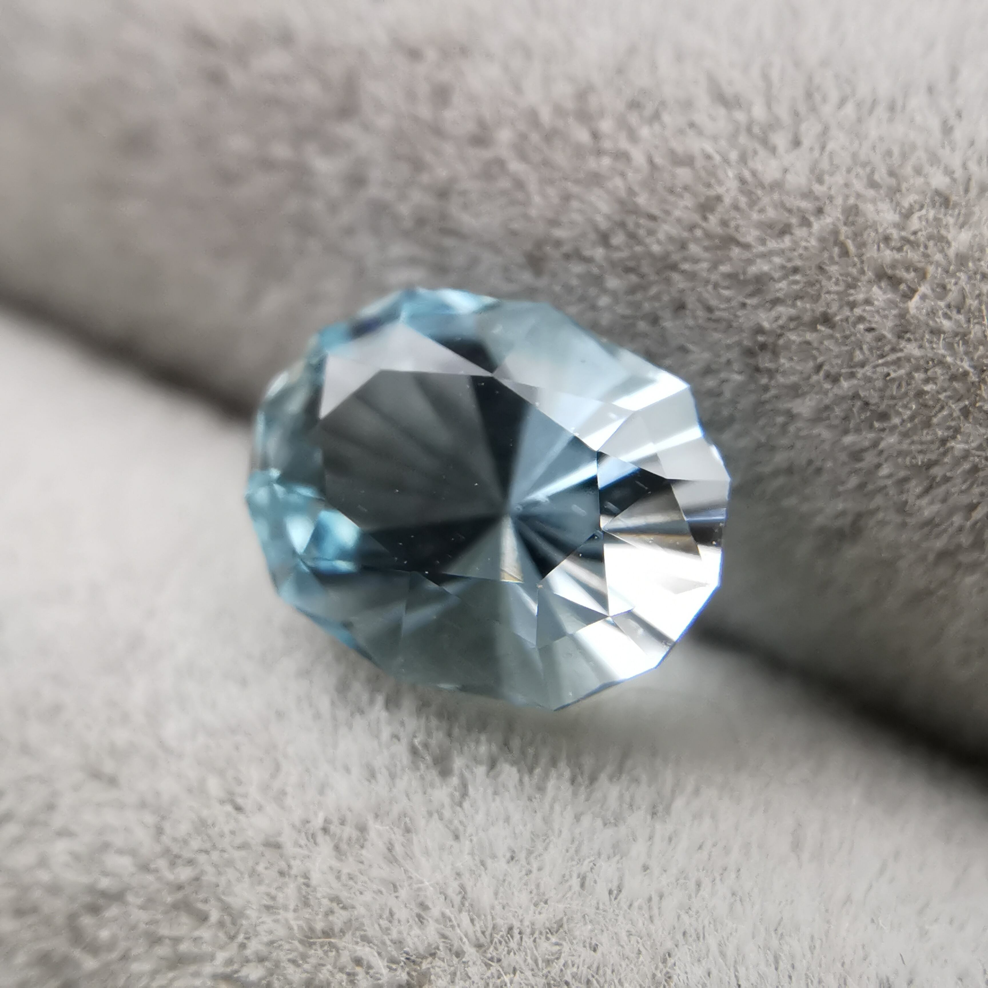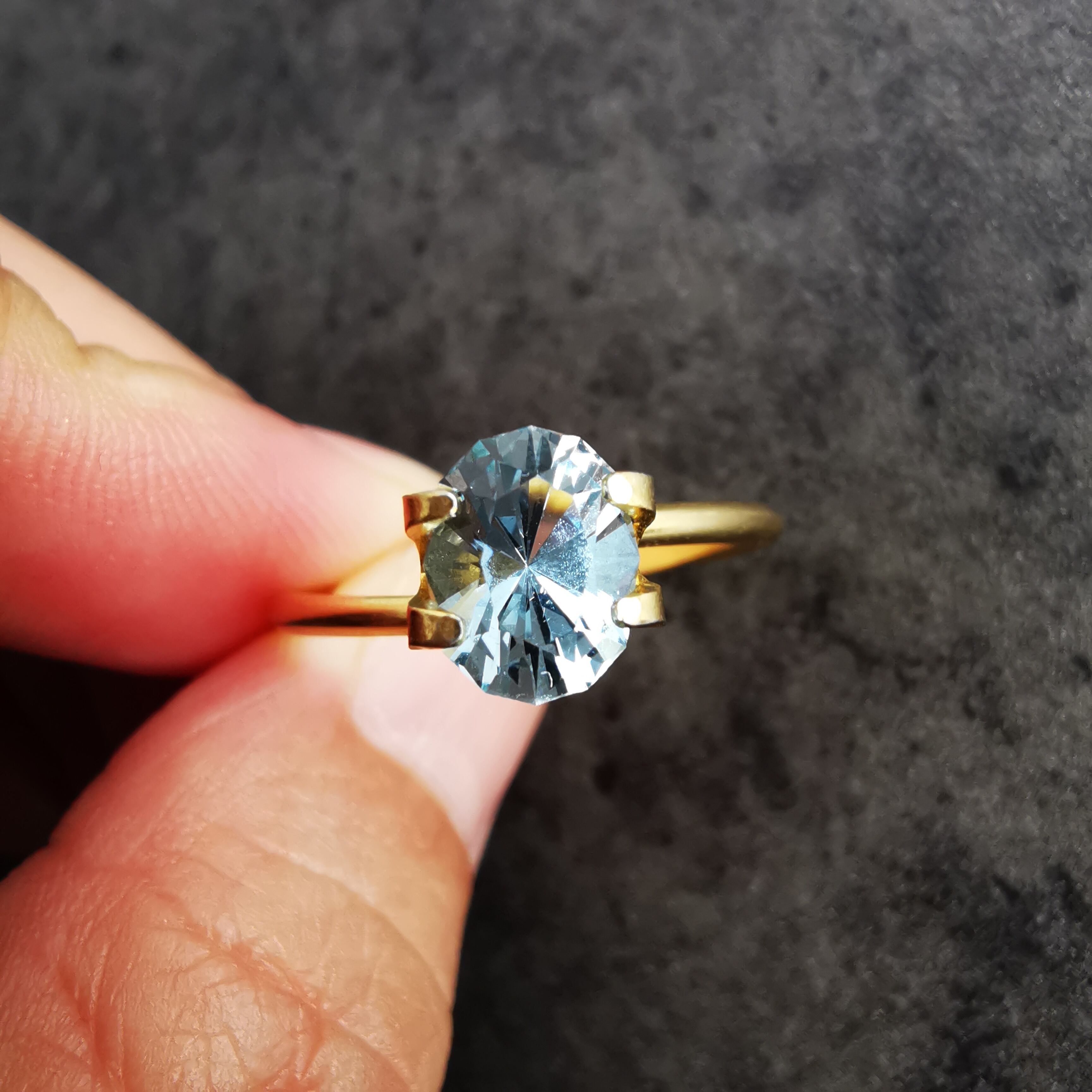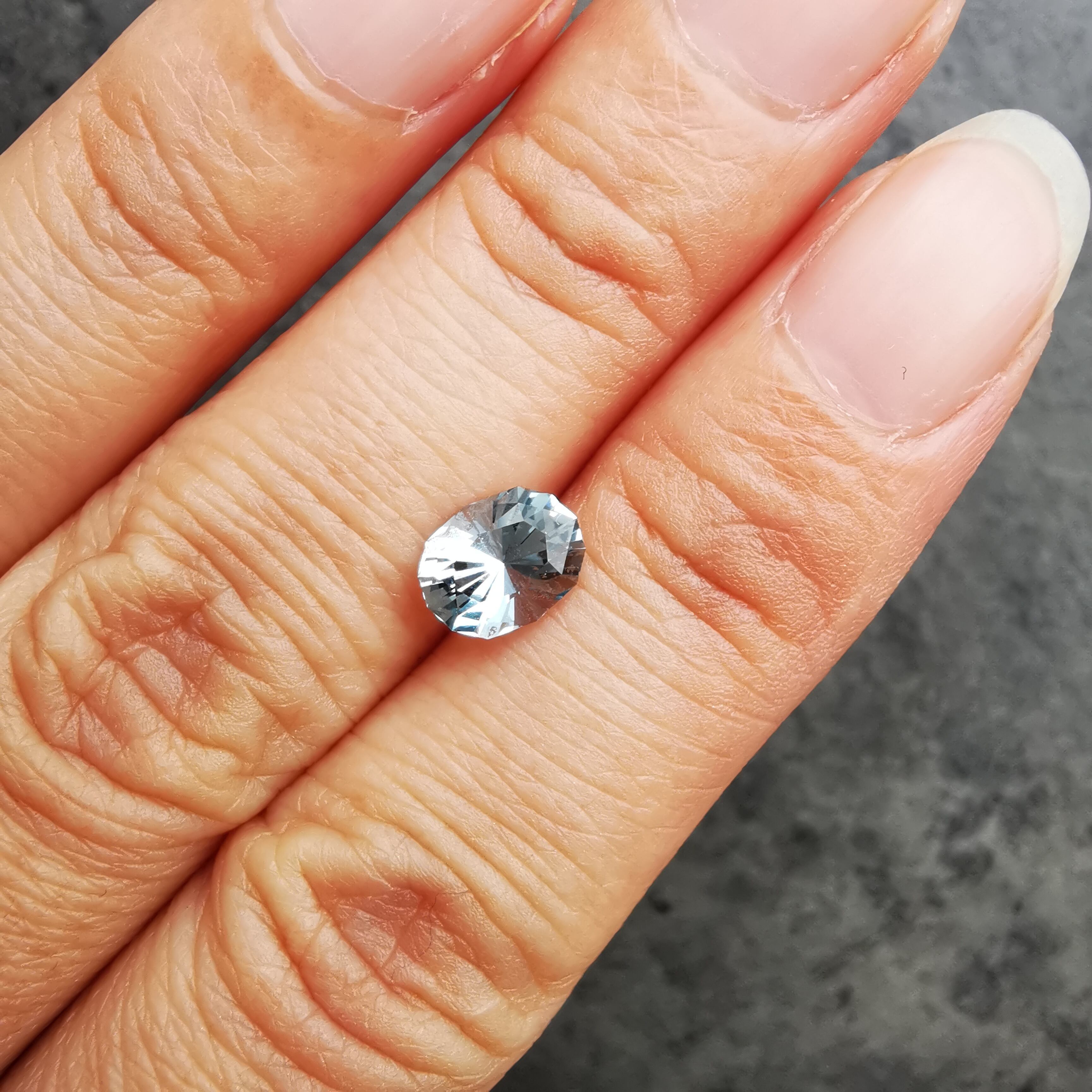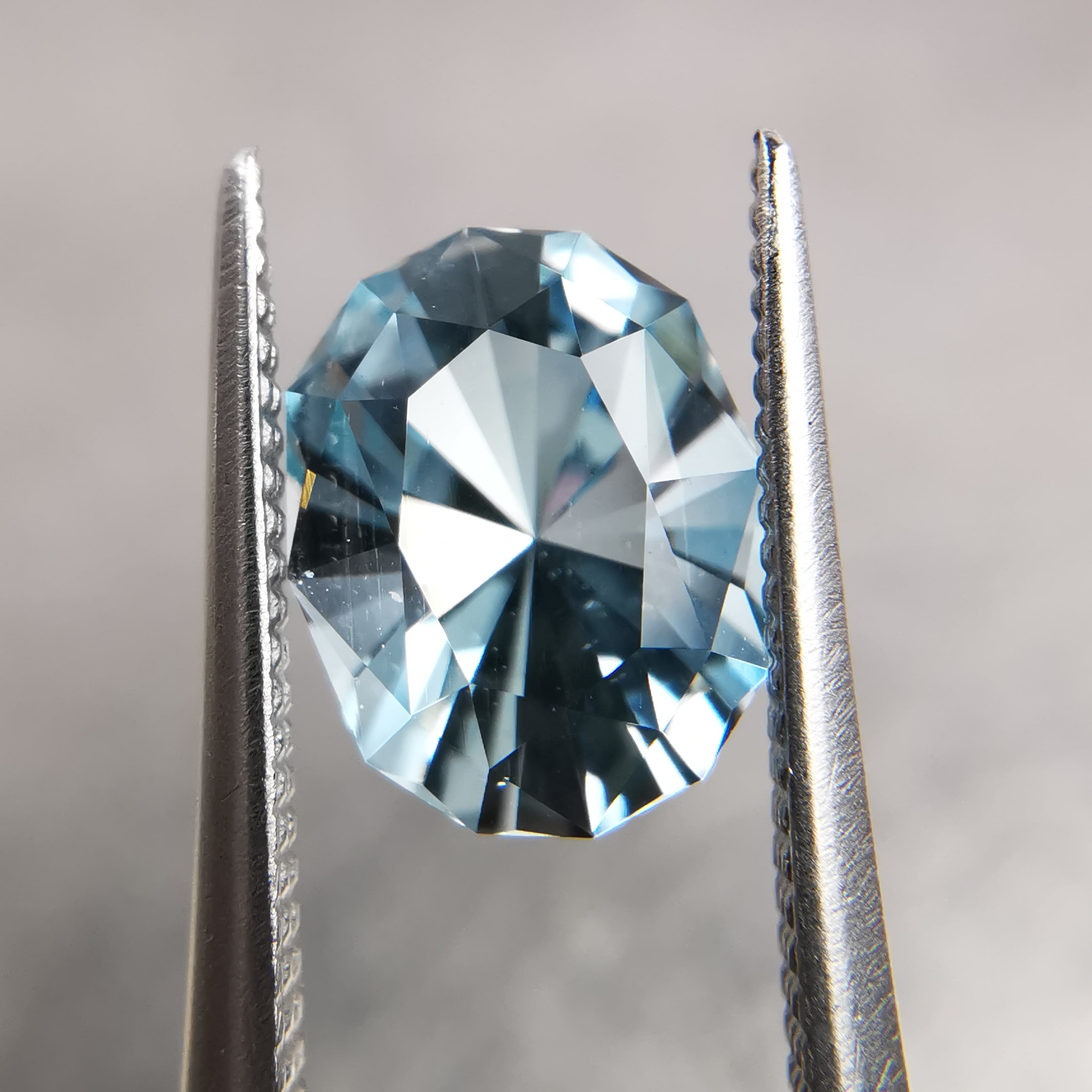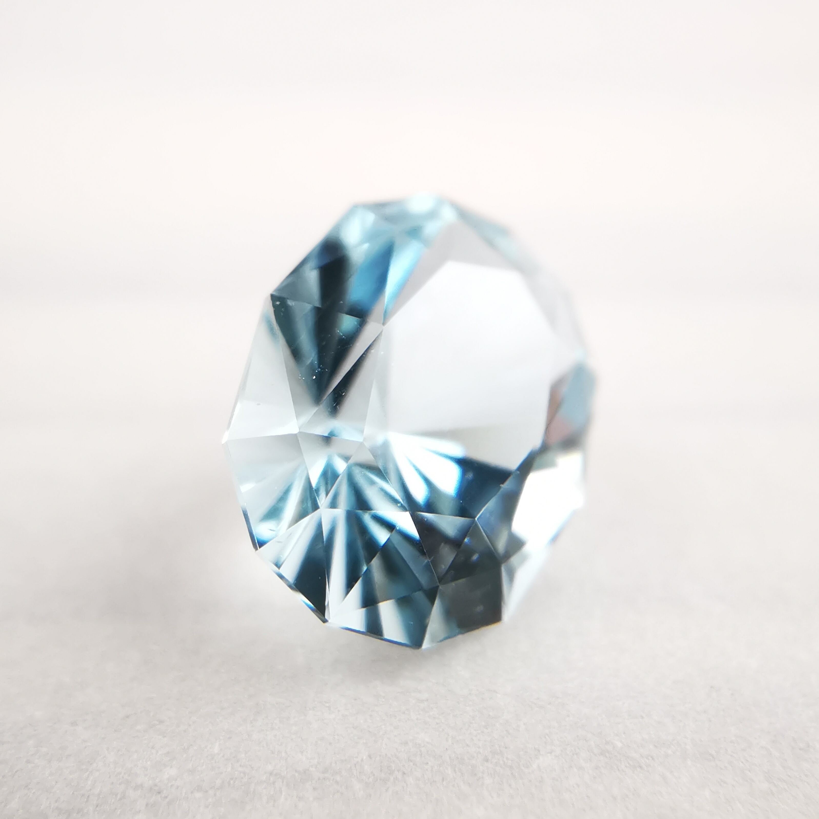 フェイス面は大きく、パビリオン側は細かなカットで、傾けたときの繊細な輝きが美しい一石です。