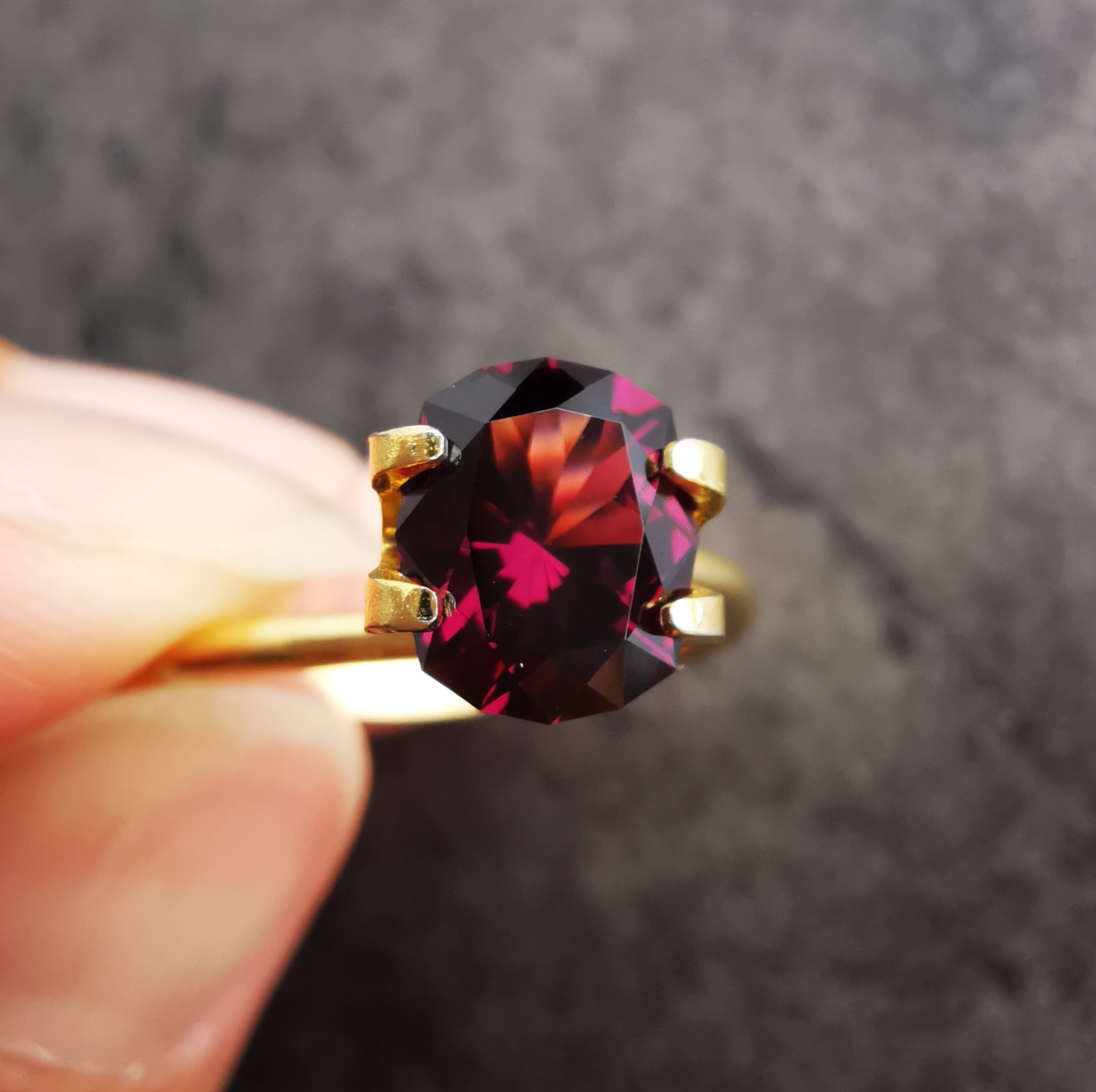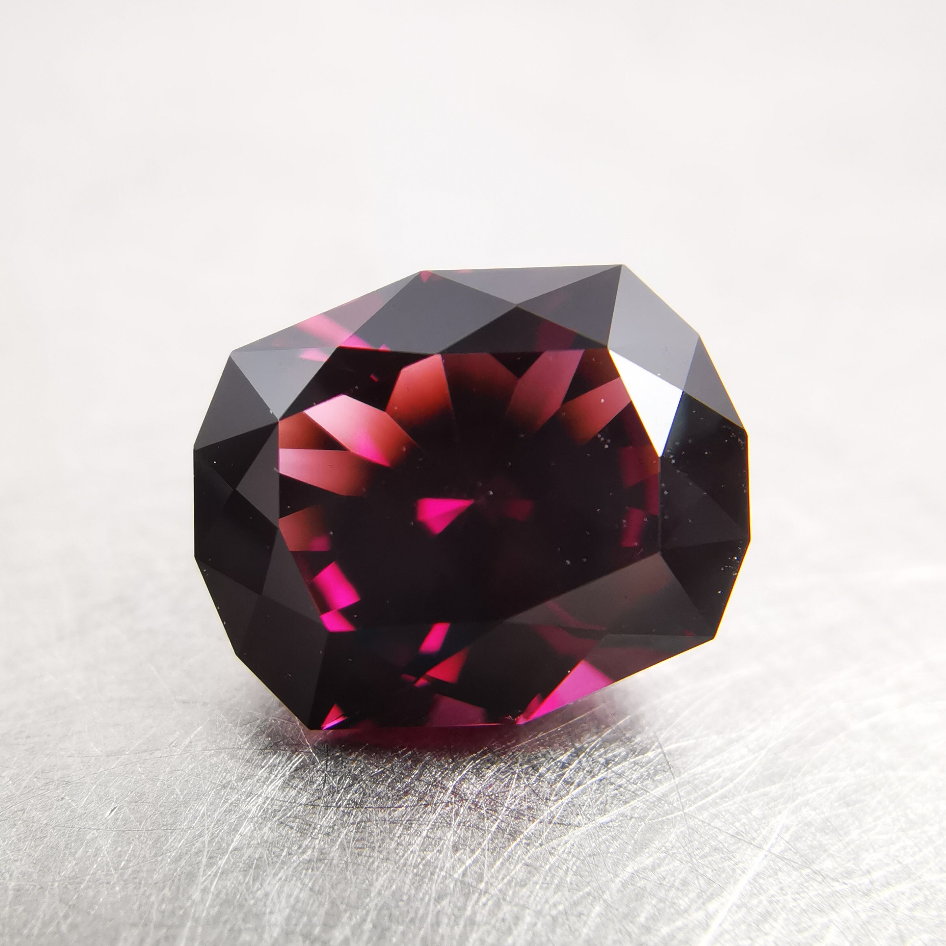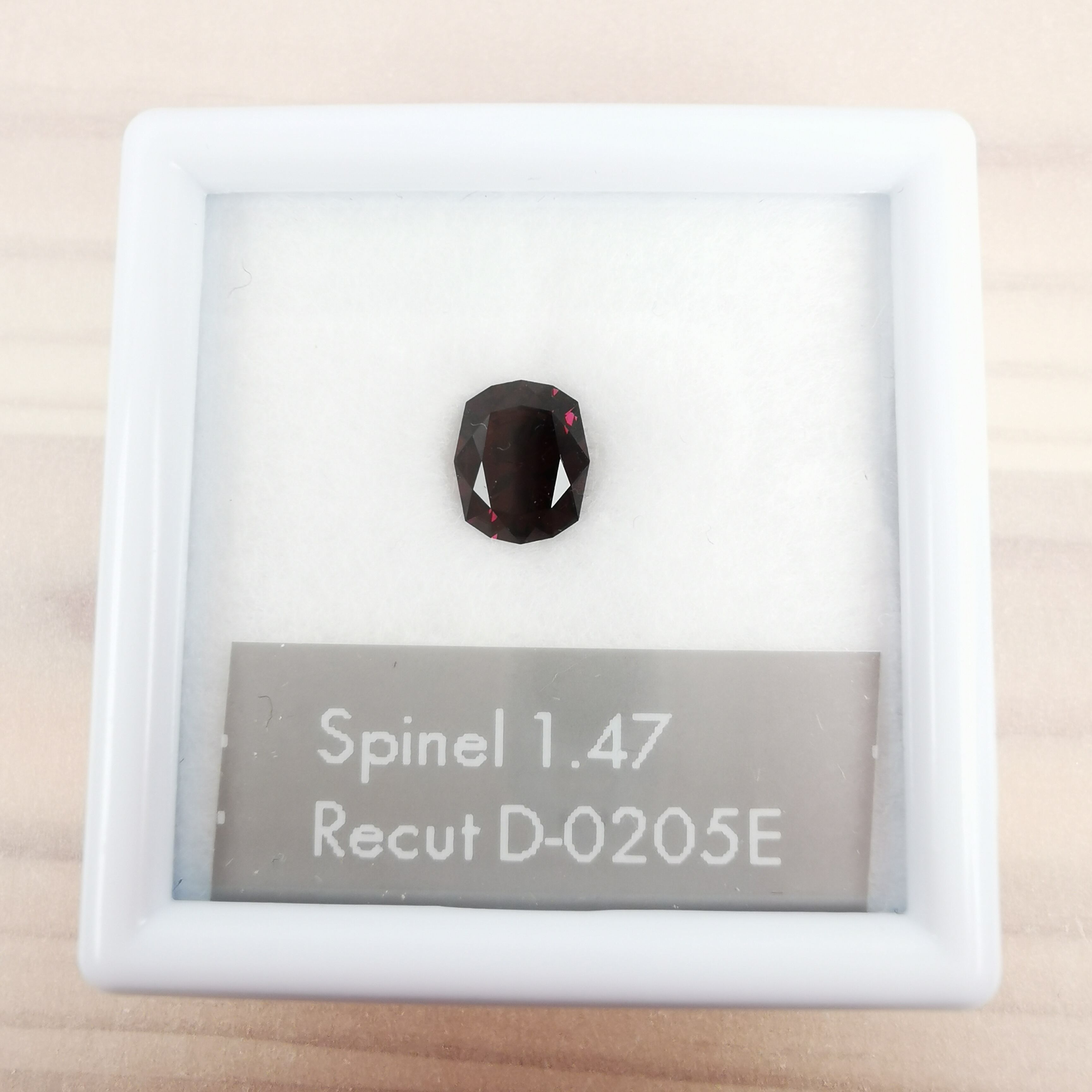 暗い石の中から、驚くほど鮮やかなワインレッドが、弾けるように輝くスピネルです。
