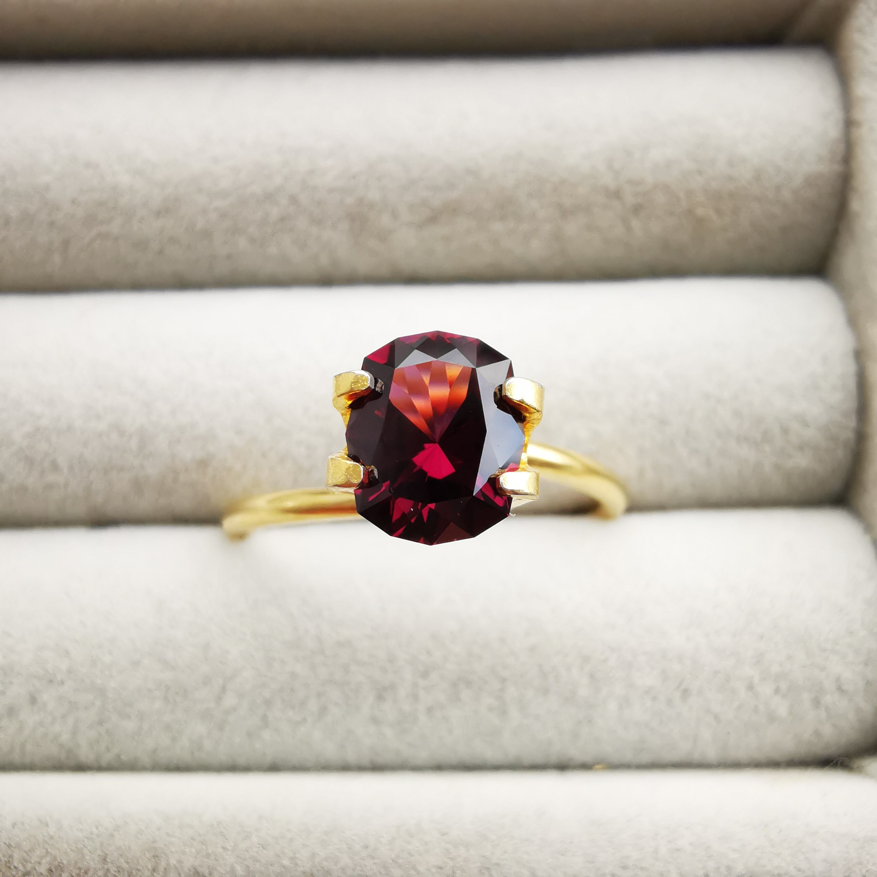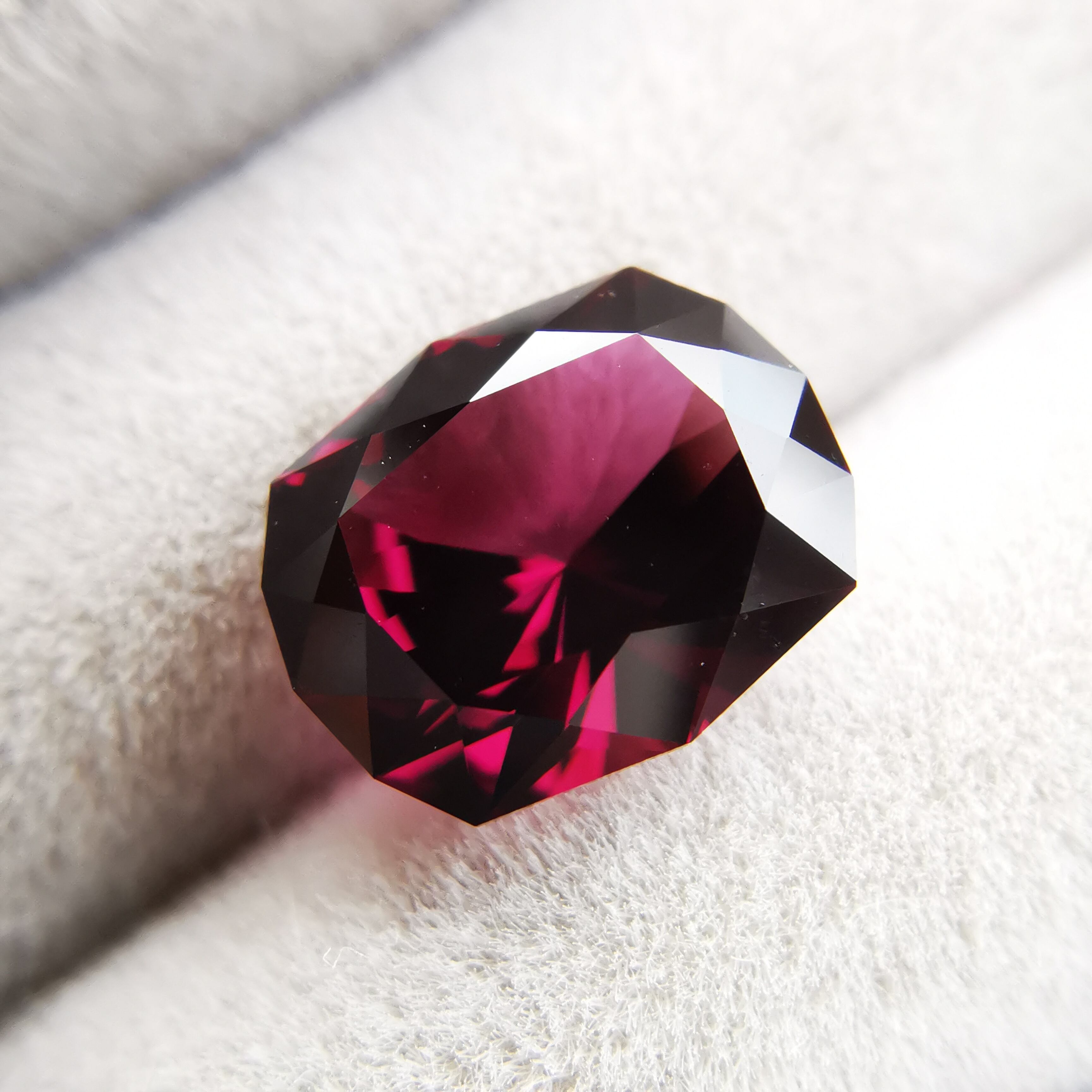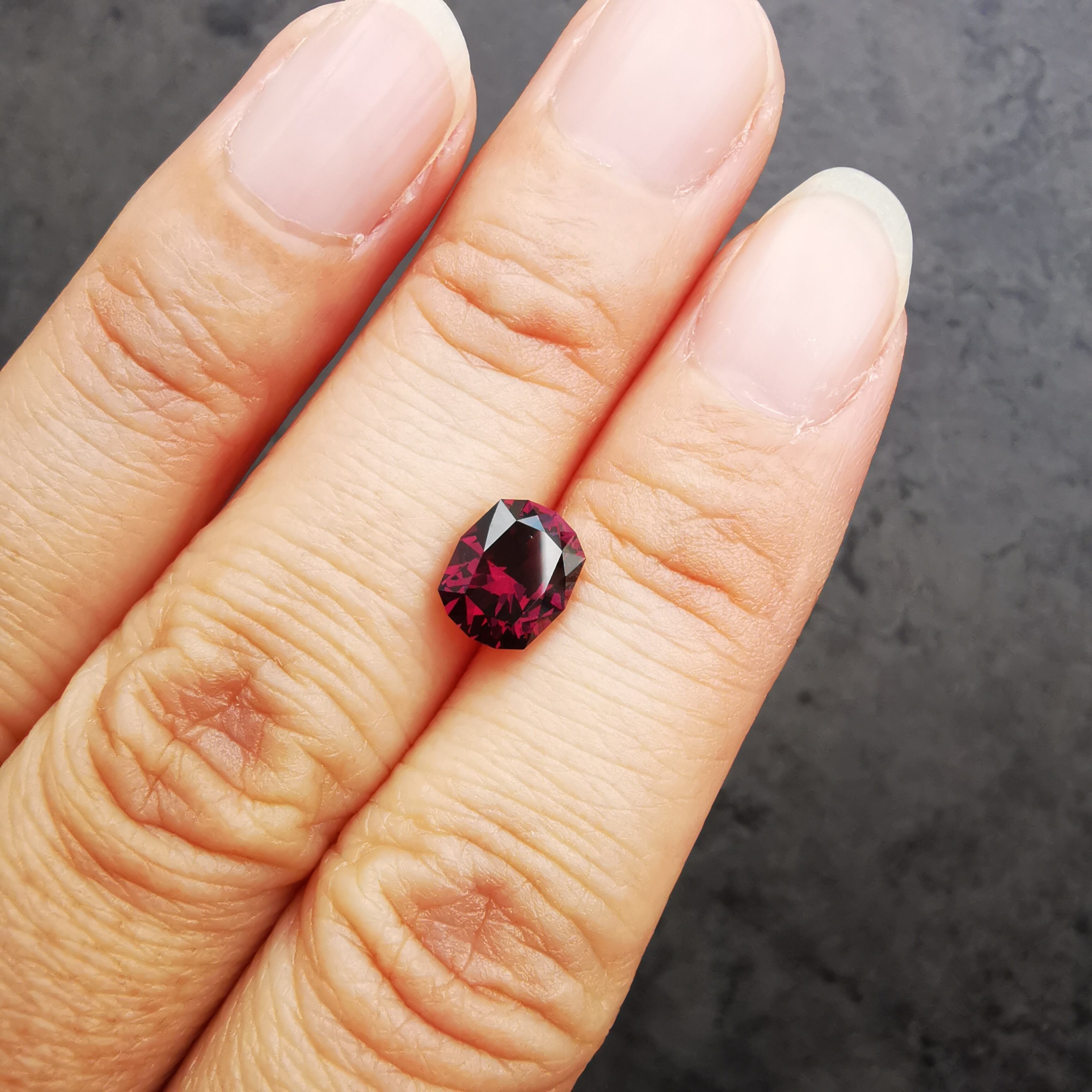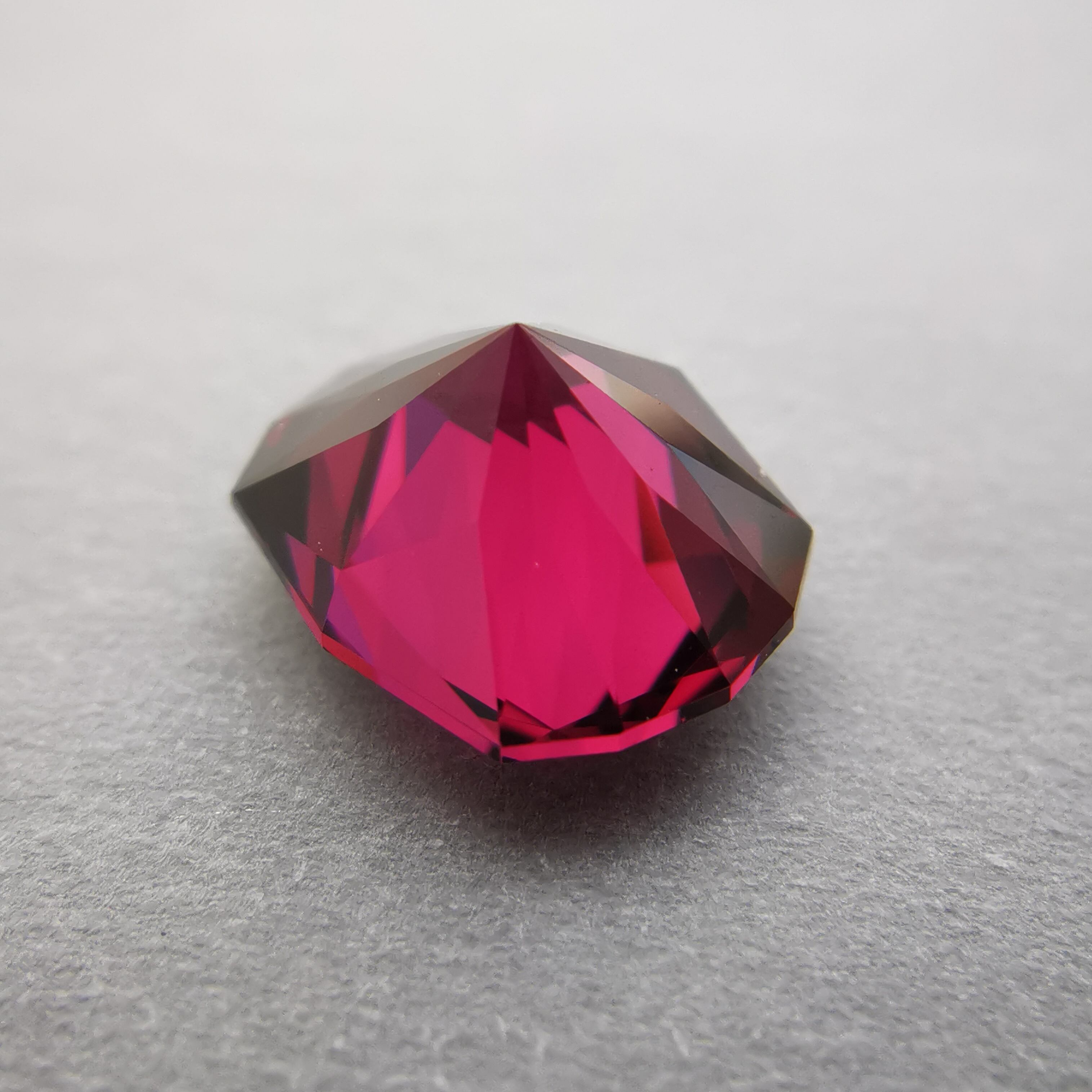 暗い石の中から、驚くほど鮮やかなワインレッドが、弾けるように輝くスピネルです。