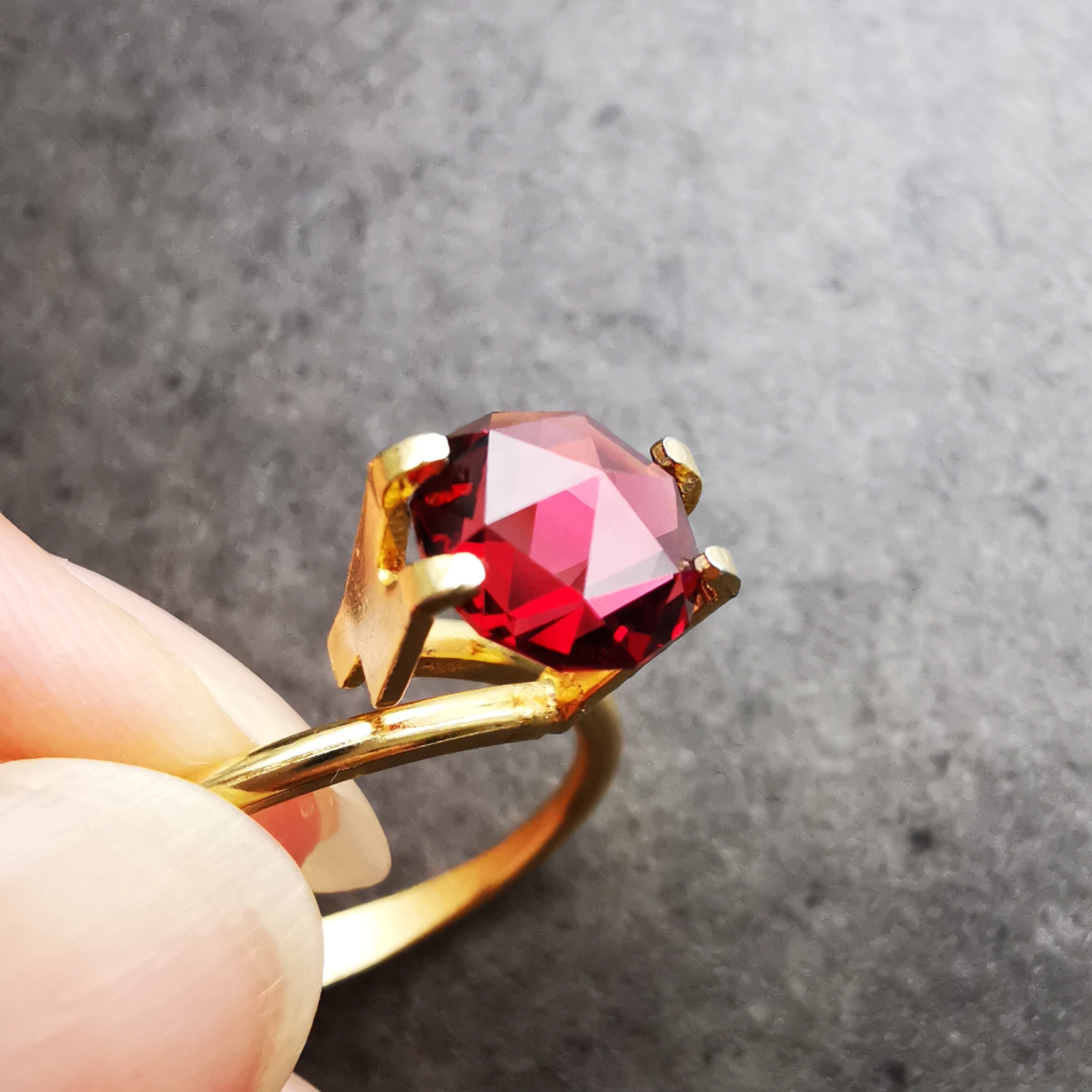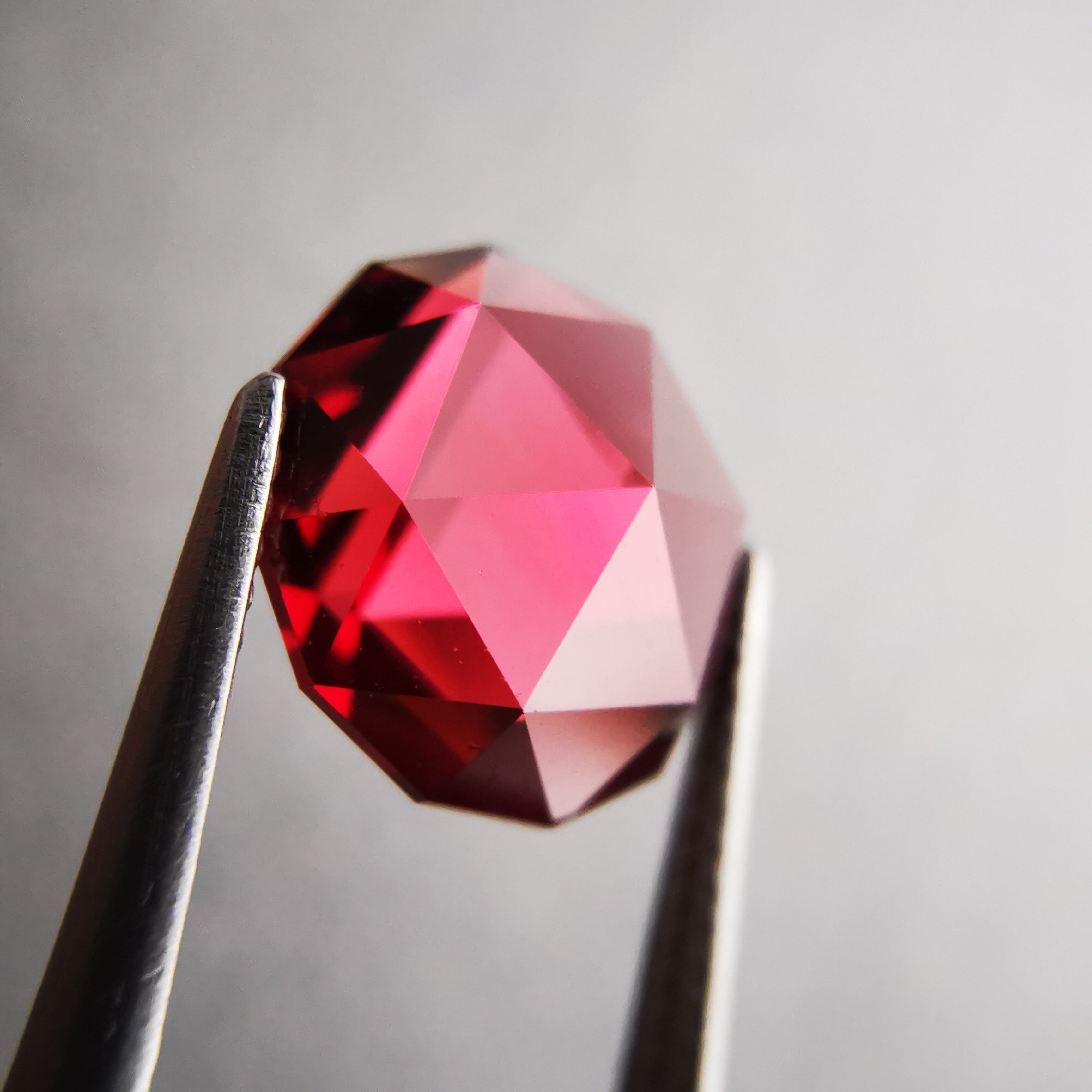 バラを意味するロードライトガーネットに、バラの蕾が名前の由来と言われるローズカットを施して、まさにバラのような可憐な美しさです。