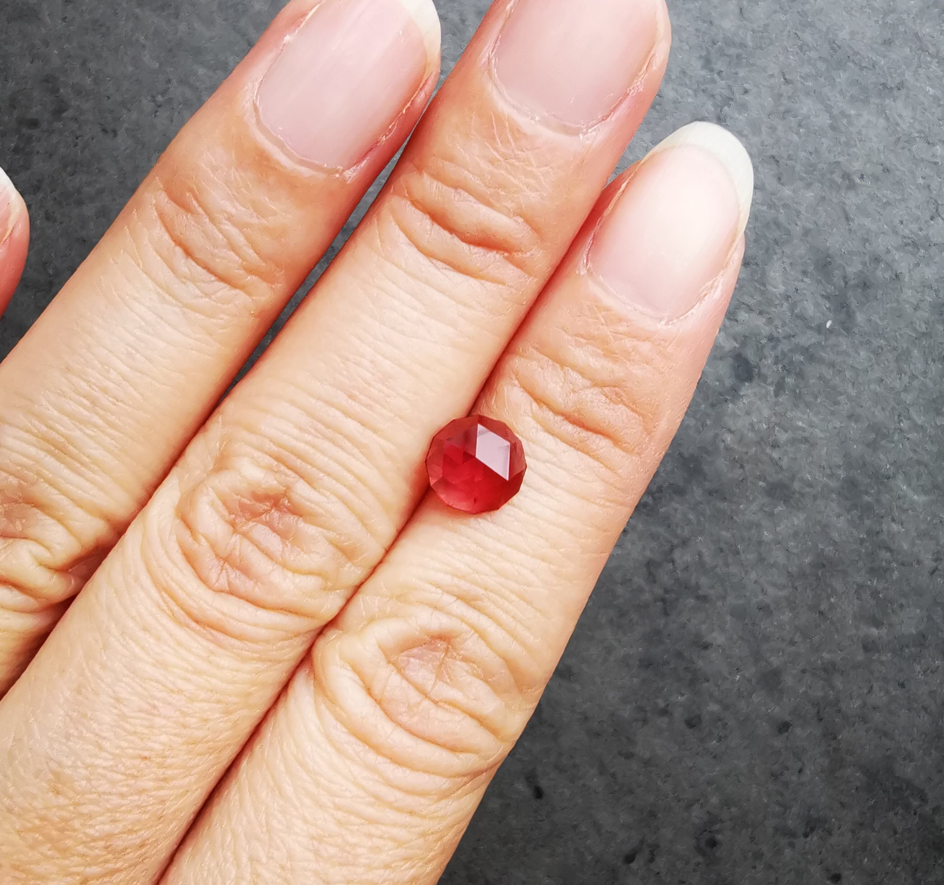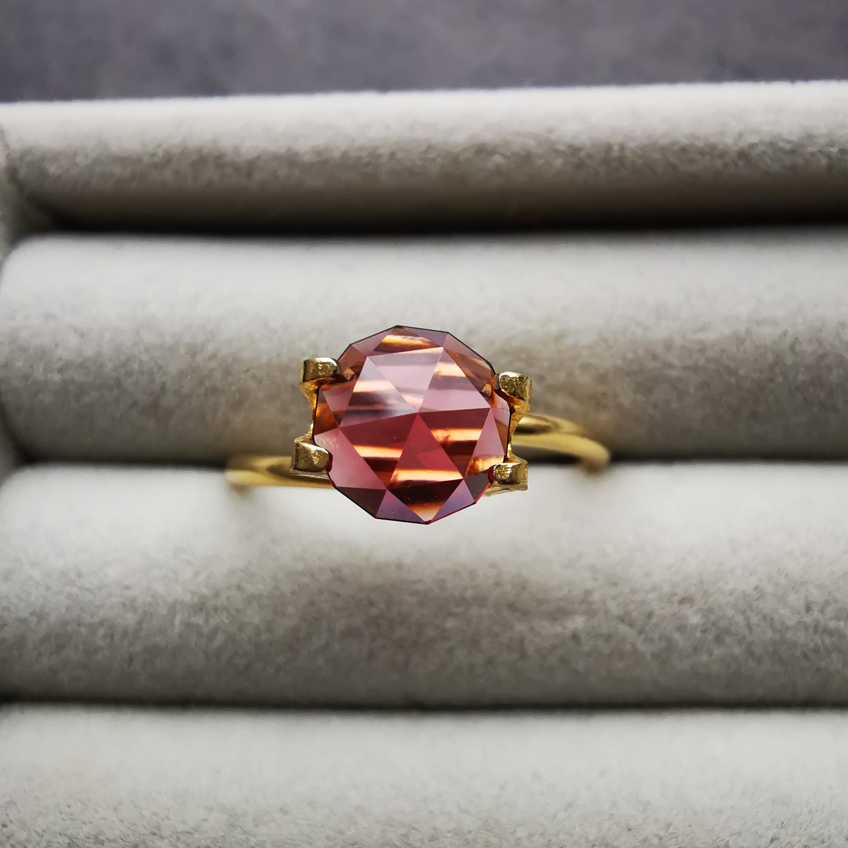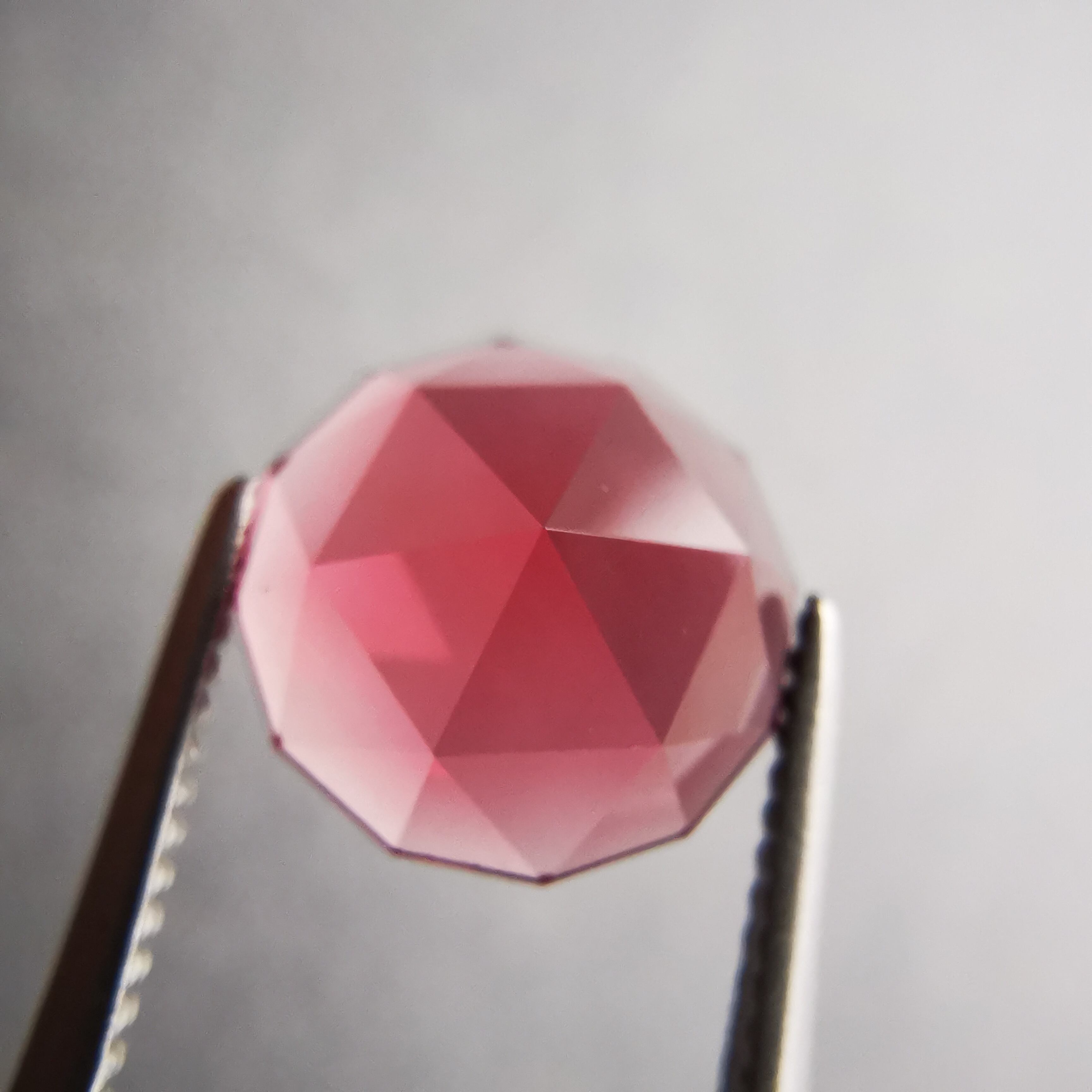 3角形のファセット面を組み合わせたローズカットで、キラキラというよりも、ウルウルとした優しい輝きです。