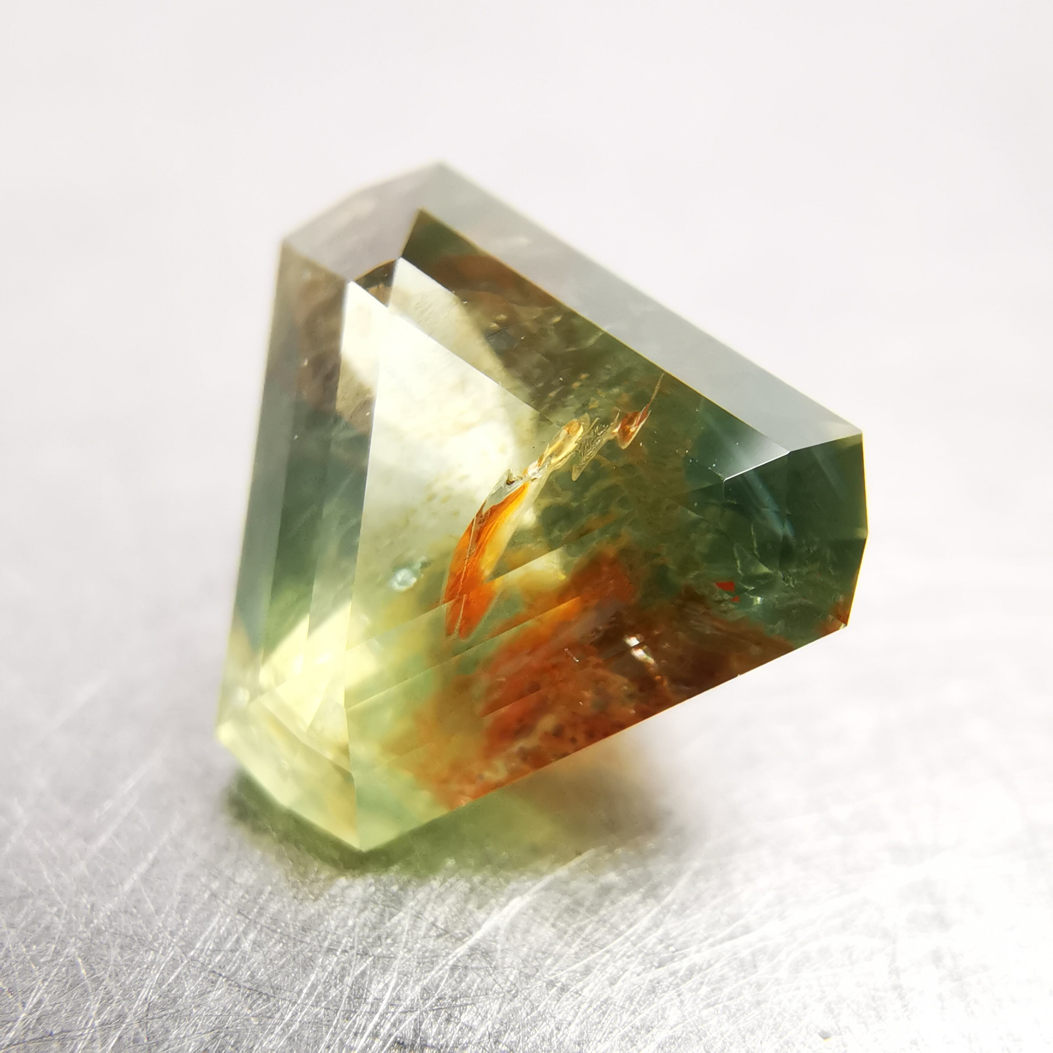 ややシルキーなイエローグリーンの中に、オレンジのインクルージョンが入ります。