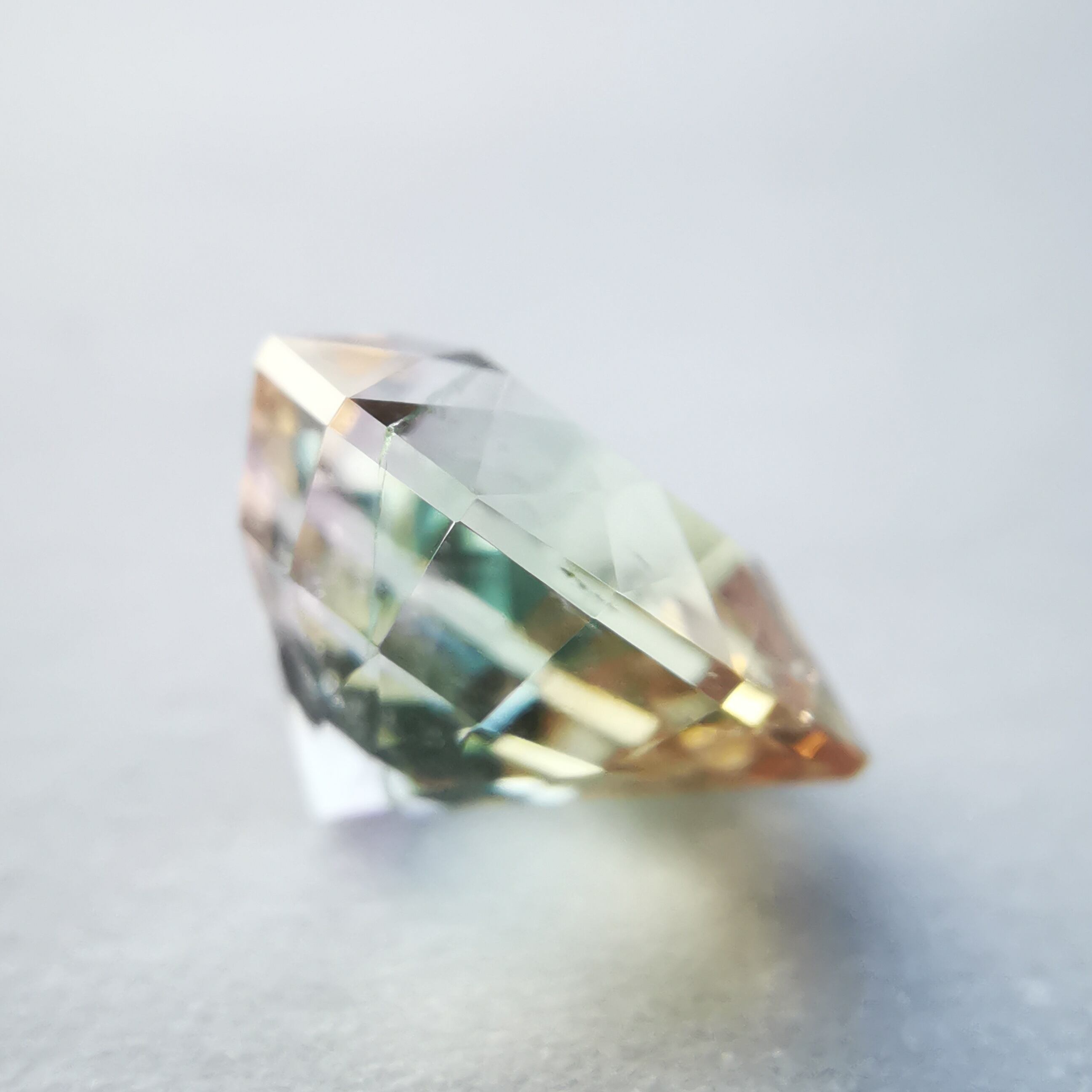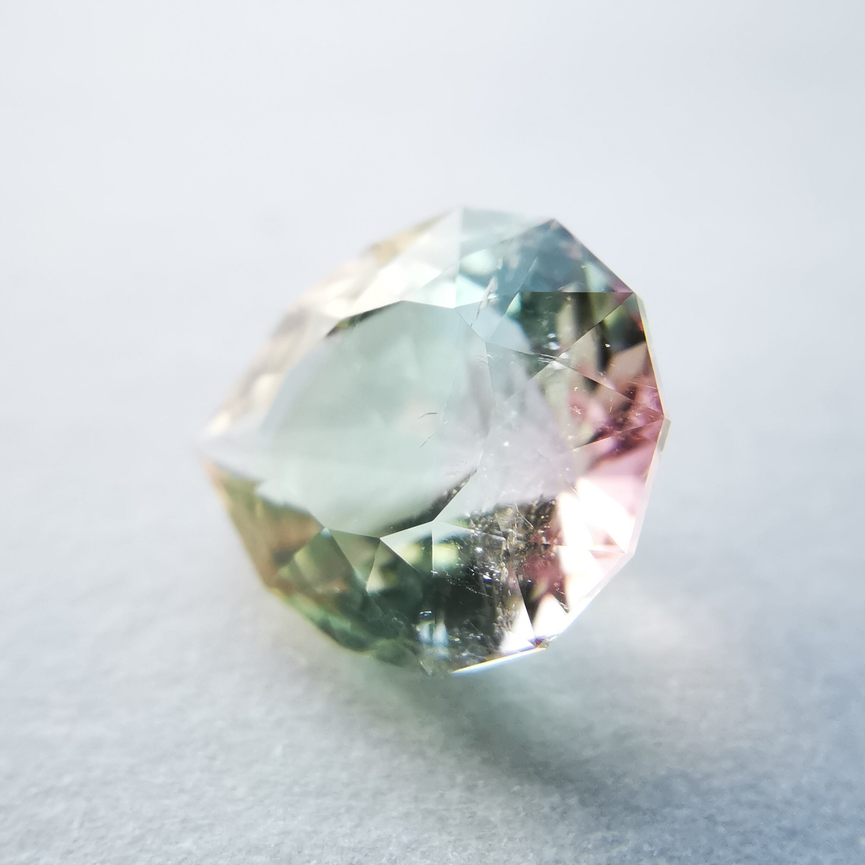 淡いイエローグリーンに、ベビーピンクとオレンジピンクが入ったバイカラーのトルマリンです。