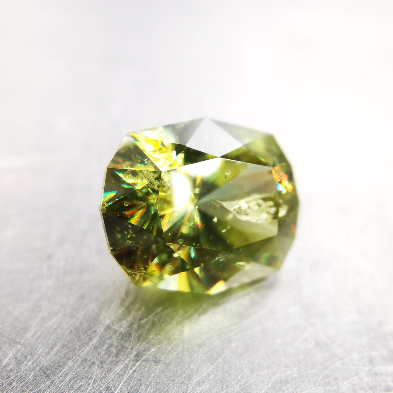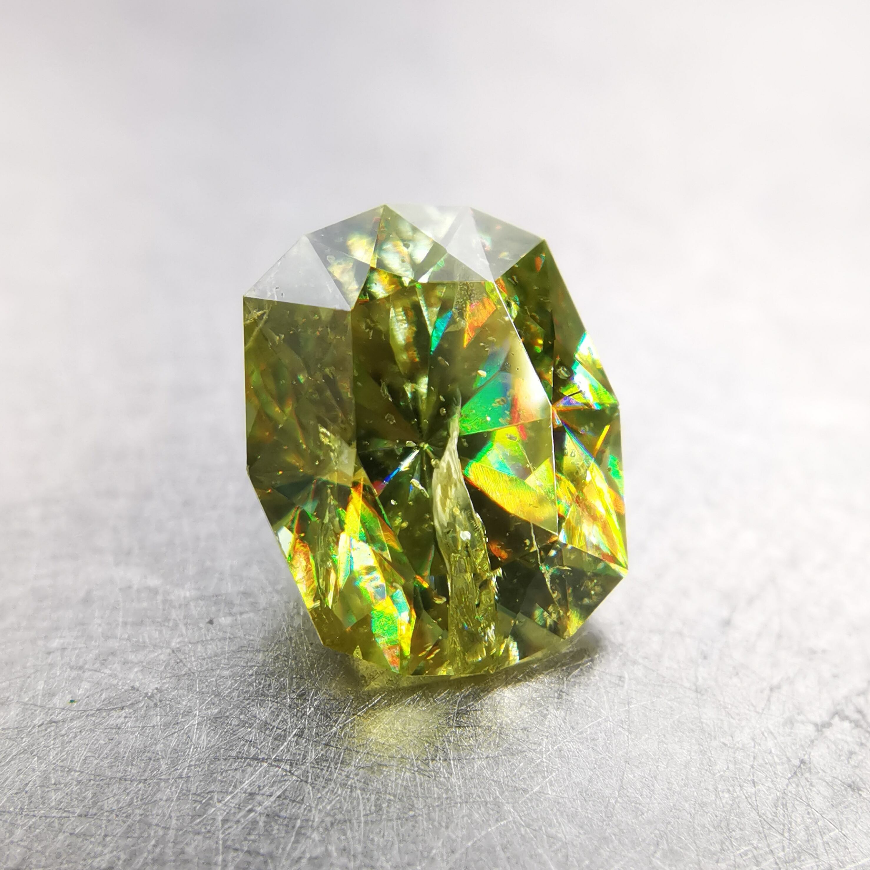 元は4カラット以上ある大きな石から、あえてクラックが、中心から湧き上がる煙のように見える位置になるようリカットしました。
