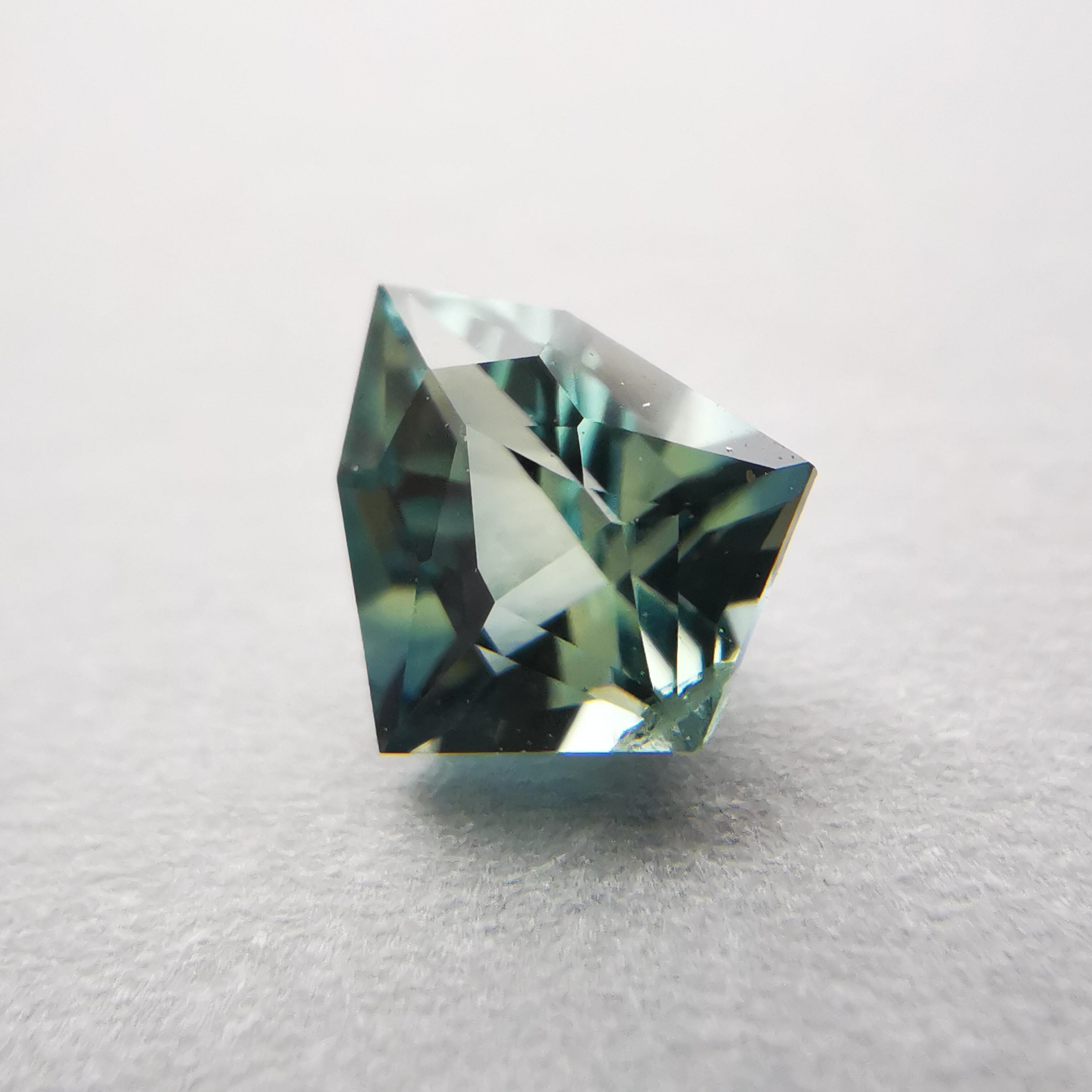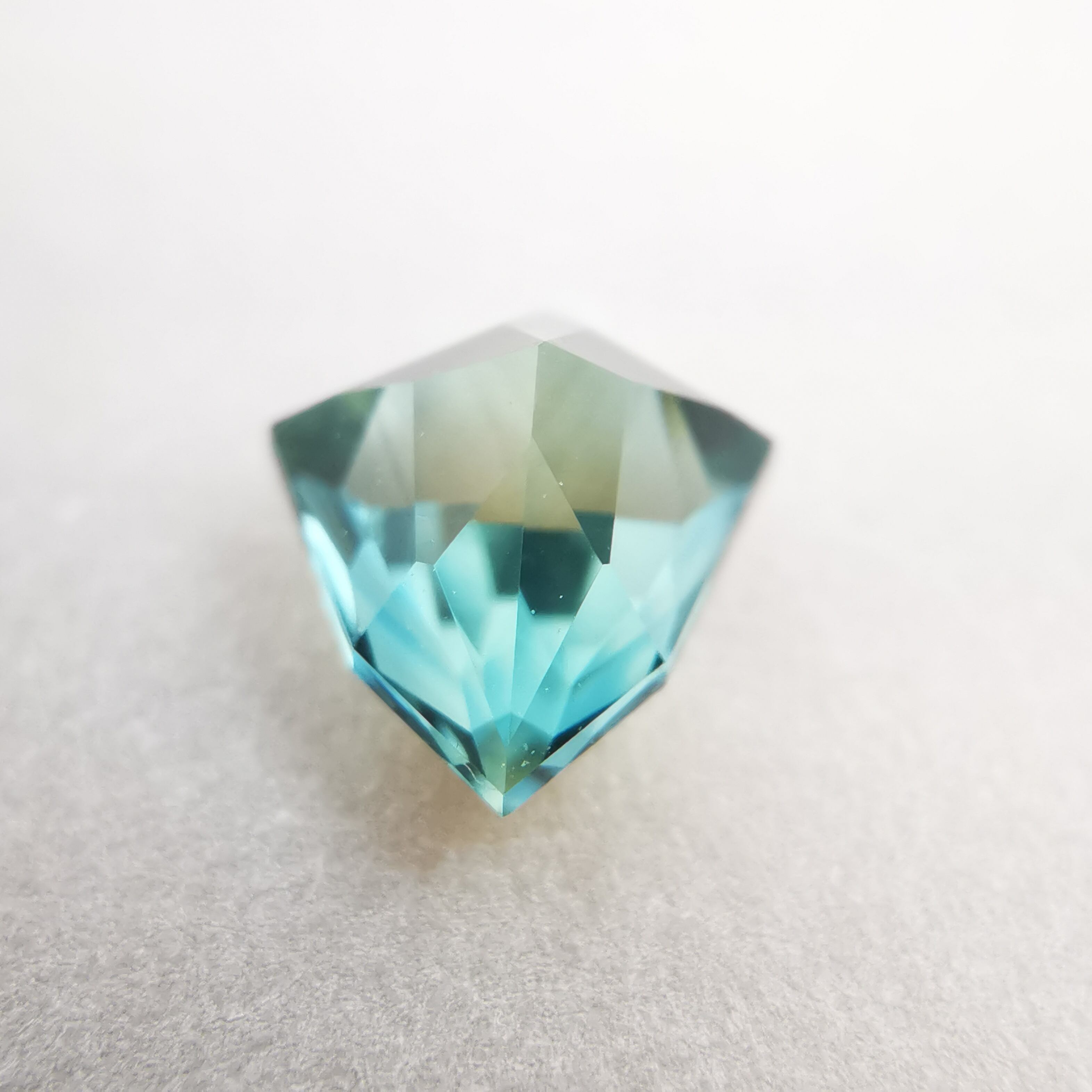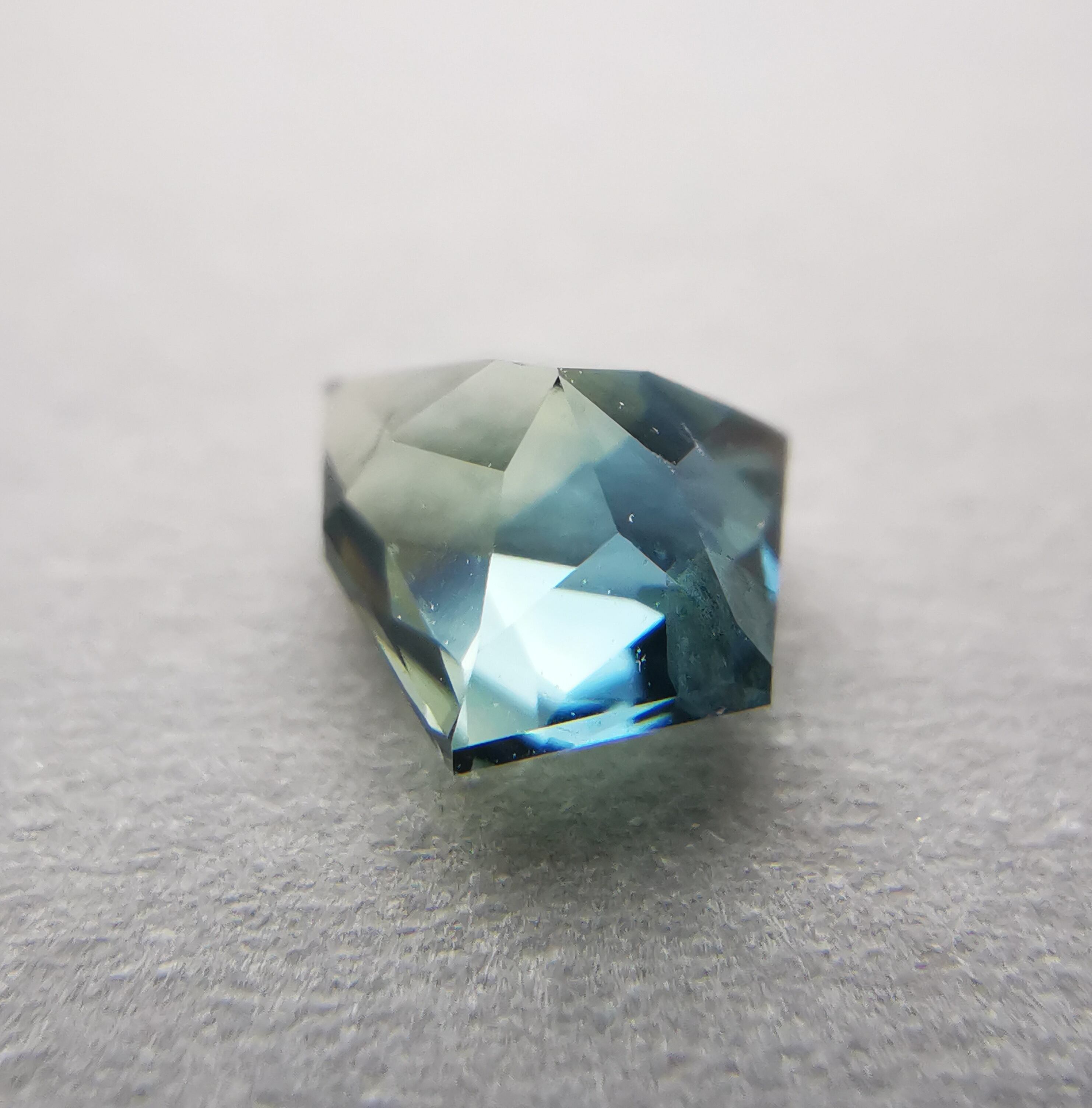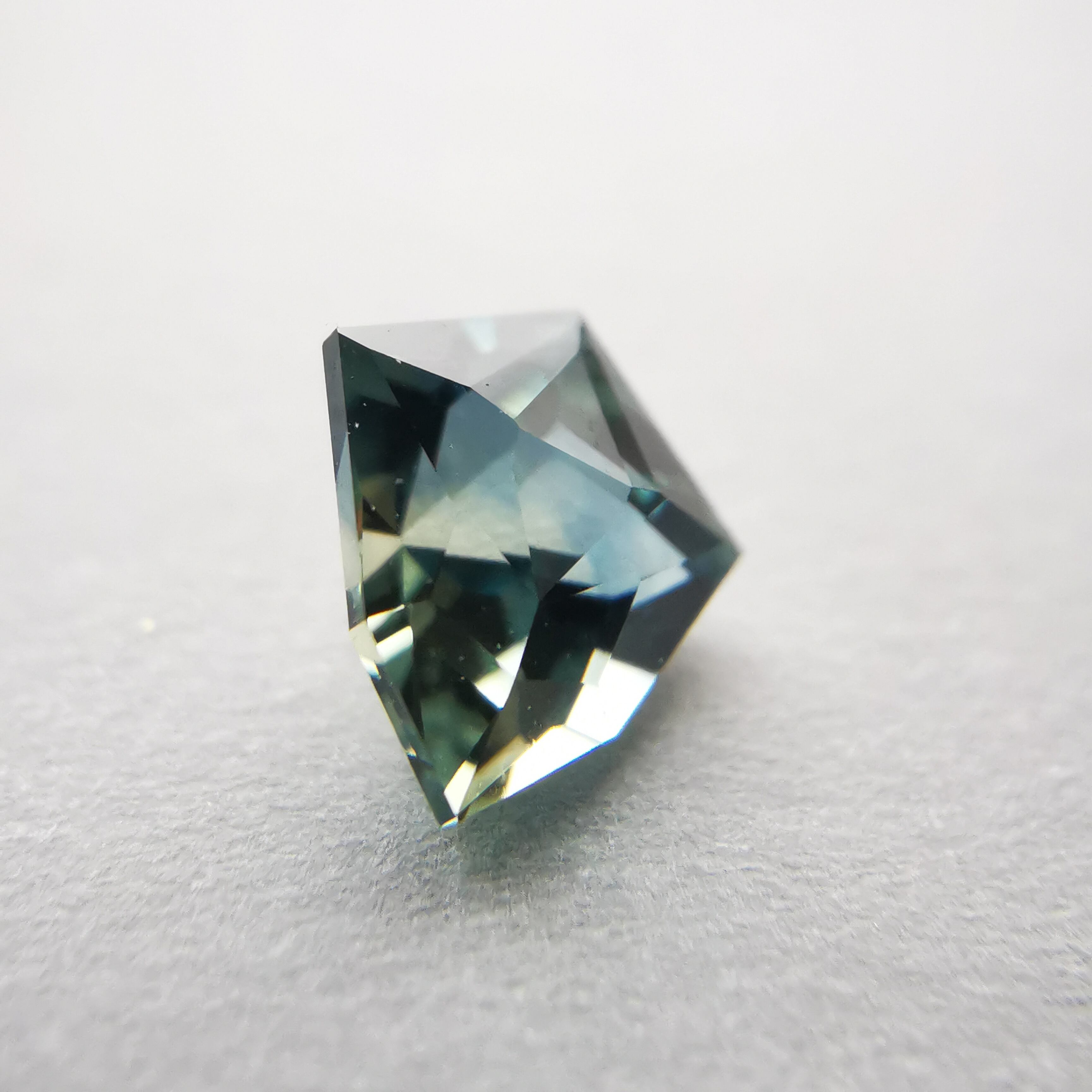 フェイスからはグリーン、傾けるとイエロー、パビリオンからはブルーに見える不思議なサファイアです。