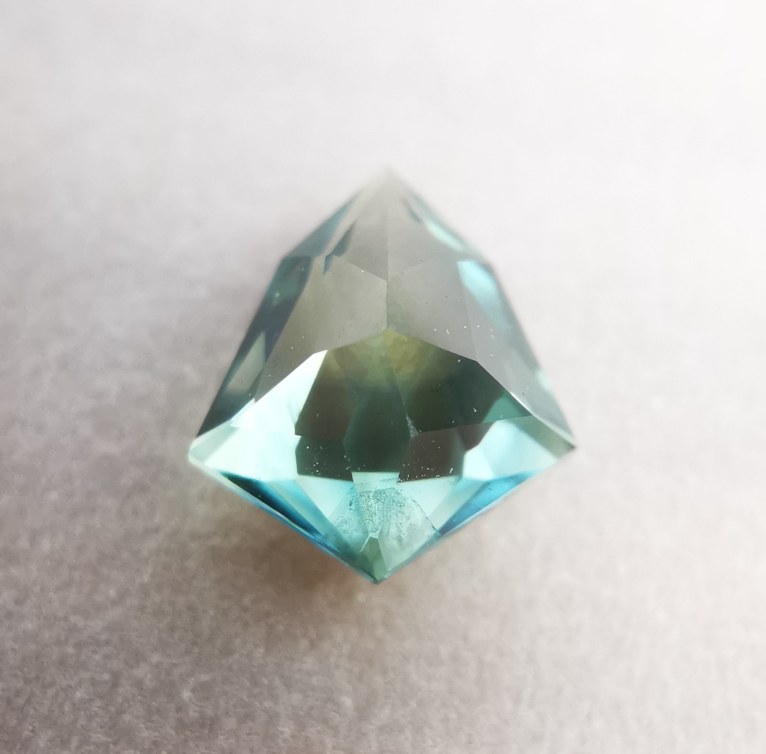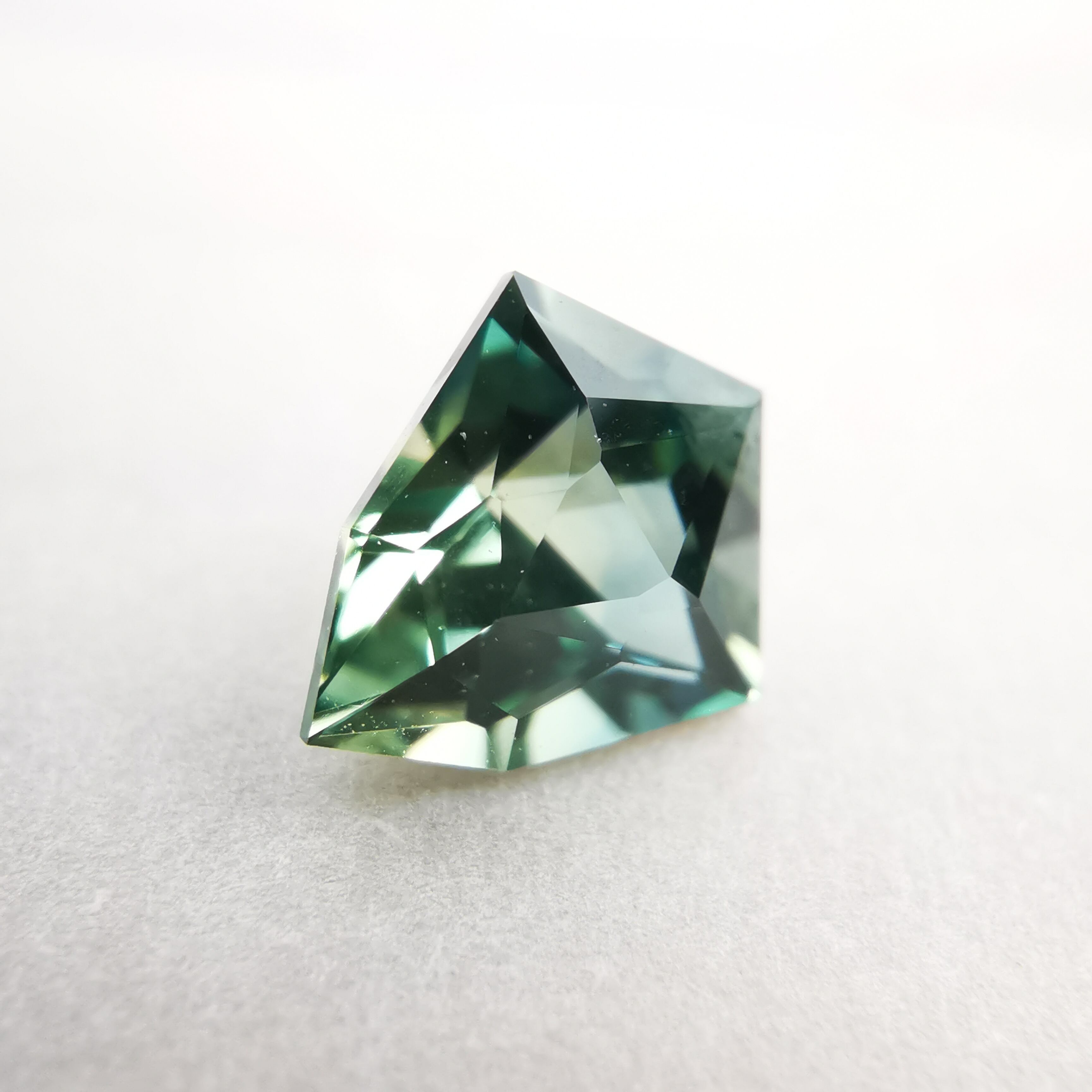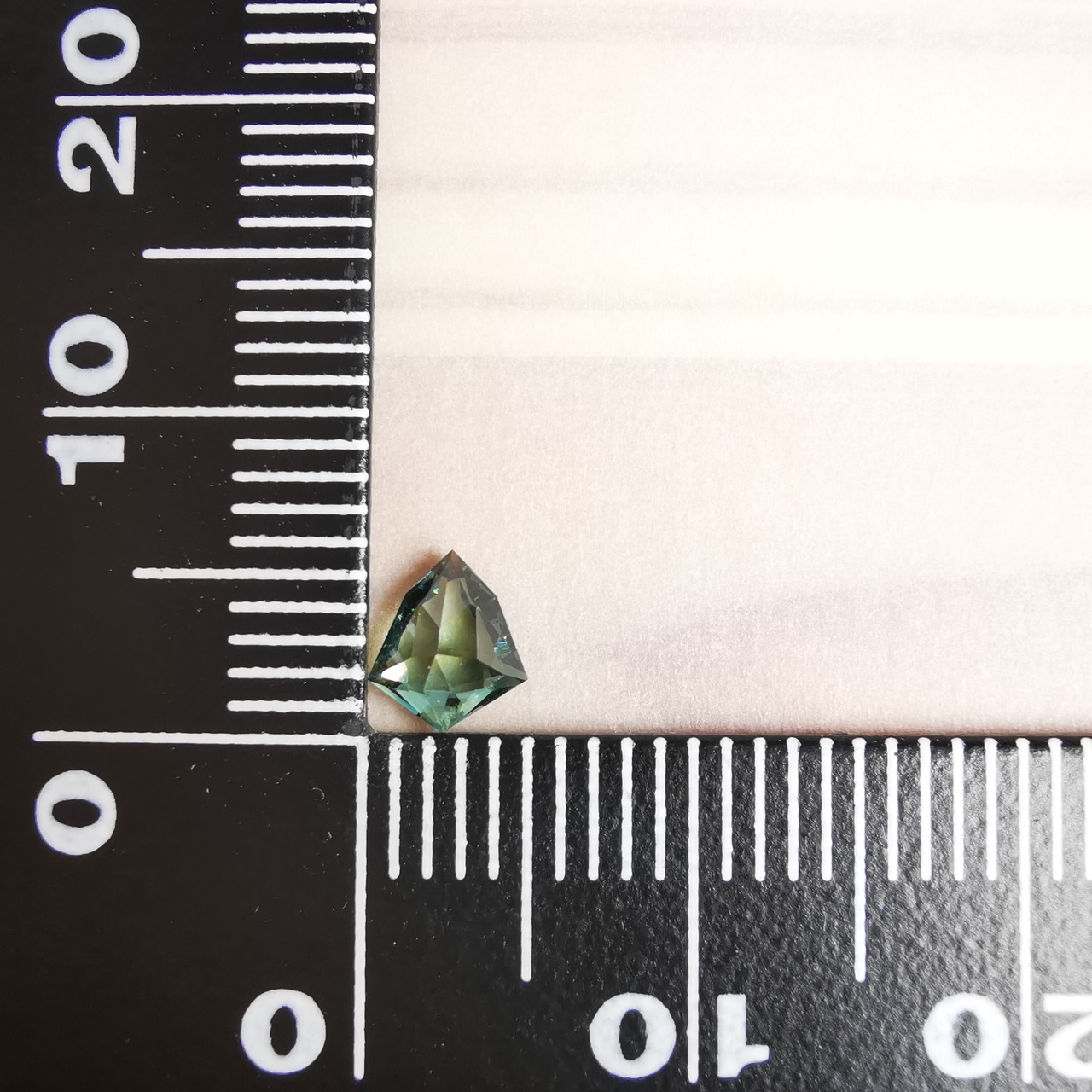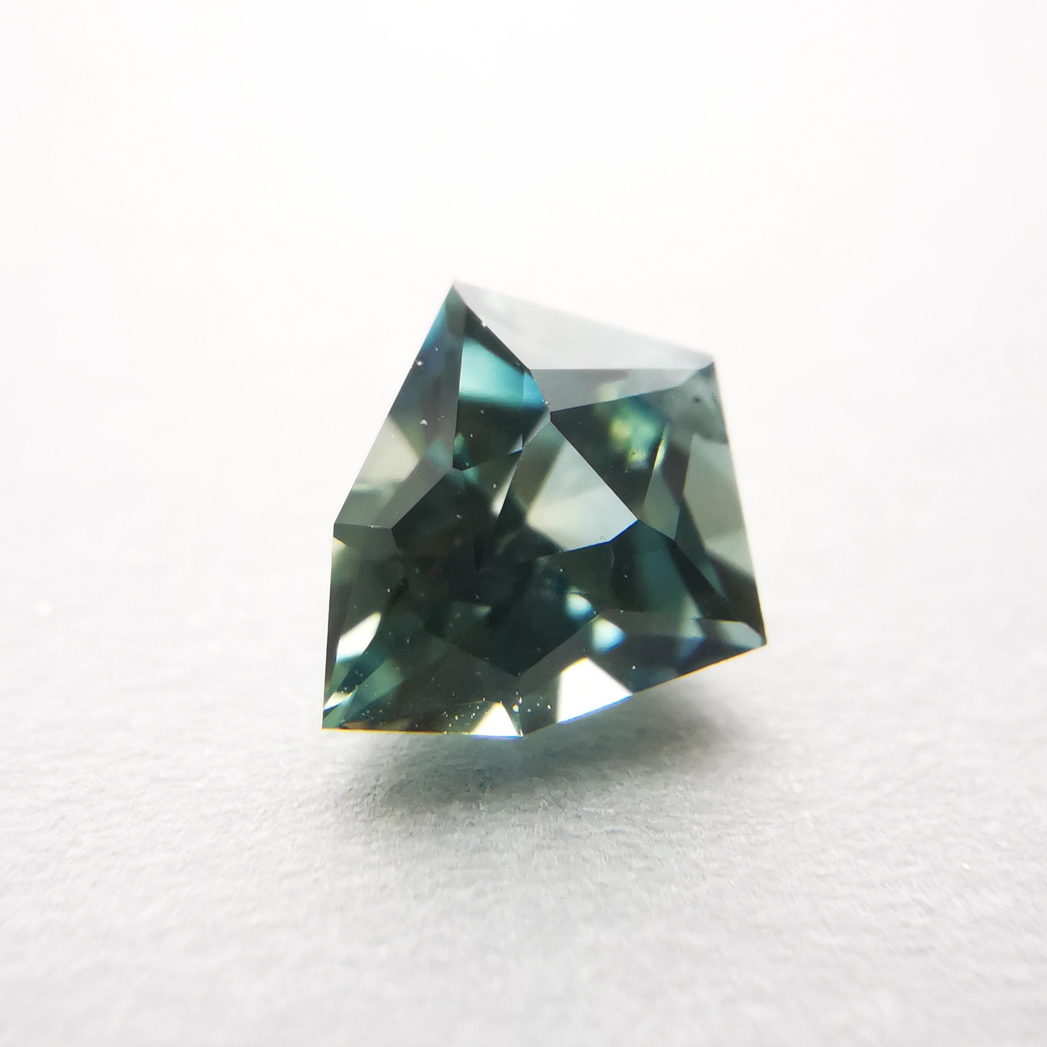 フェイスからはグリーン、傾けるとイエロー、パビリオンからはブルーに見える不思議なサファイアです。