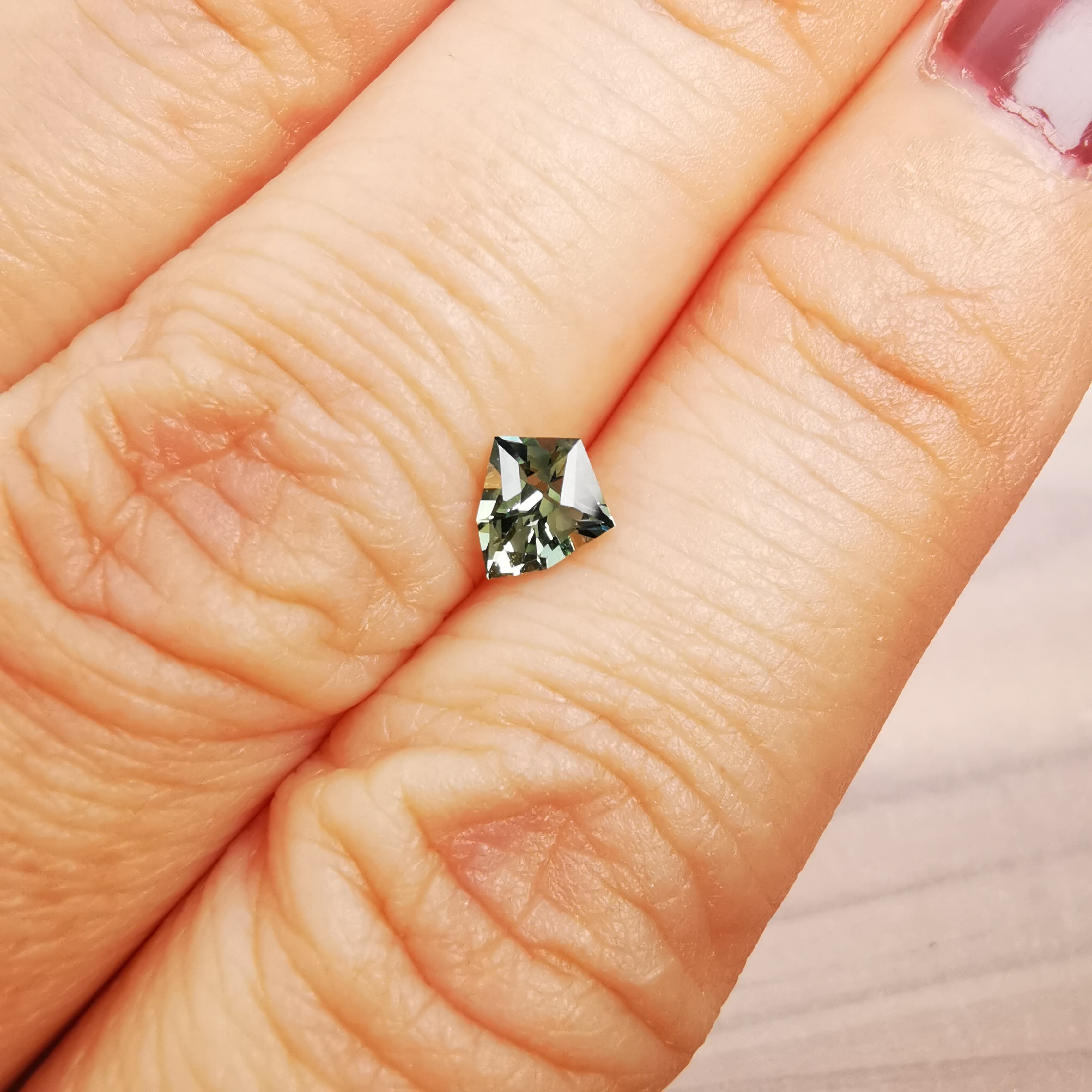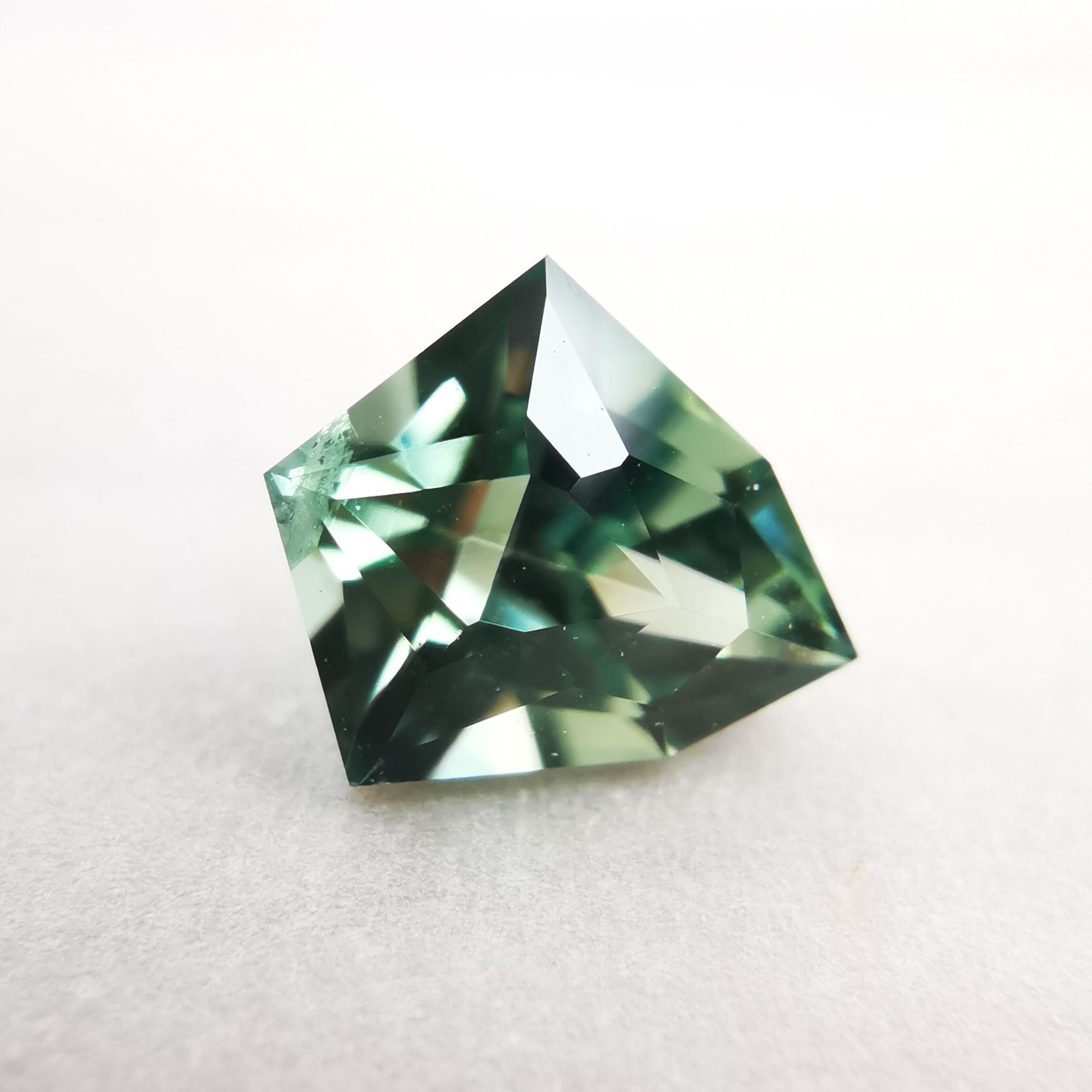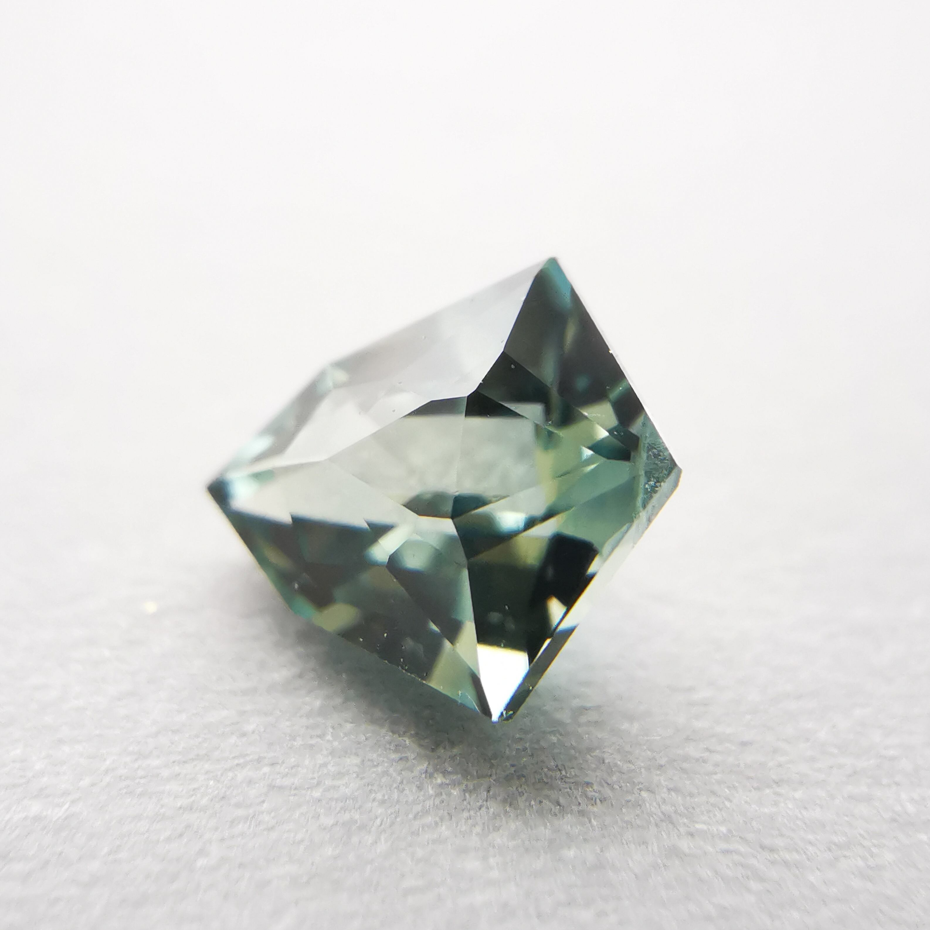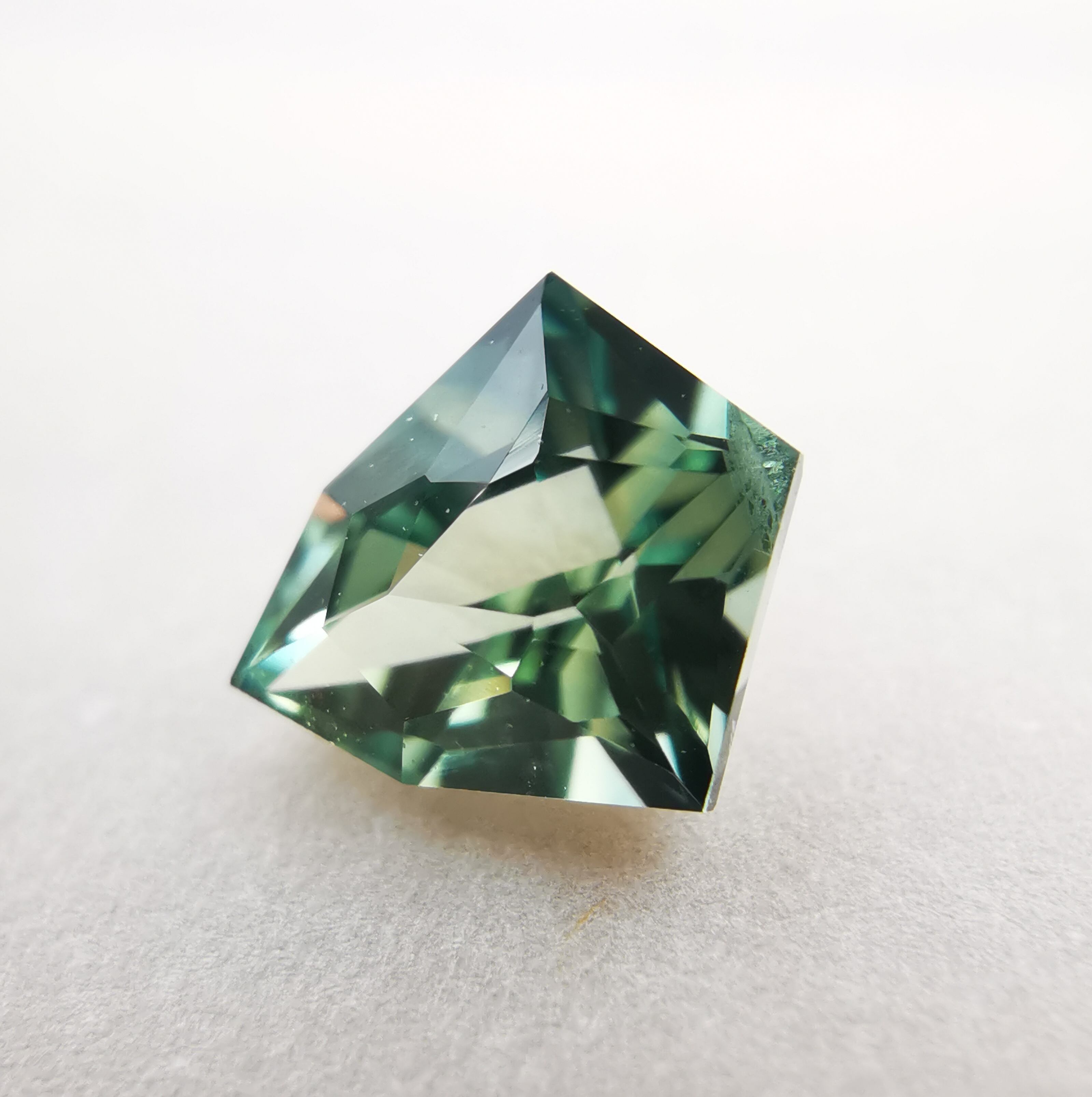 フェイスからはグリーン、傾けるとイエロー、パビリオンからはブルーに見える不思議なサファイアです。