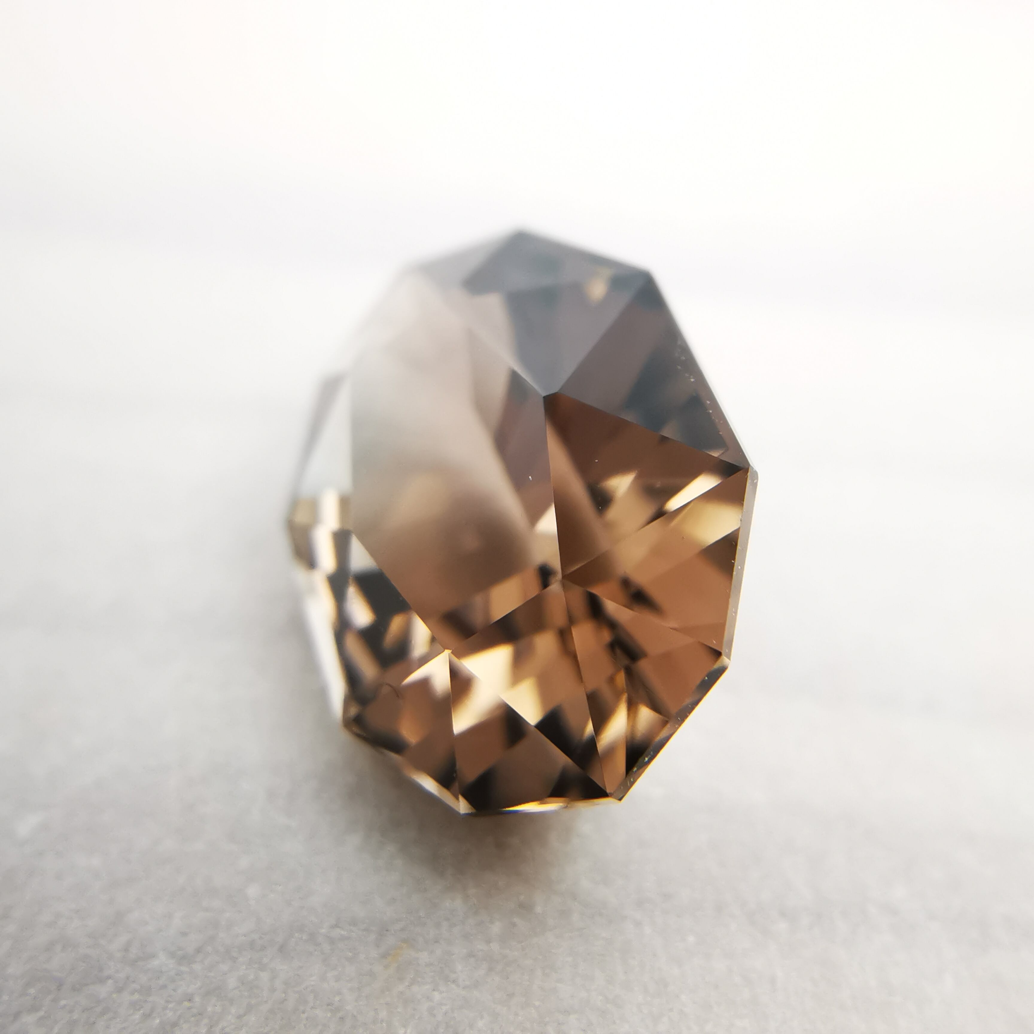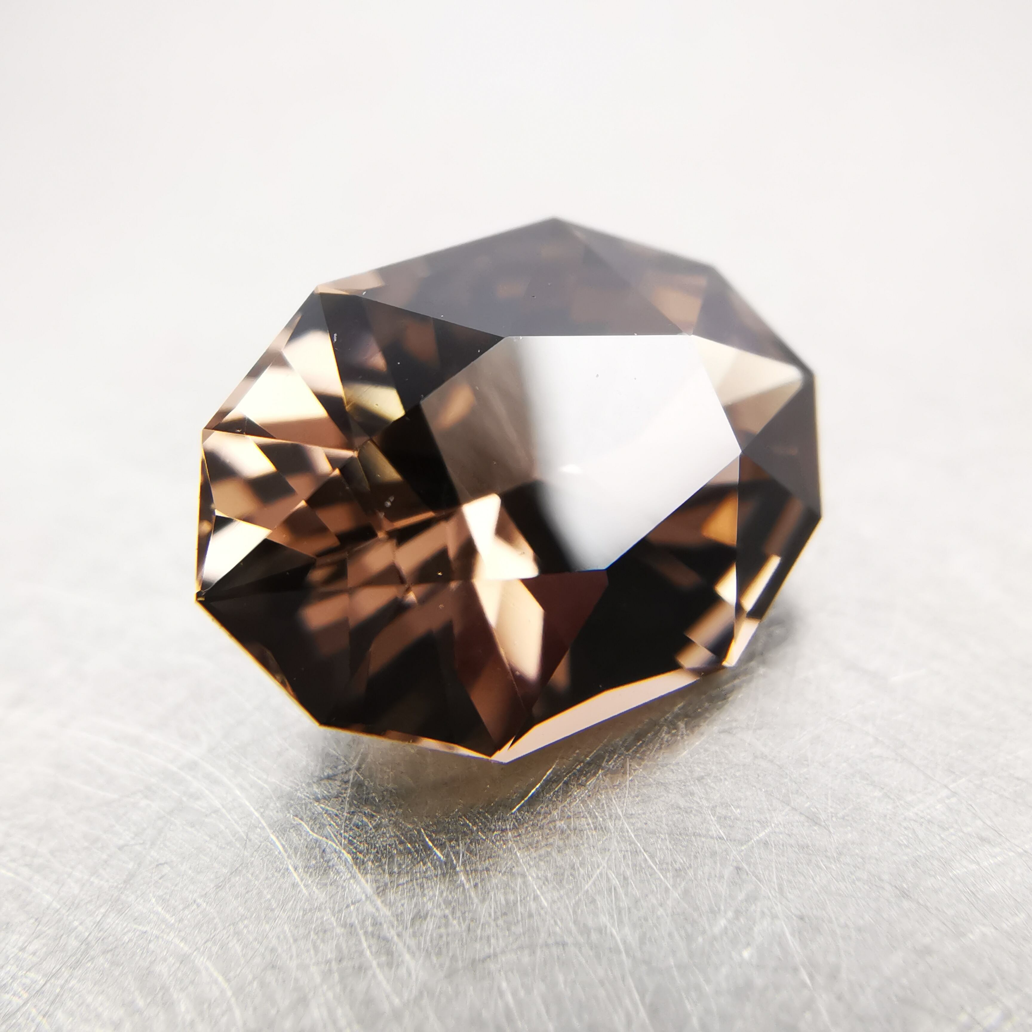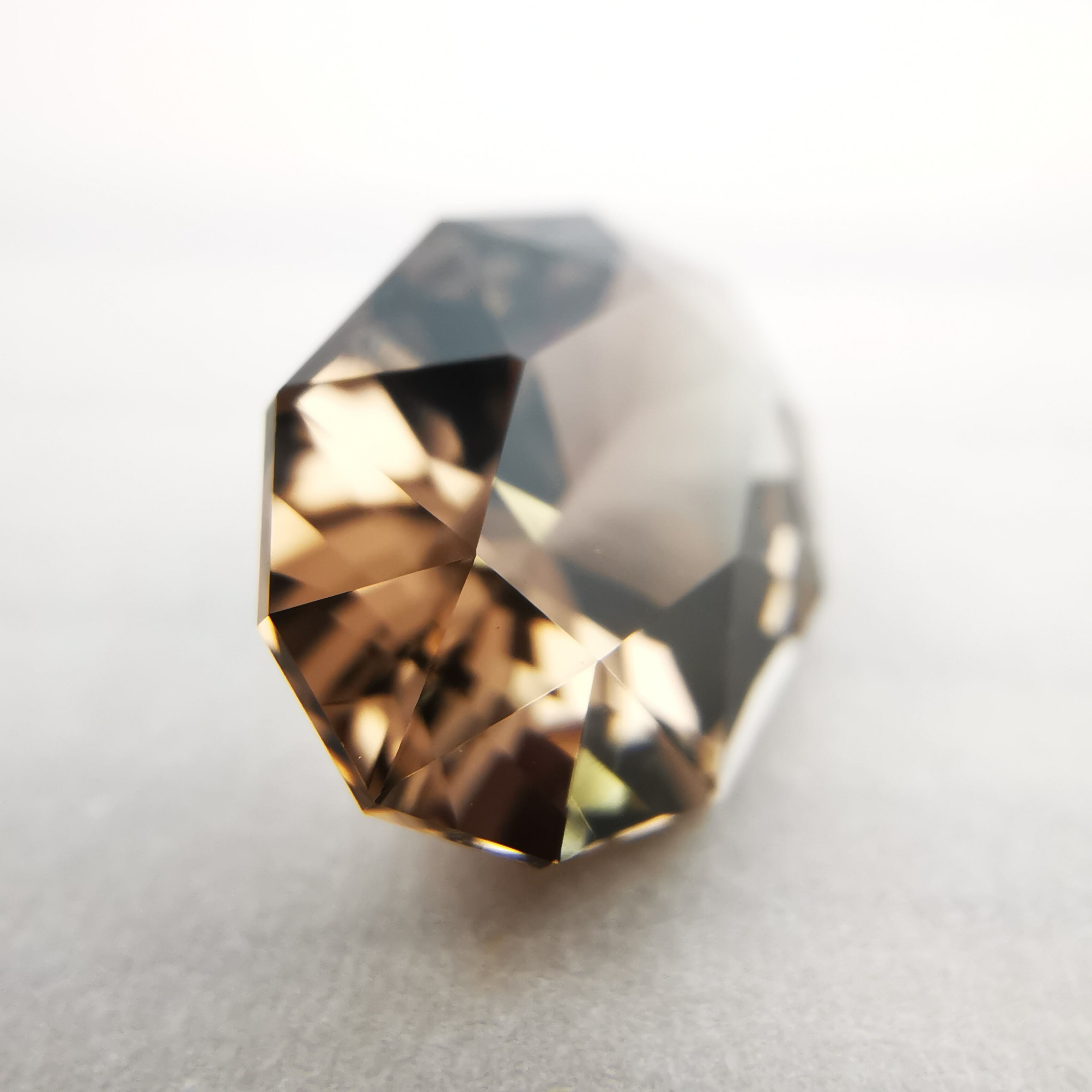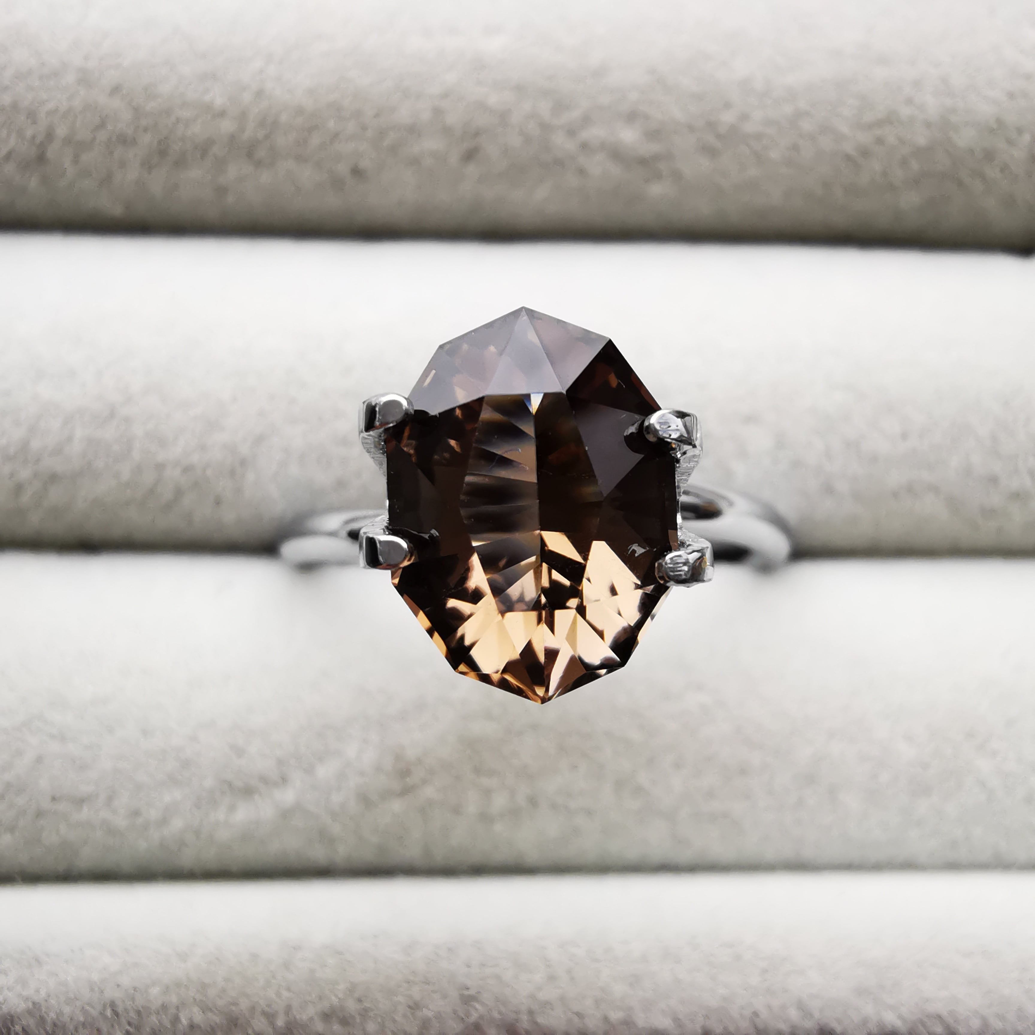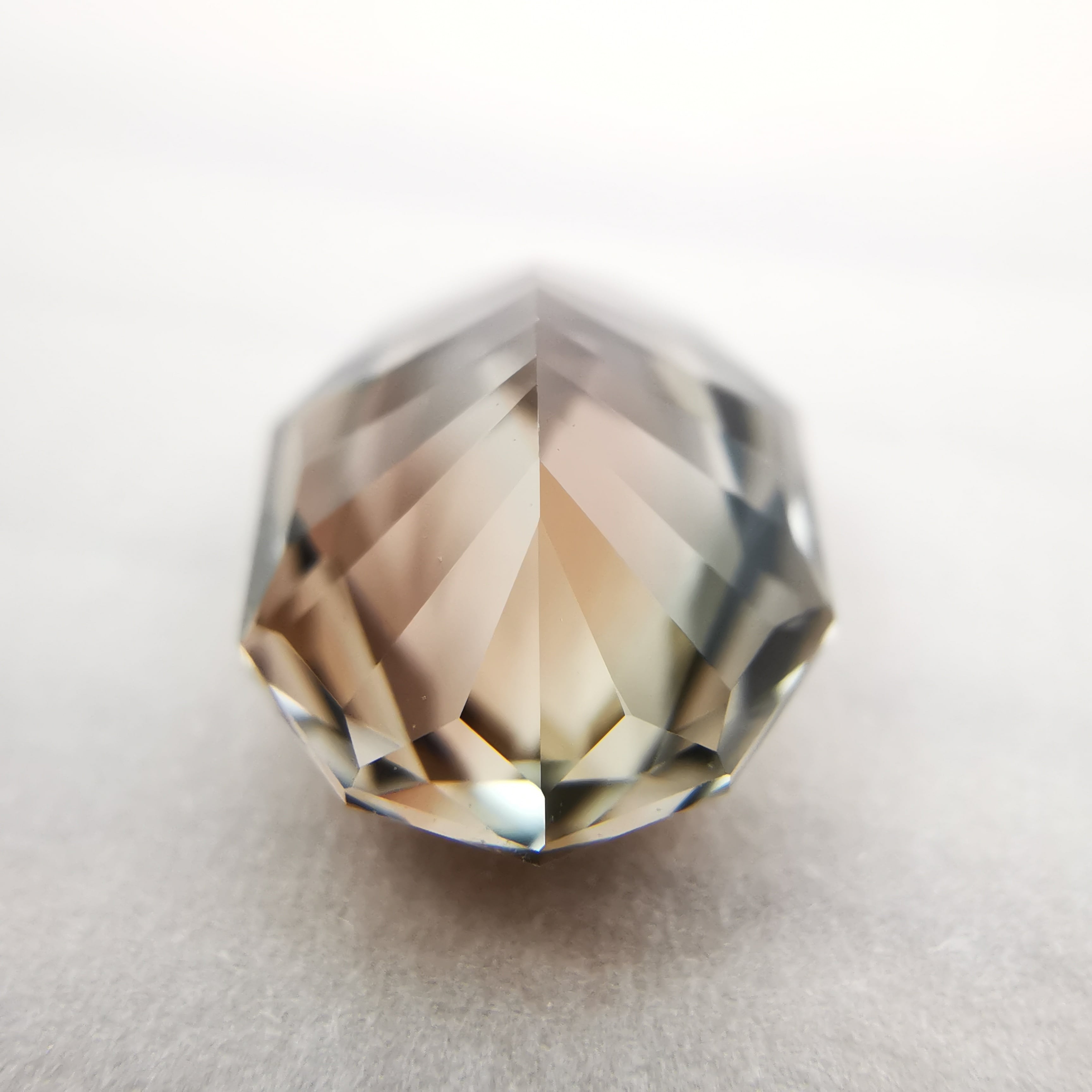指に乗せたとき、リングホルダーに挟んだとき、パビリオンのカットによる複雑な輝きとカラーが、美しく沸き上がります。