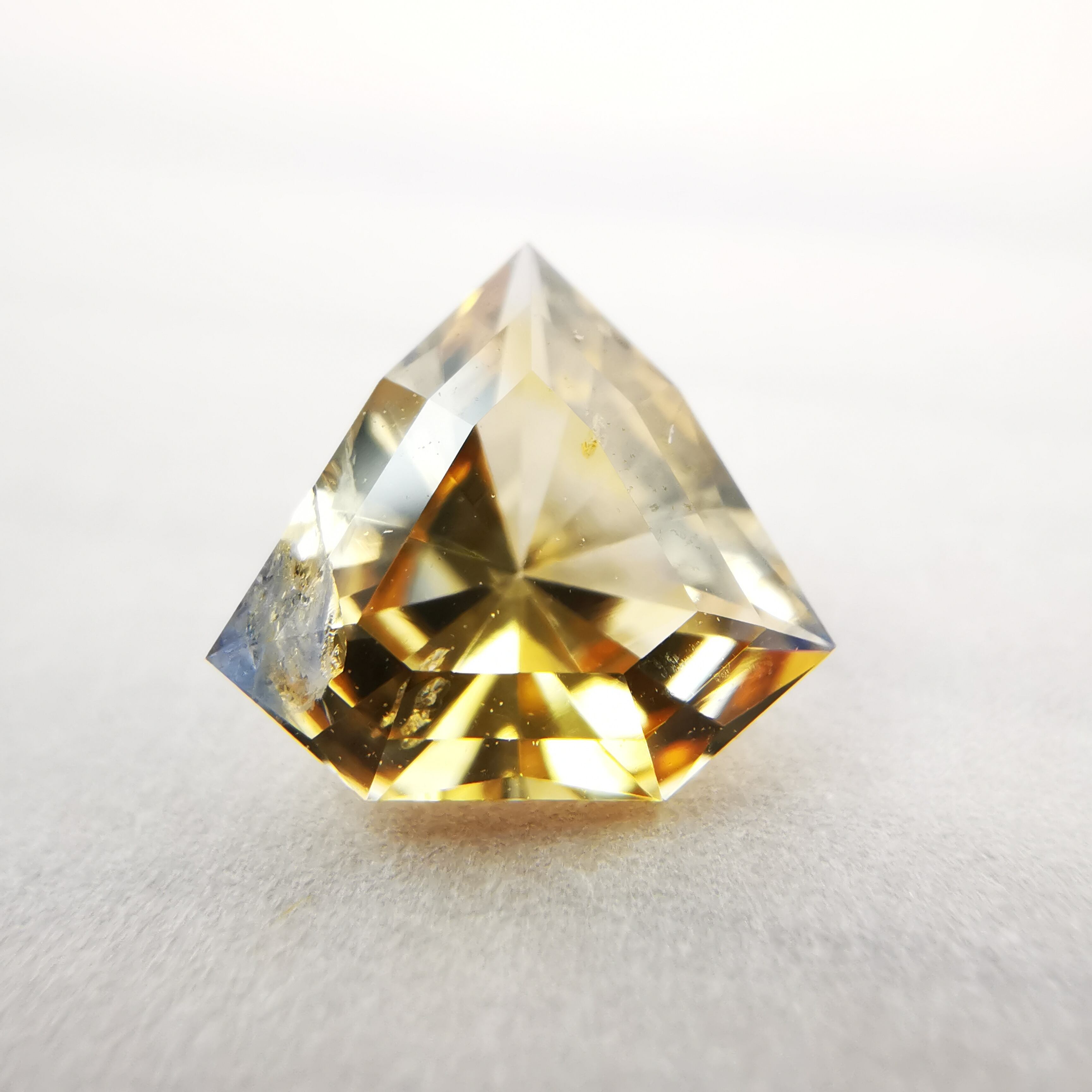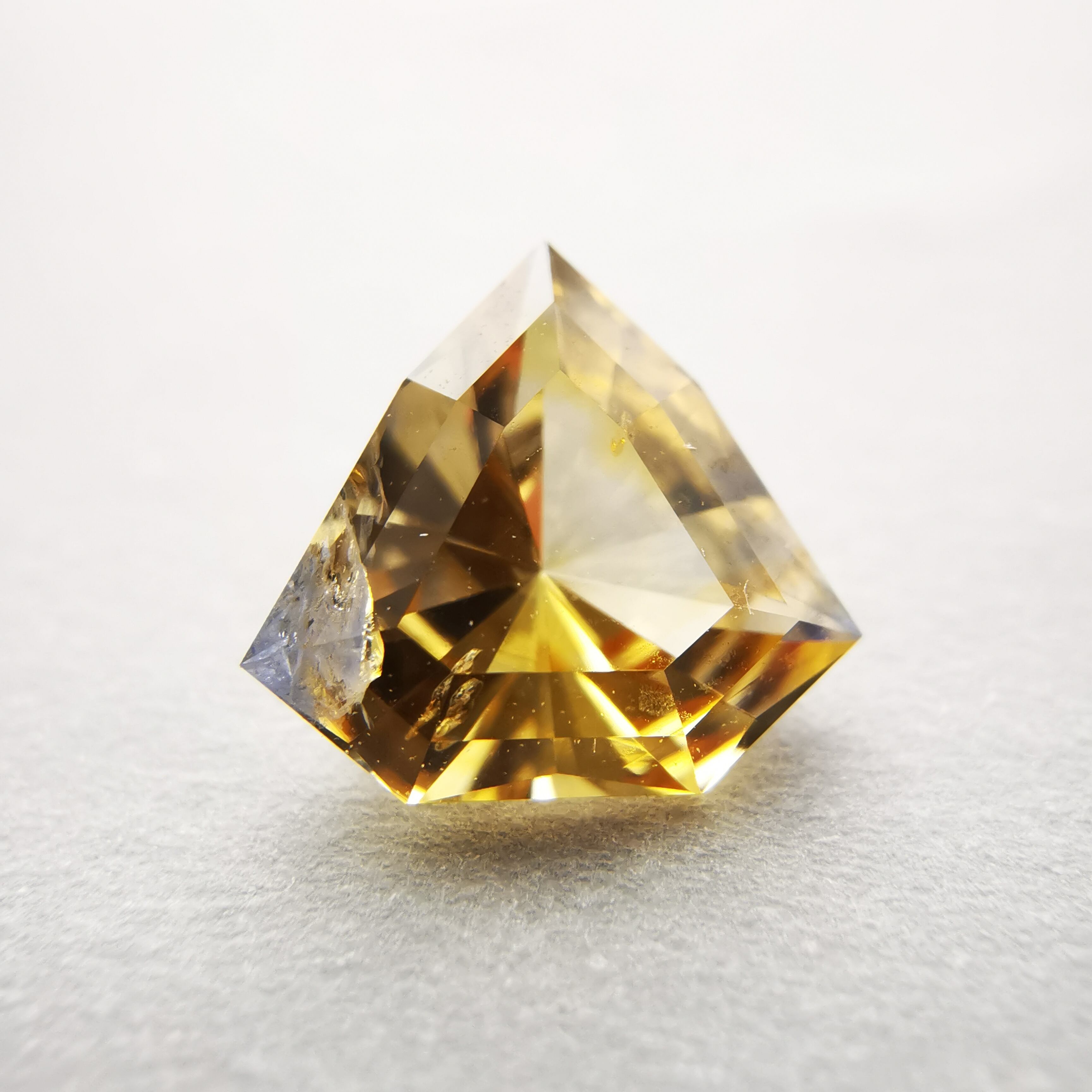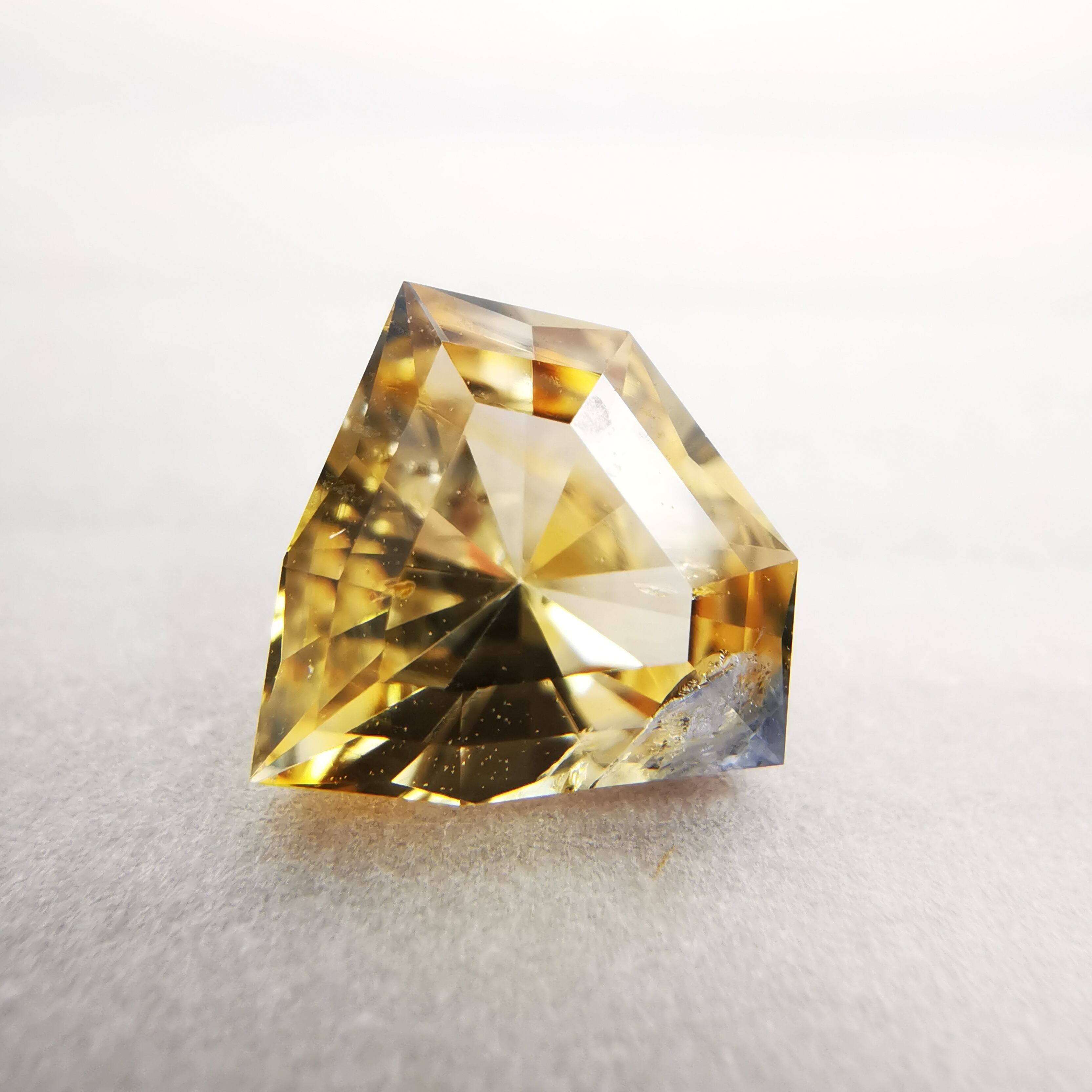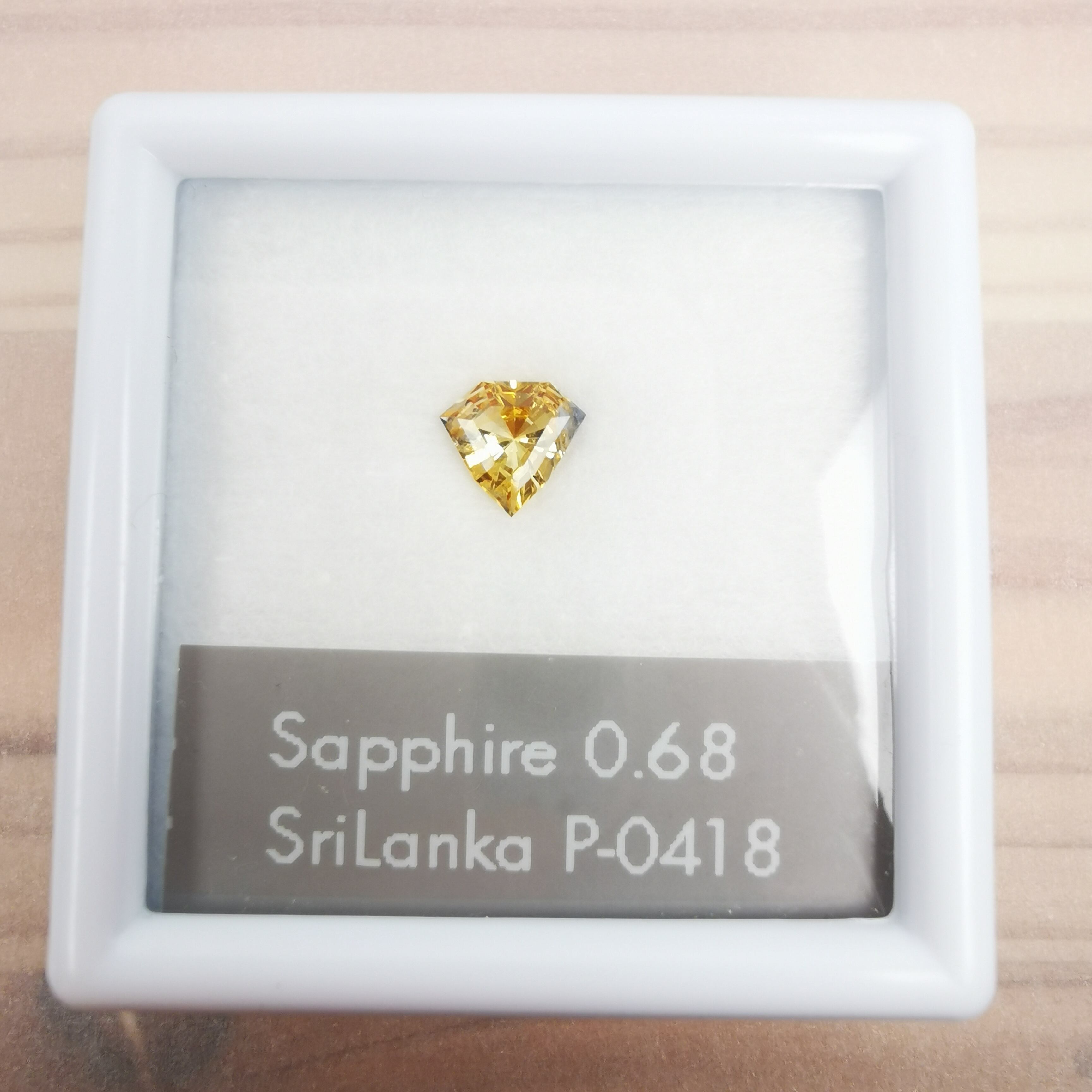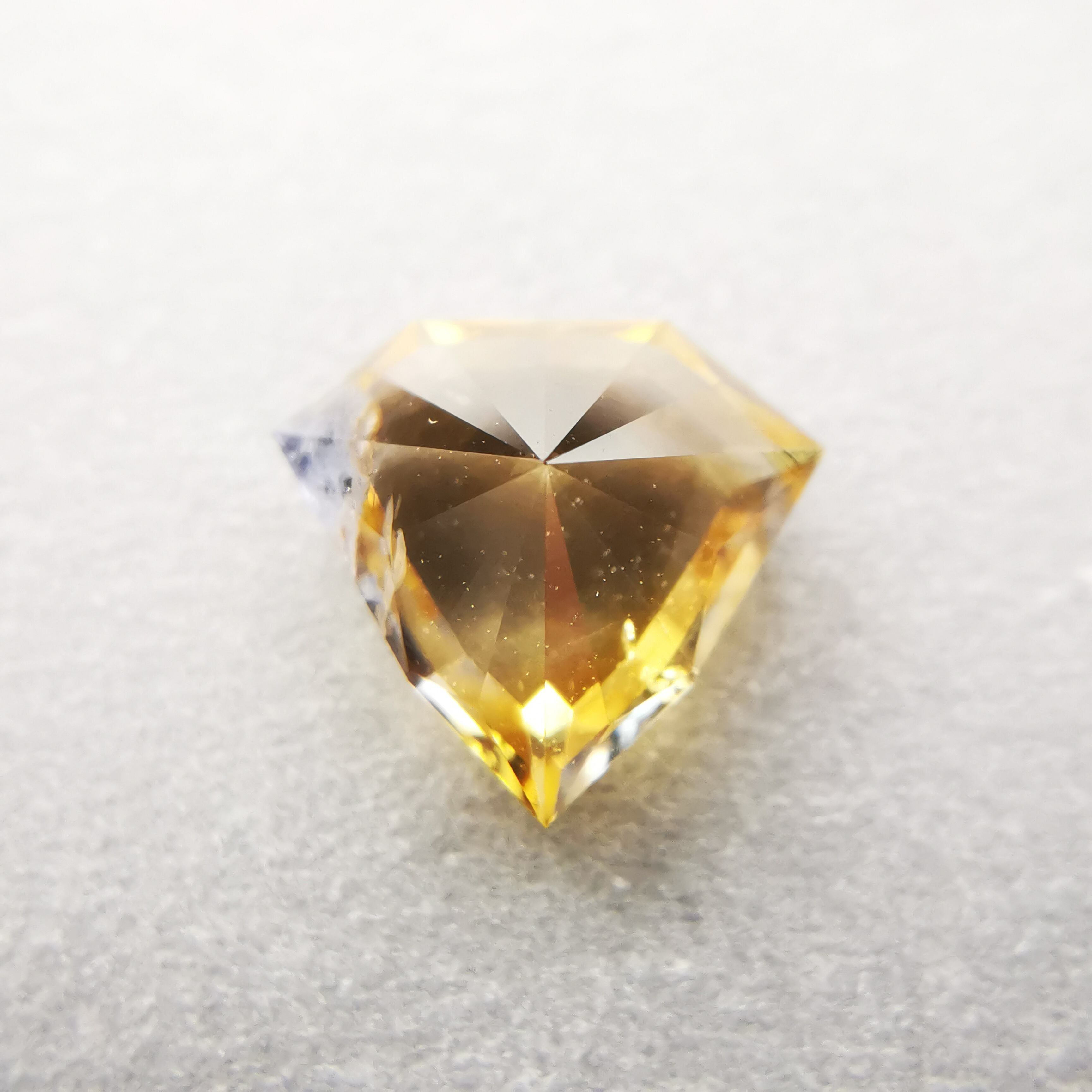見ている人の心まで明るく照らすような色、宝石型のカットが魅力の一石です。
