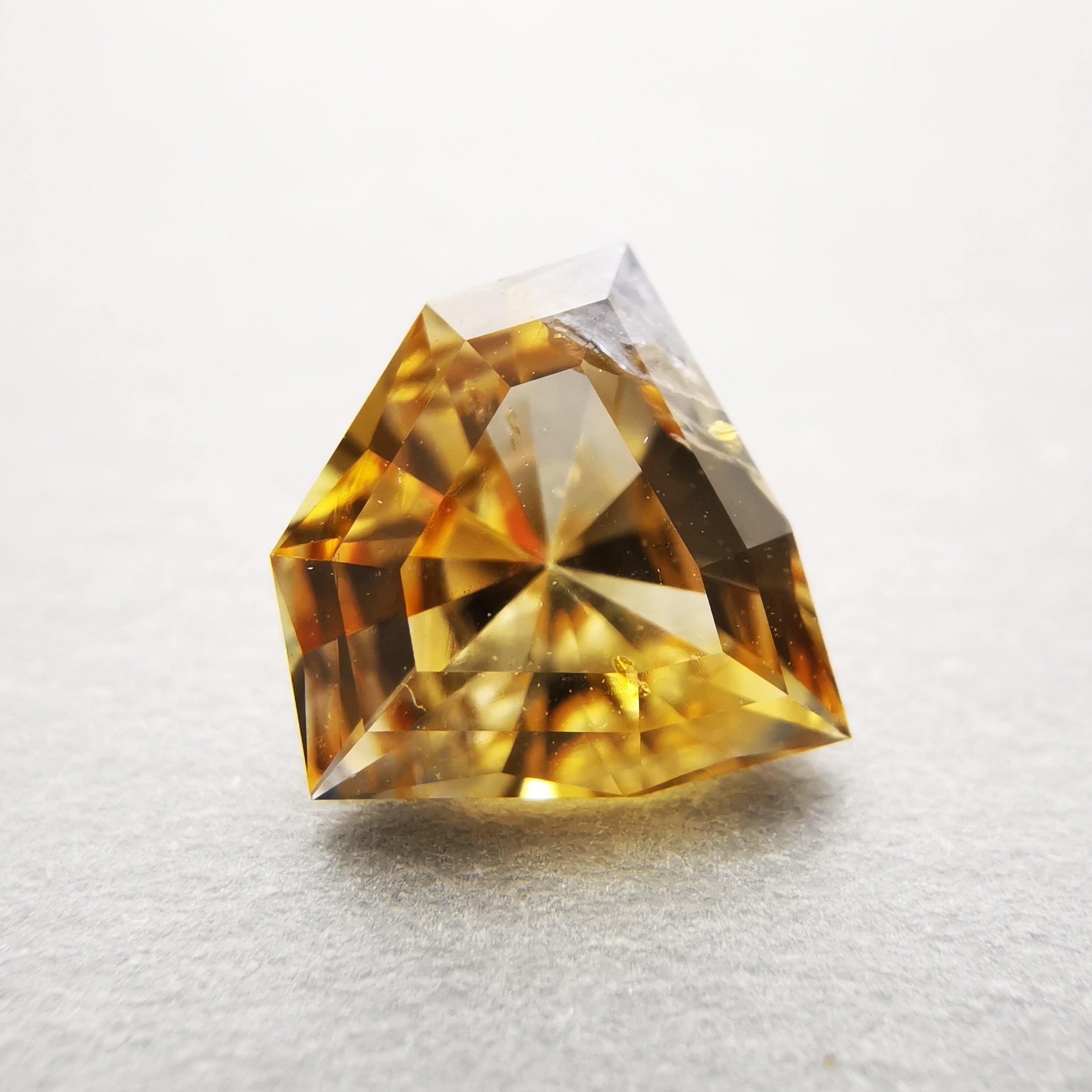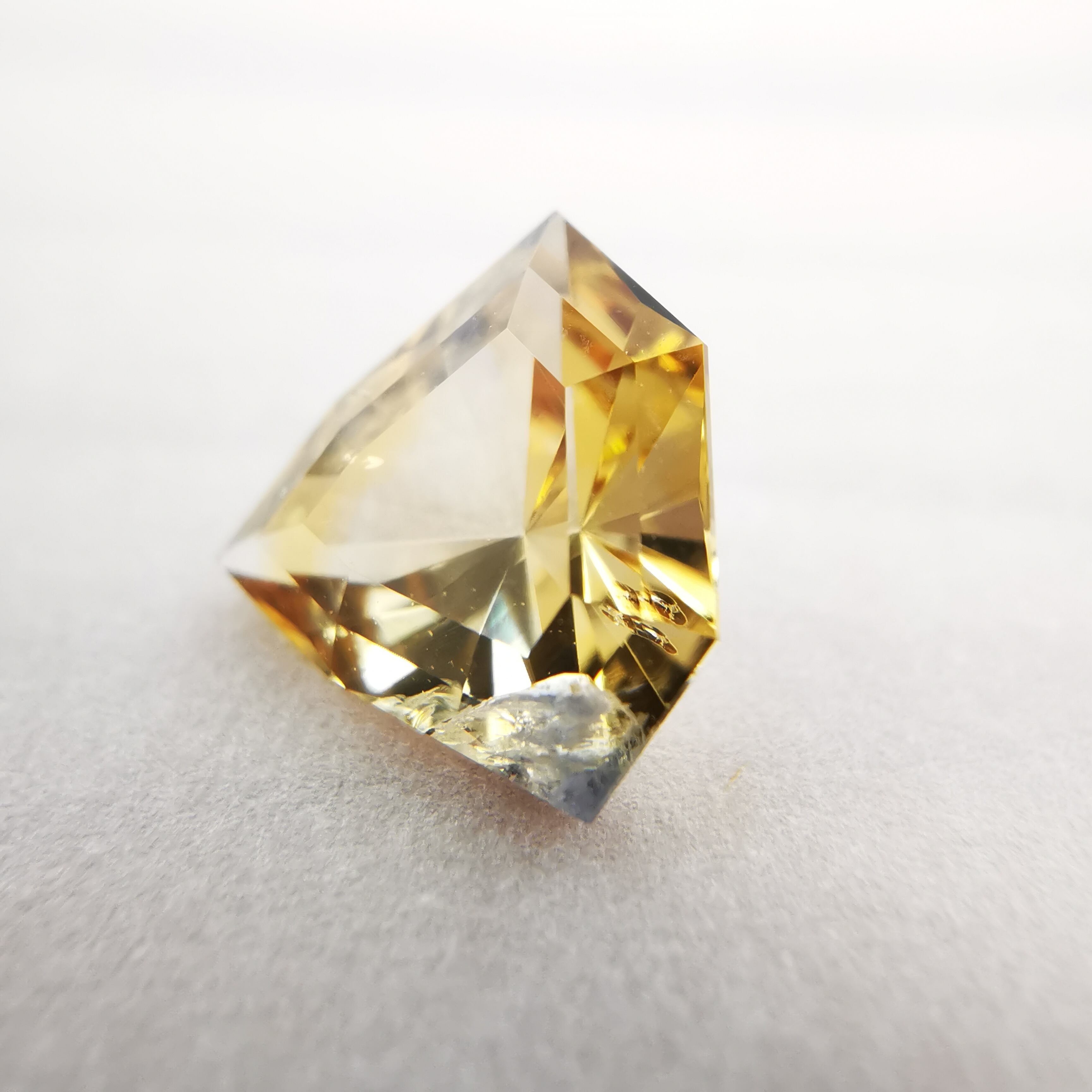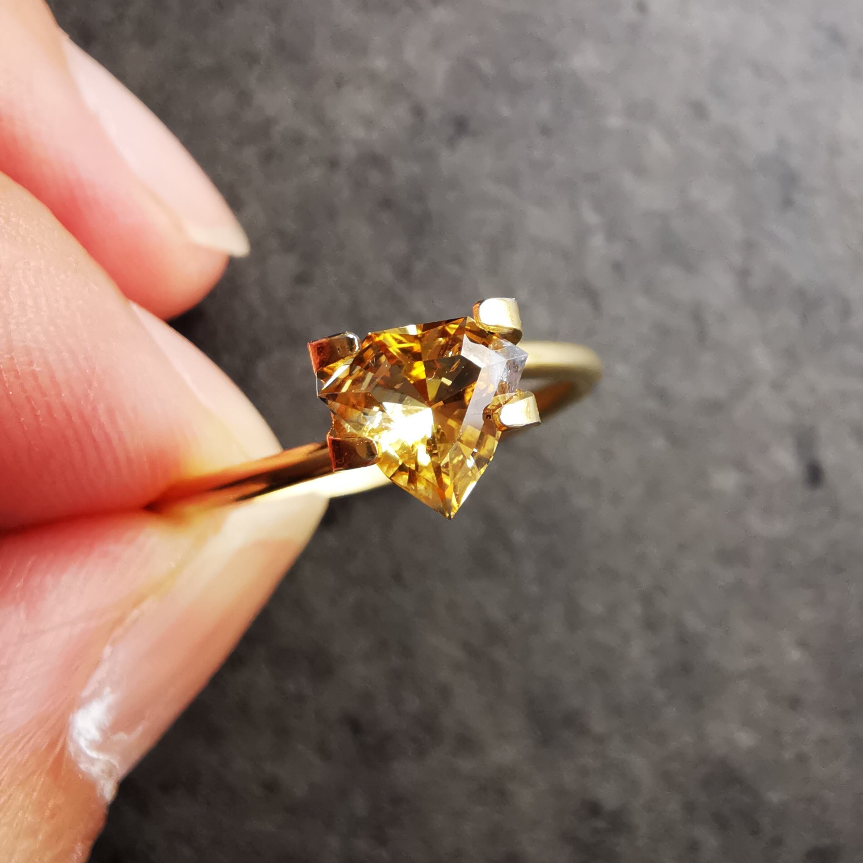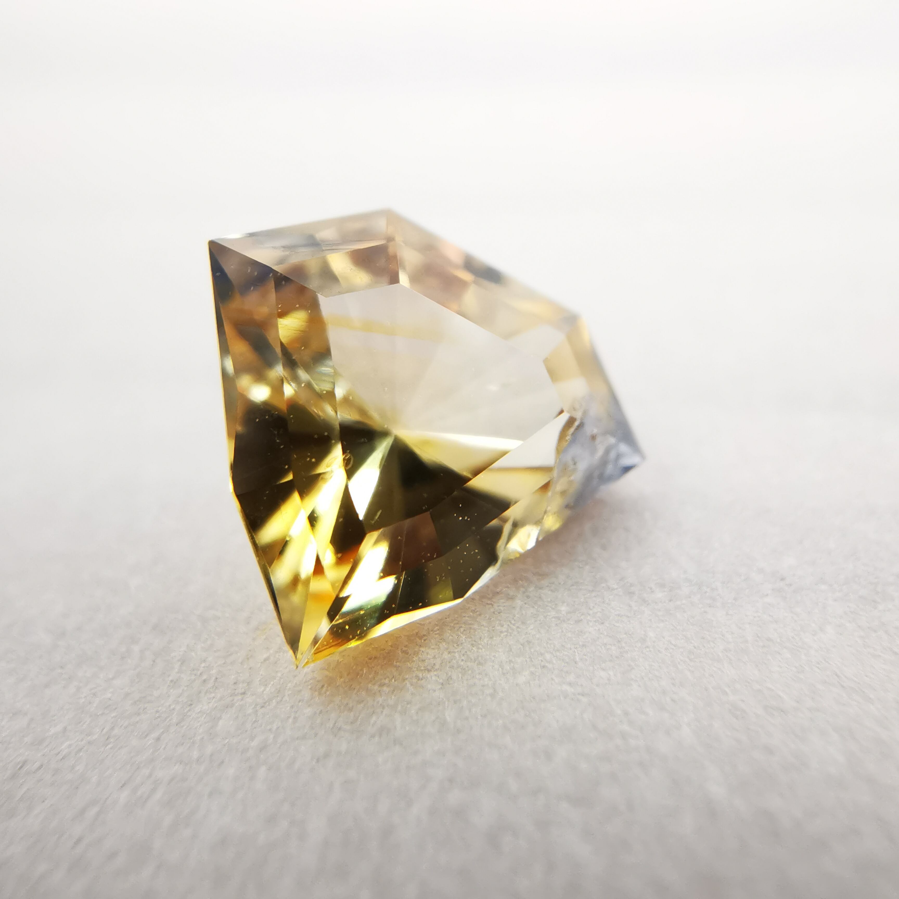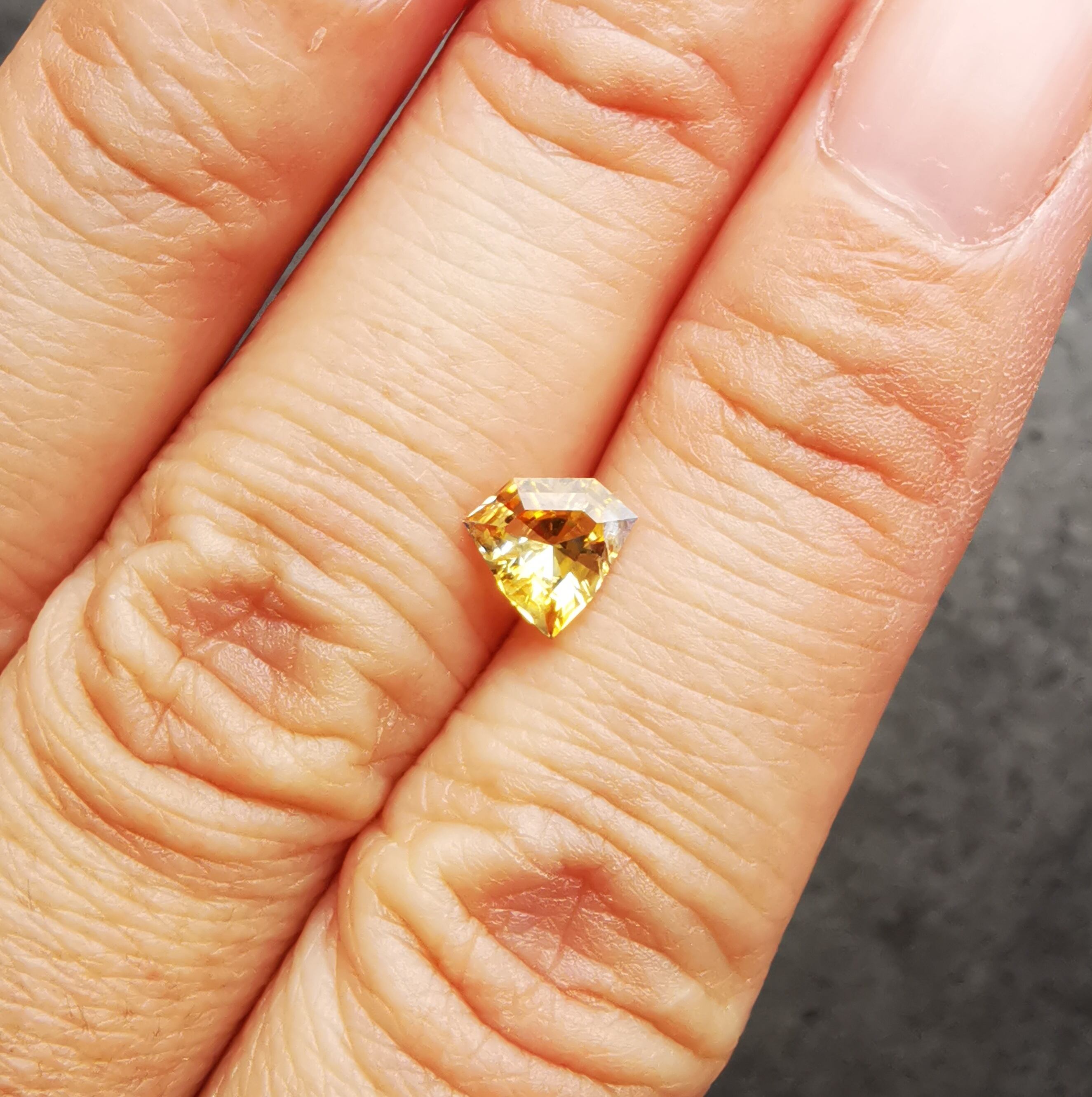 見ている人の心まで明るく照らすような色、宝石型のカットが魅力の一石です。