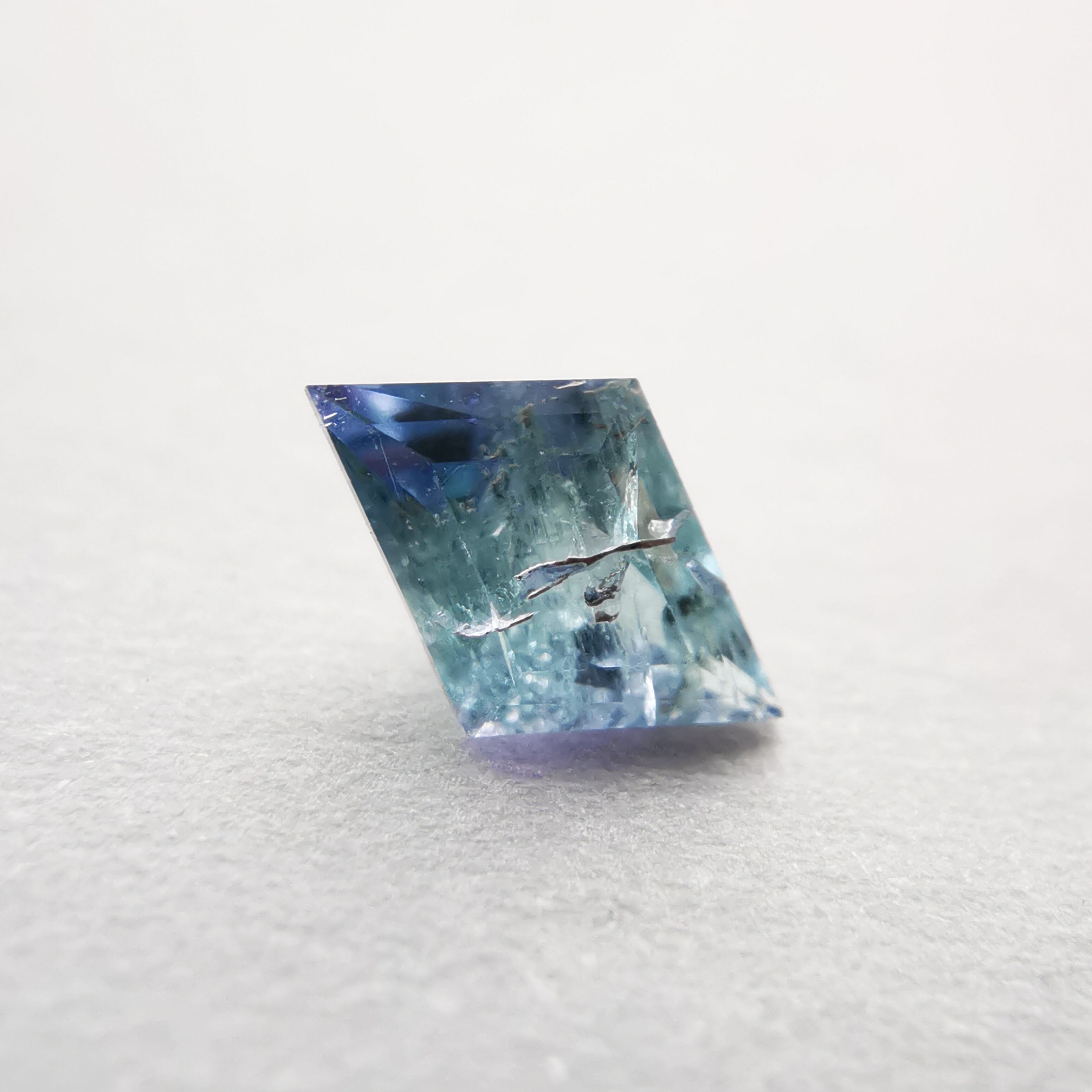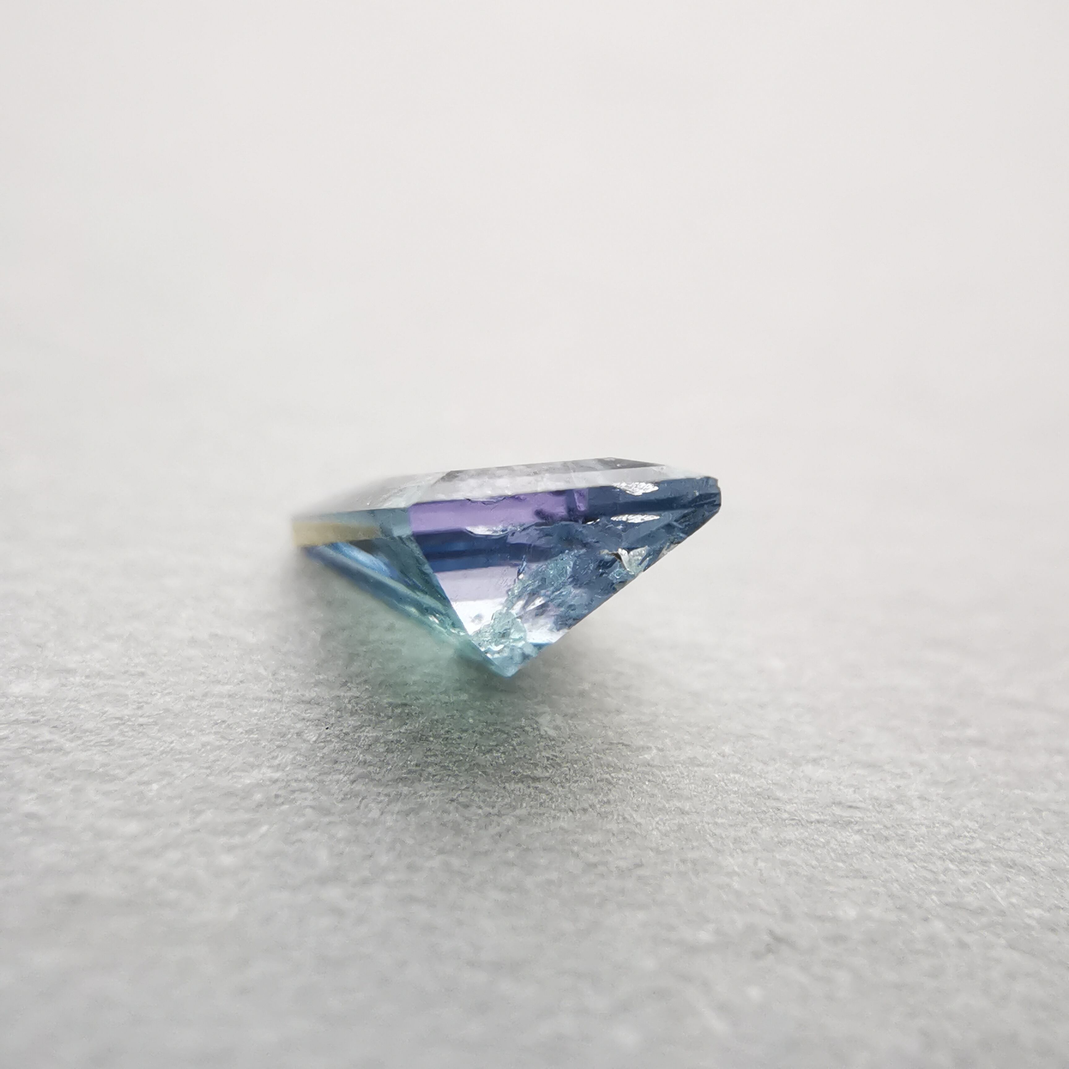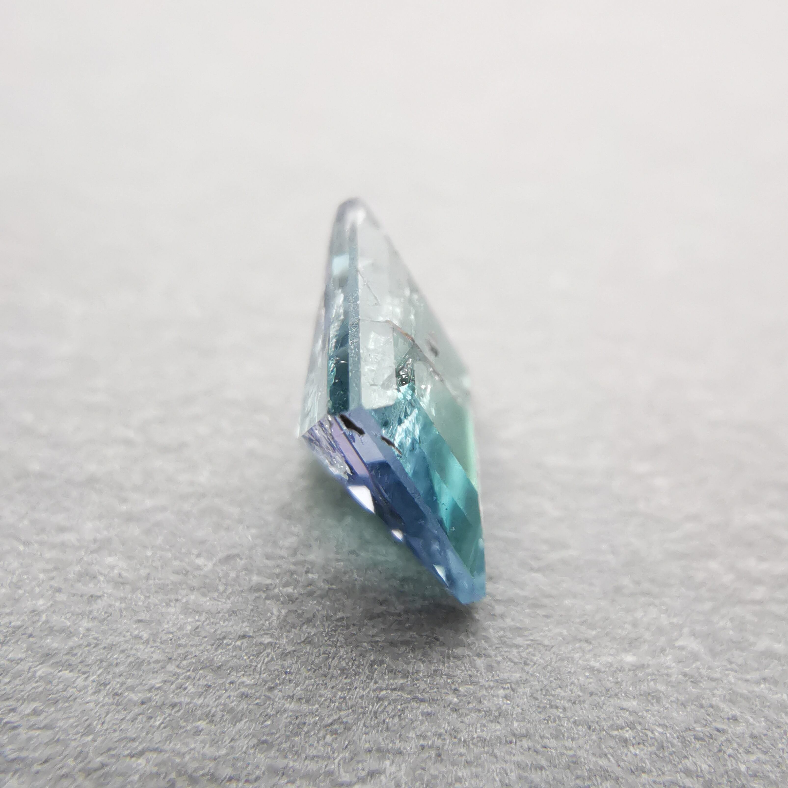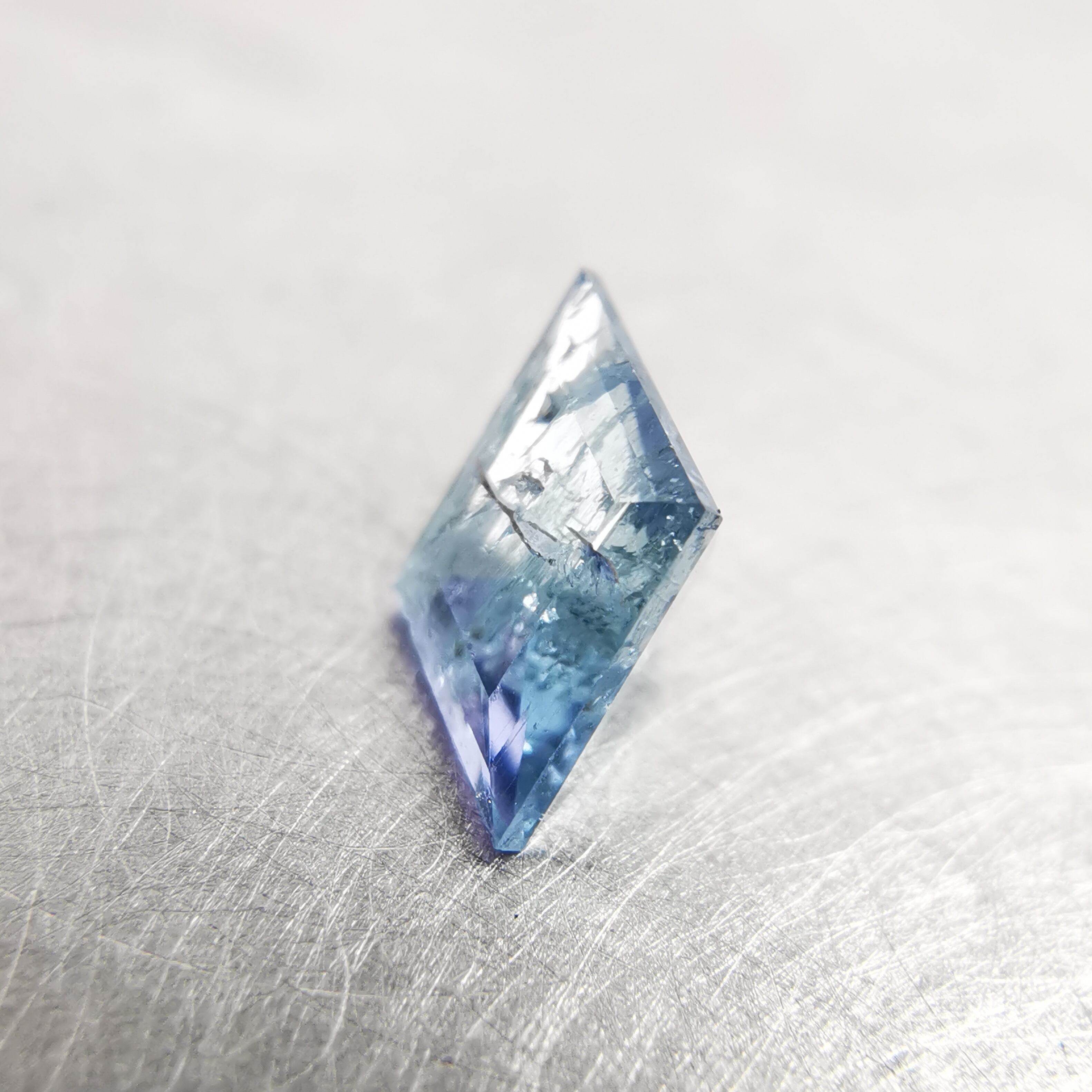 内包物が多く輝きは落ちますが、タンザニア産のコーネルピンにしか見られないブルーとパープルの多色性はしっかりと楽しむことができます。