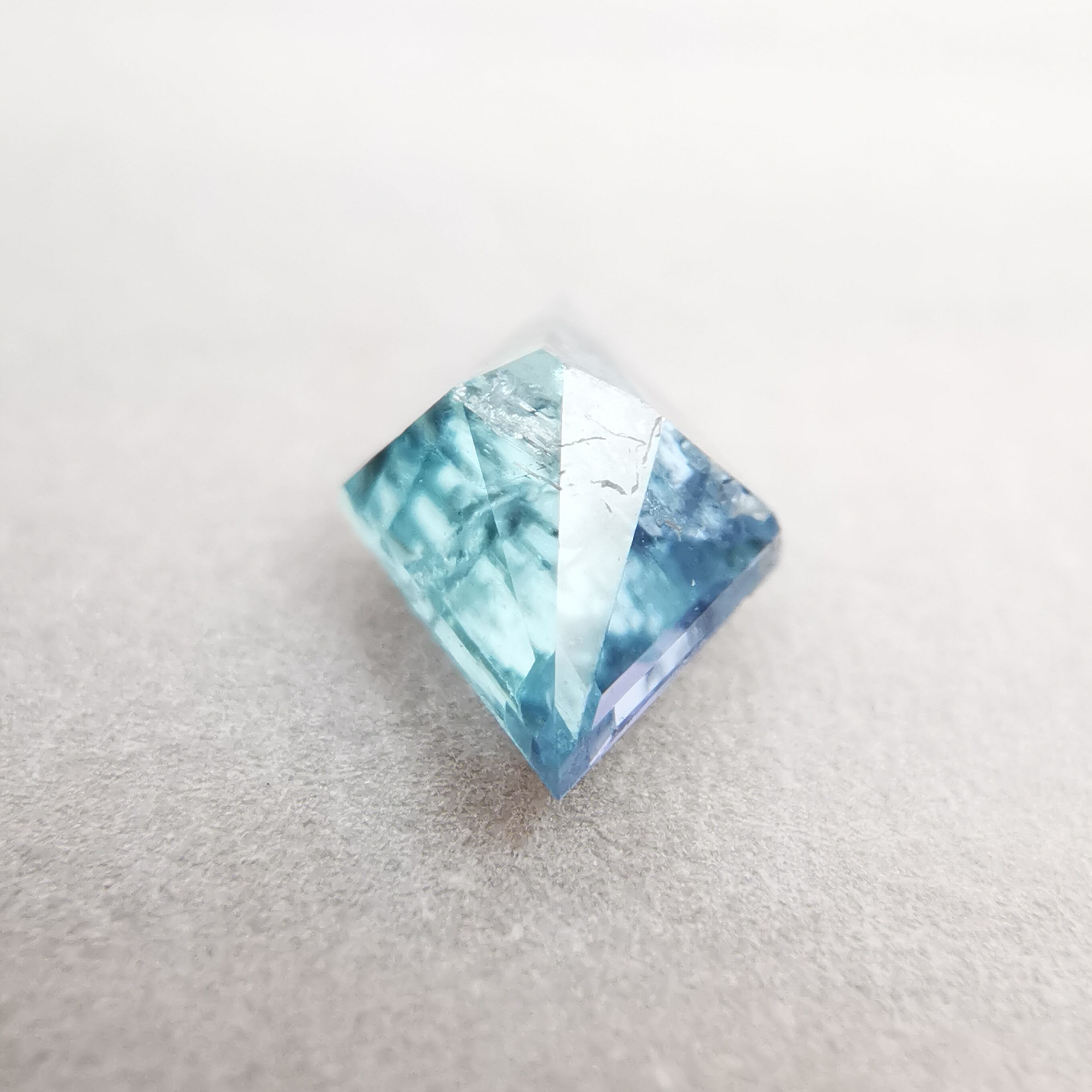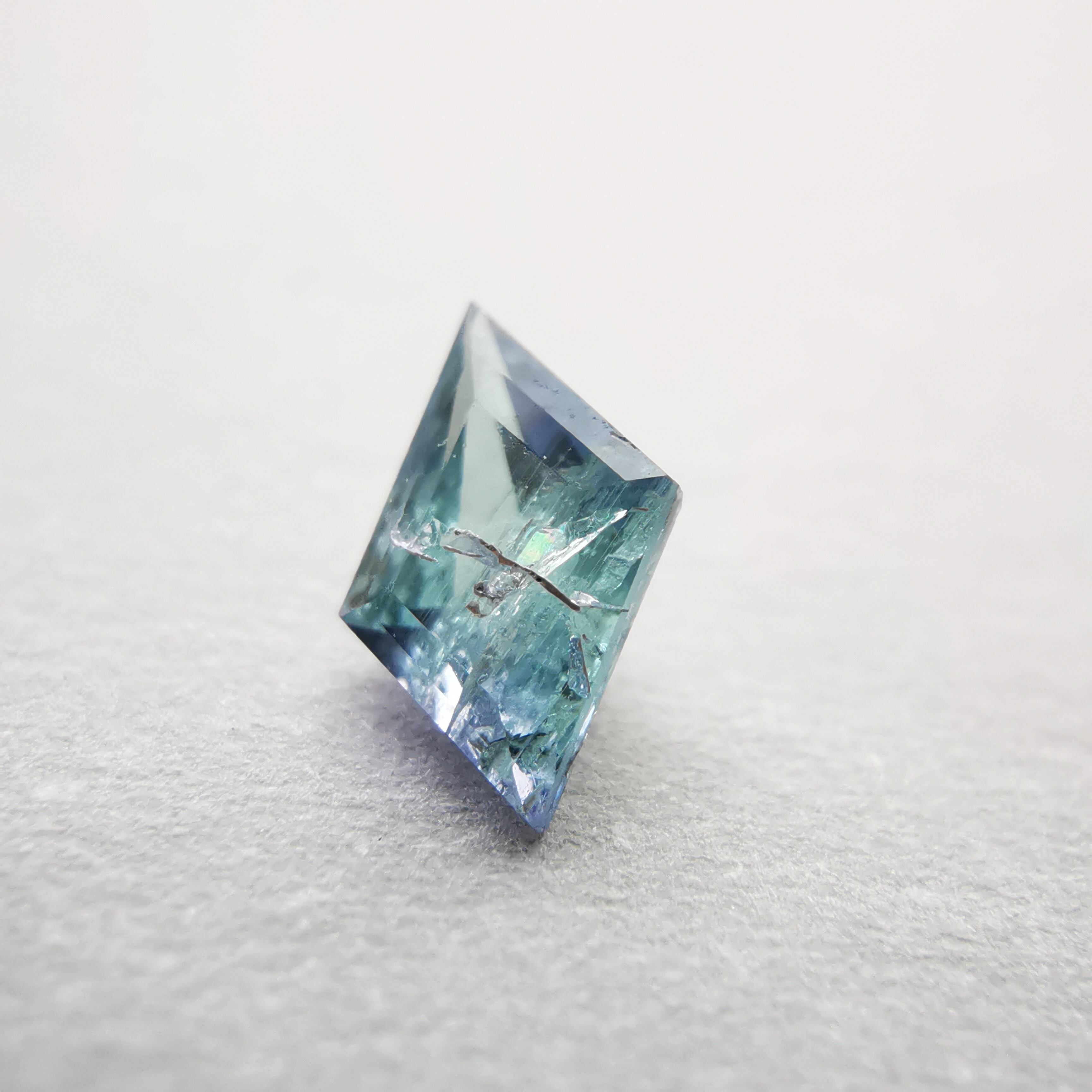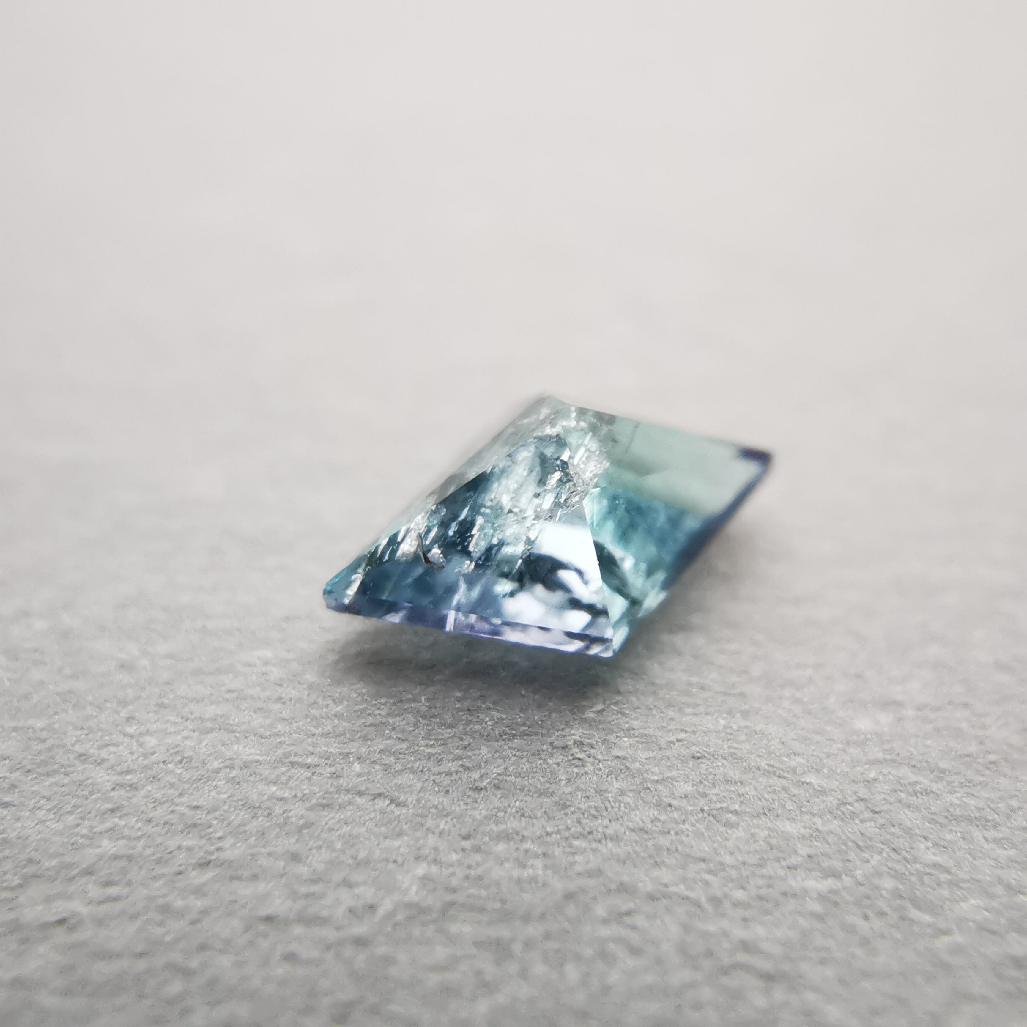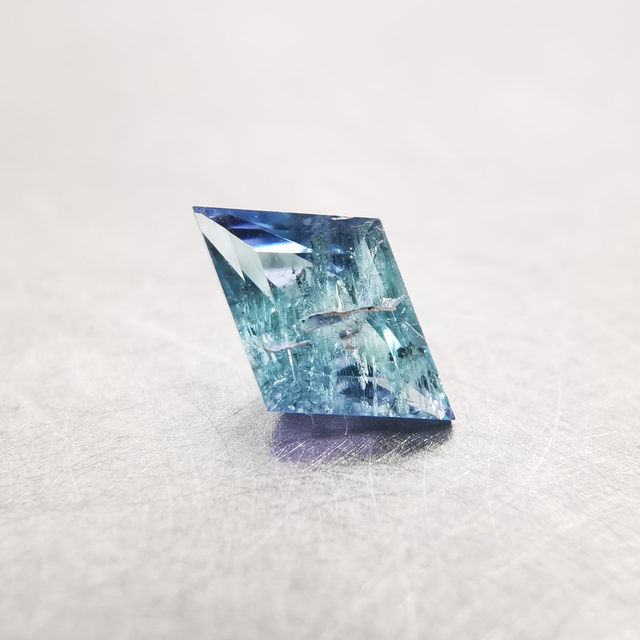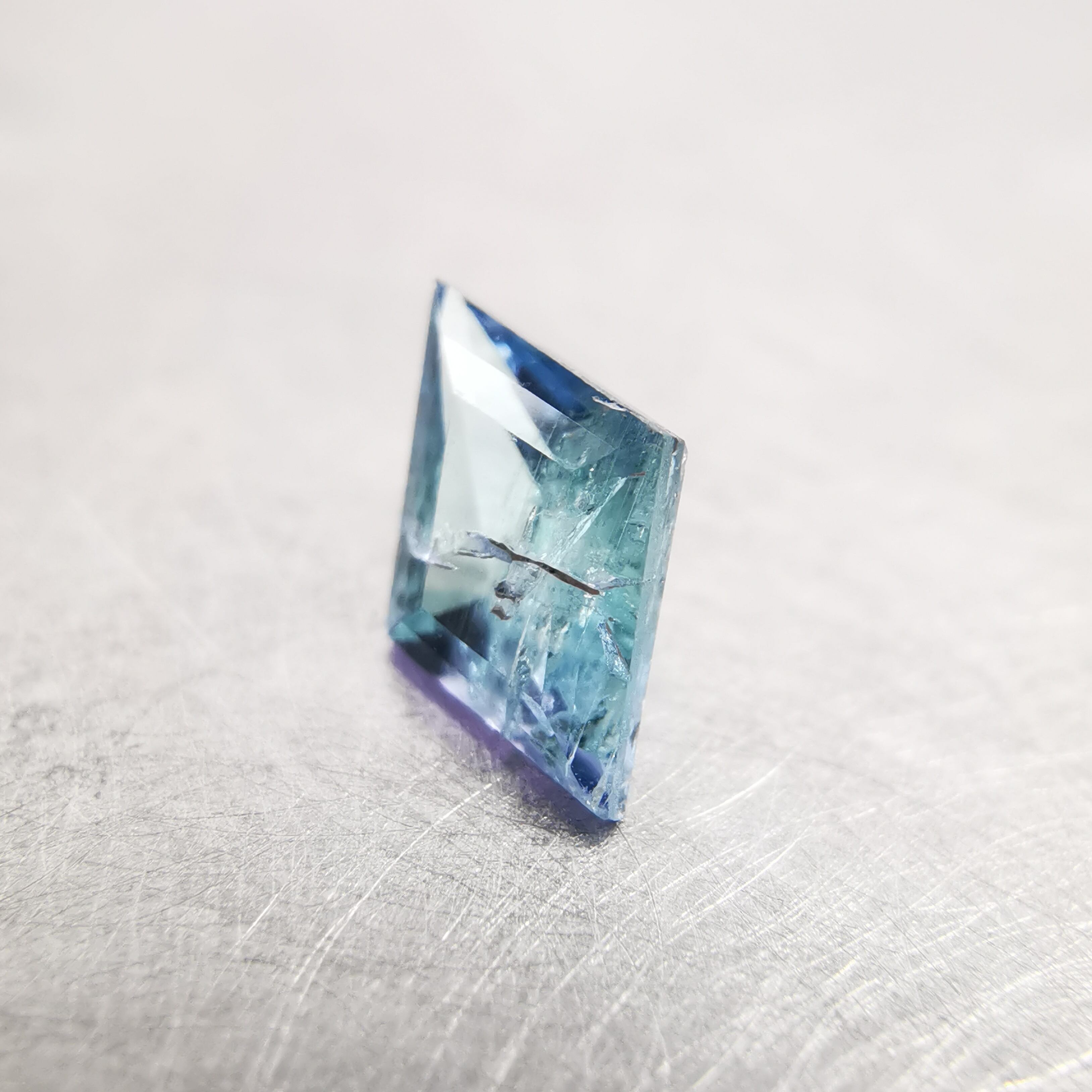 内包物が多く輝きは落ちますが、タンザニア産のコーネルピンにしか見られないブルーとパープルの多色性はしっかりと楽しむことができます。