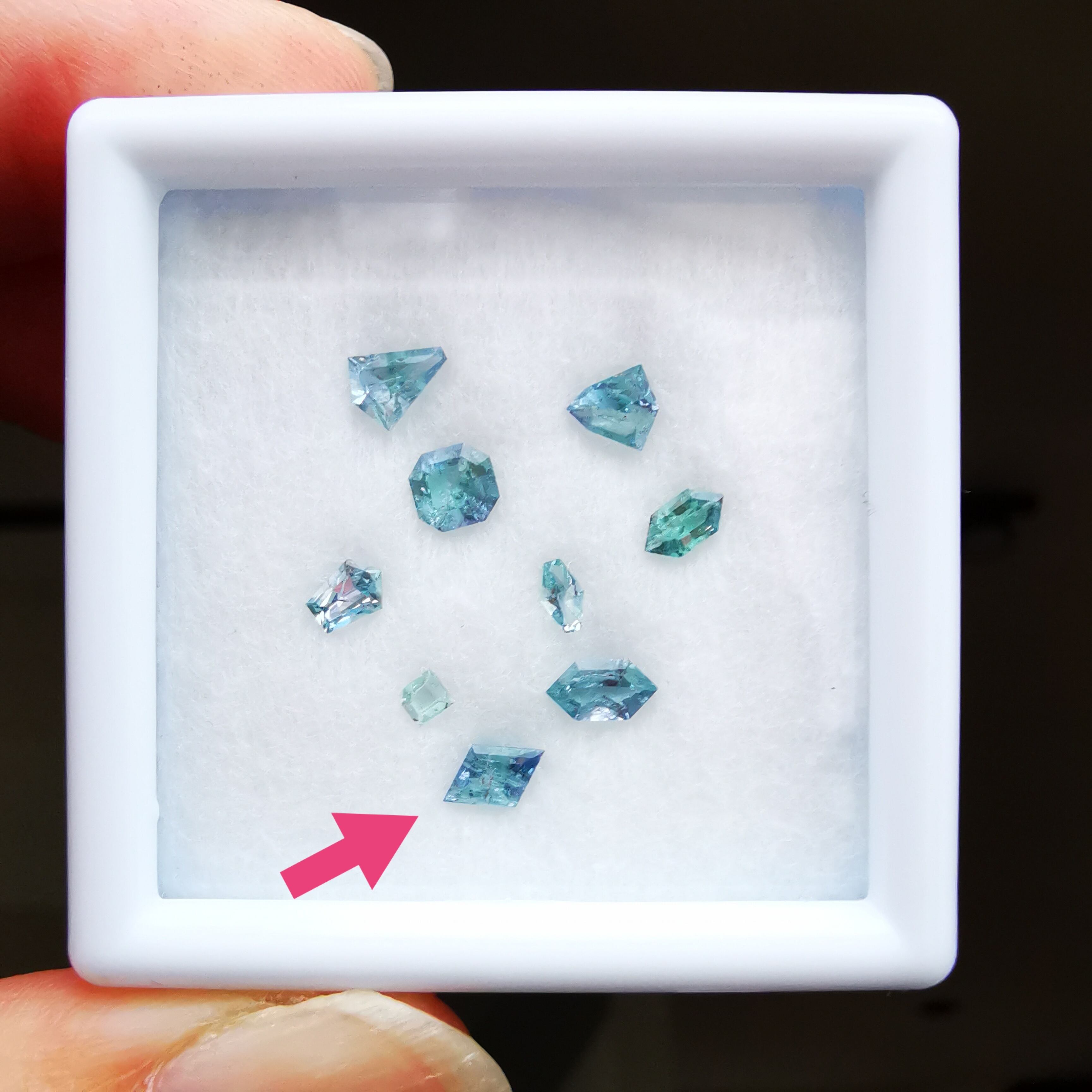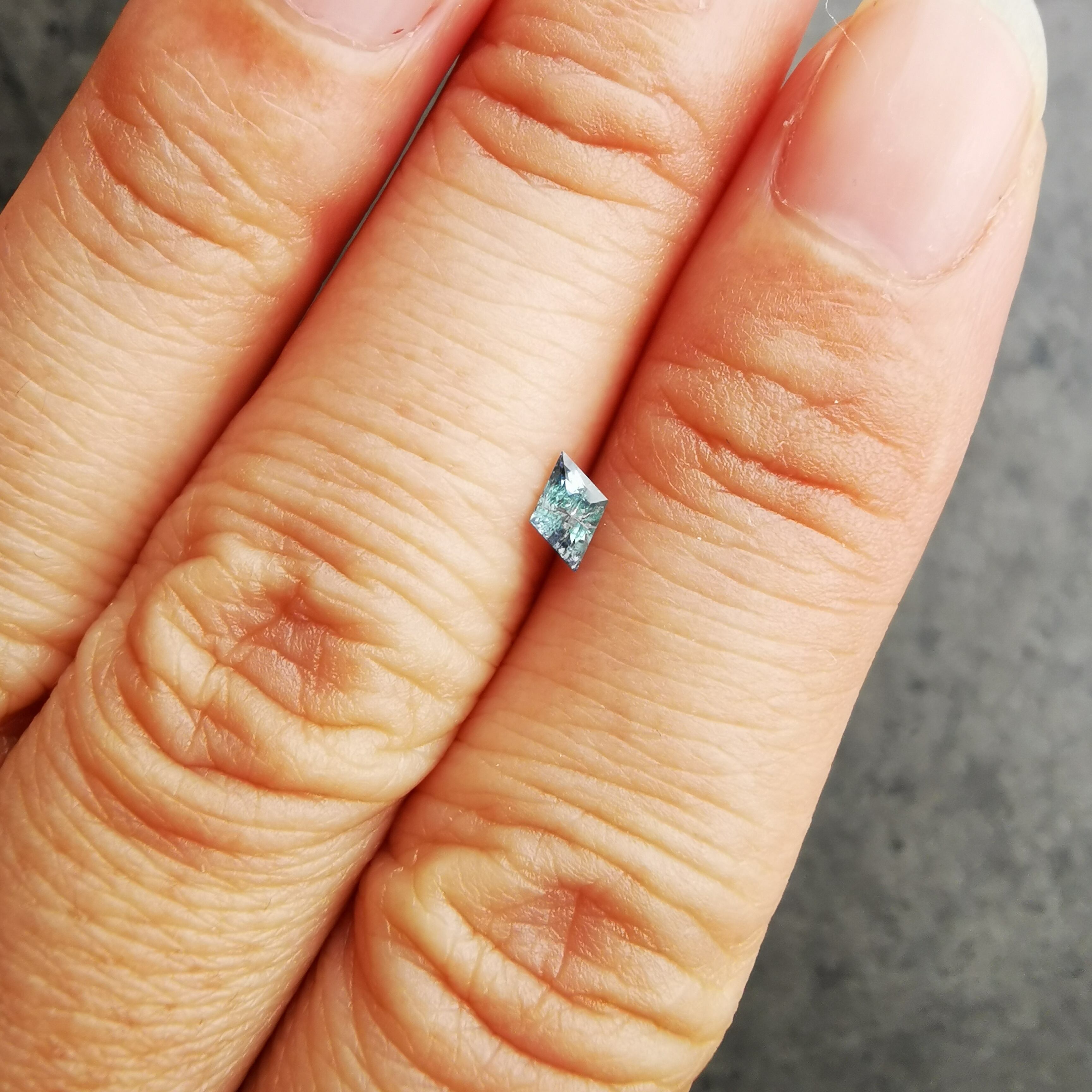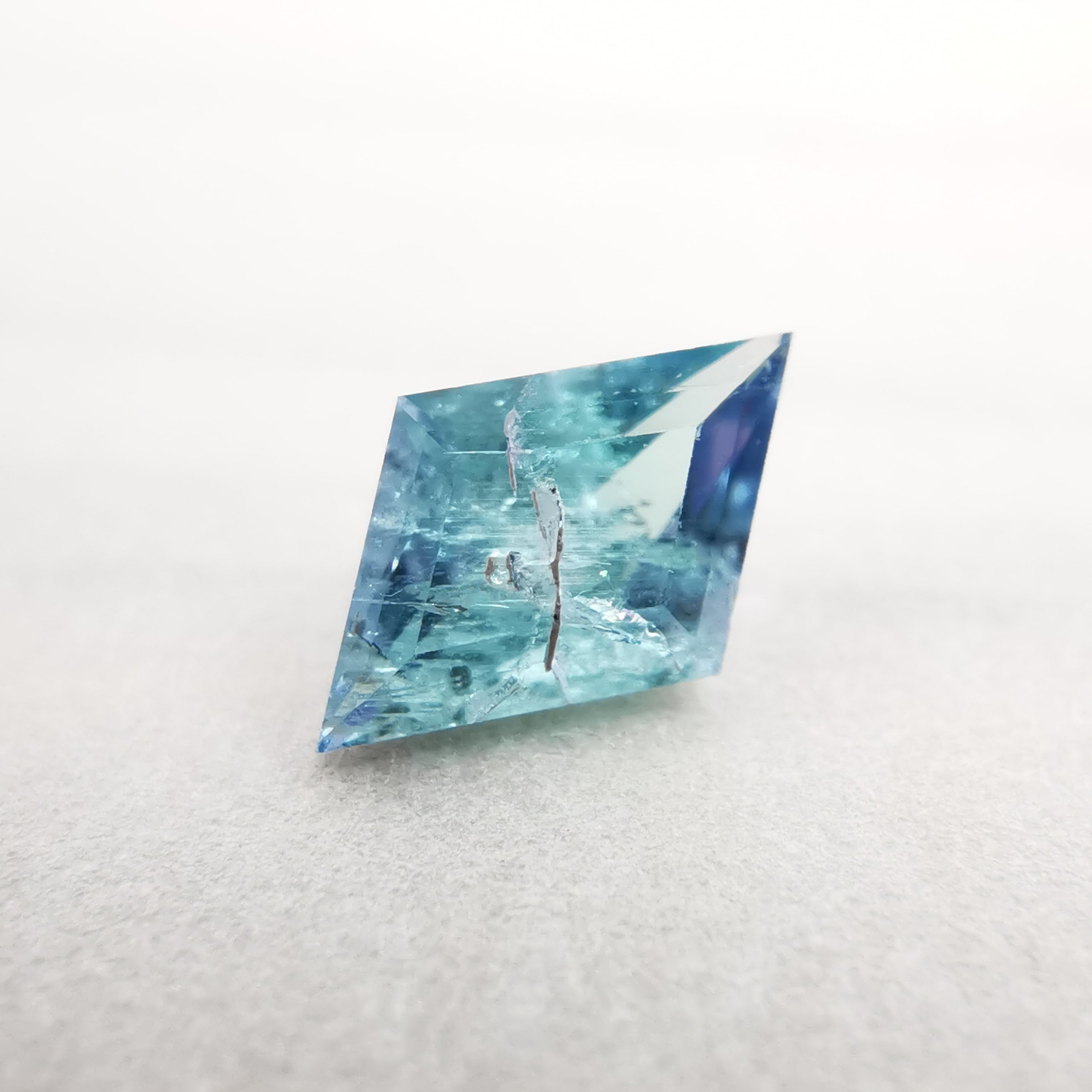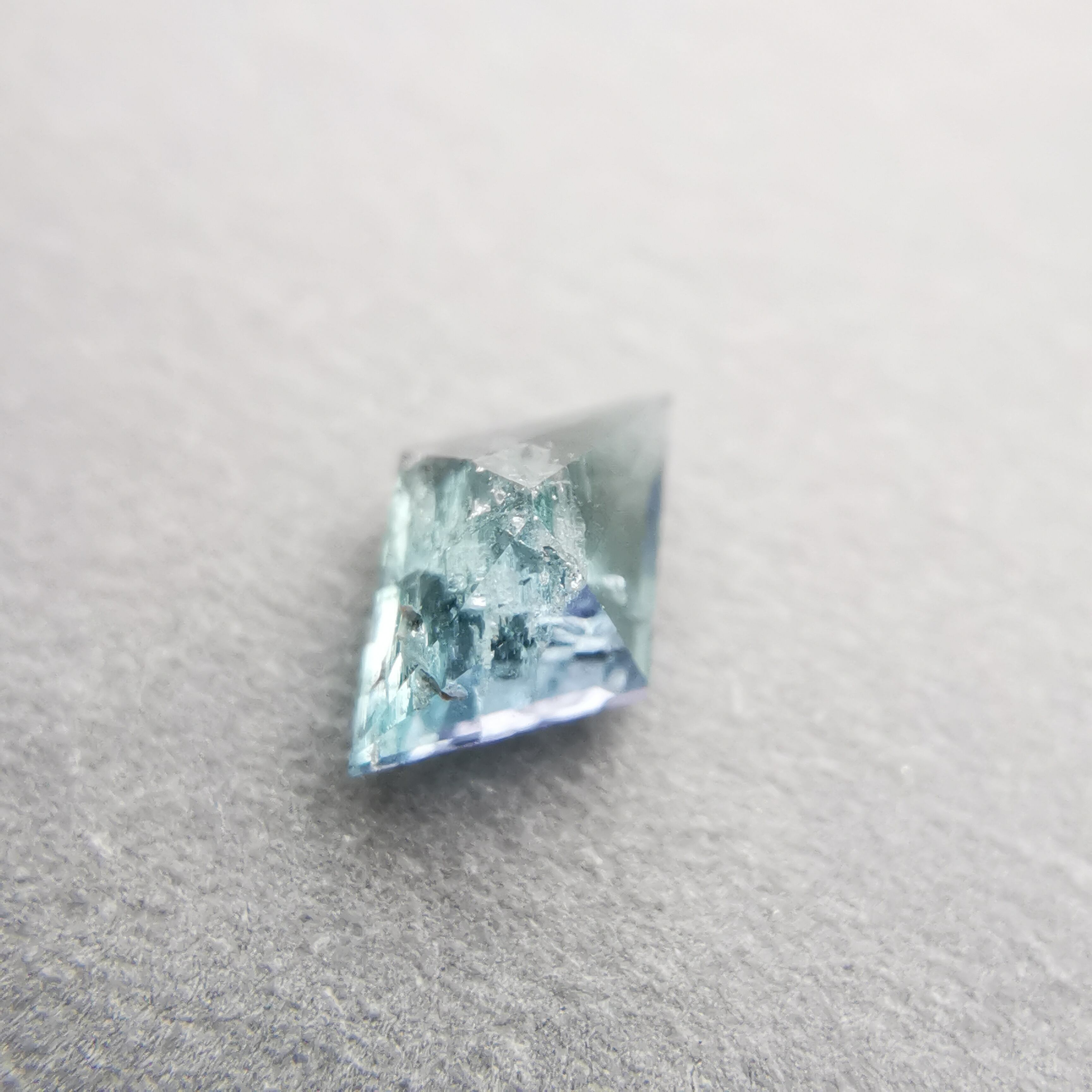 内包物が多く輝きは落ちますが、タンザニア産のコーネルピンにしか見られないブルーとパープルの多色性はしっかりと楽しむことができます。