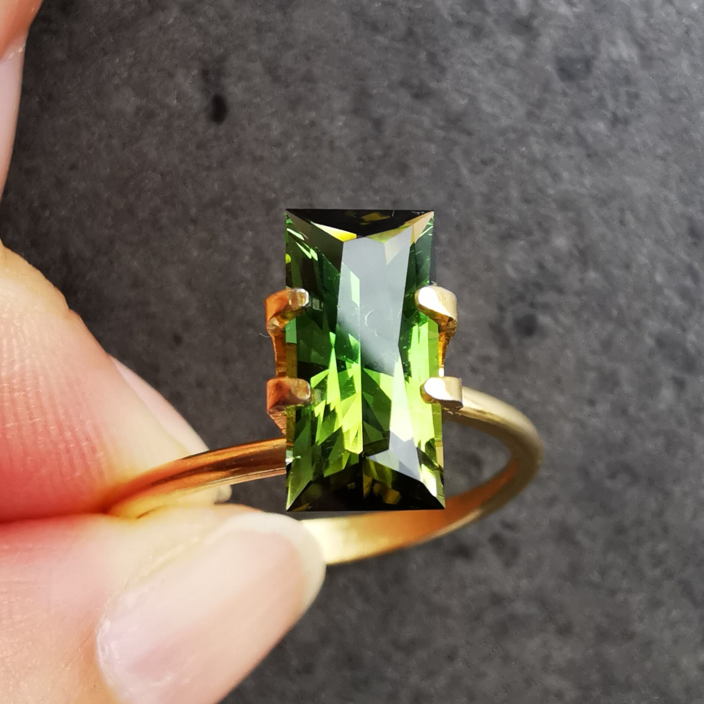 バケットカットは単調になりがちですが、パビリオン側に細かいカットを施すことで、動かした時に色と光が走る刺激的な一石になりました。