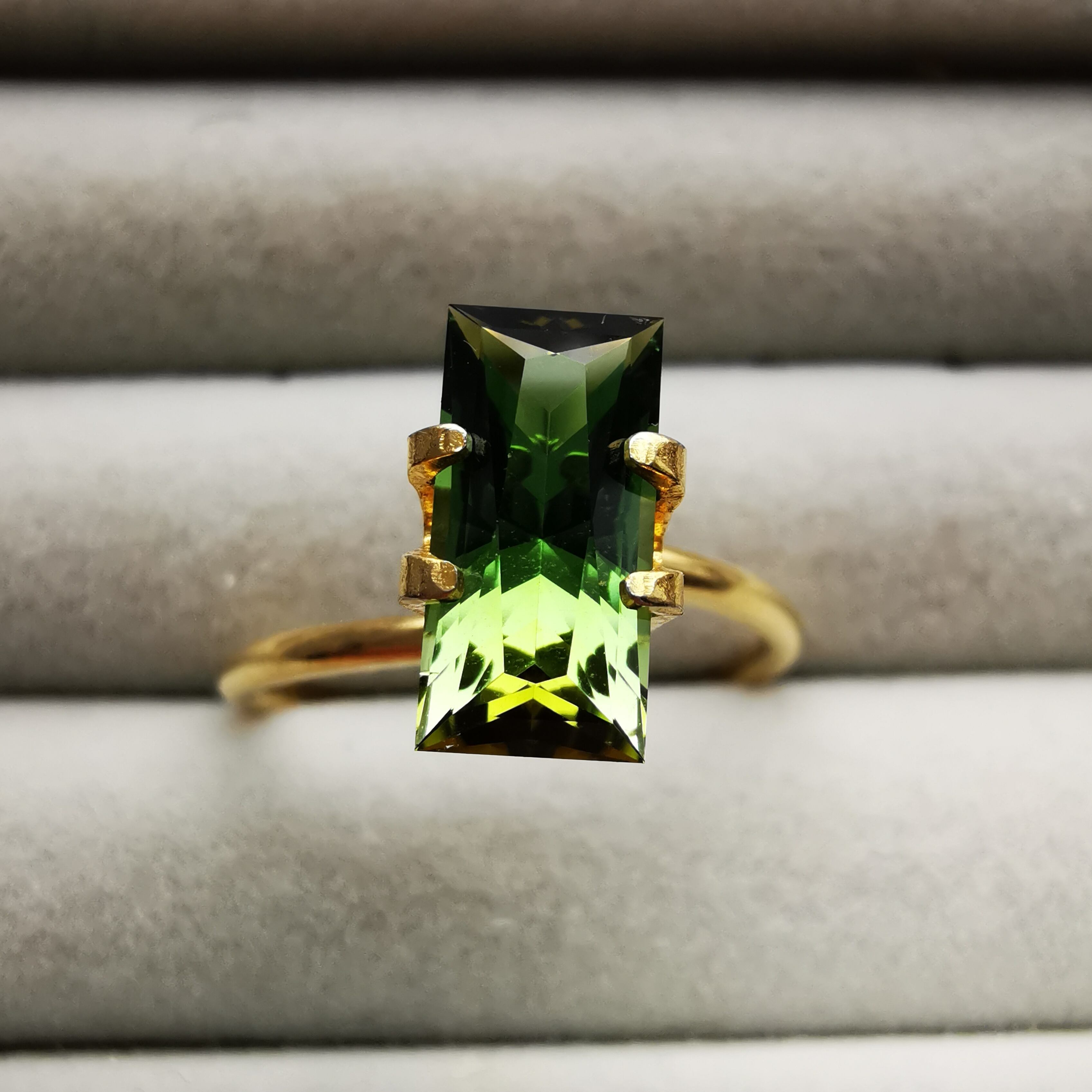 グリーンからイエローグリーンのグラデーションが美しいバイカラーサファイアです。
