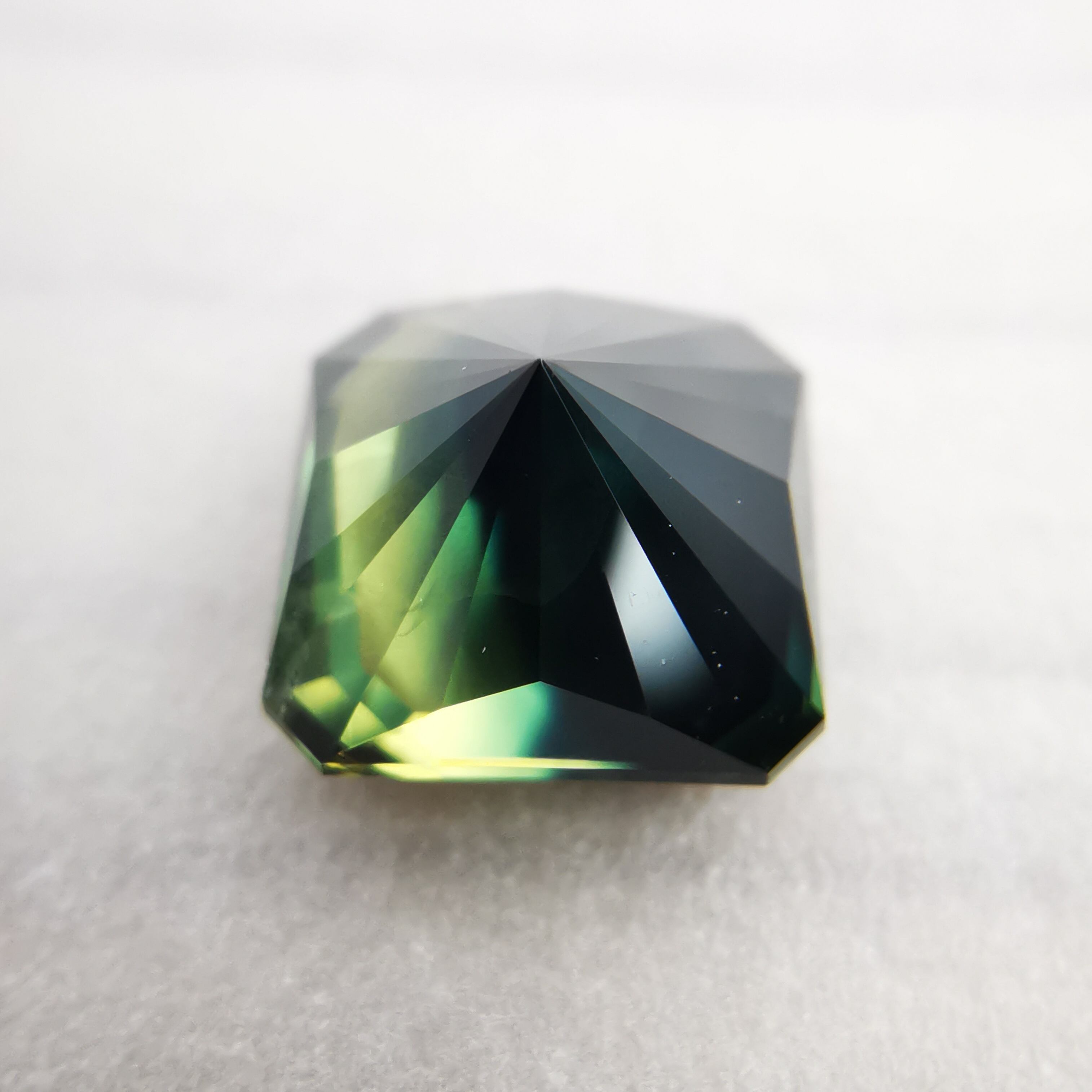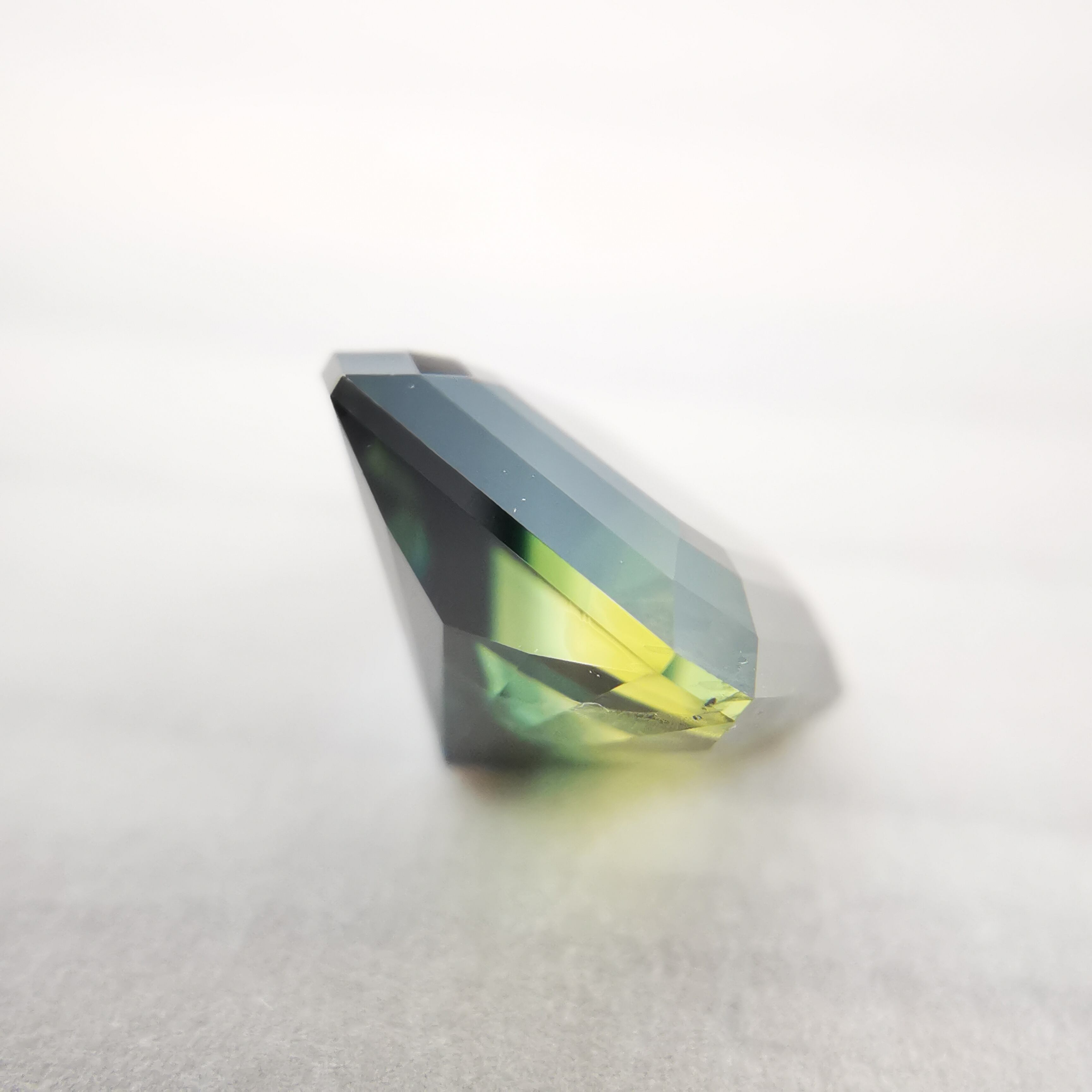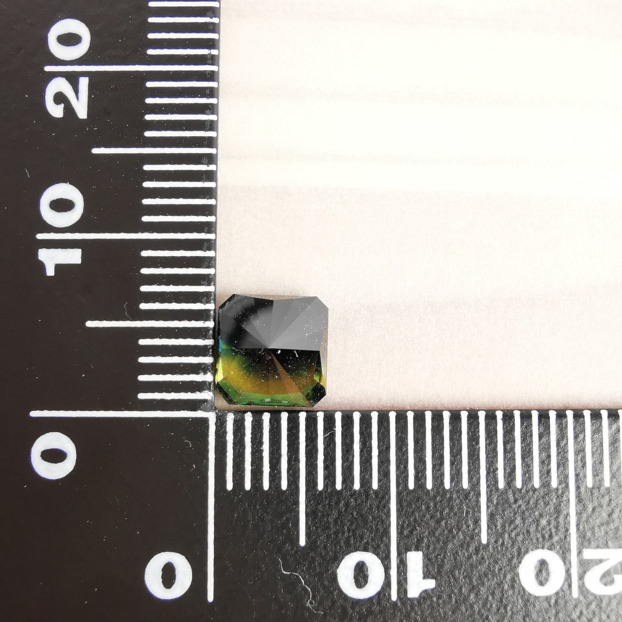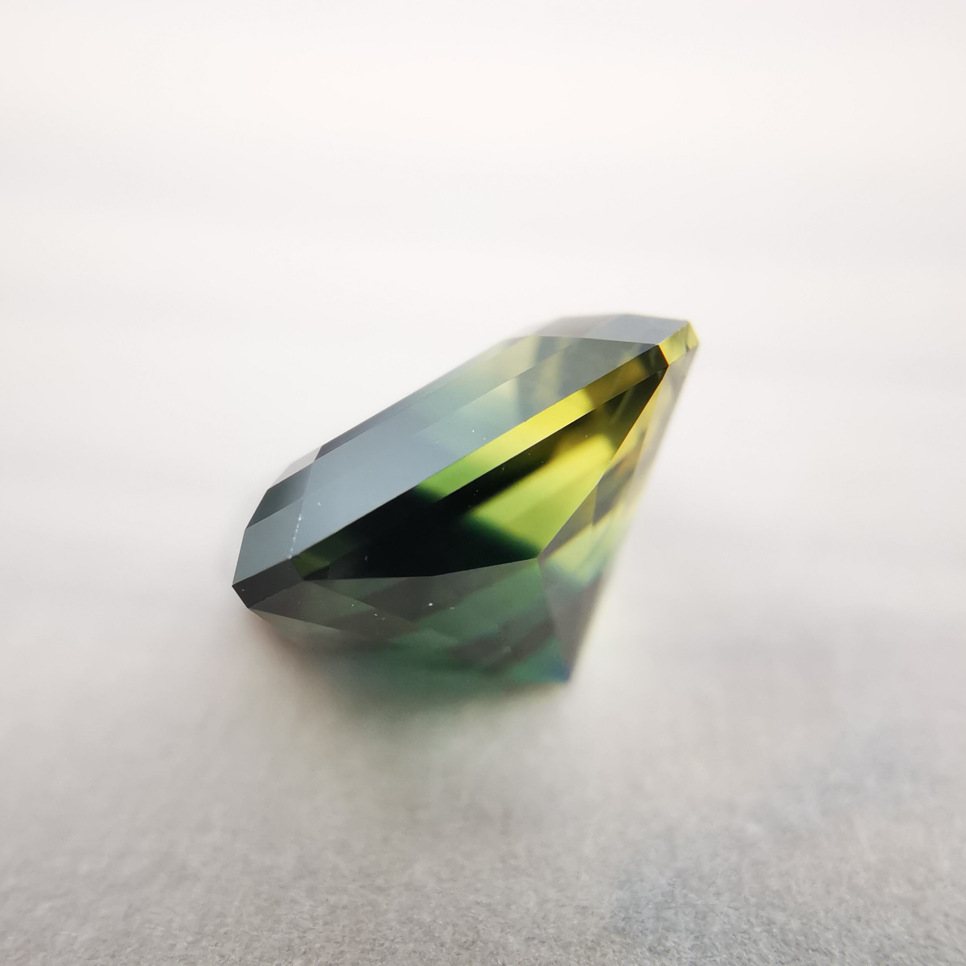ルースケースの中では全体がほぼ黒く見えますが、取り出してみると印象ががらりと変わり、黒に近いブルーと、イエローがはっきりと分かれたバイカラーサファイアです。
