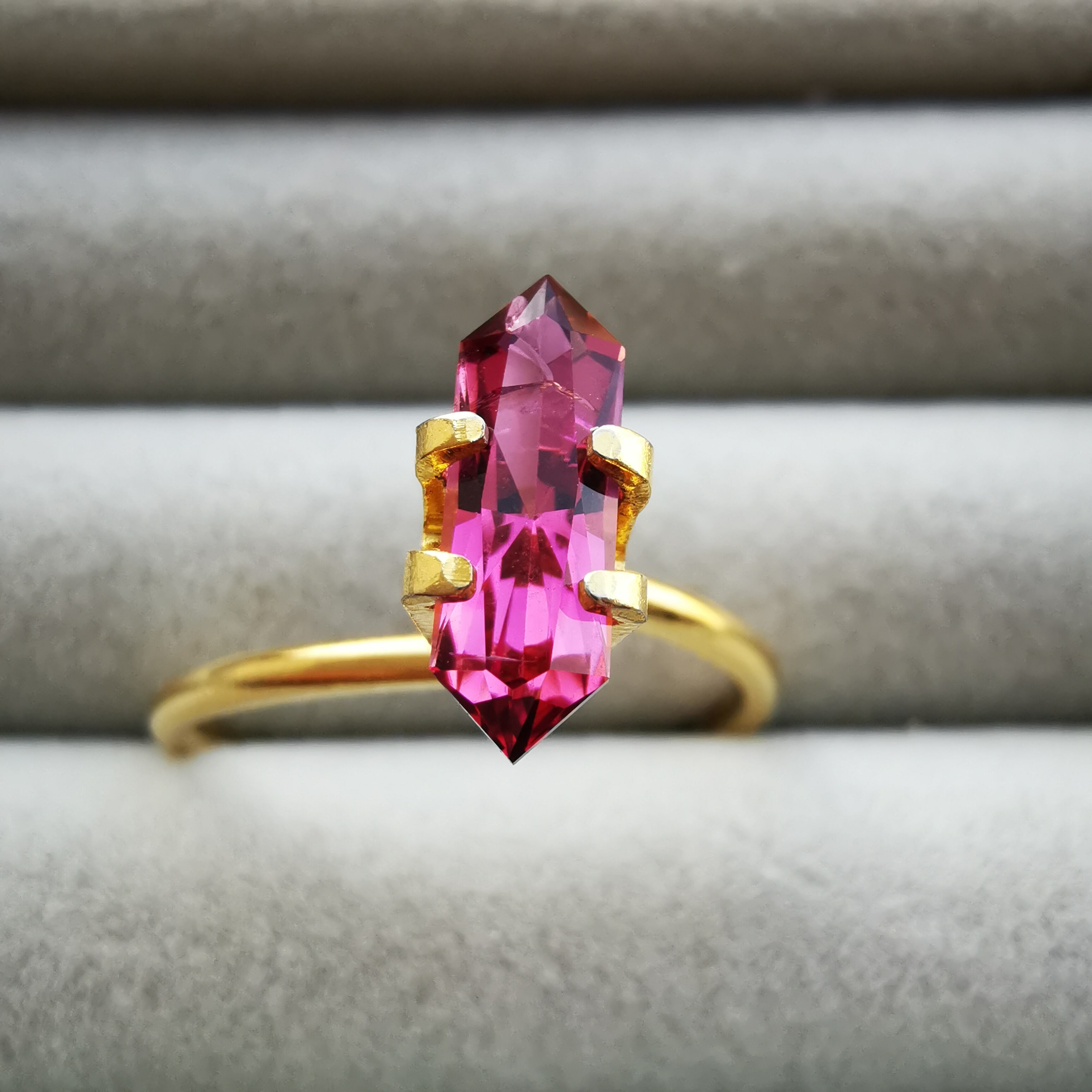 先端のとがった鋭くメリハリのあるカットが、華やかな輝きを引き立てています。