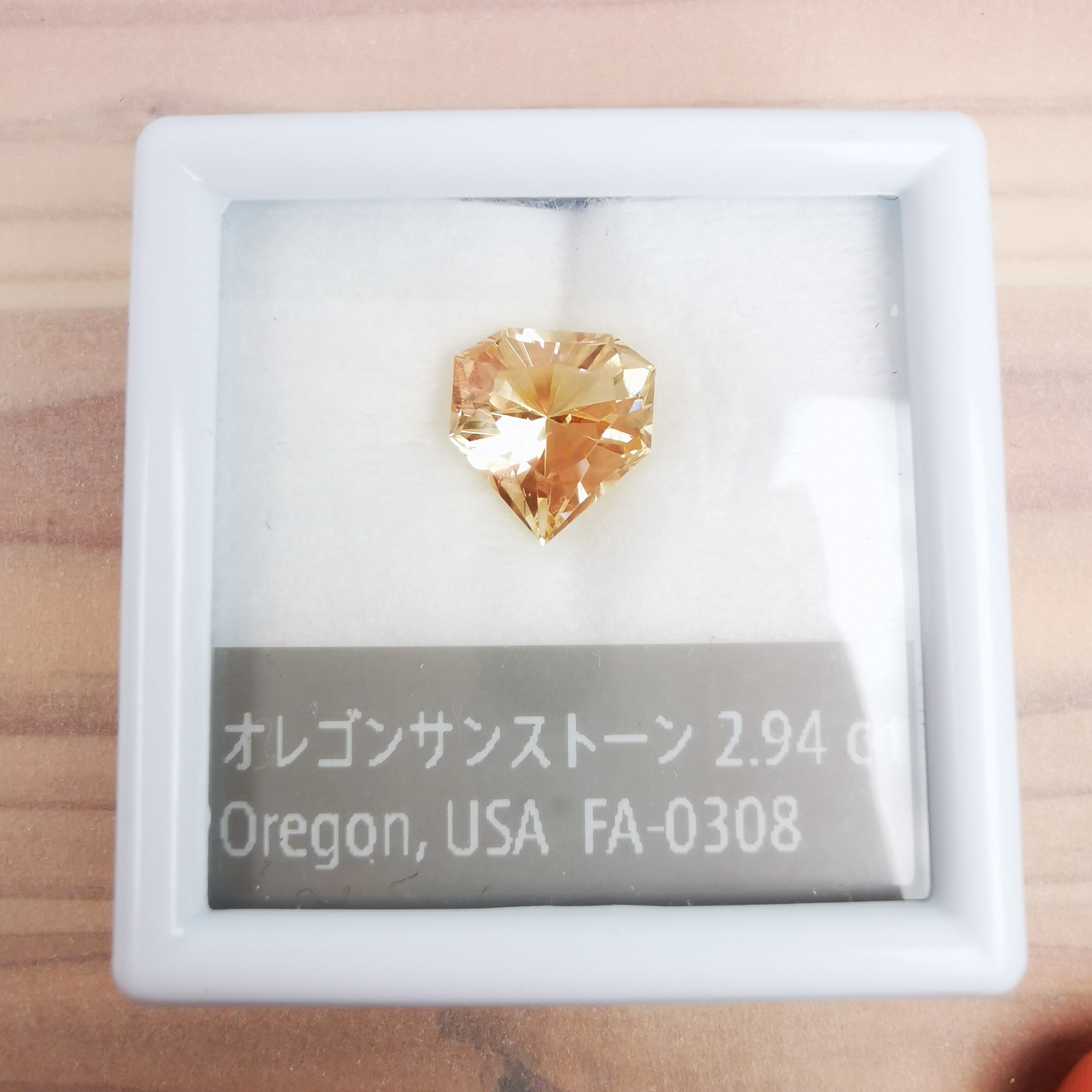 シャンパンカラーにキラキラした泡のようなシラーが入るオレゴンサンストーンです。