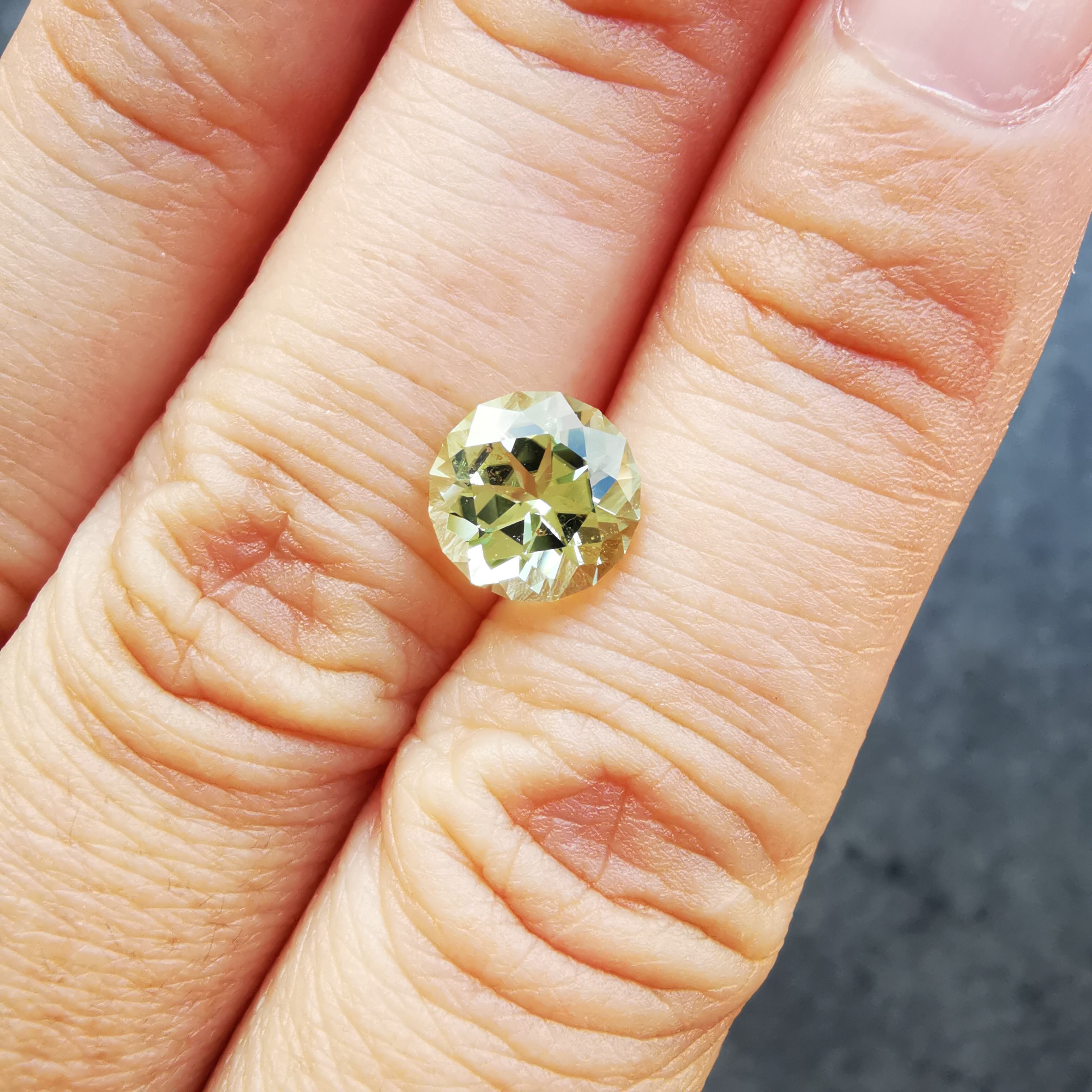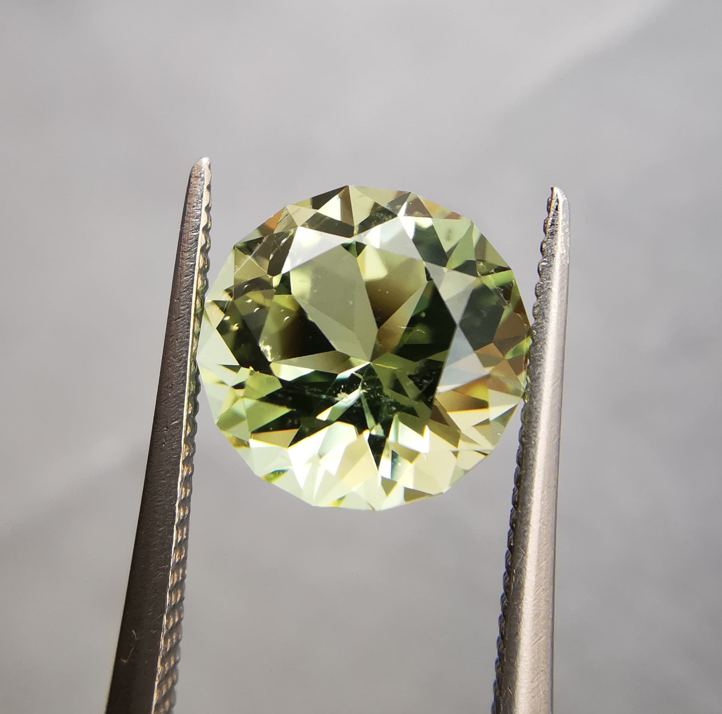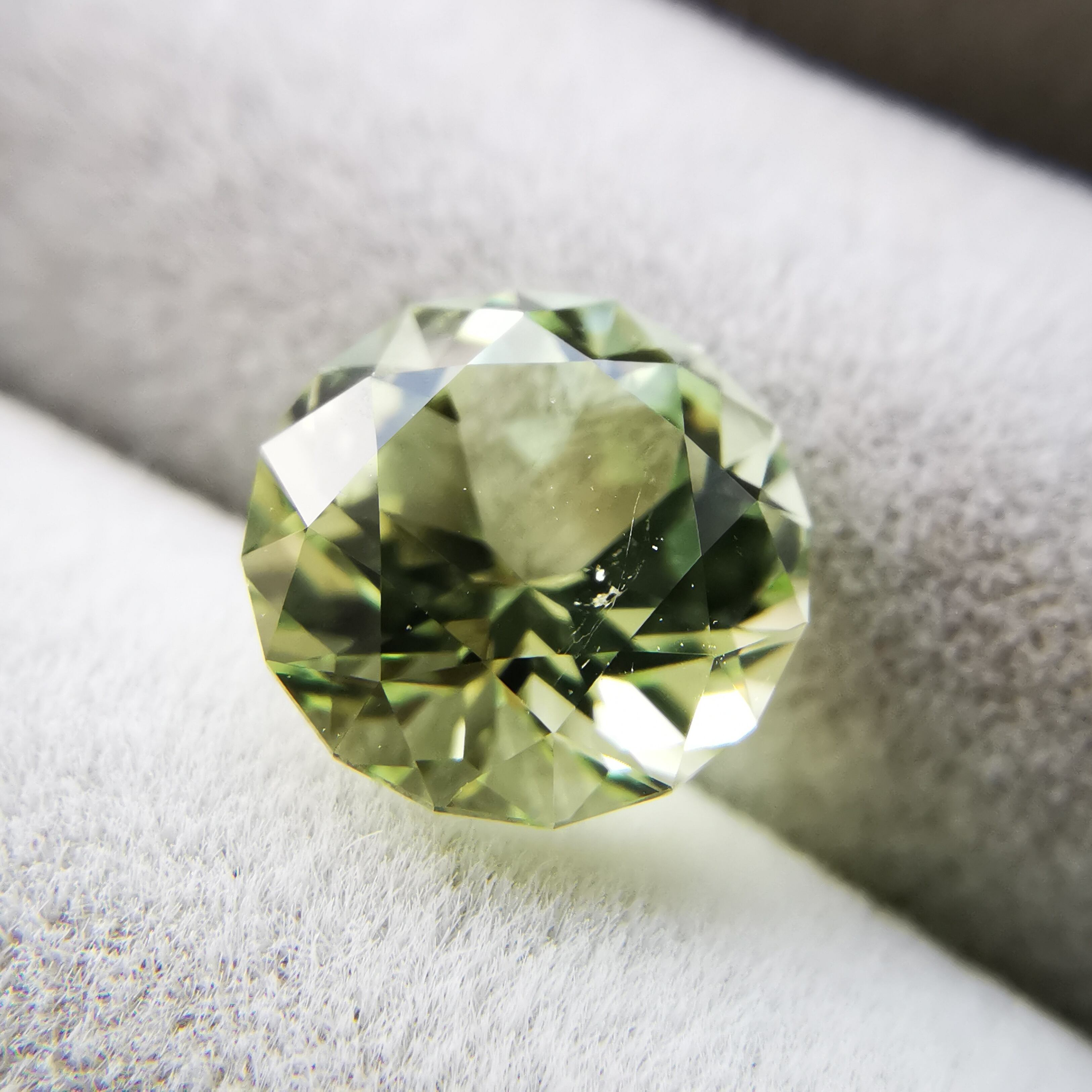 明るい若草色がきらめくトルマリンです。