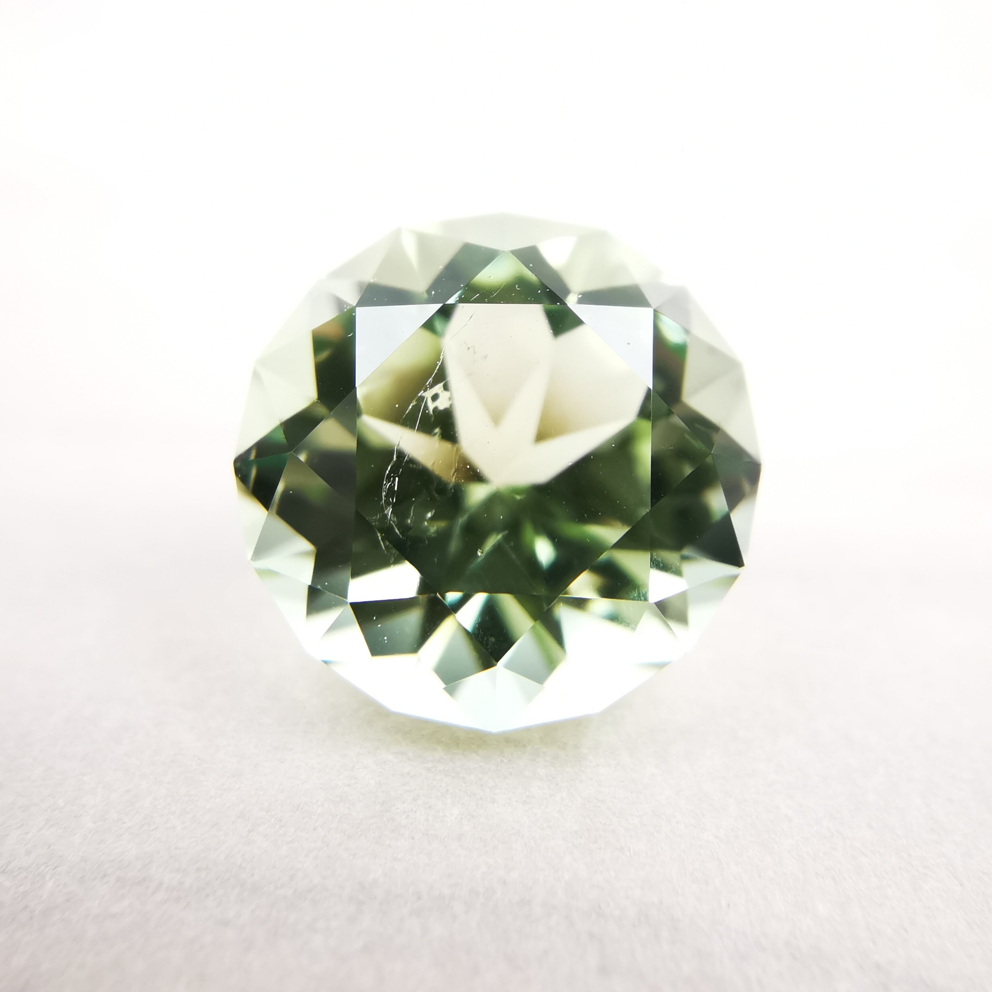 フェイスはダリアの花びらのようなカットの中心に、キュレットに施された星のカットが浮かび上がり、ガードル部分は直線ではなく、波打つデザインにカットされています。