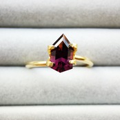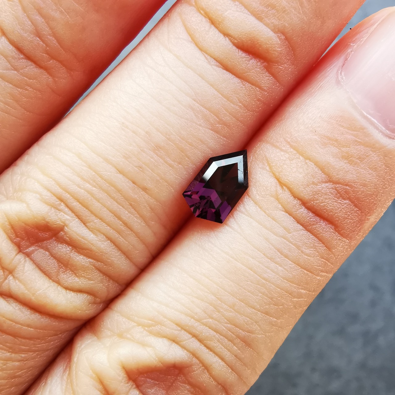 暗い石の中から、ローズレッドがチラチラと輝き出るスピネルです。