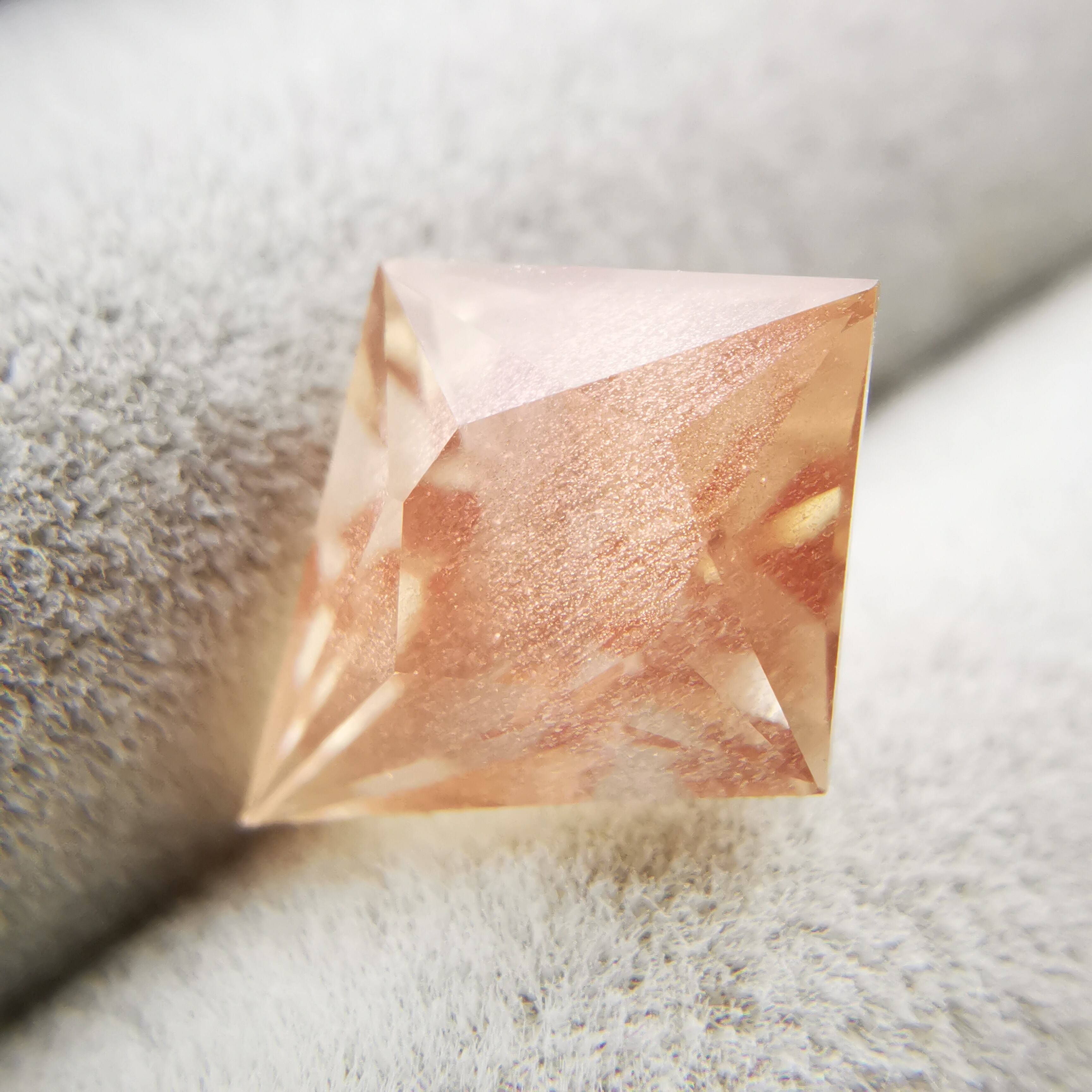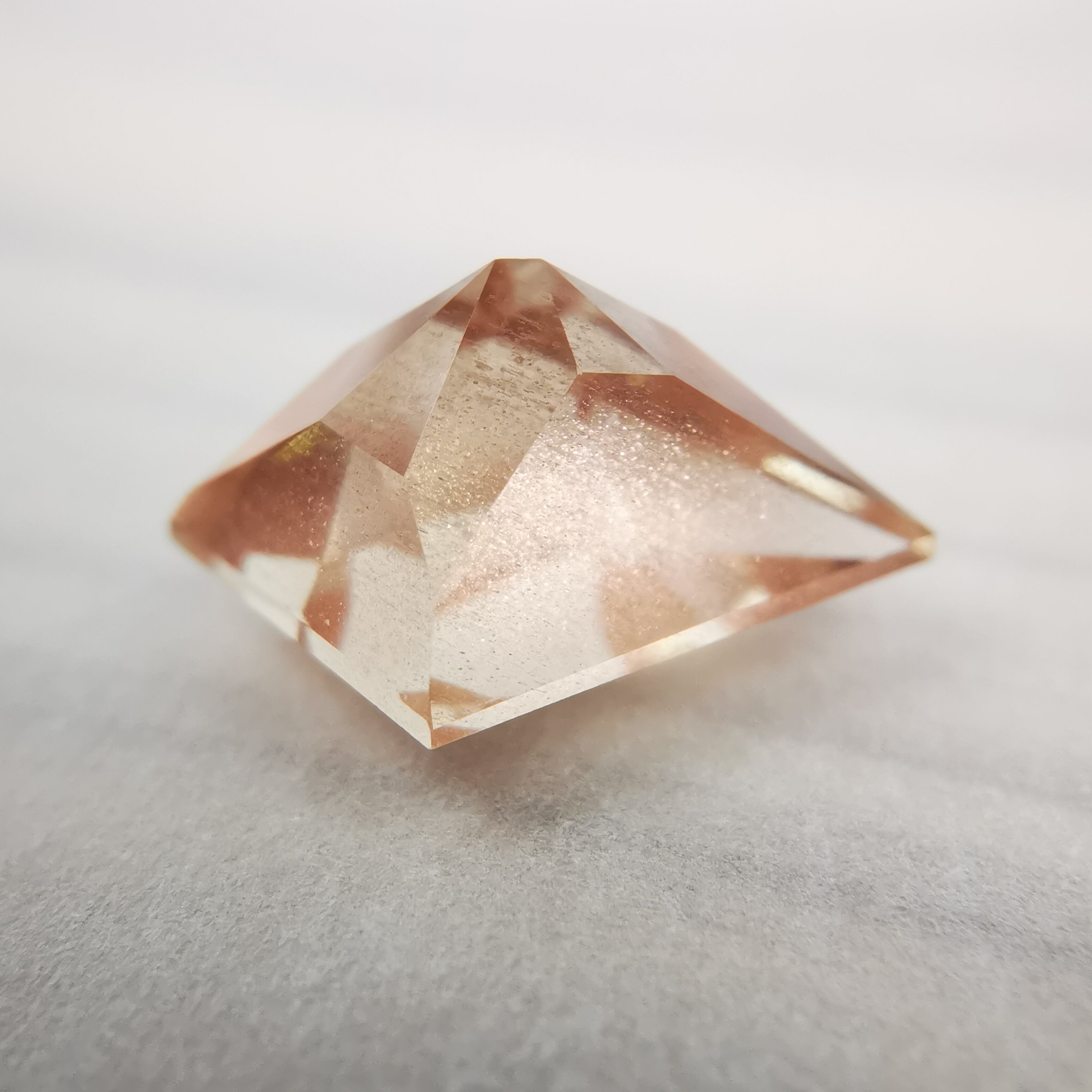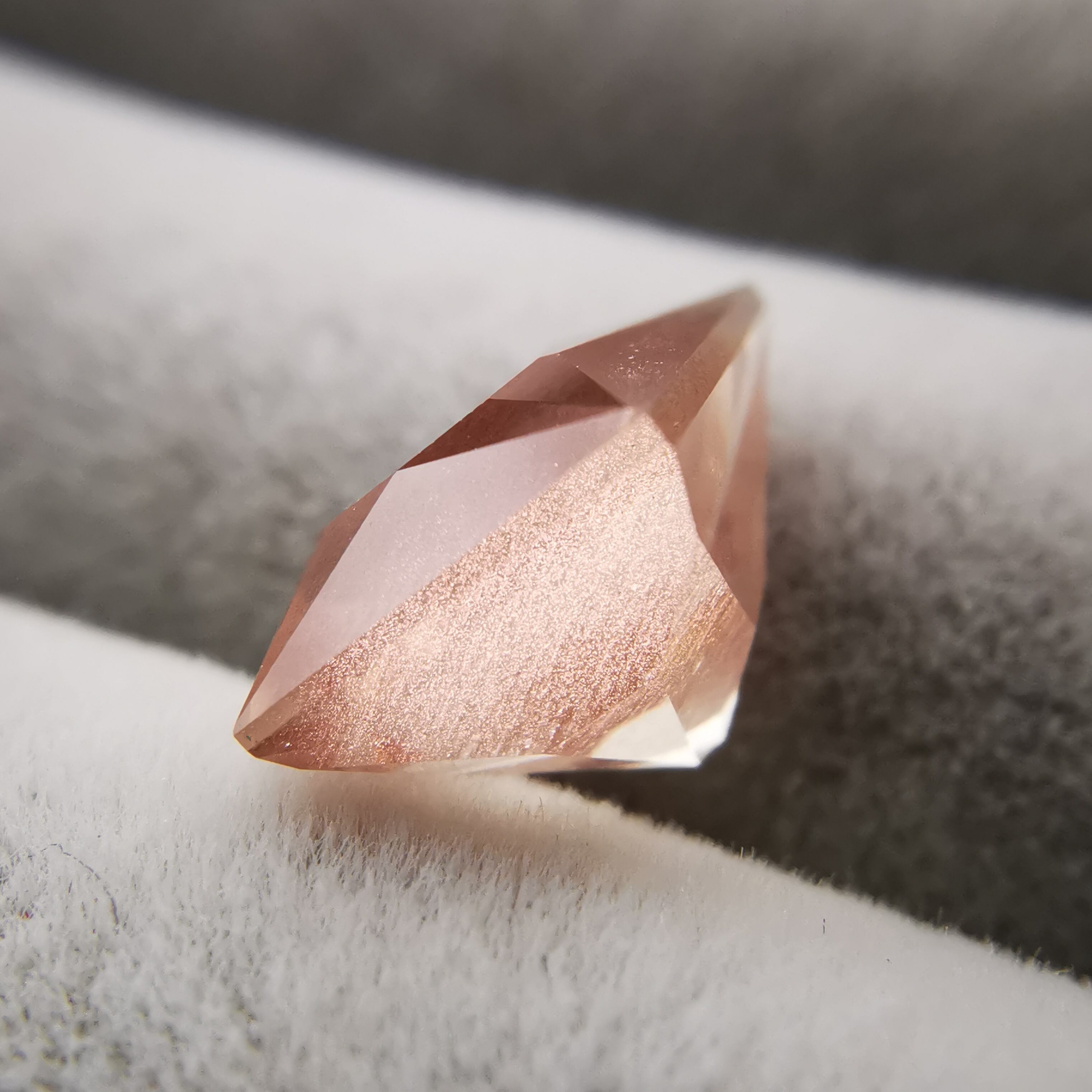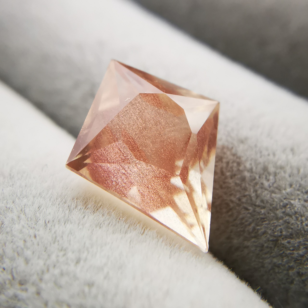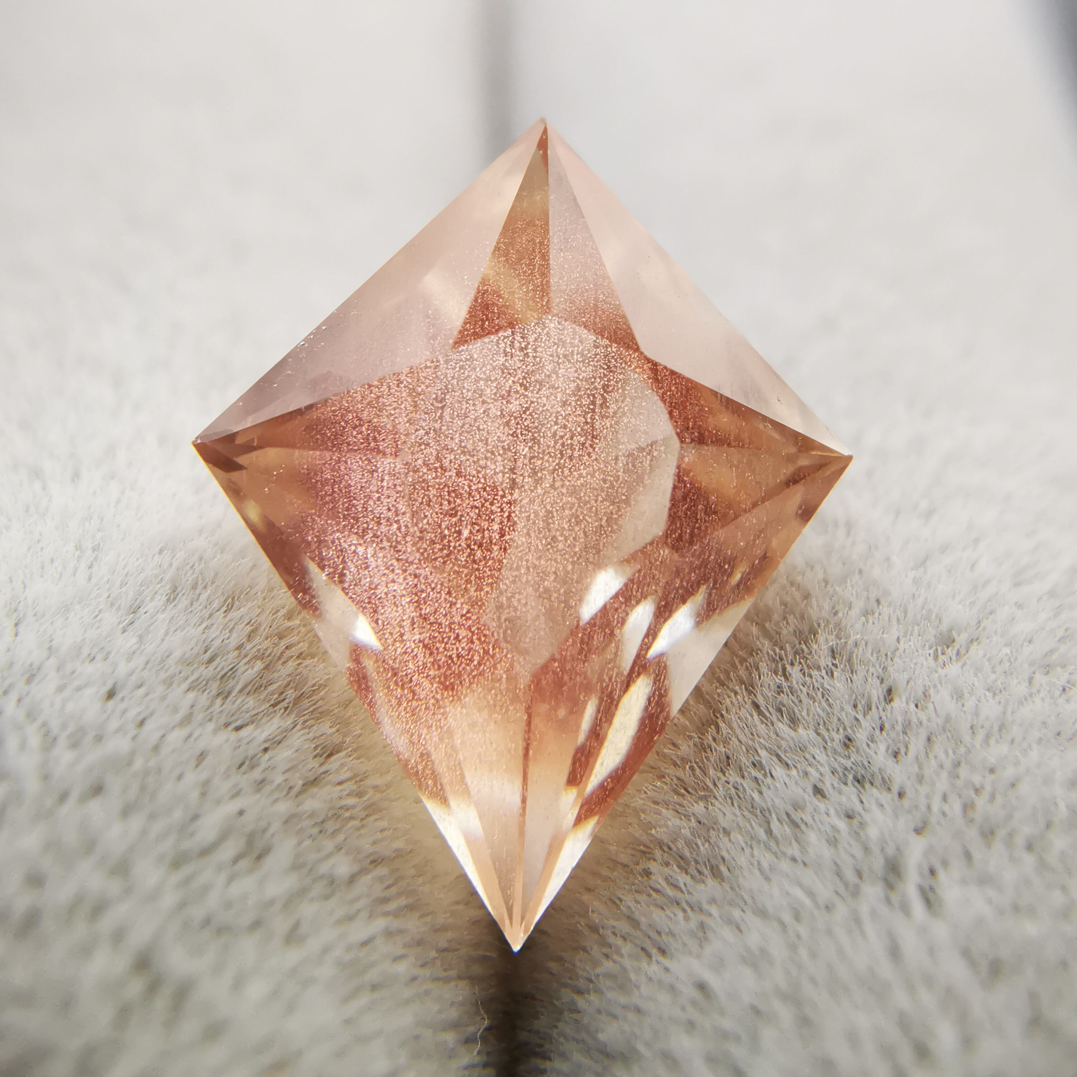 鋭く立体的なダイヤ型のカットが美しく、傾けると内側のシラーがさっと閃きます。