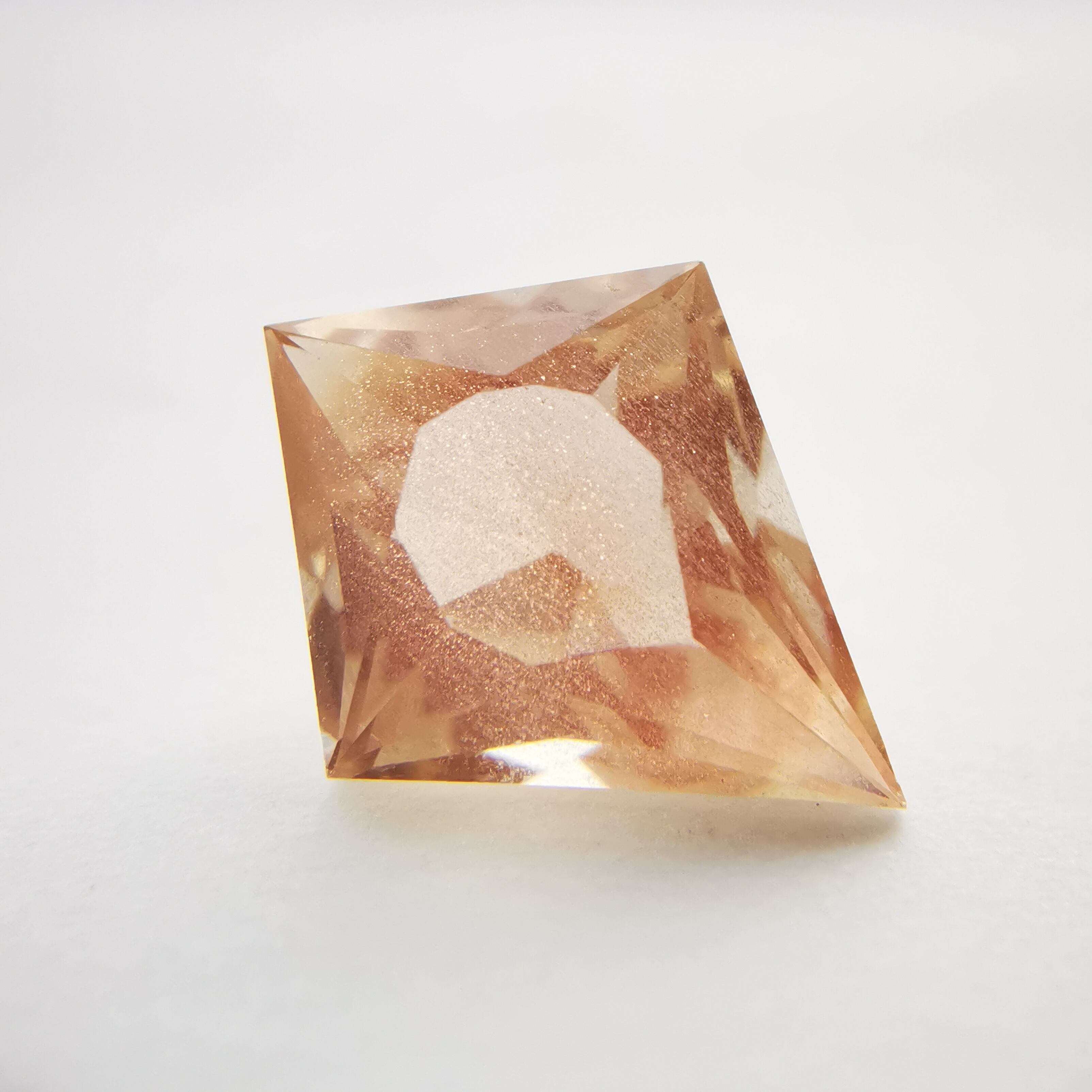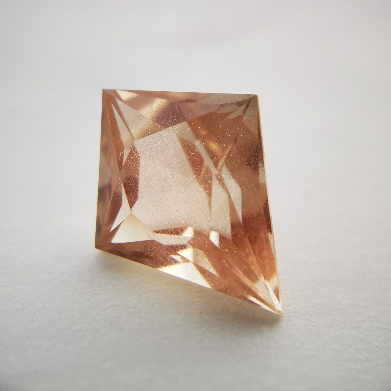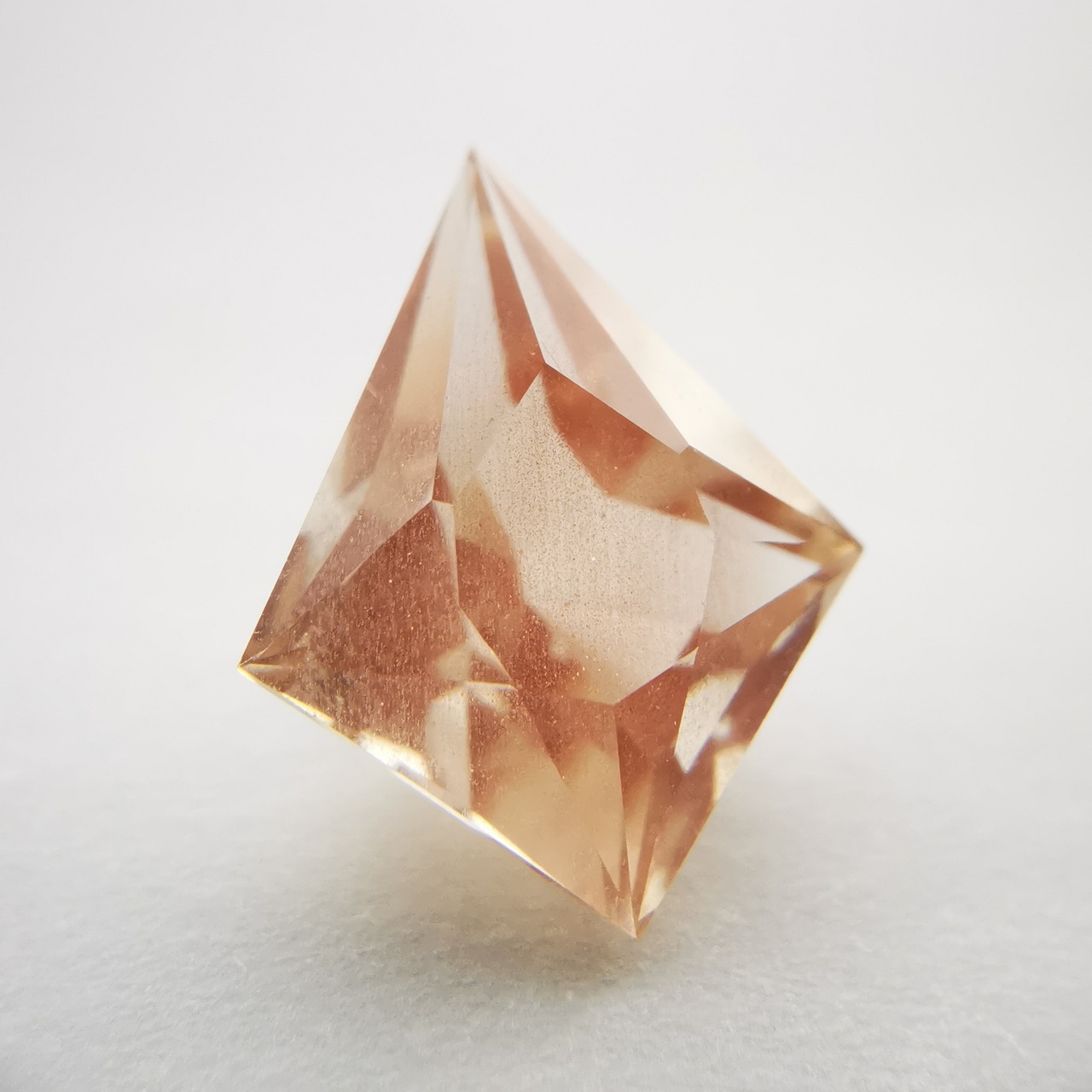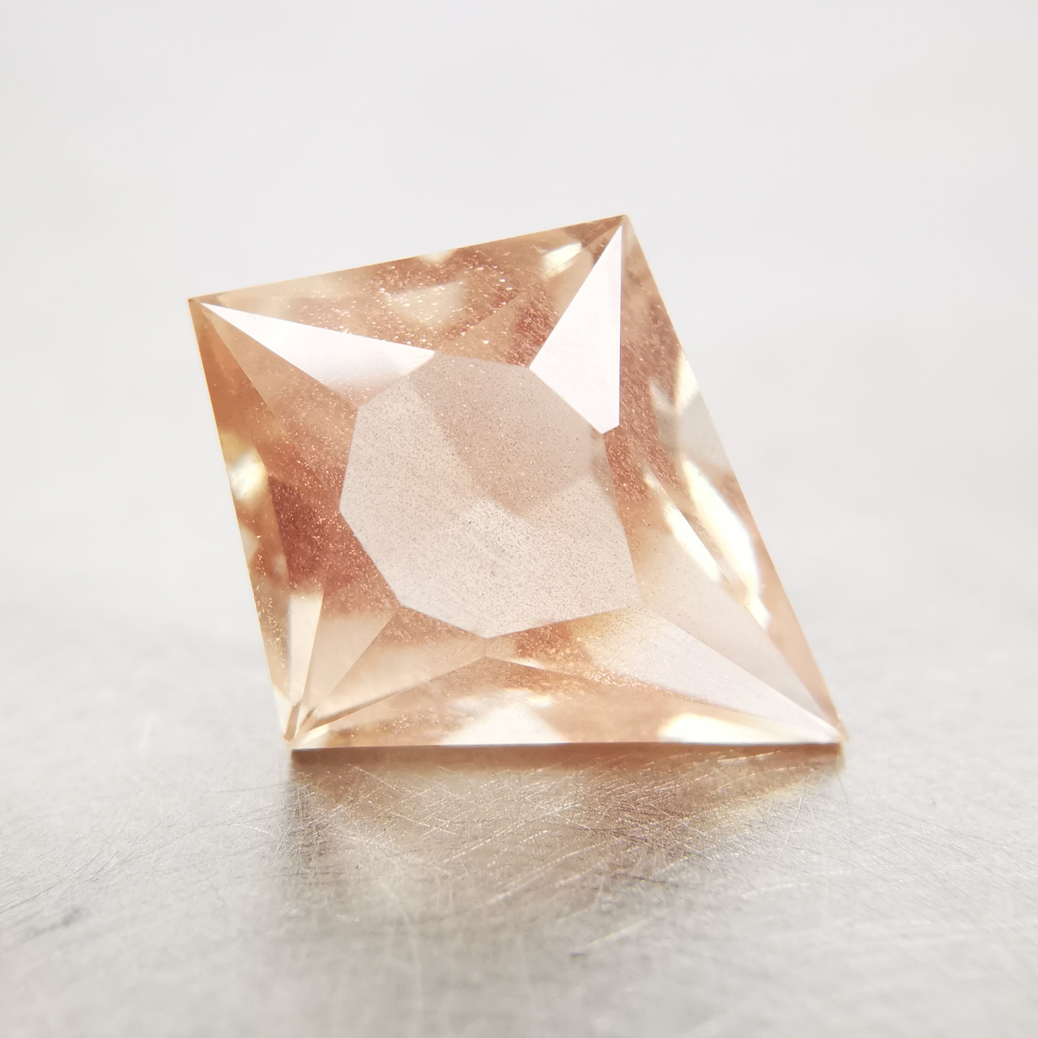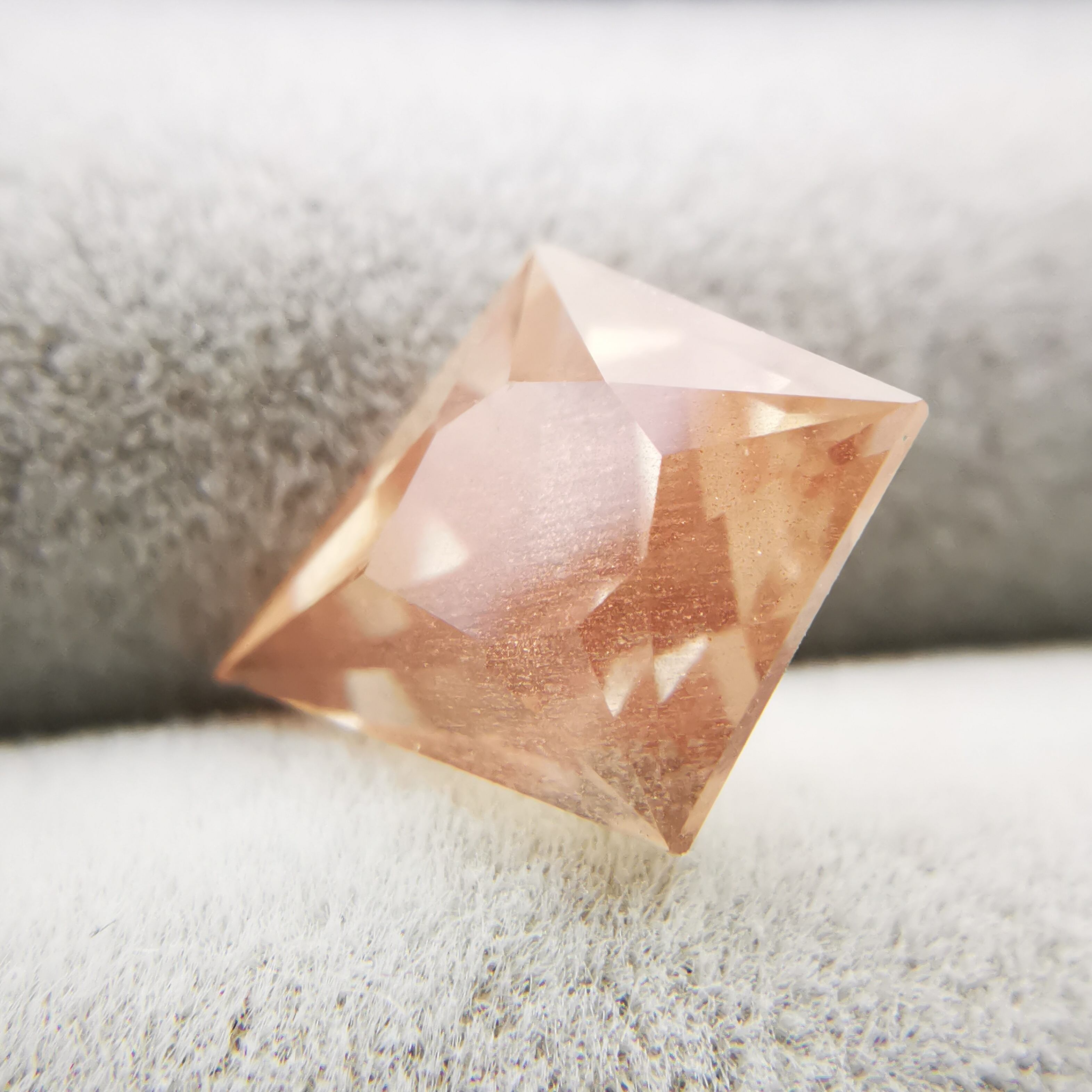 鋭く立体的なダイヤ型のカットが美しく、傾けると内側のシラーがさっと閃きます。