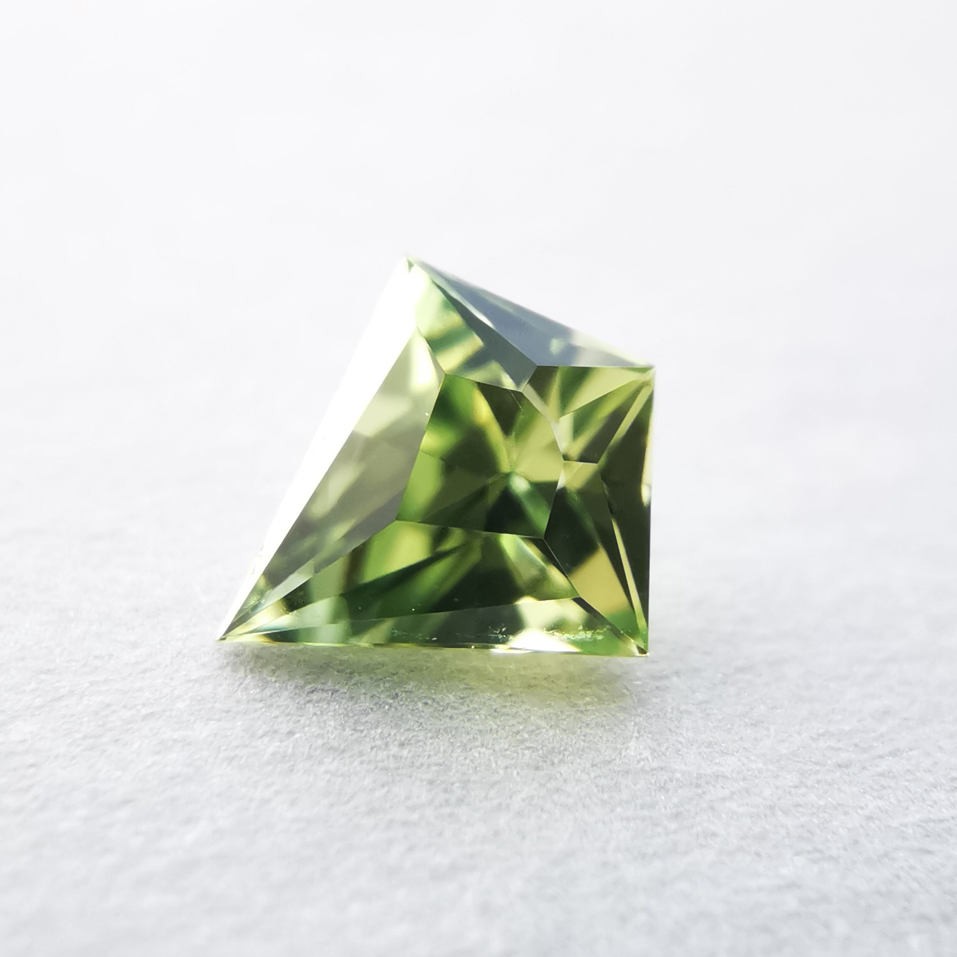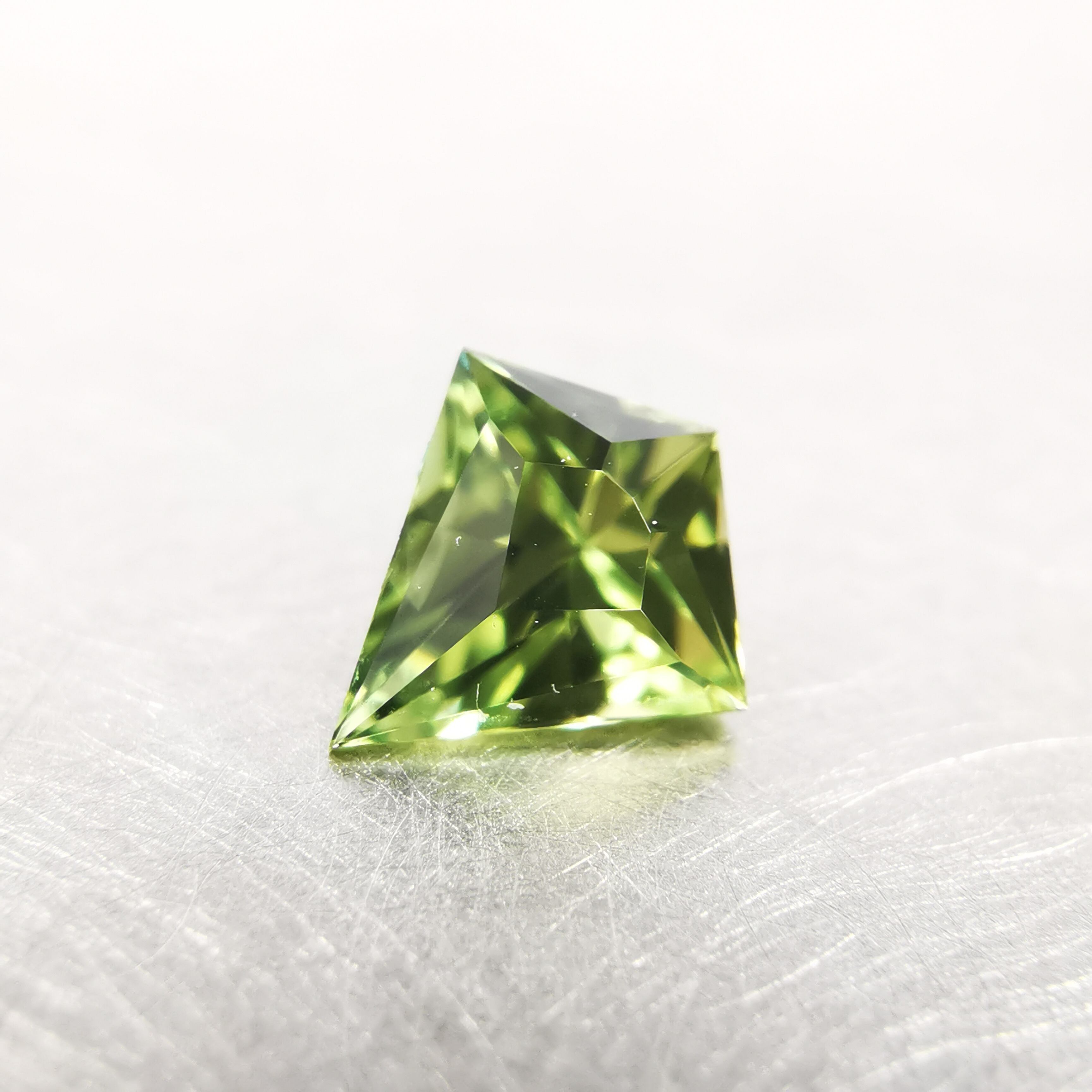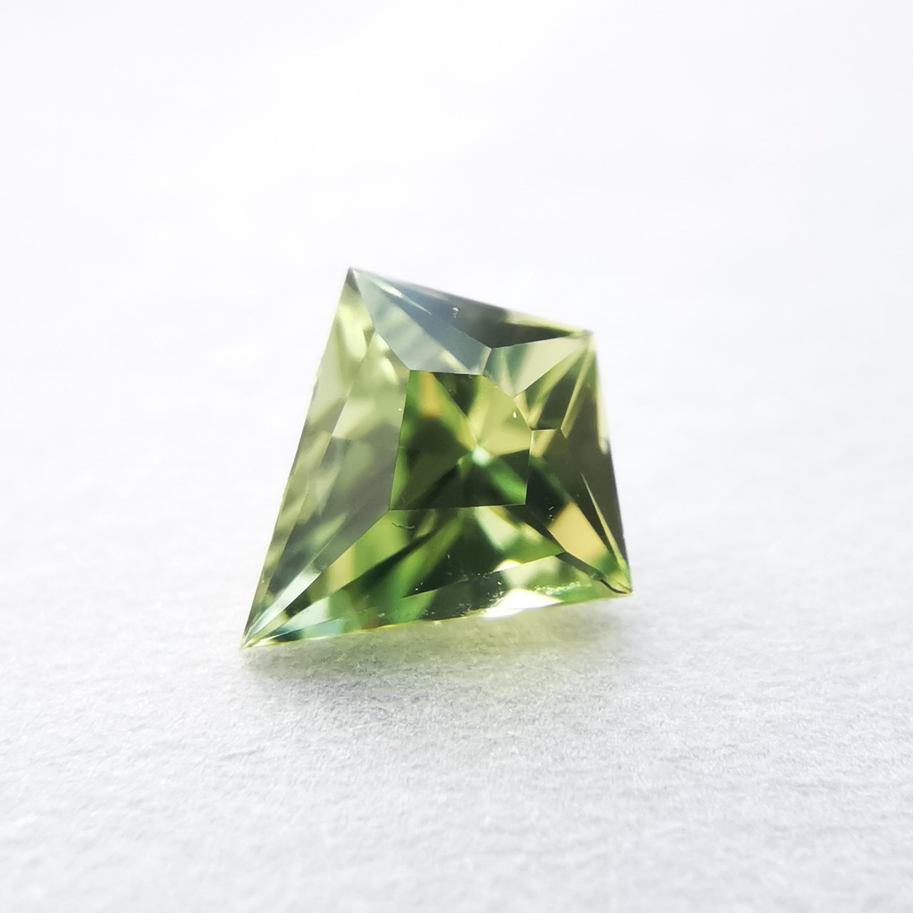 クリアで落ち着いた若草色で、木漏れ日のようにキラキラと輝くサファイアです。