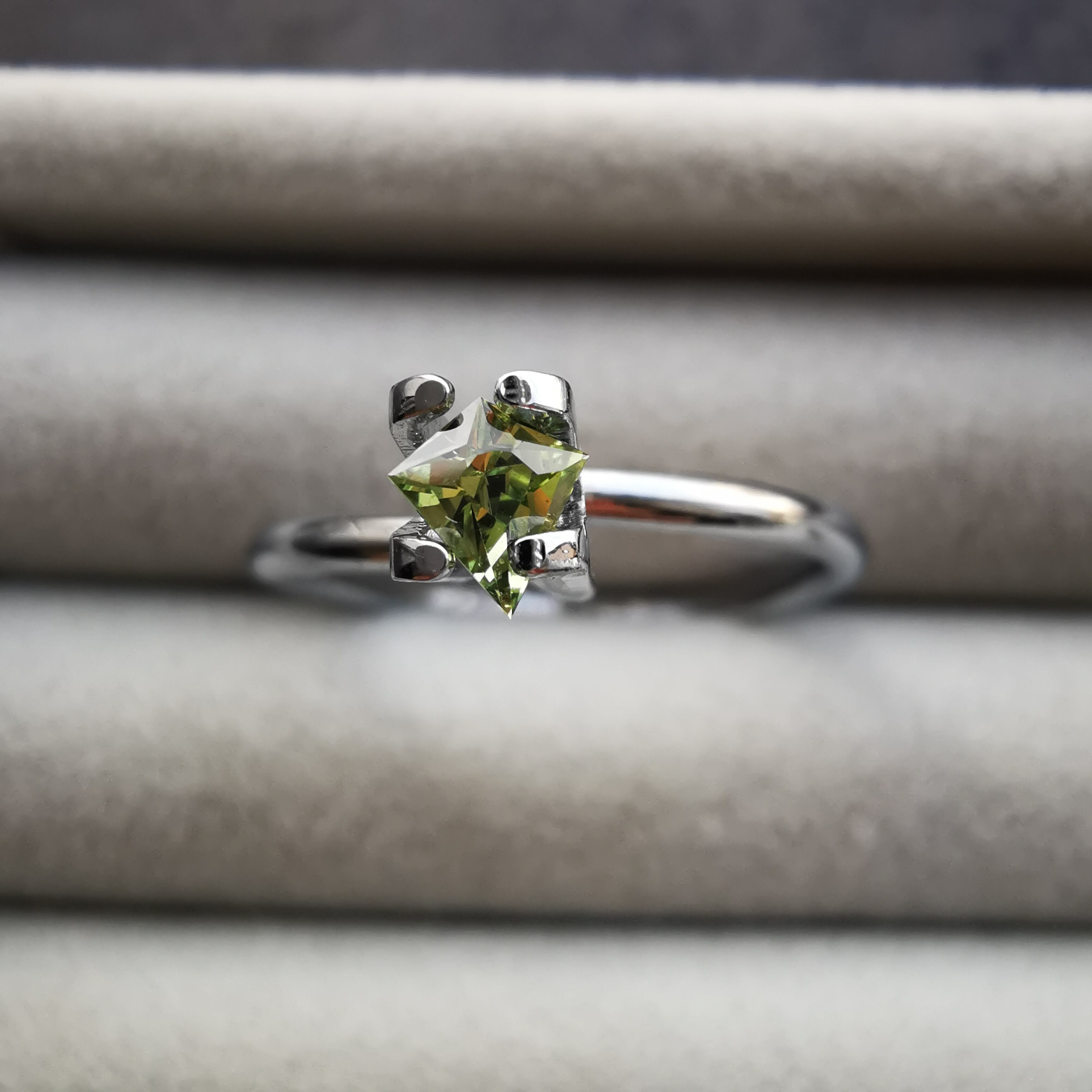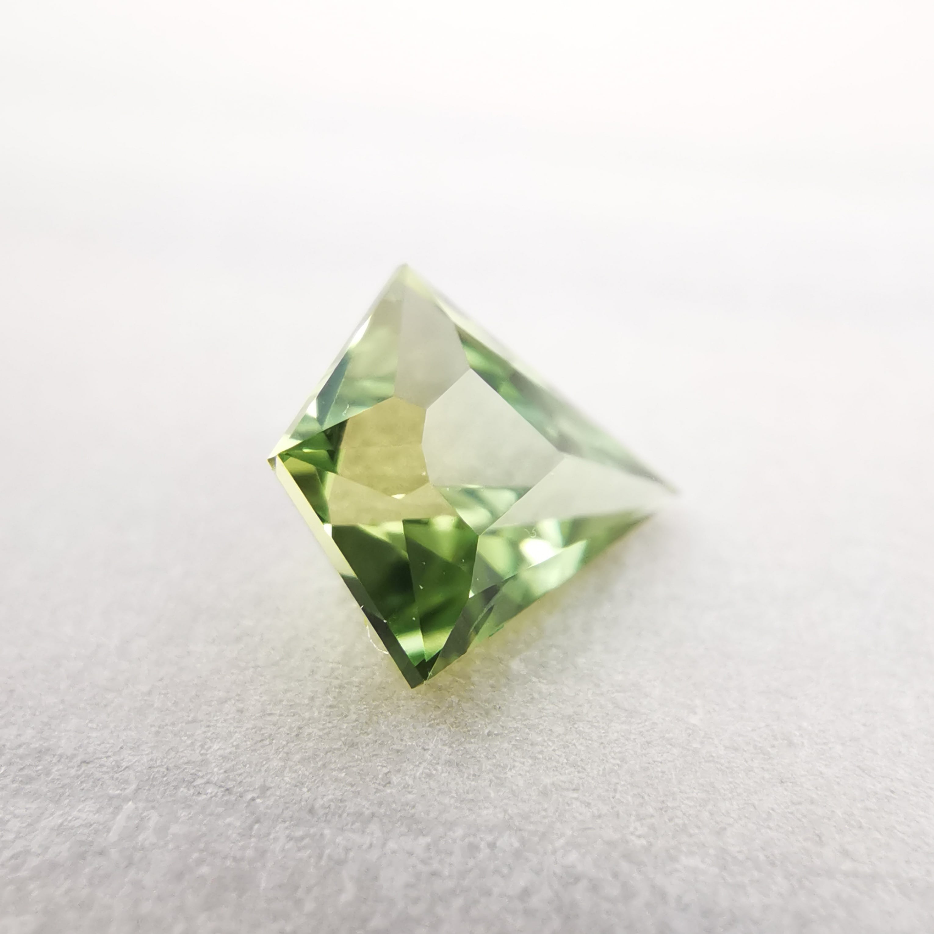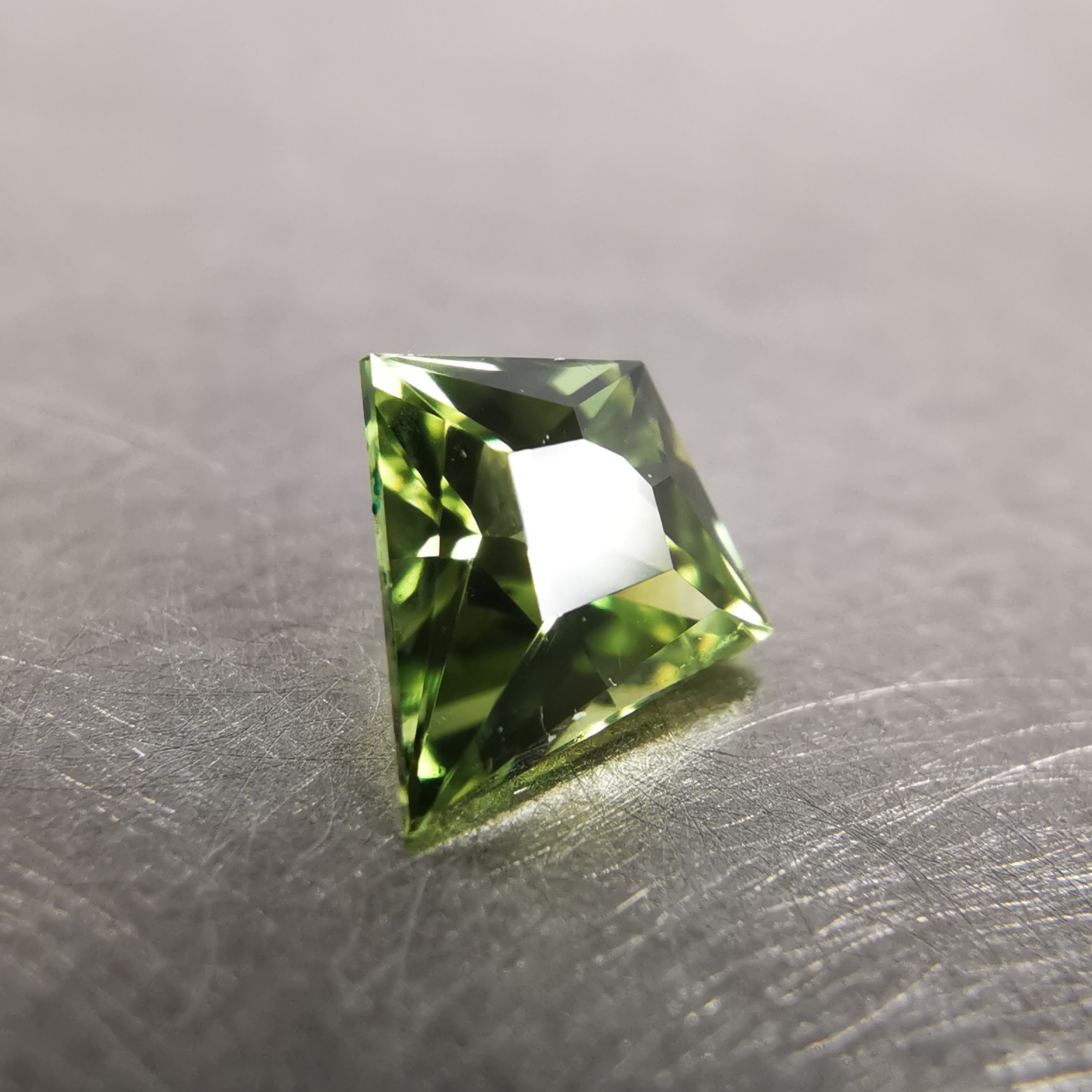 クリアで落ち着いた若草色で、木漏れ日のようにキラキラと輝くサファイアです。