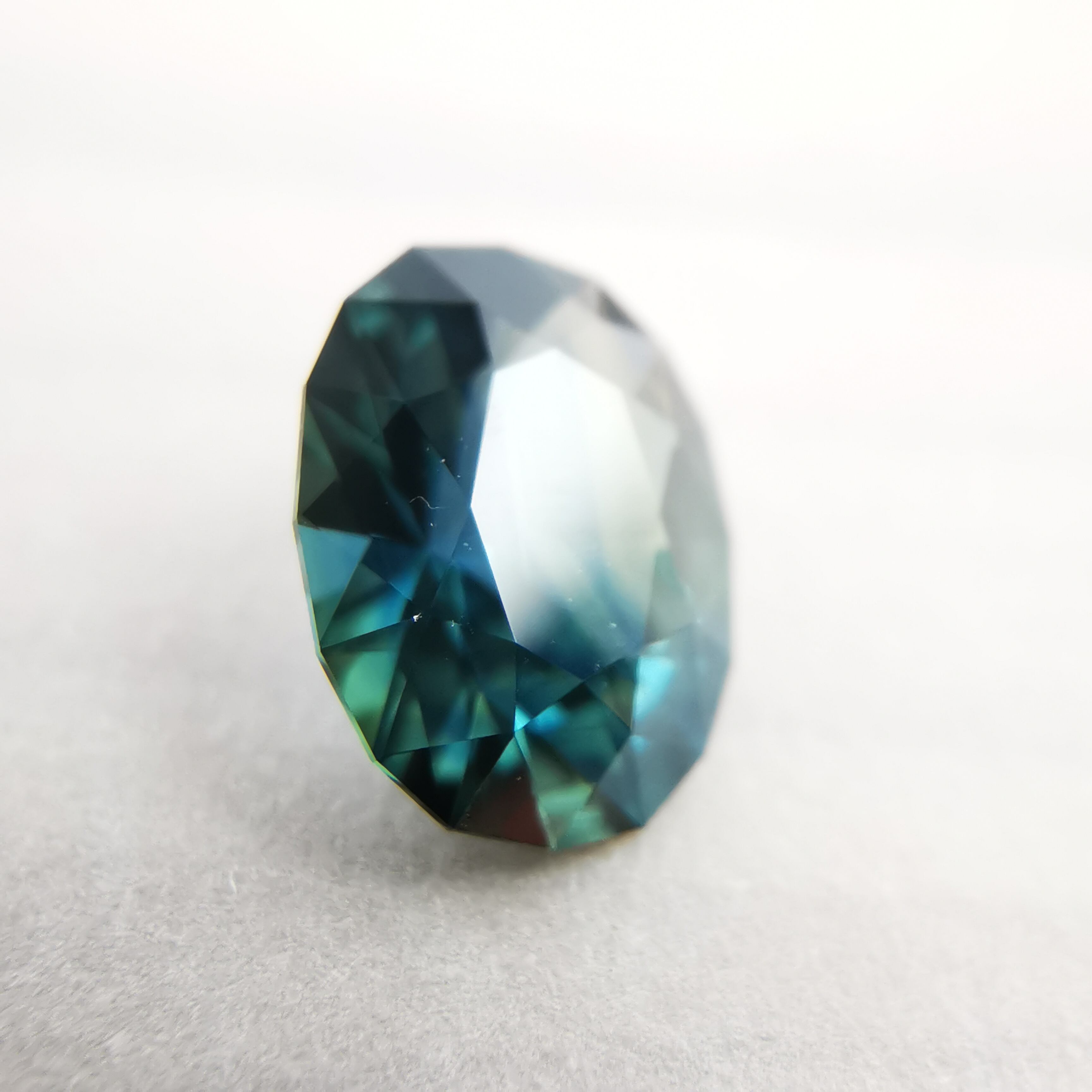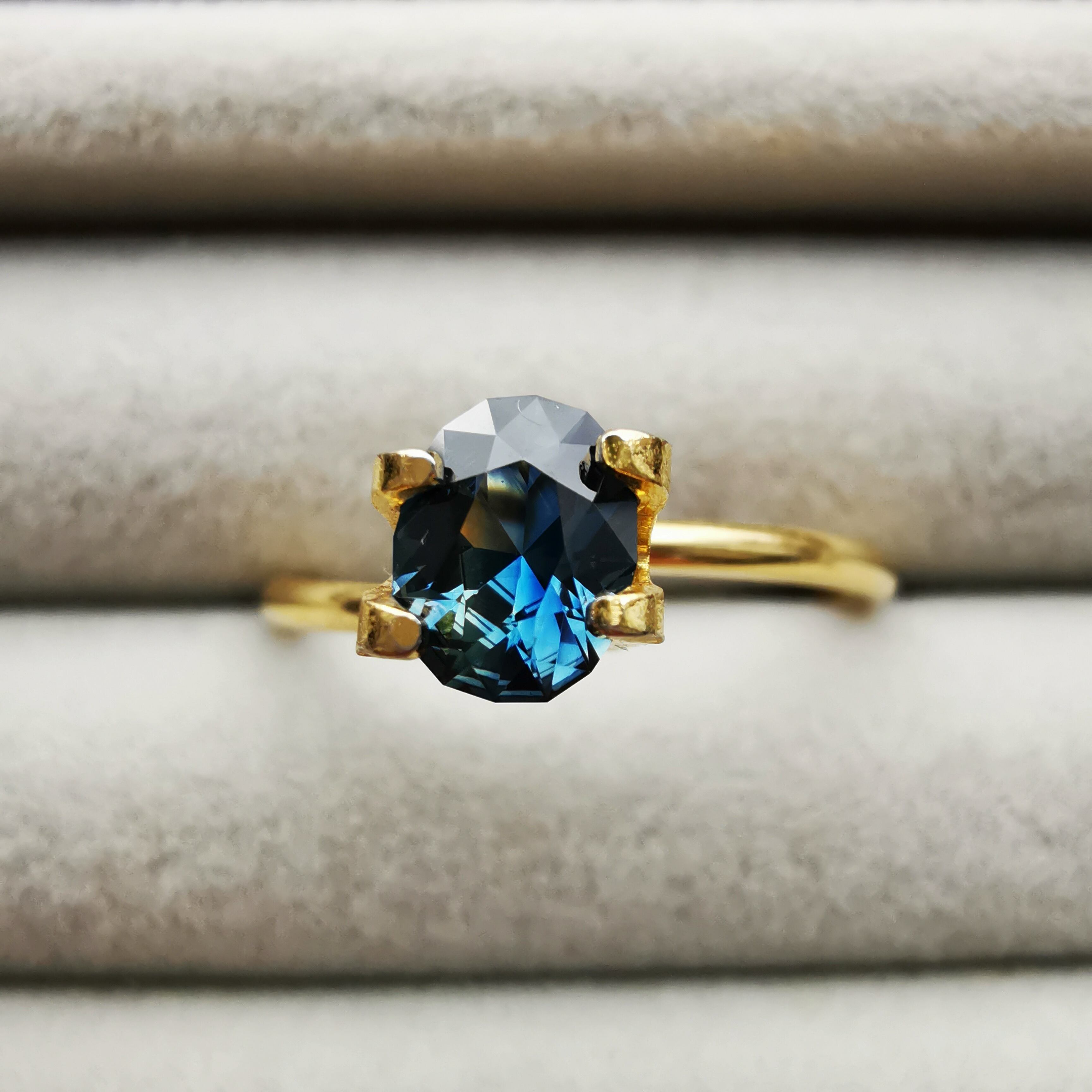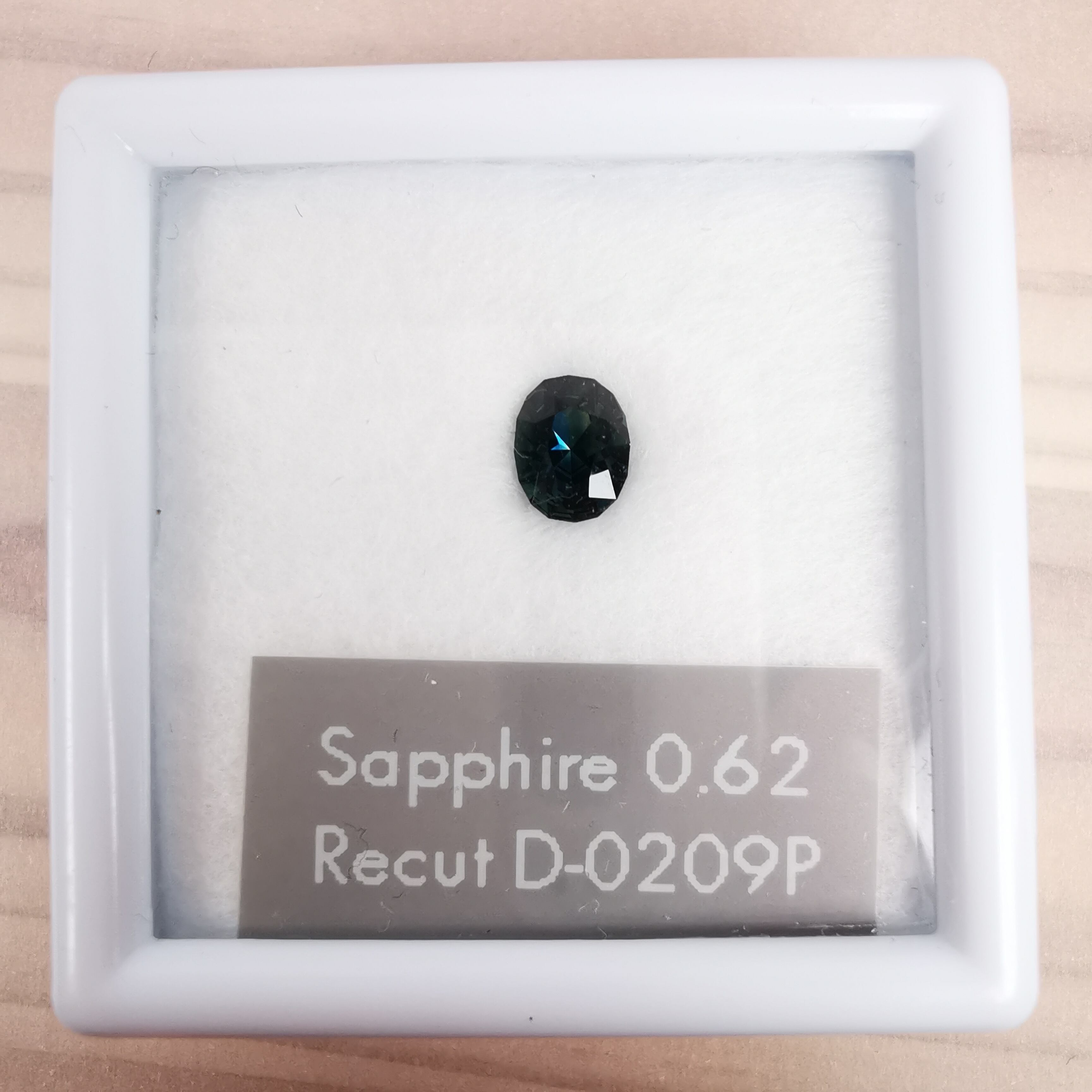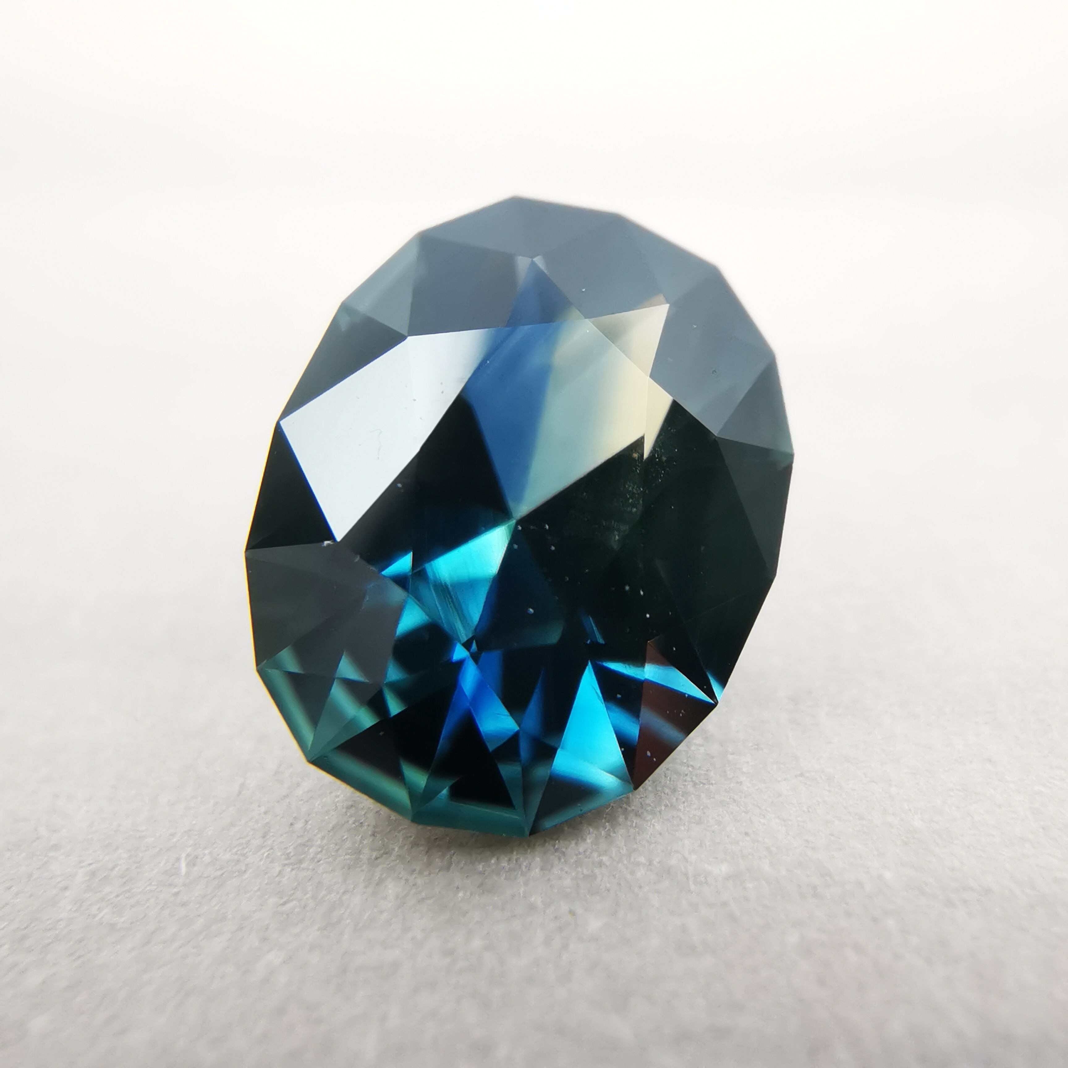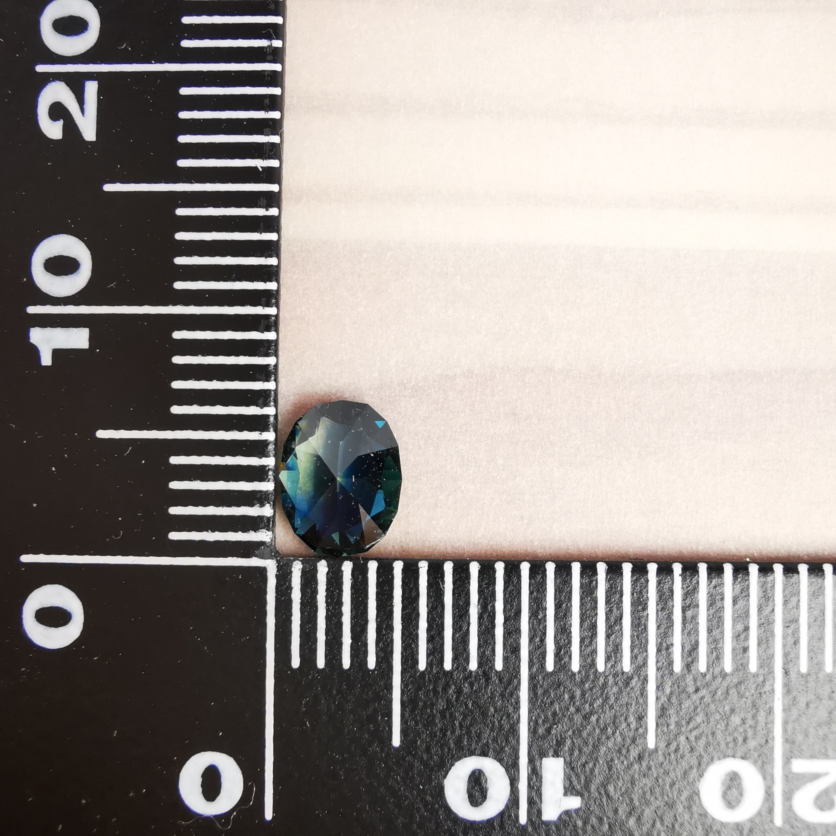 暗い石の中からティールカラーが鋭くきらめくサファイアです。
