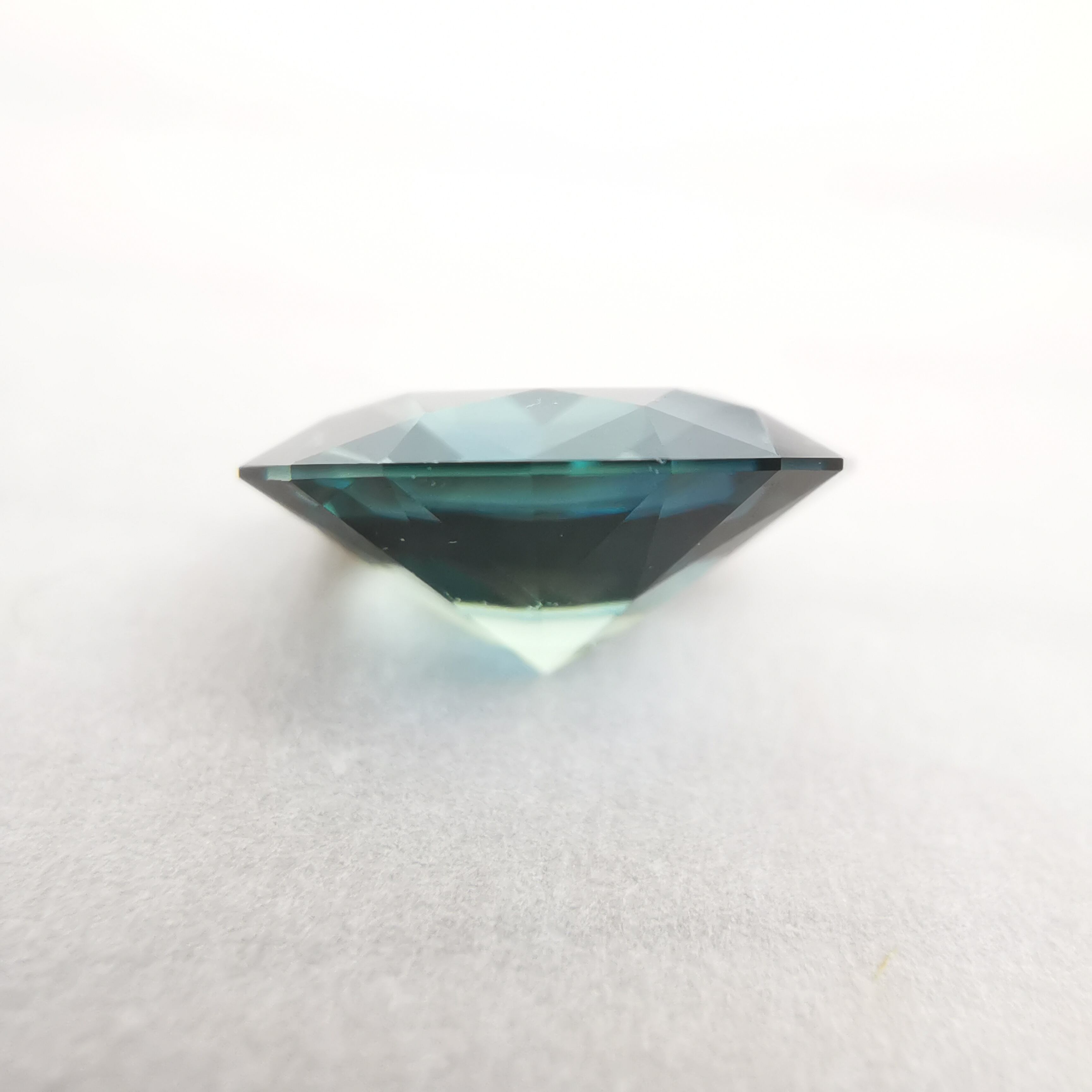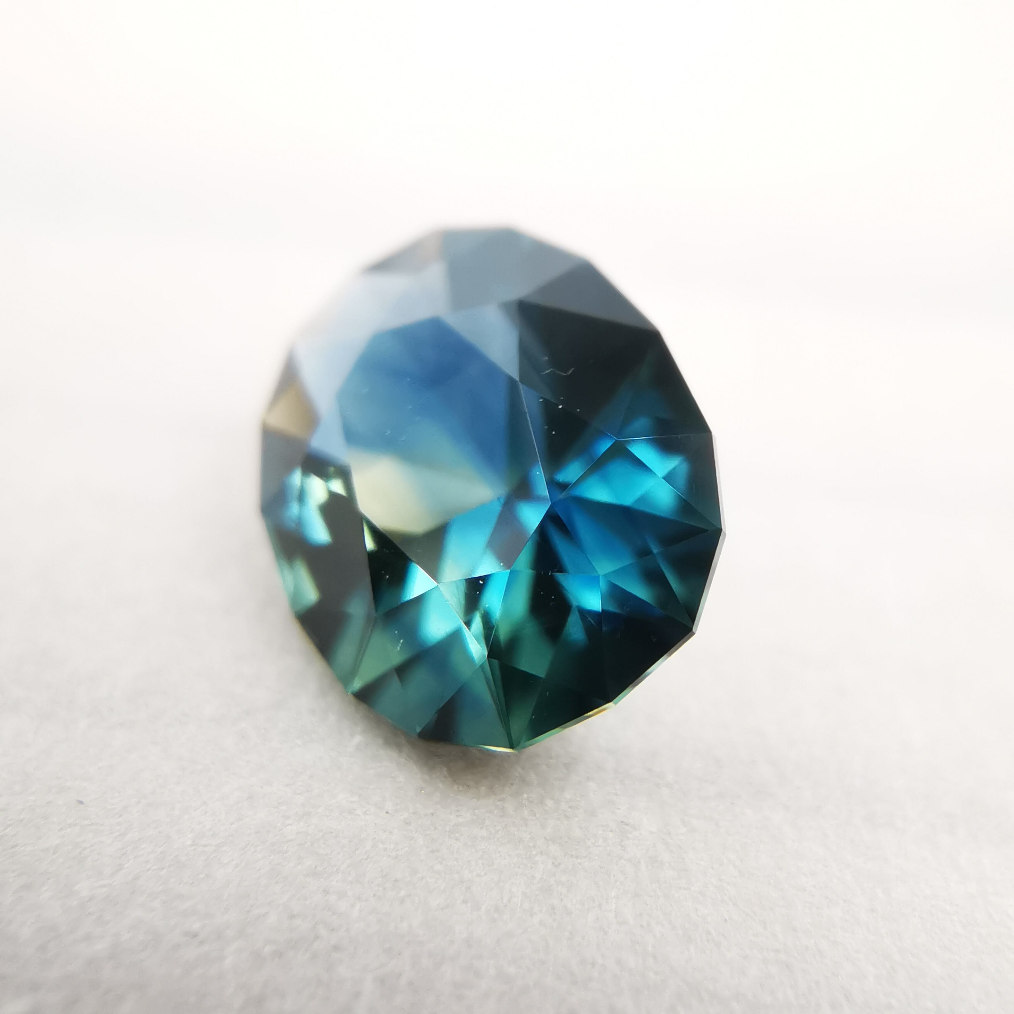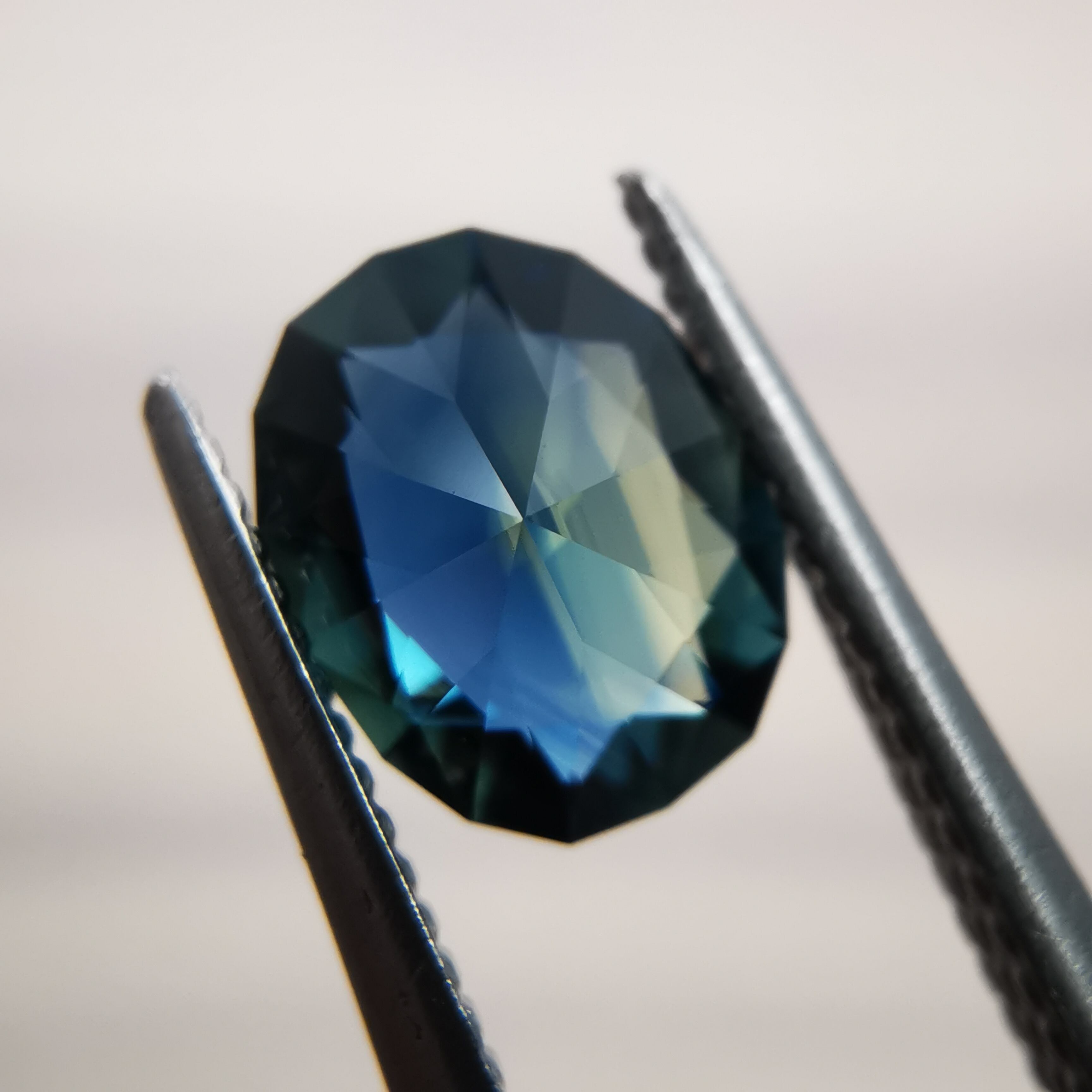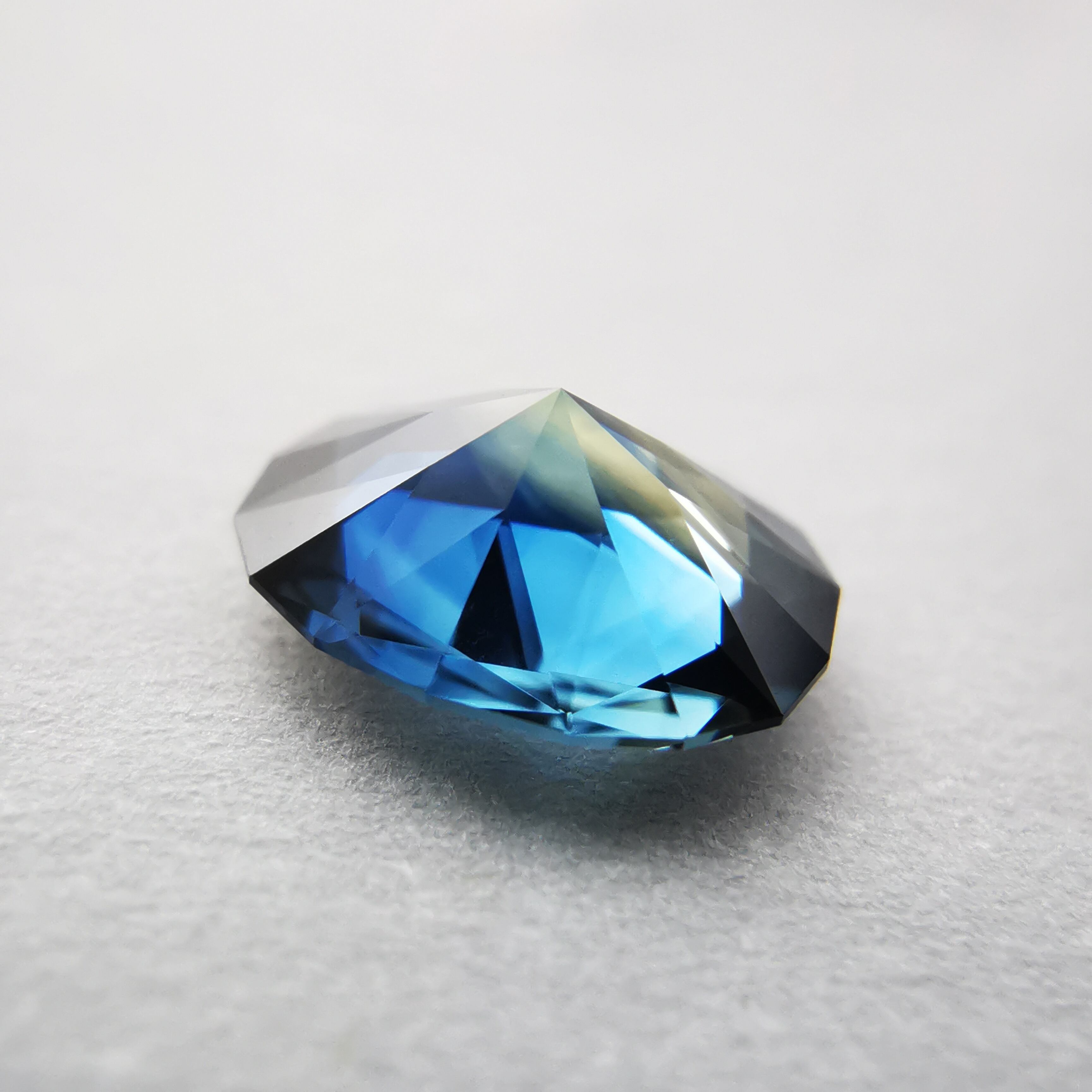 暗い石の中からティールカラーが鋭くきらめくサファイアです。