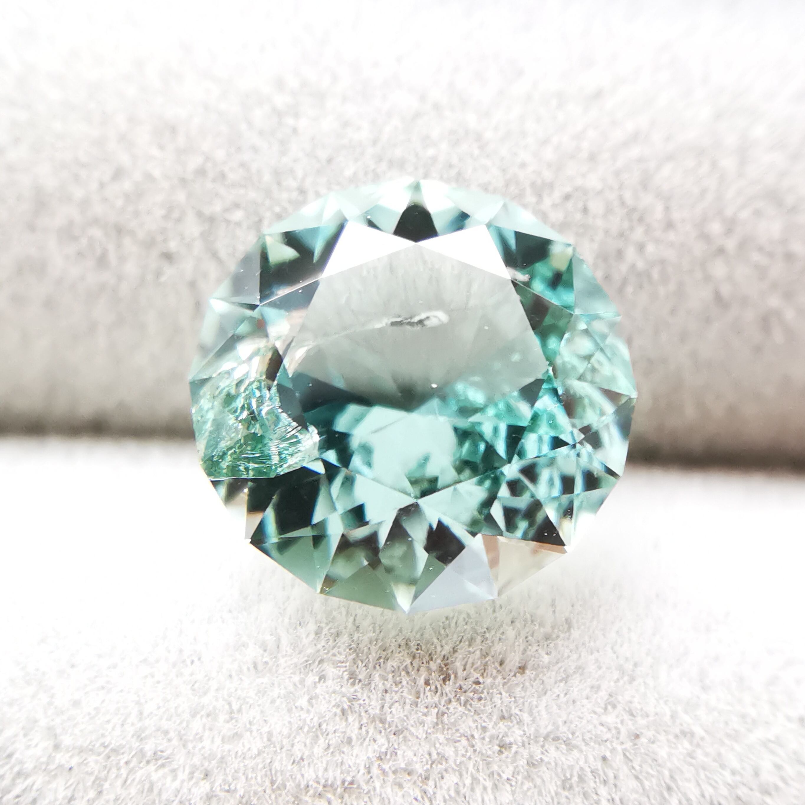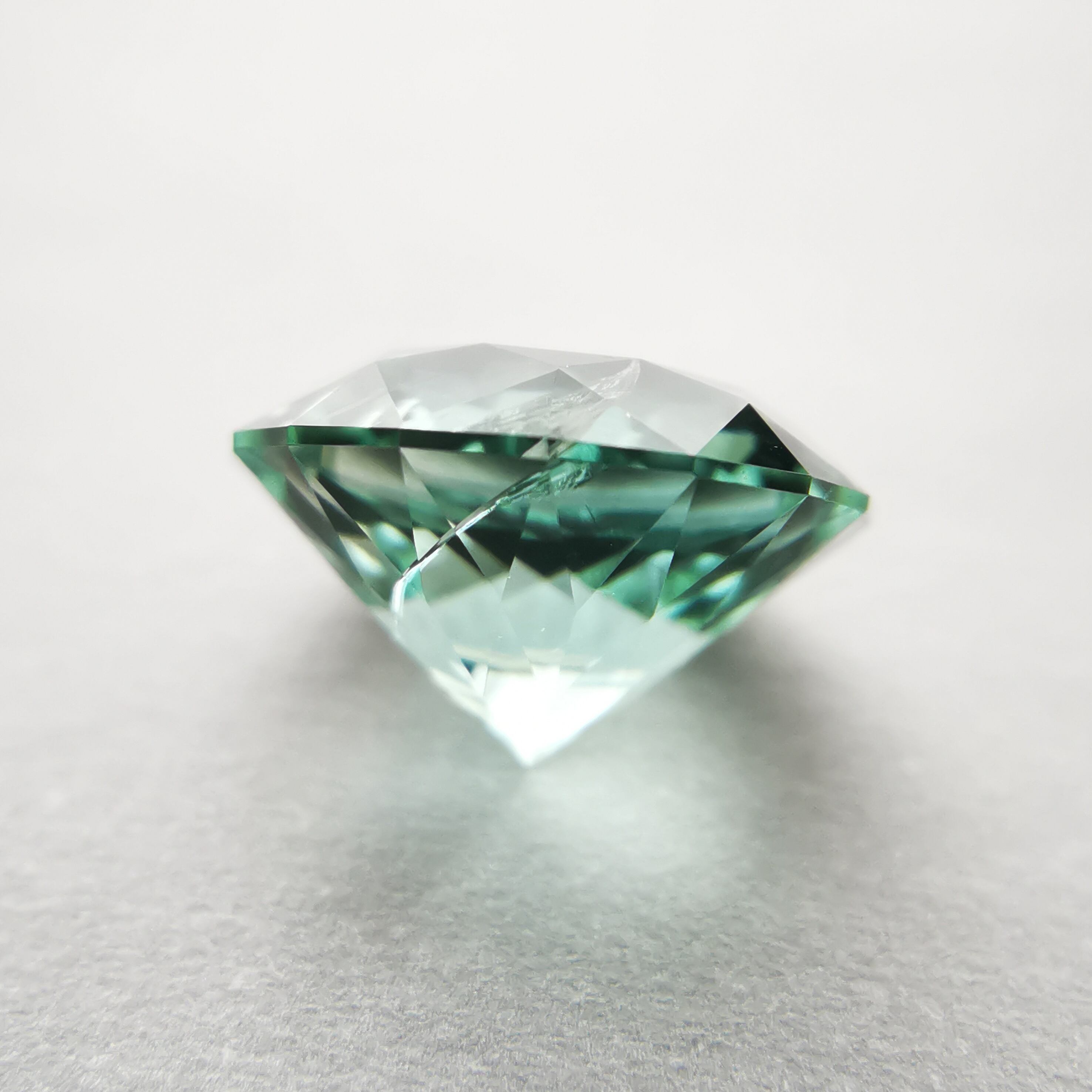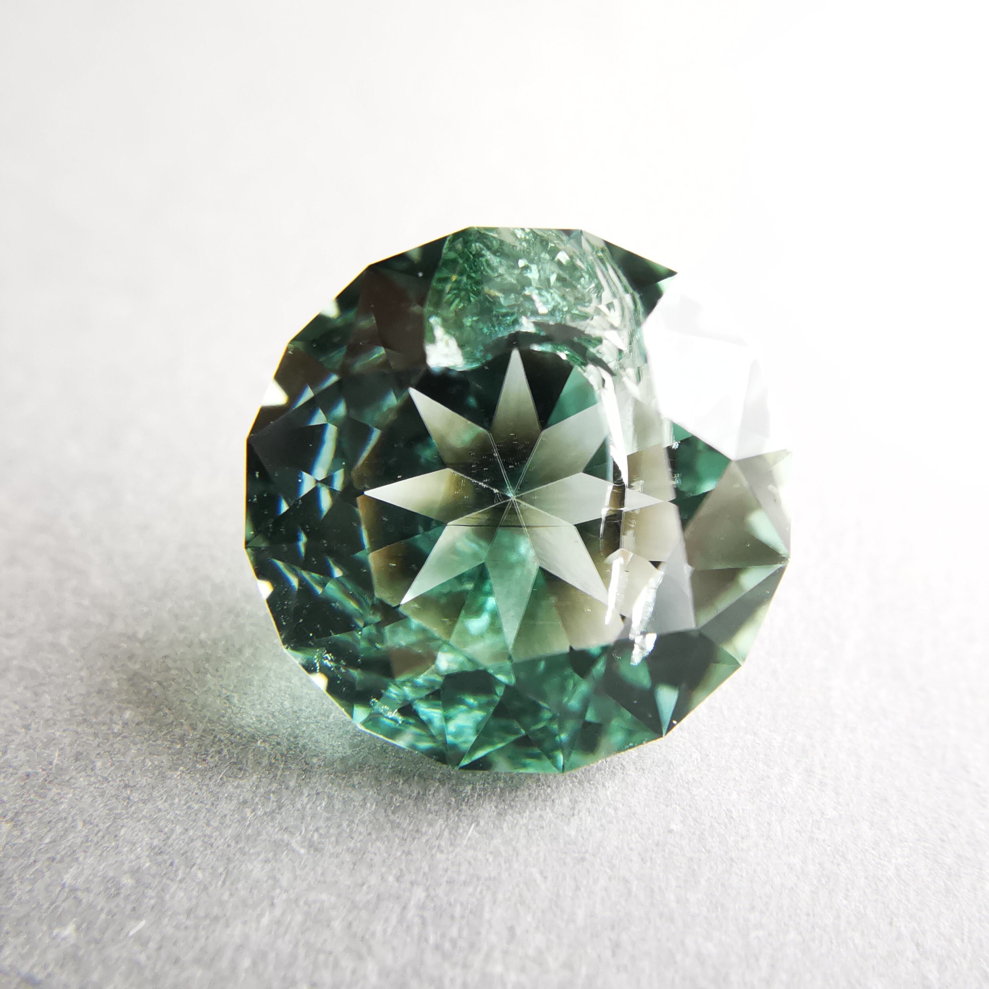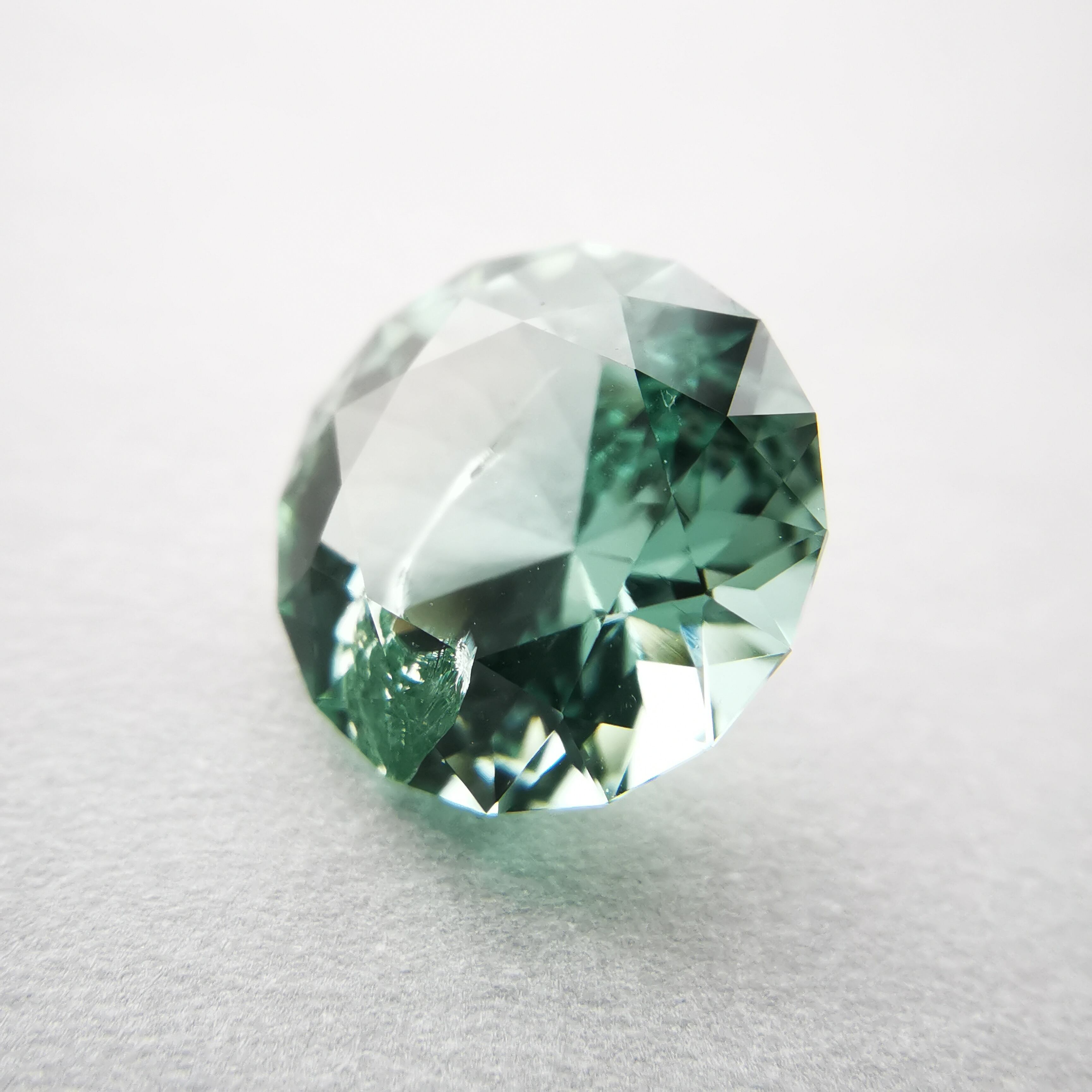 厚い氷のような、透明感の高い青みのグリーン、アイスグリーンのトルマリンです。