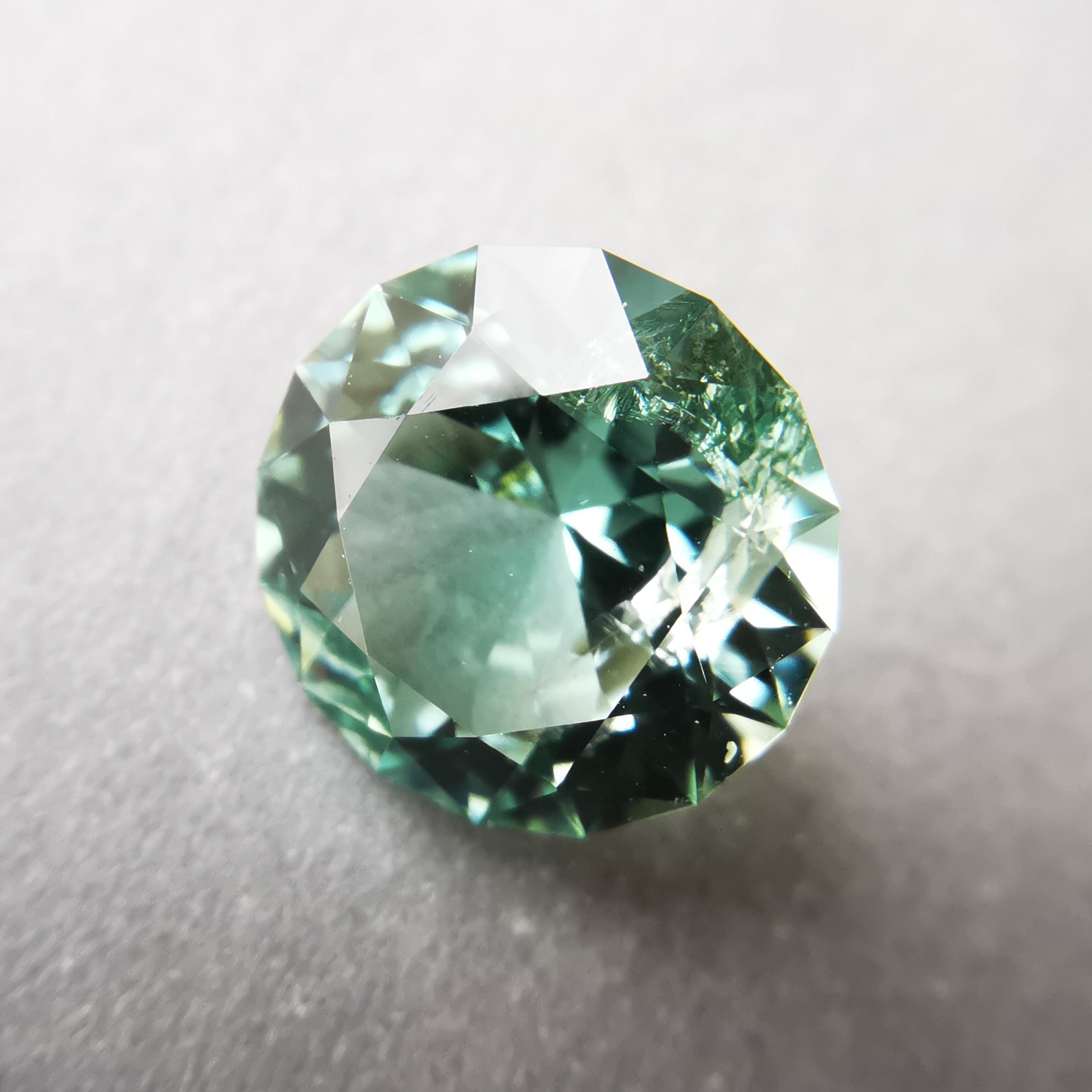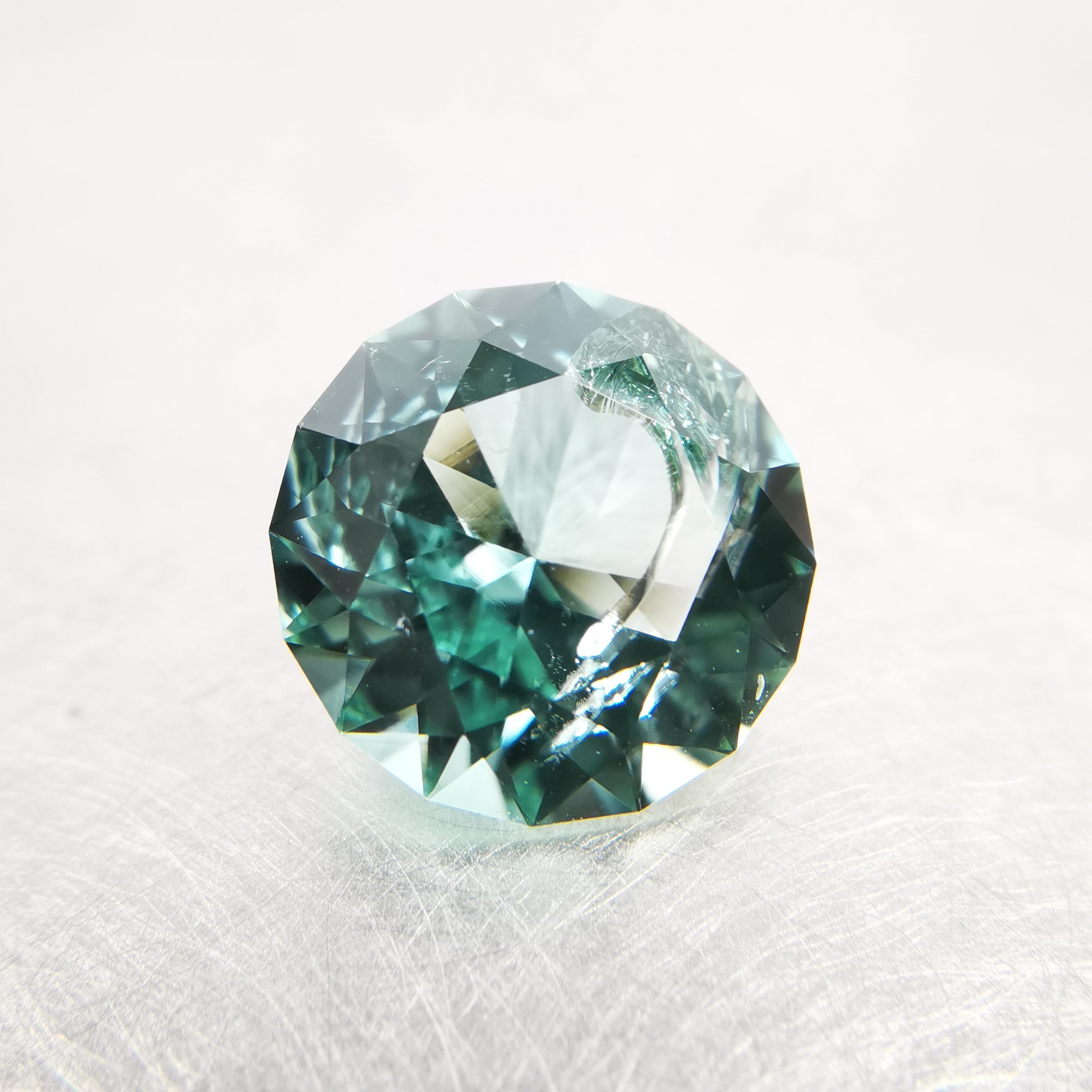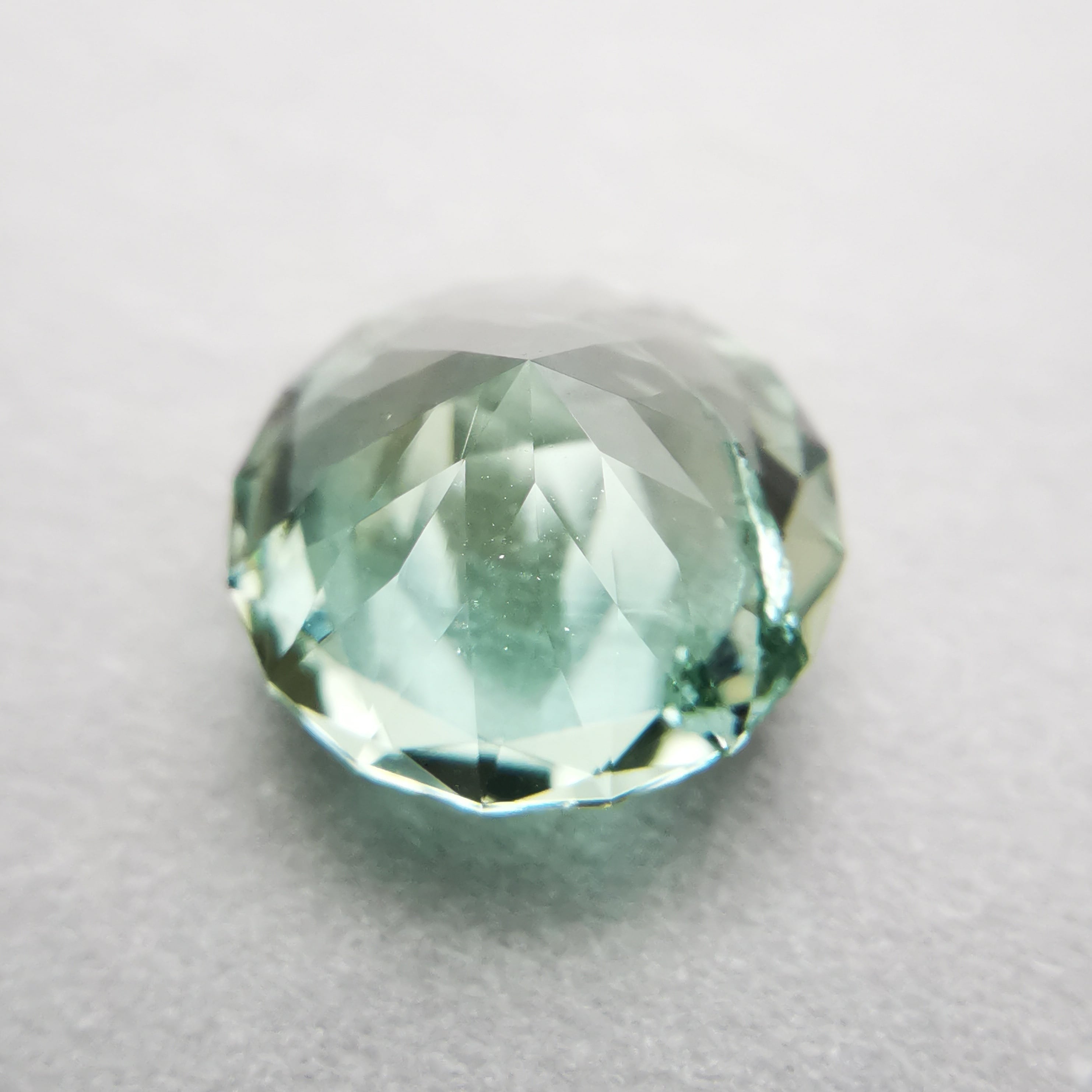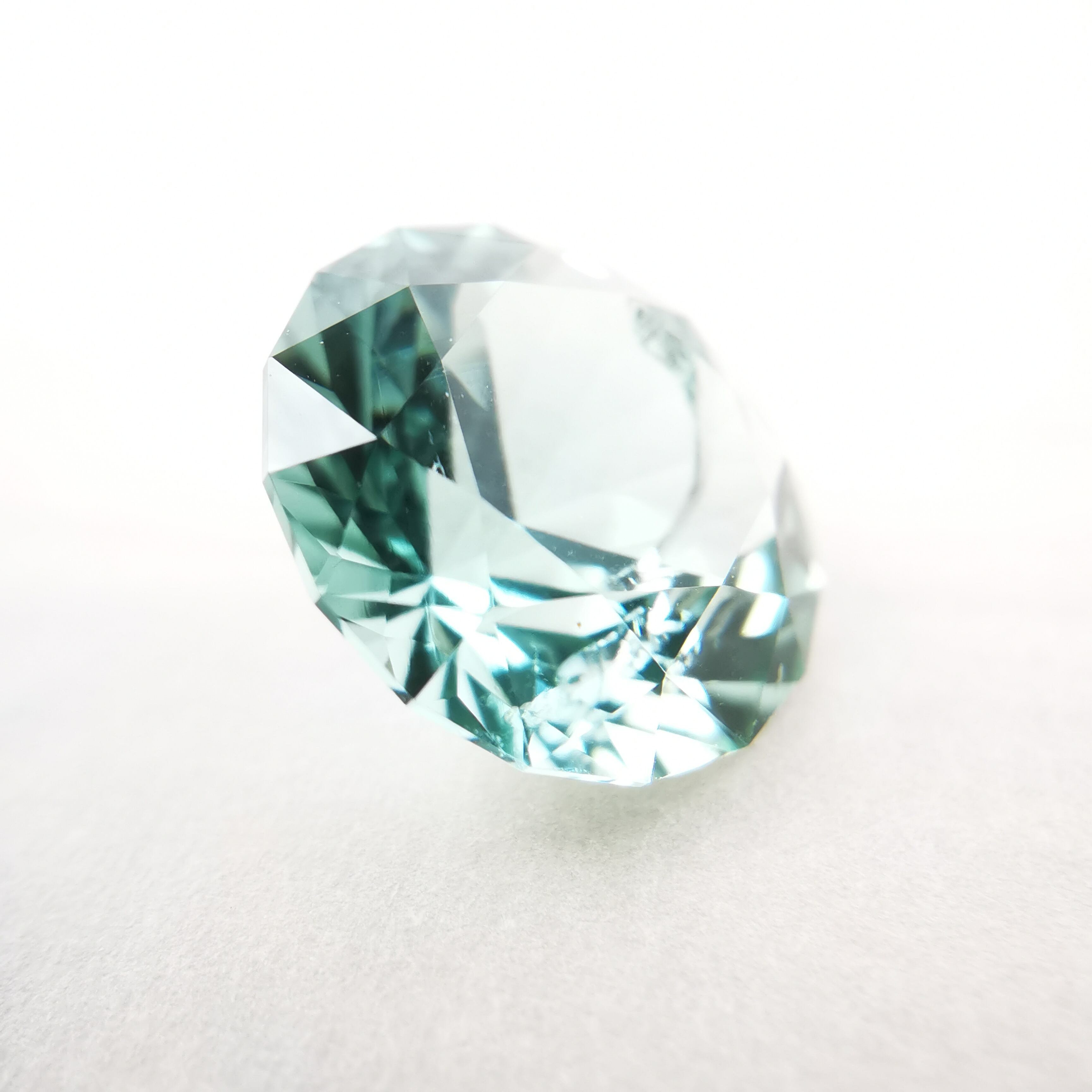 厚い氷のような、透明感の高い青みのグリーン、アイスグリーンのトルマリンです。