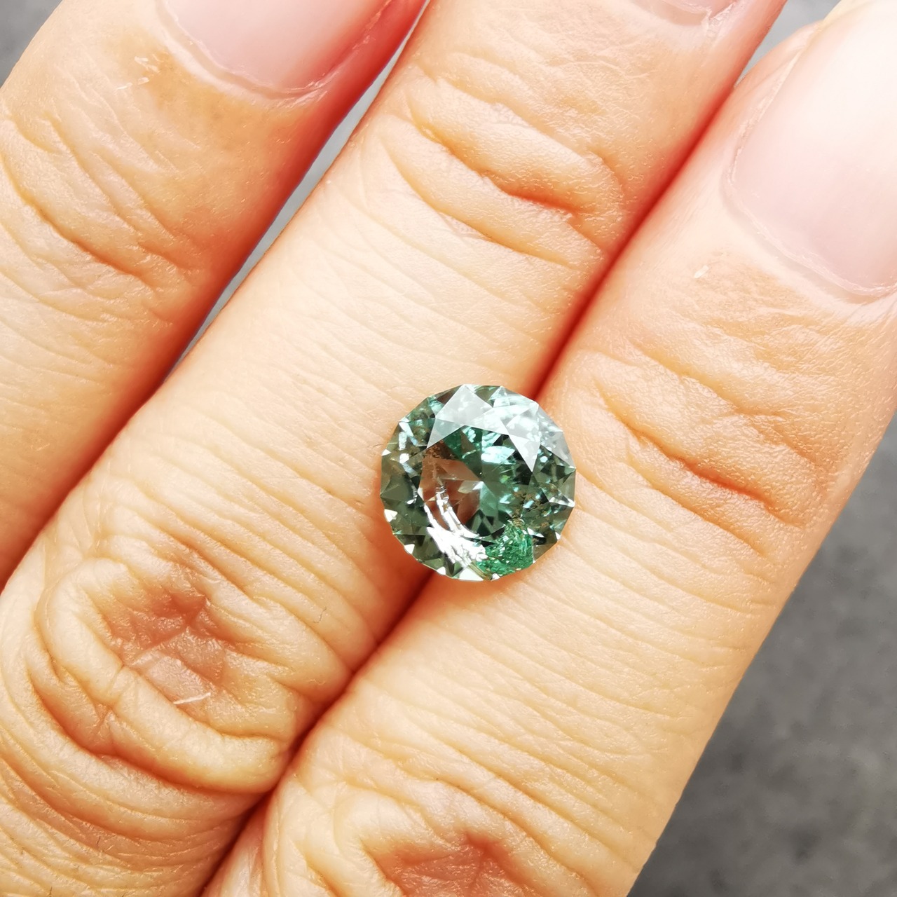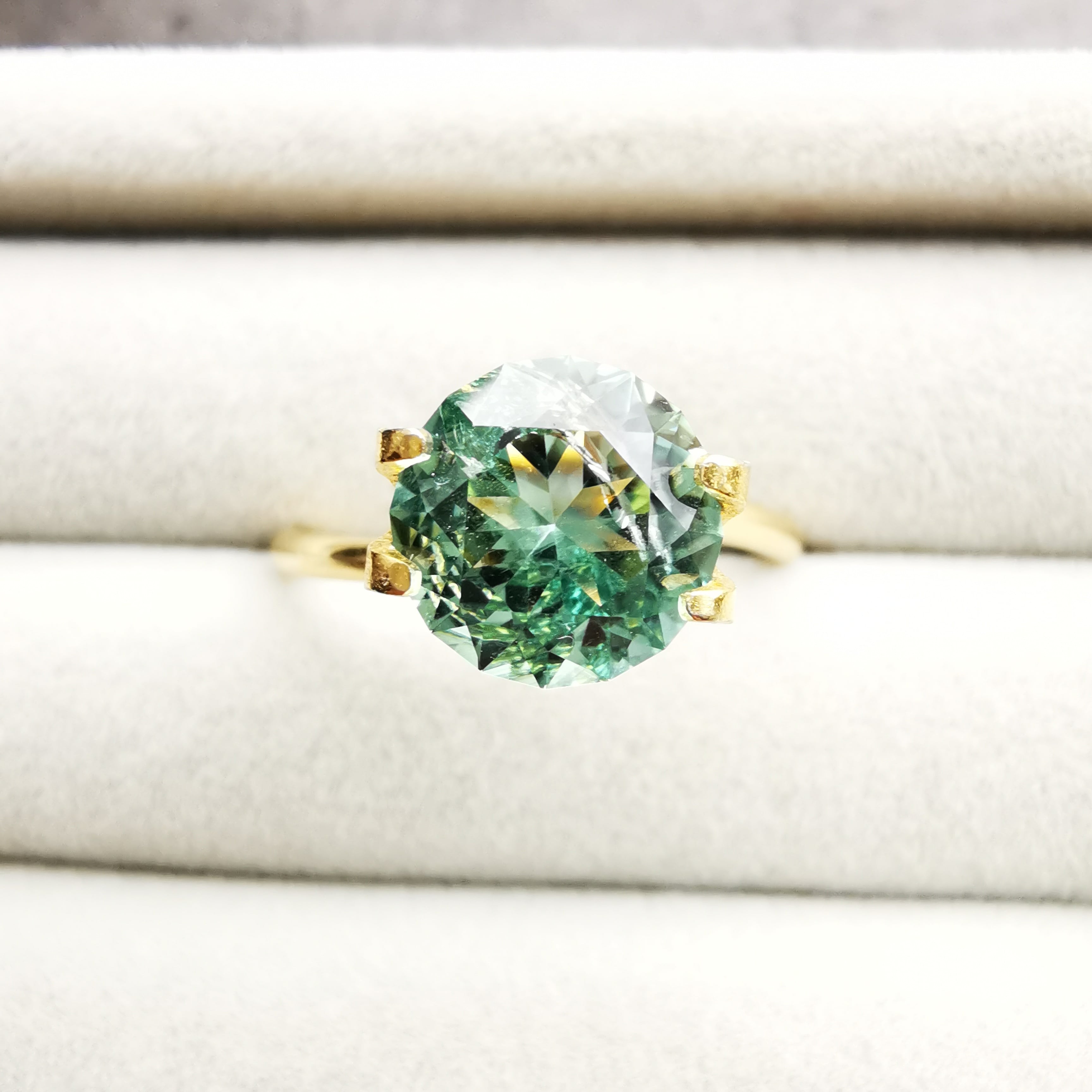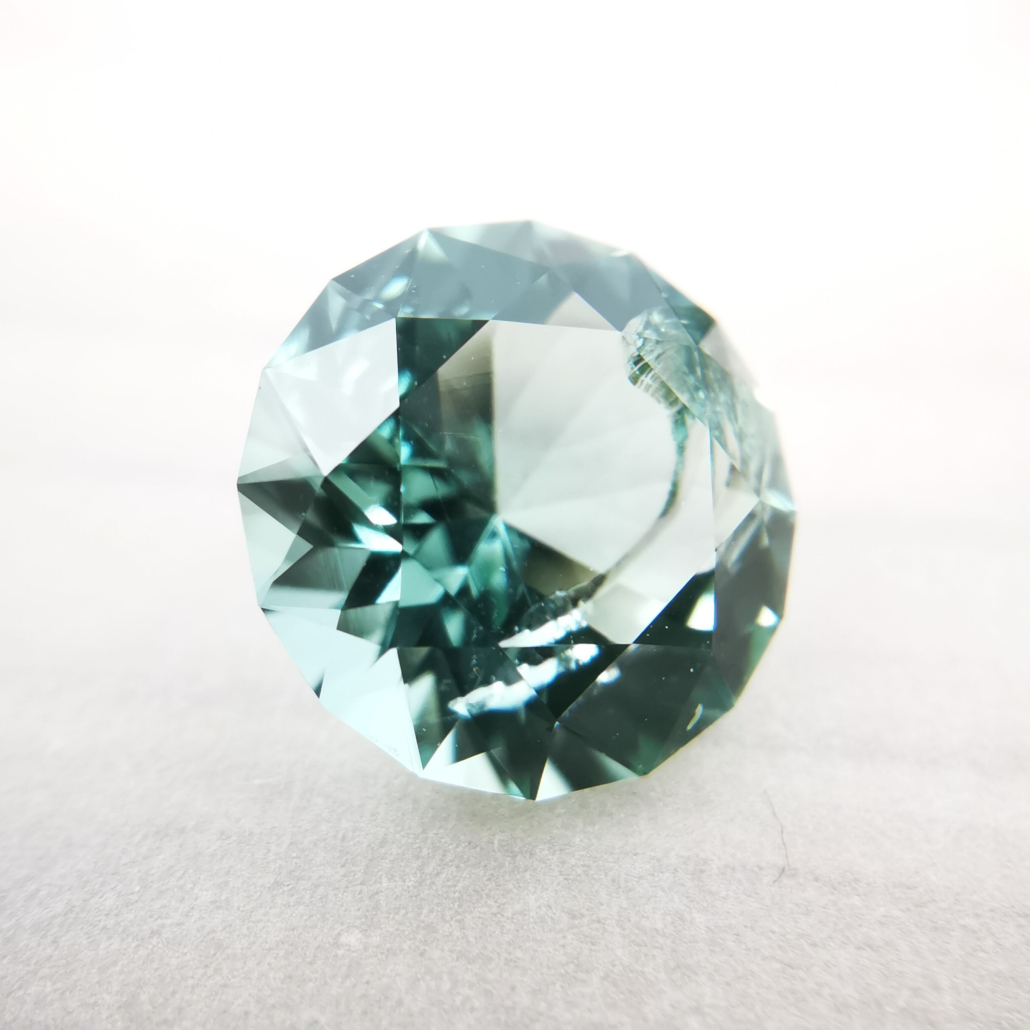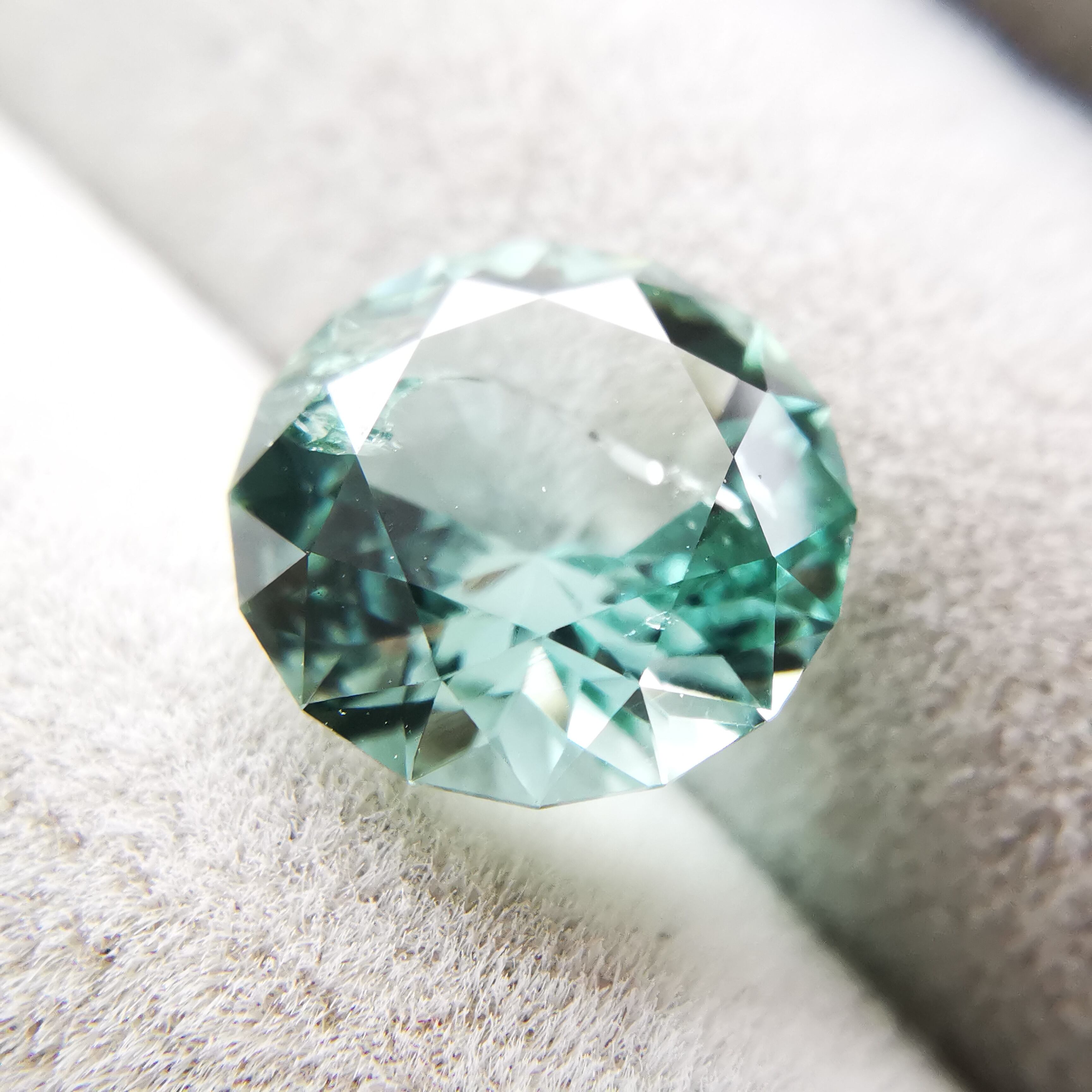 厚い氷のような、透明感の高い青みのグリーン、アイスグリーンのトルマリンです。