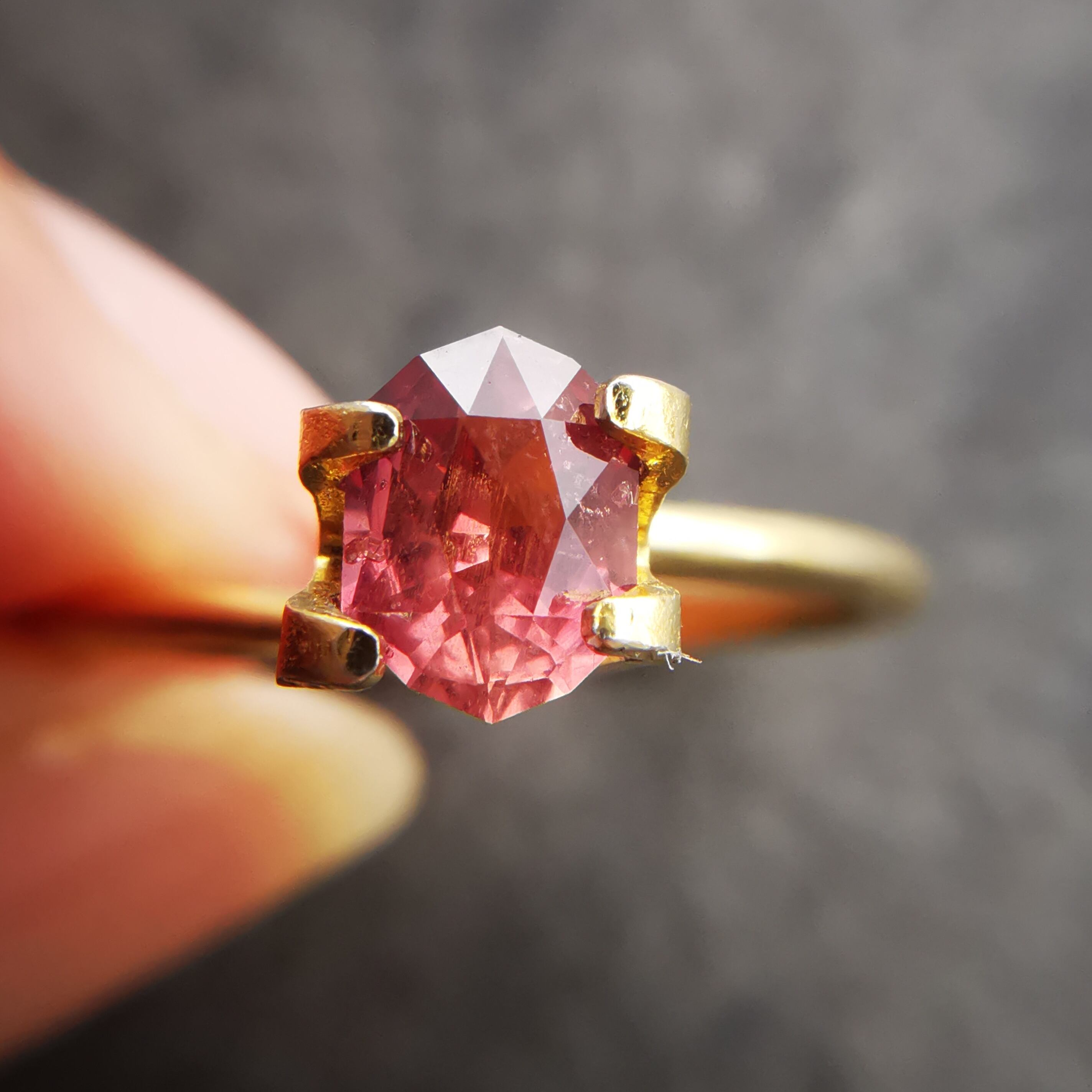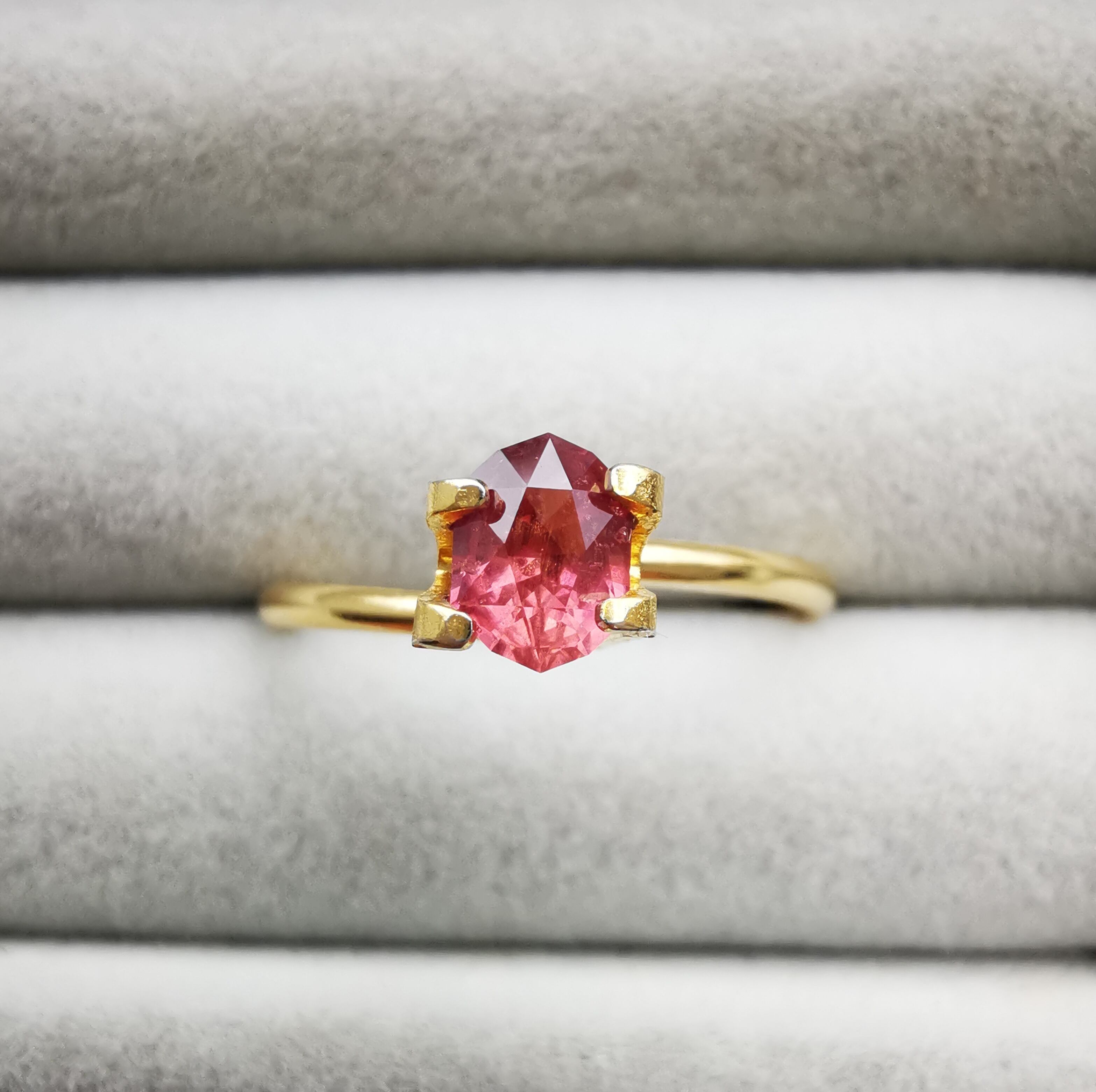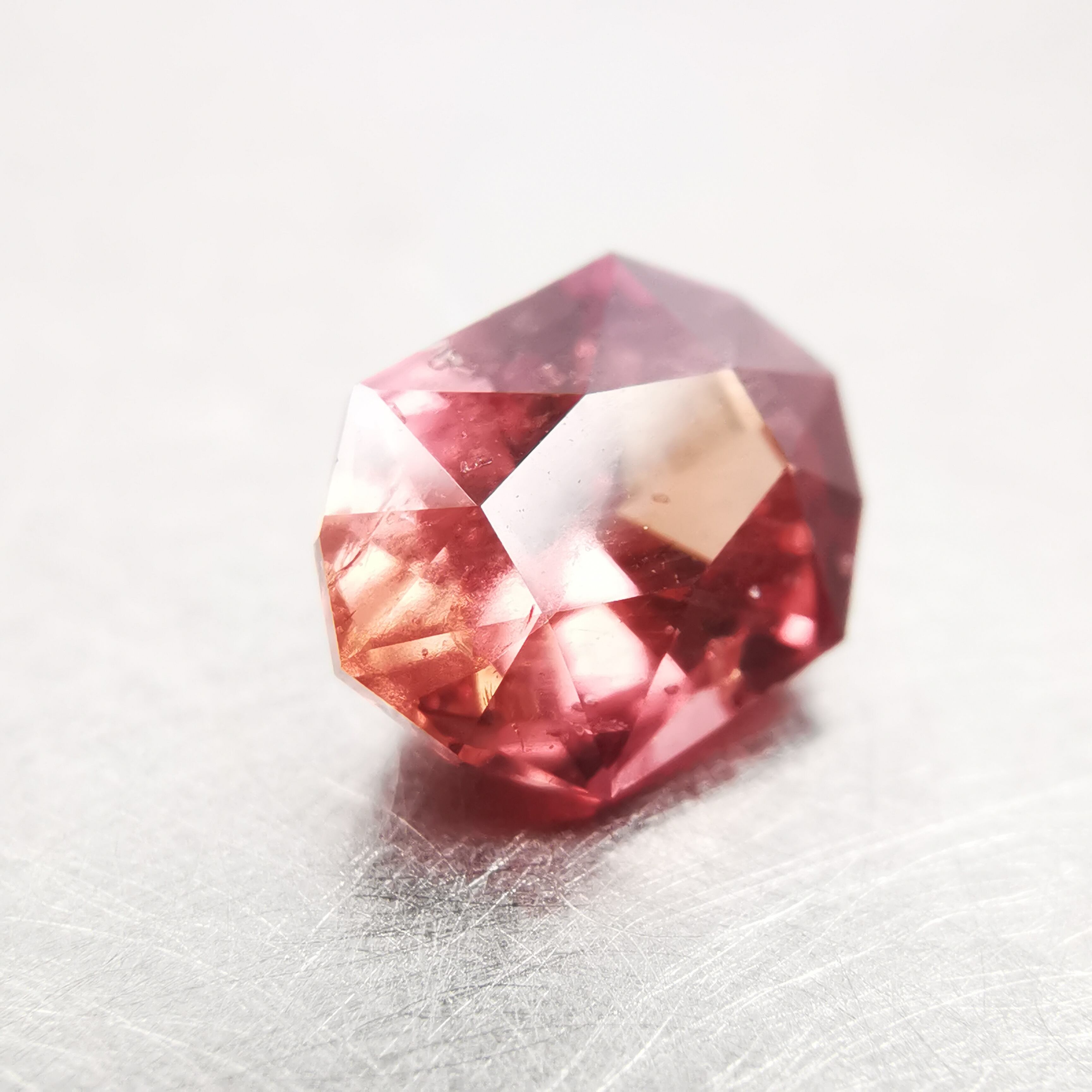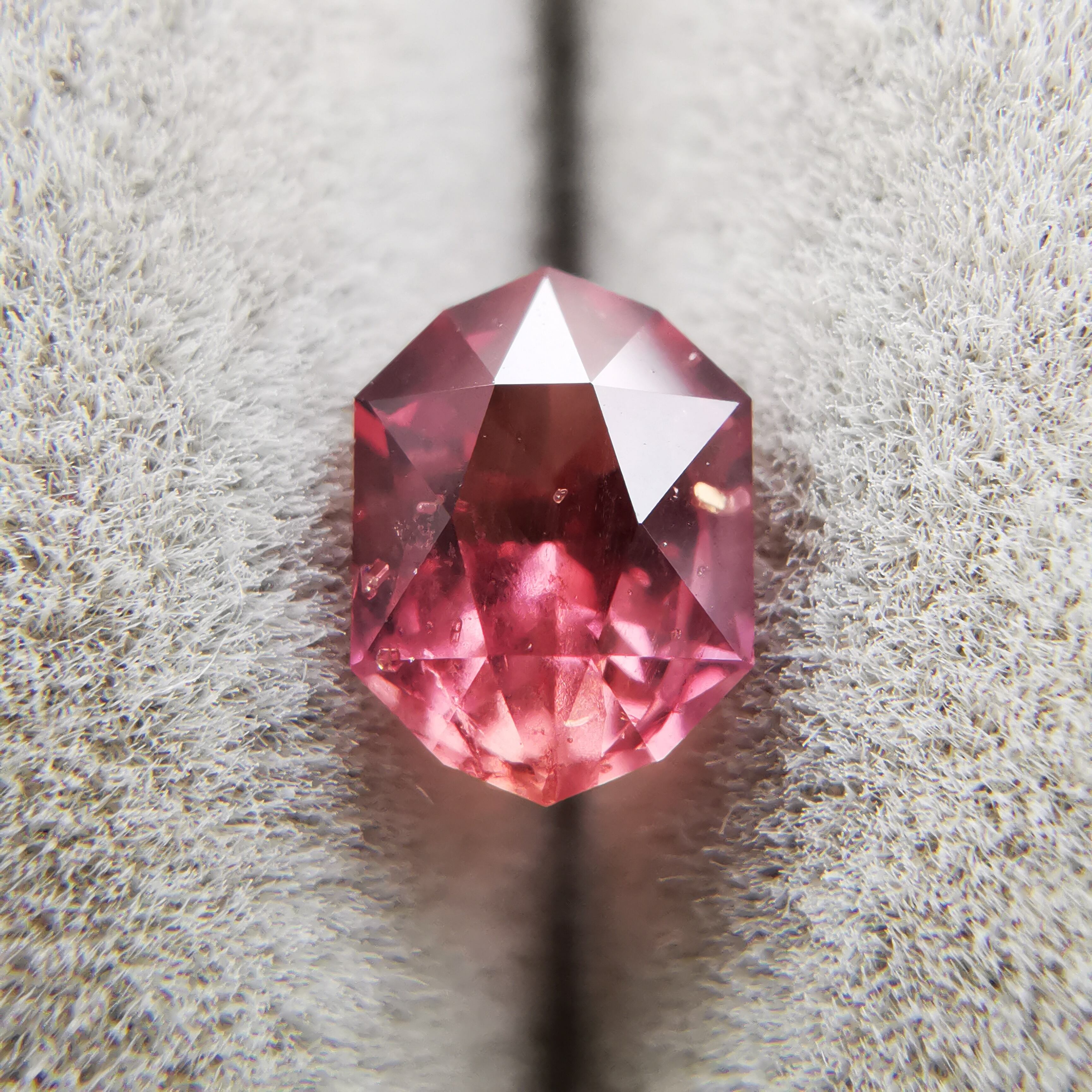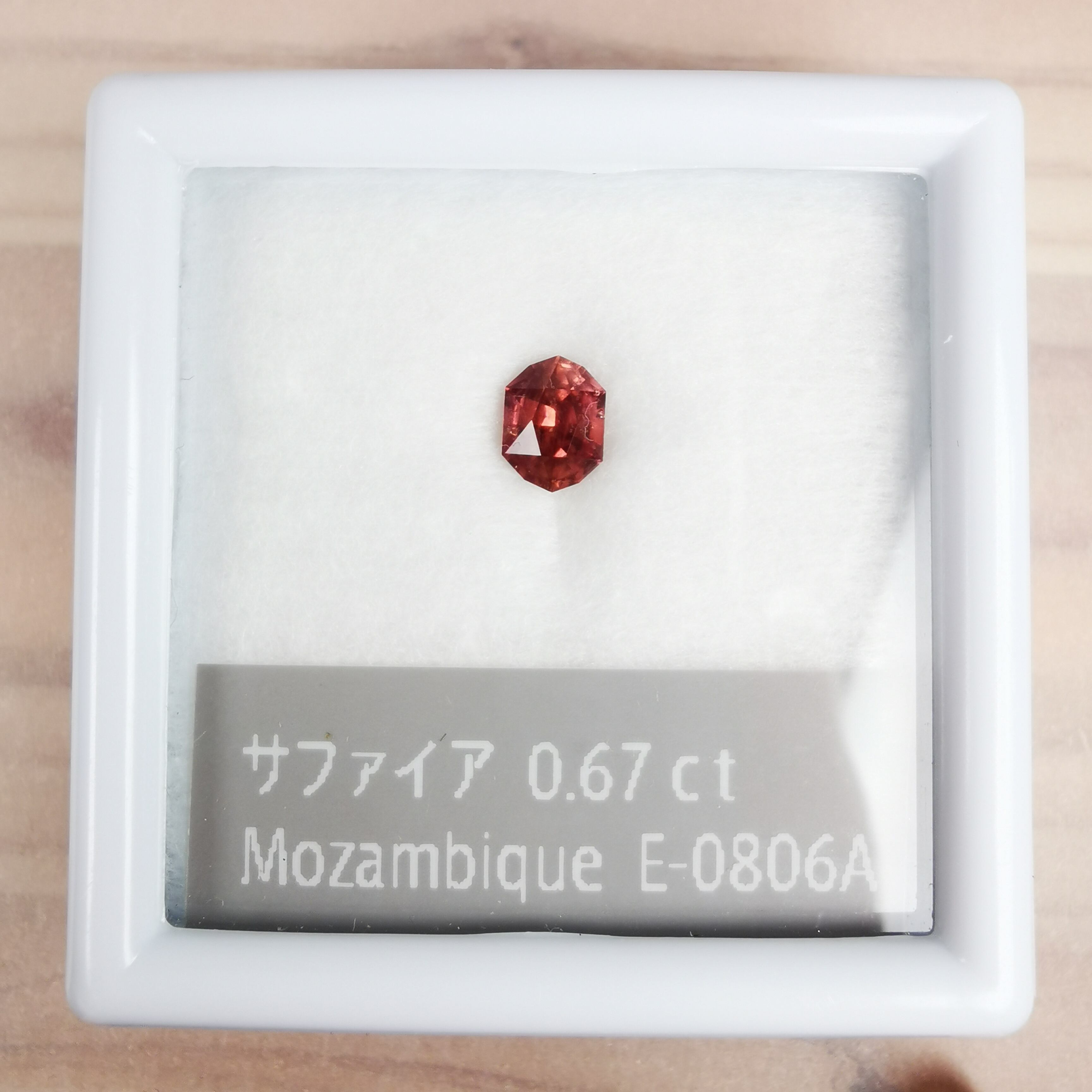 シルキーで落ち着いたピンクオレンジのサファイアです。