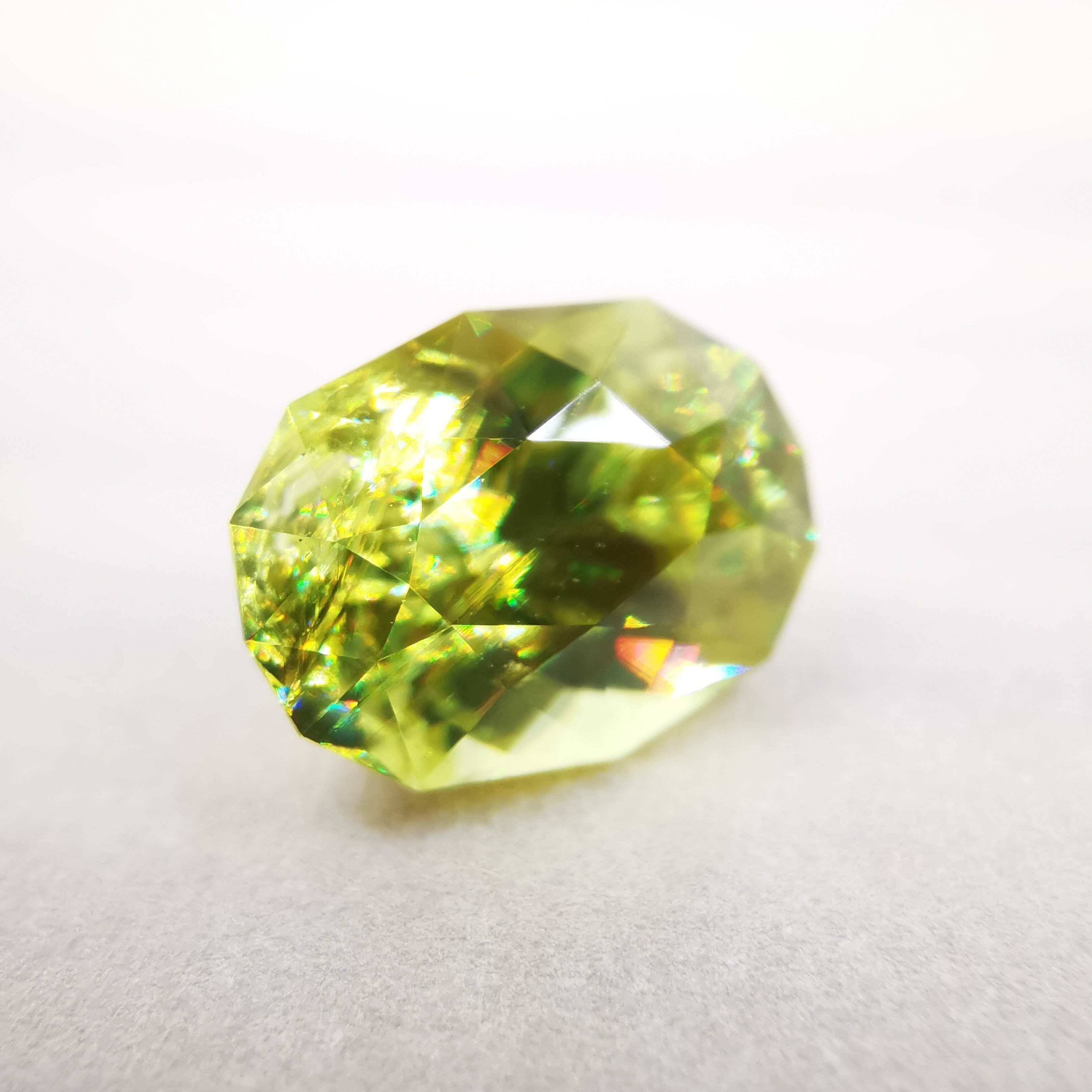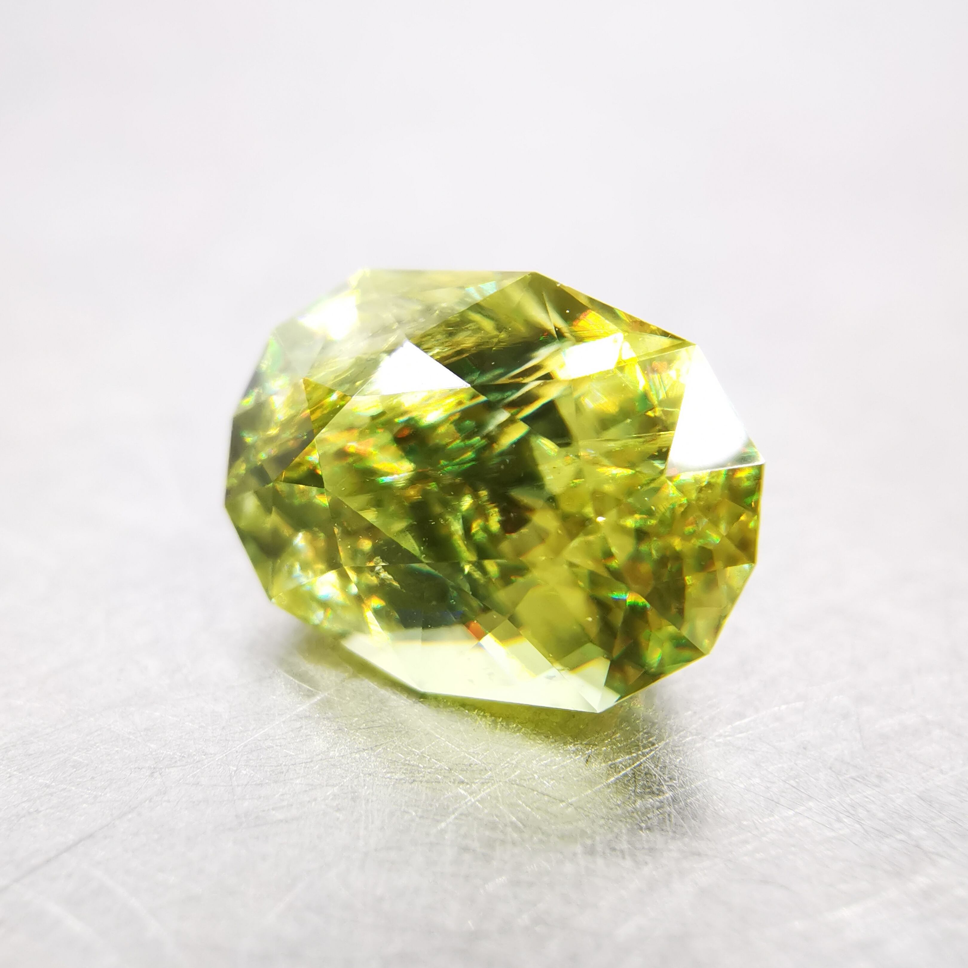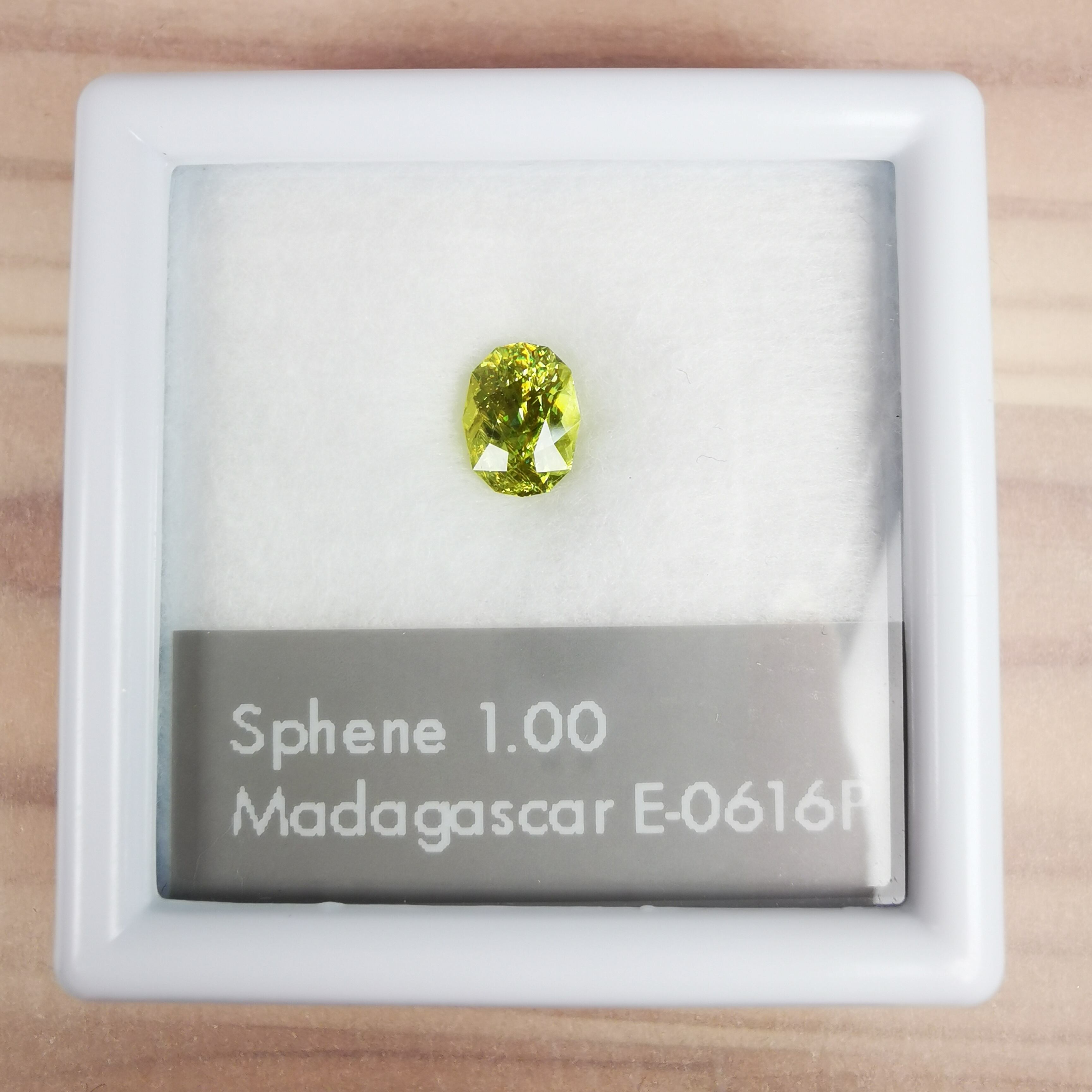 明るいイエローグリーンがギラギラと輝くスフェーンです。