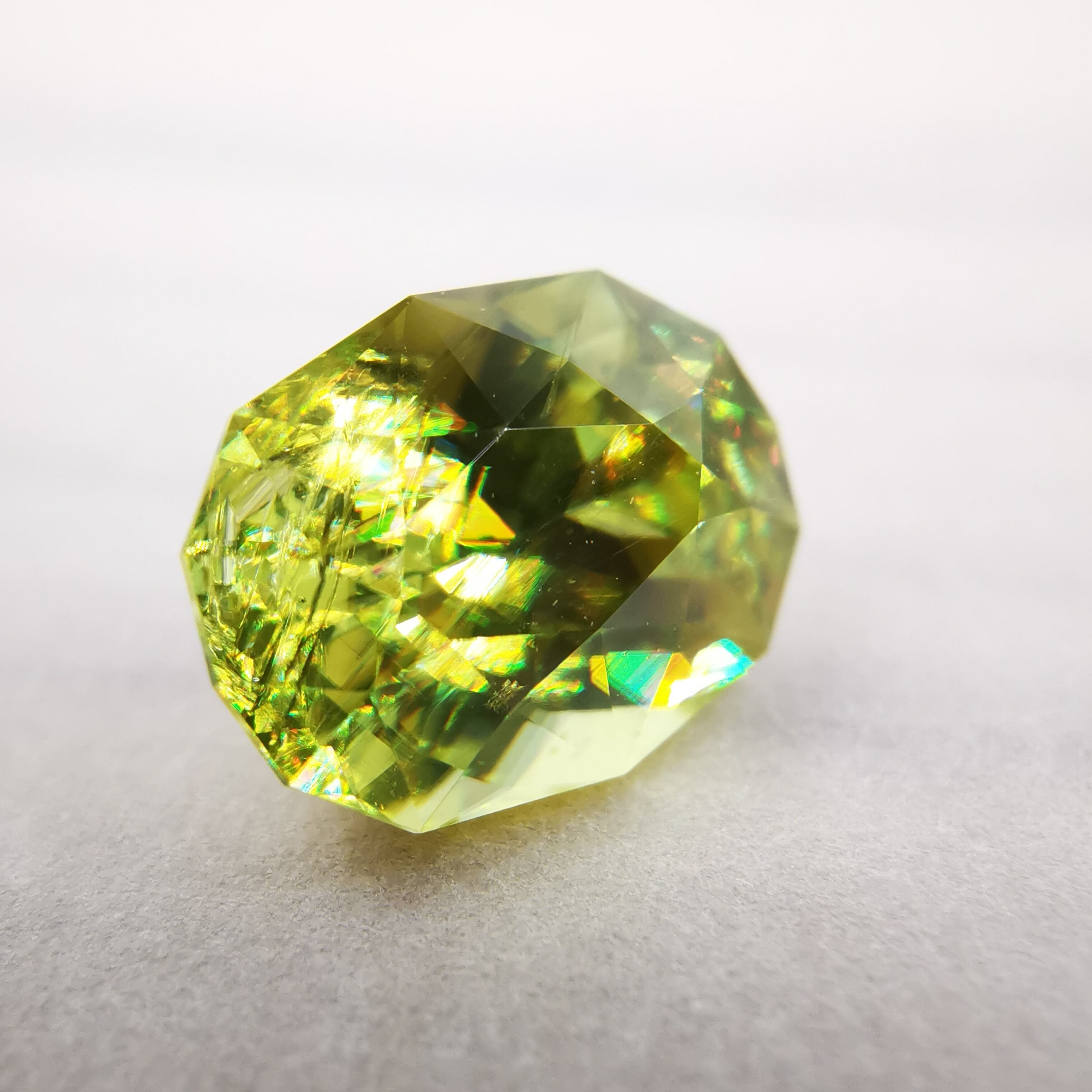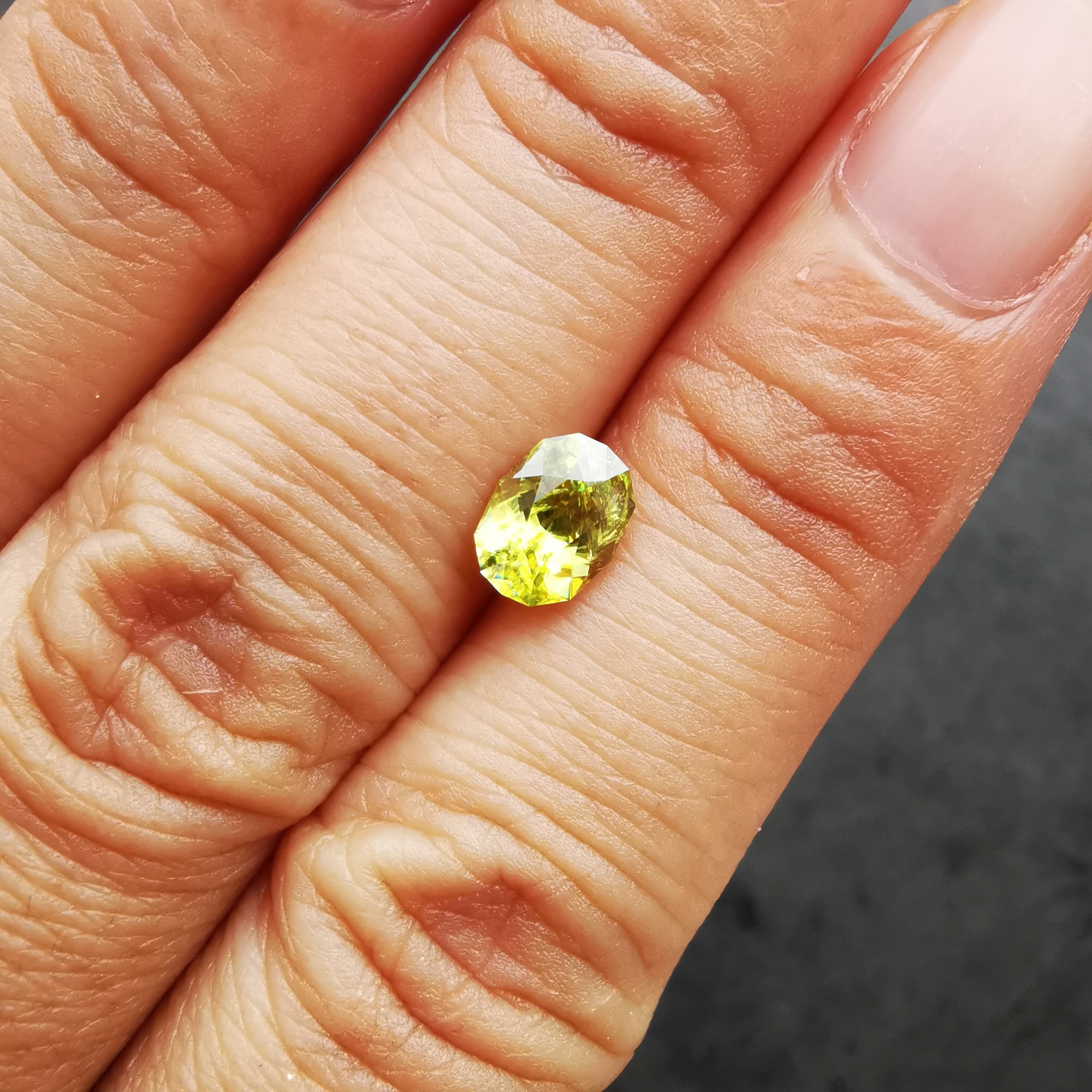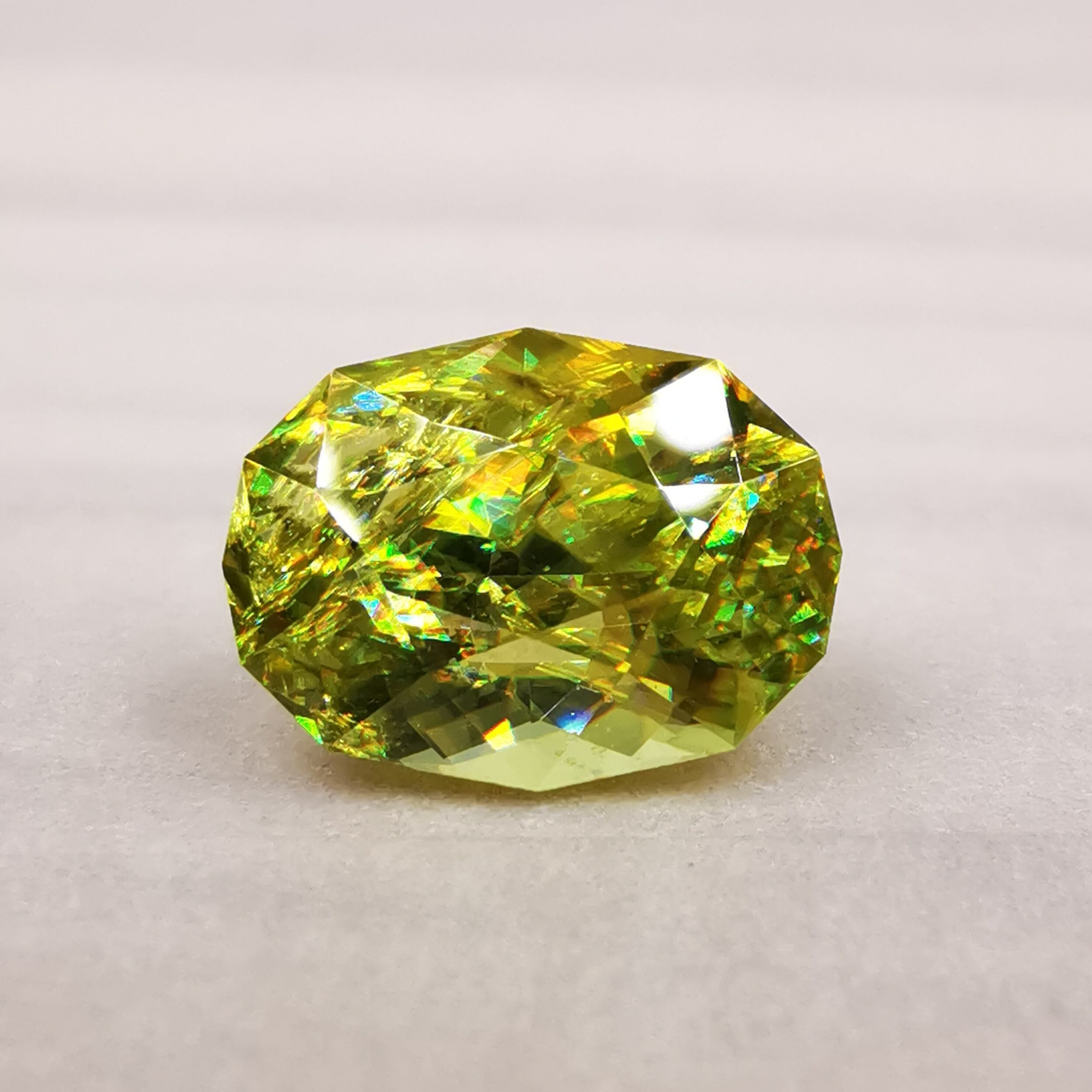 明るいイエローグリーンがギラギラと輝くスフェーンです。