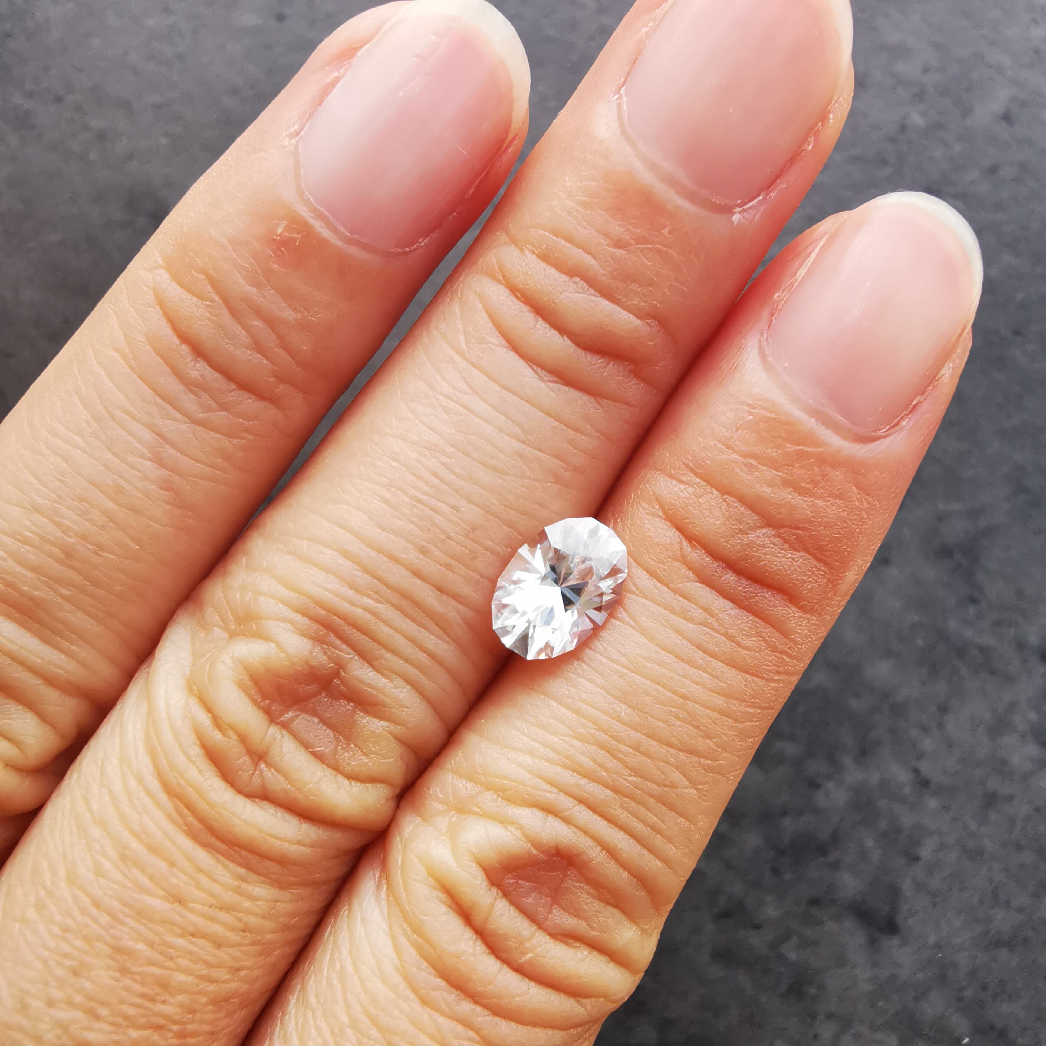 無色のジルコンは、ダイヤモンドと混同されていた時期もあるほど、ダイヤモンド並みの強いきらめきがあり、その輝きを2カラット弱の大きさで存分に楽しめます。