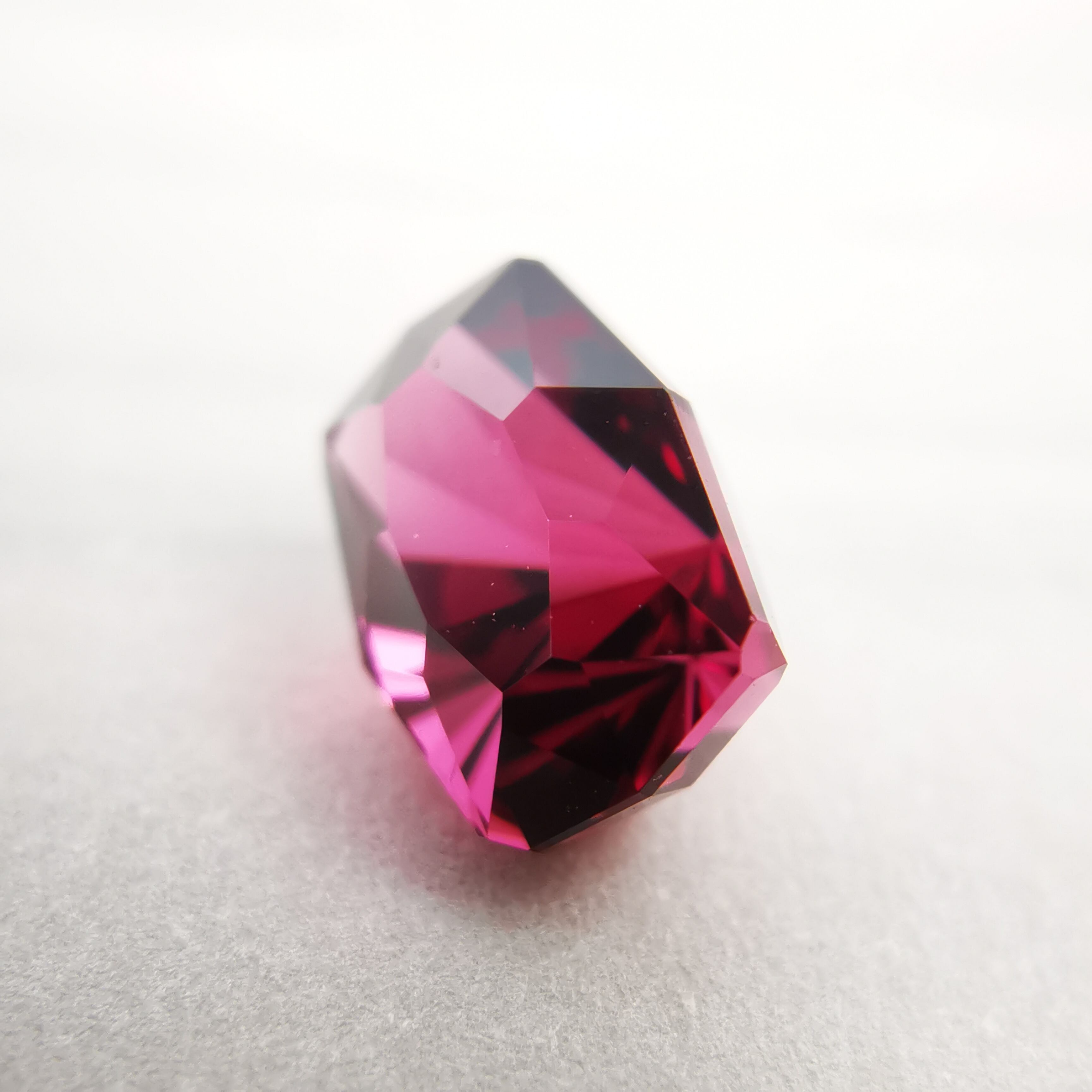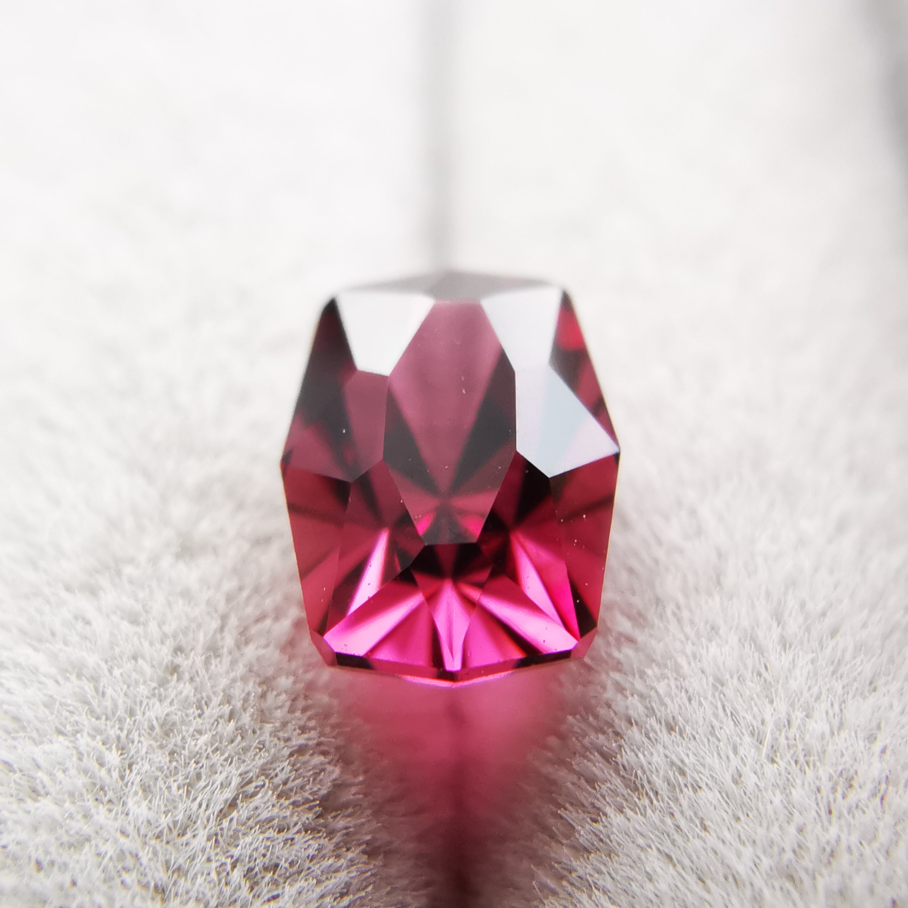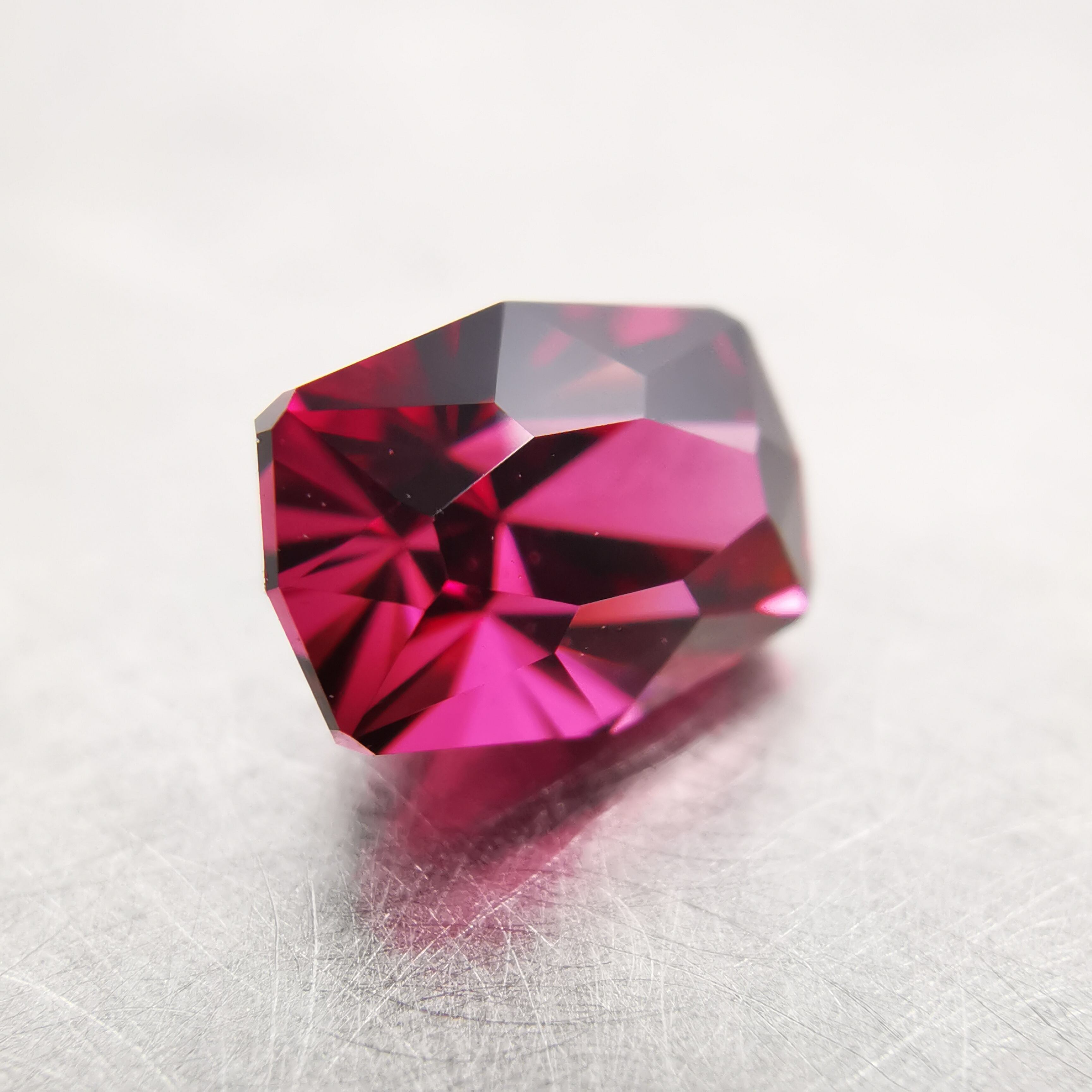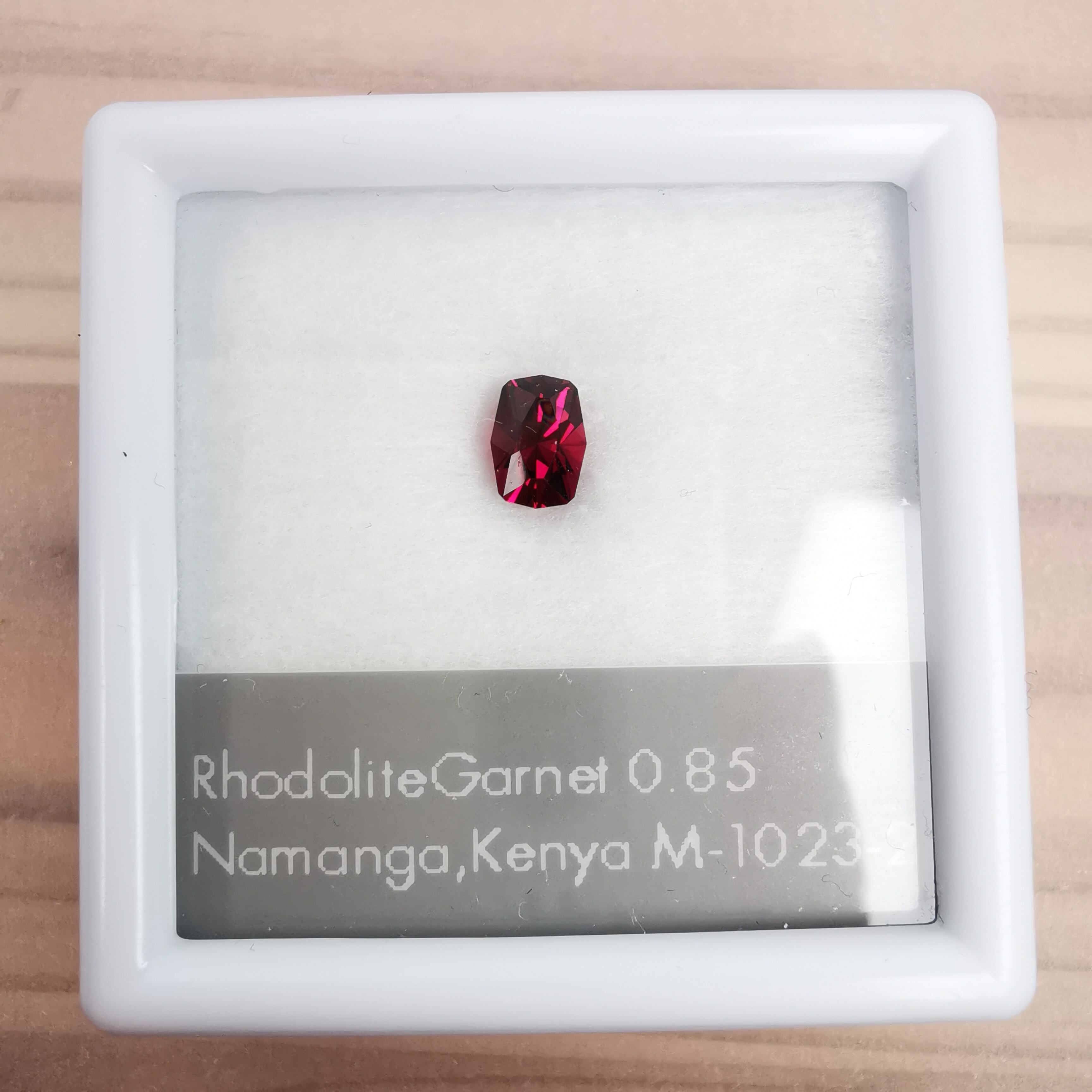 きらめくローズレッドが暗めの石の中から湧き上がるロードライトガーネットです。