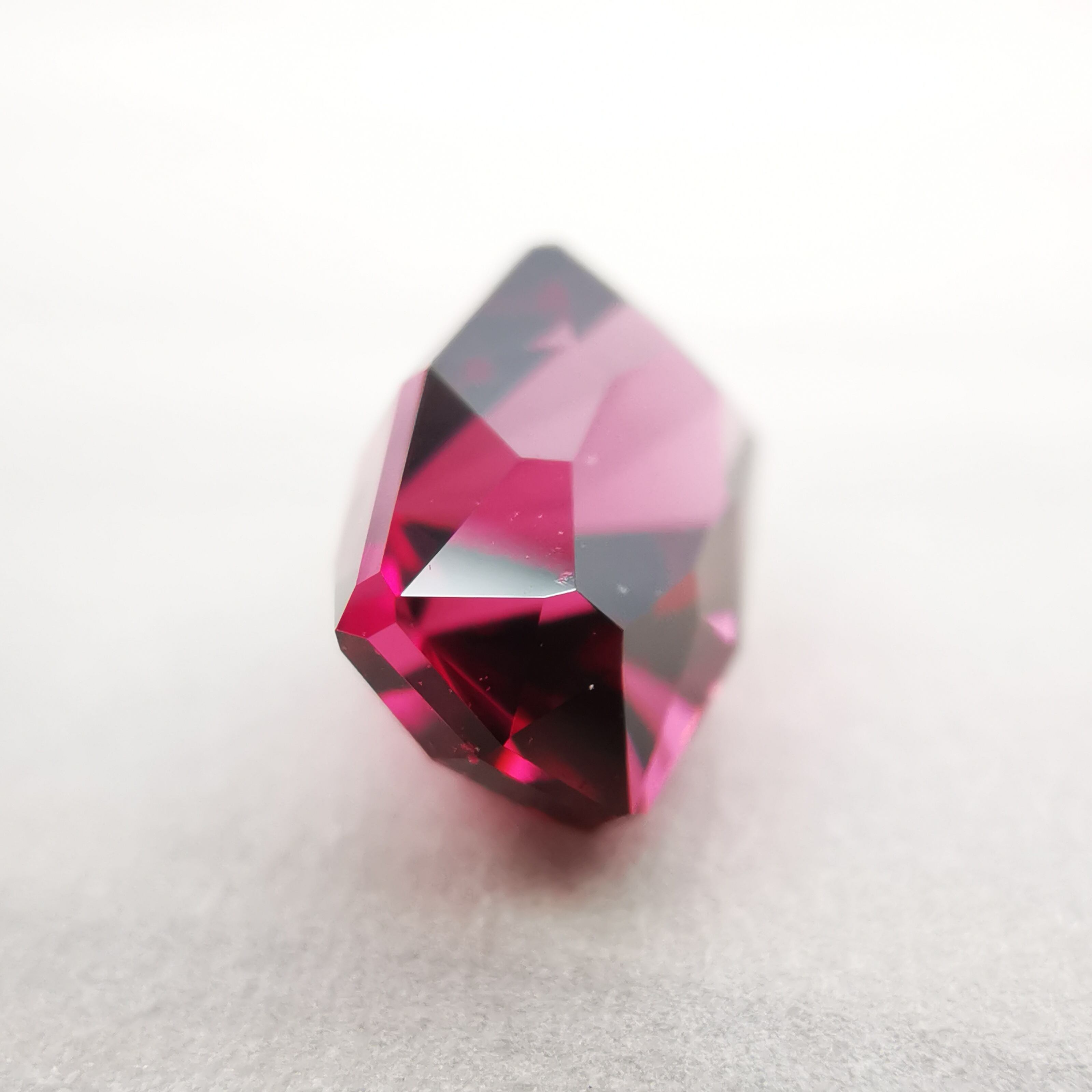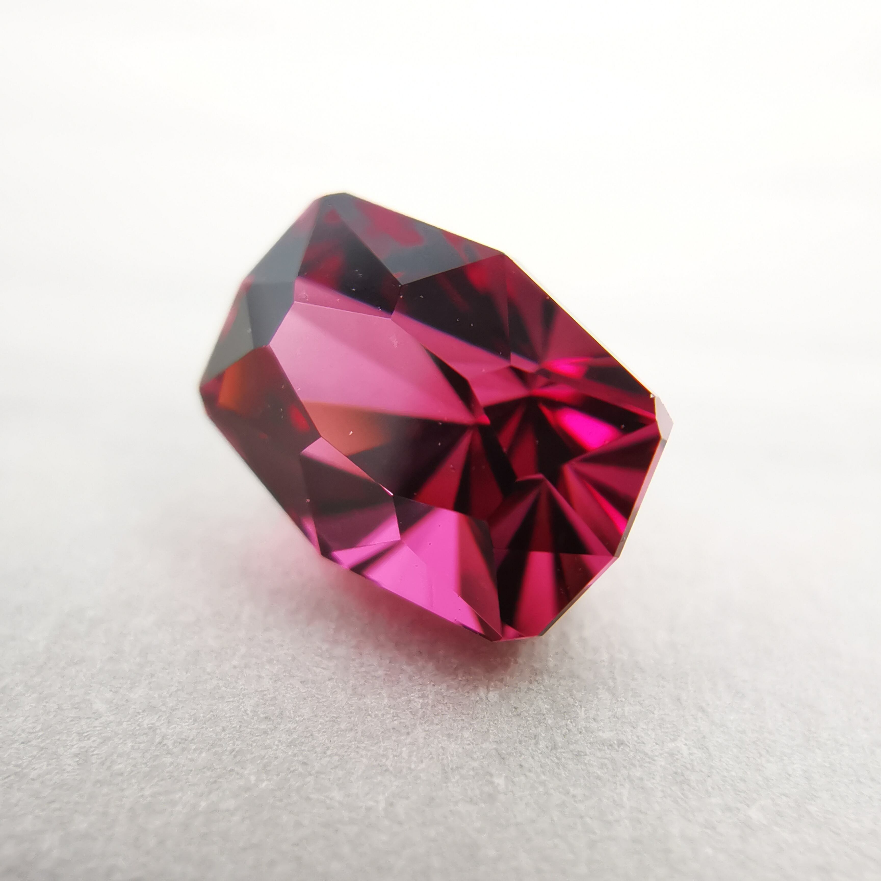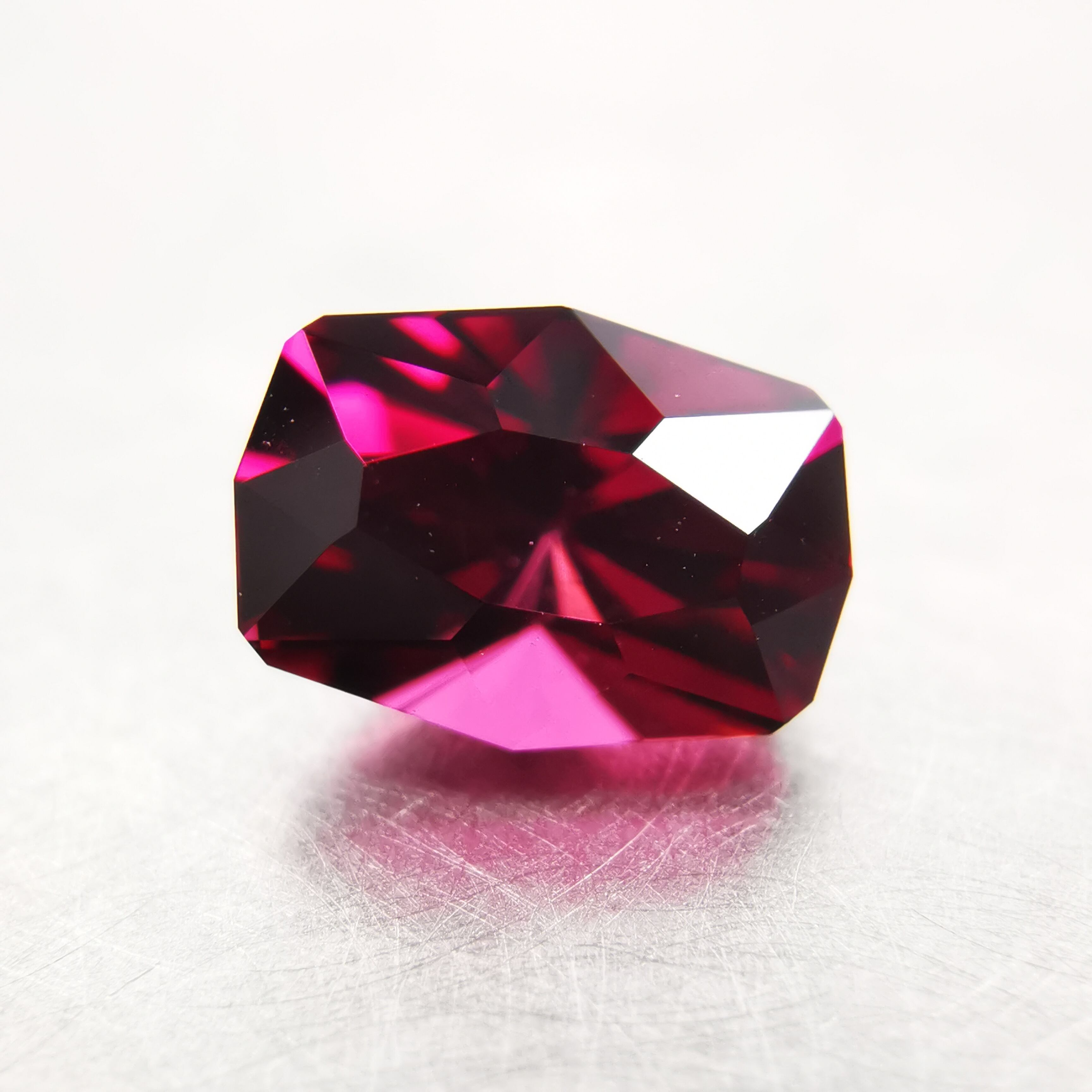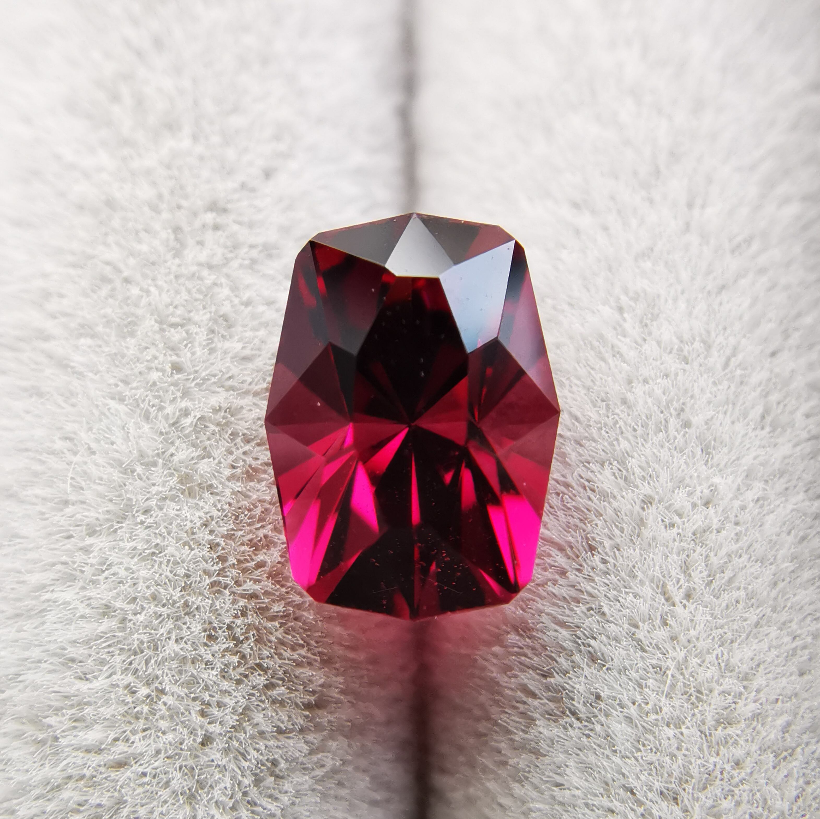 きらめくローズレッドが暗めの石の中から湧き上がるロードライトガーネットです。