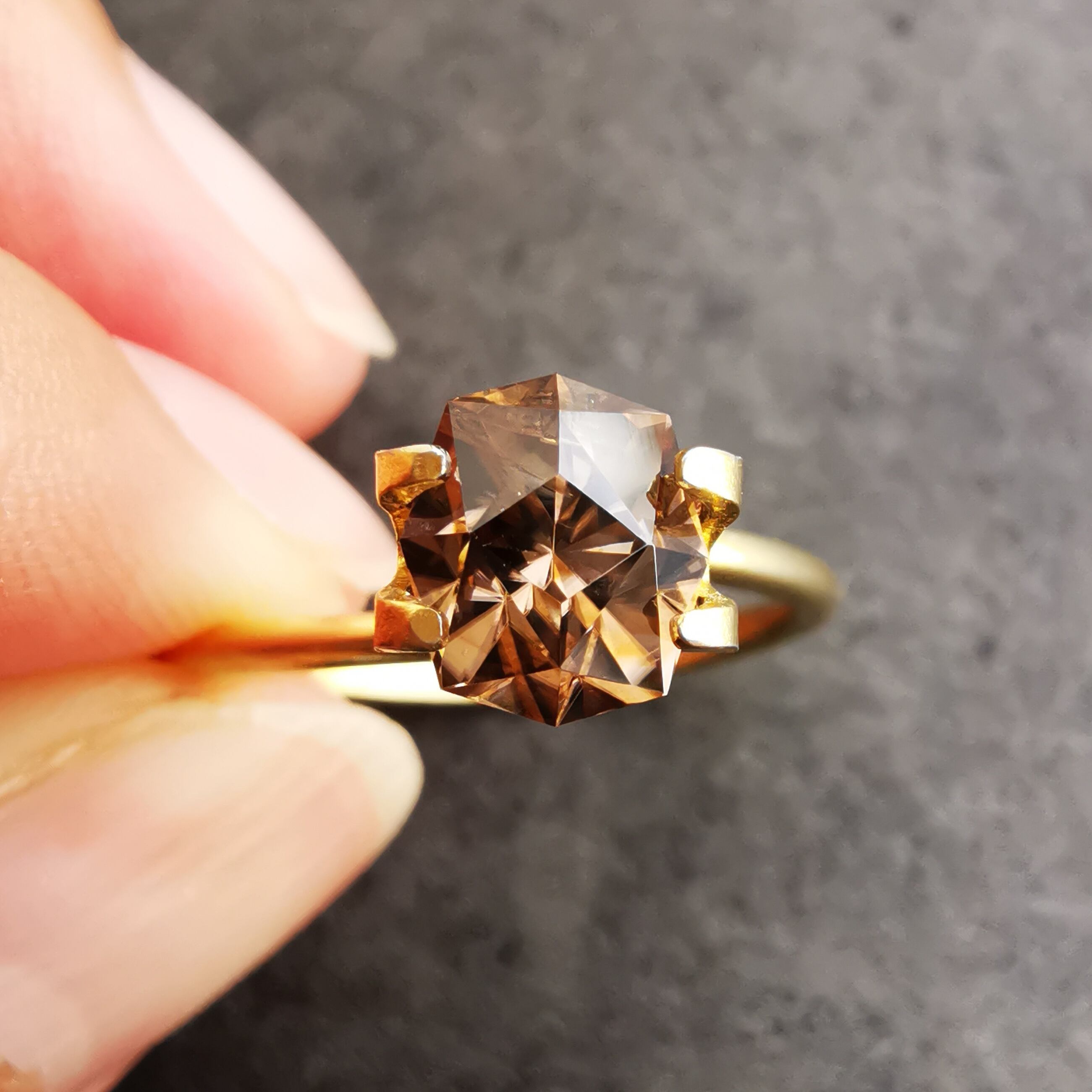 照明の下では、ギラギラと強いファイアで輝き、自然光下では、色むらや内包物が何とも言えない色っぽさを醸し出します。
