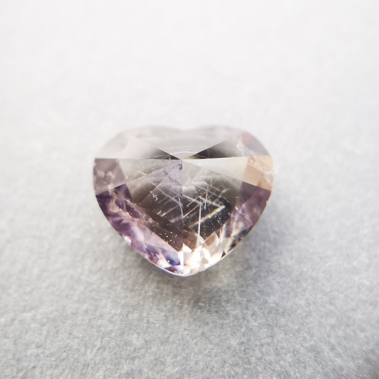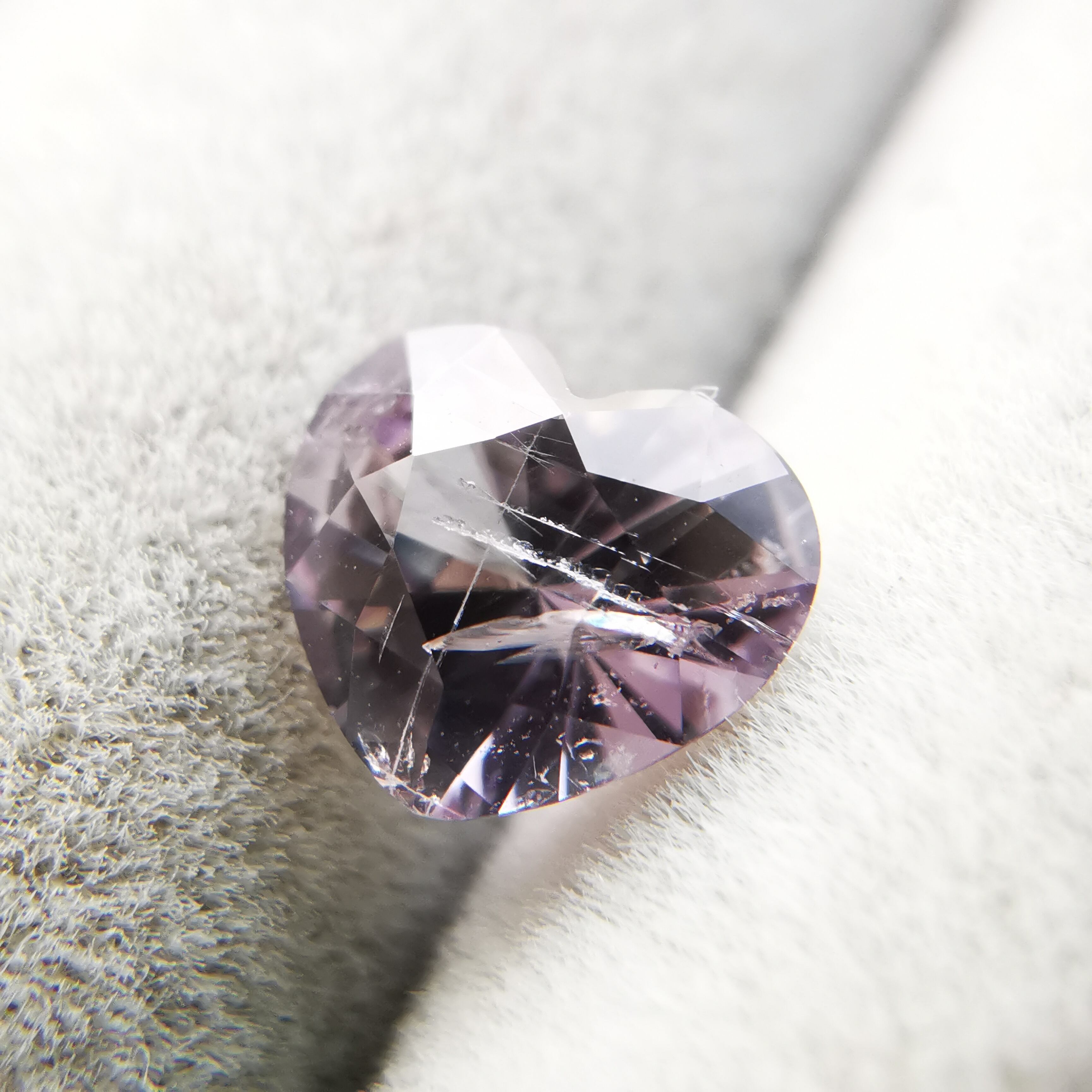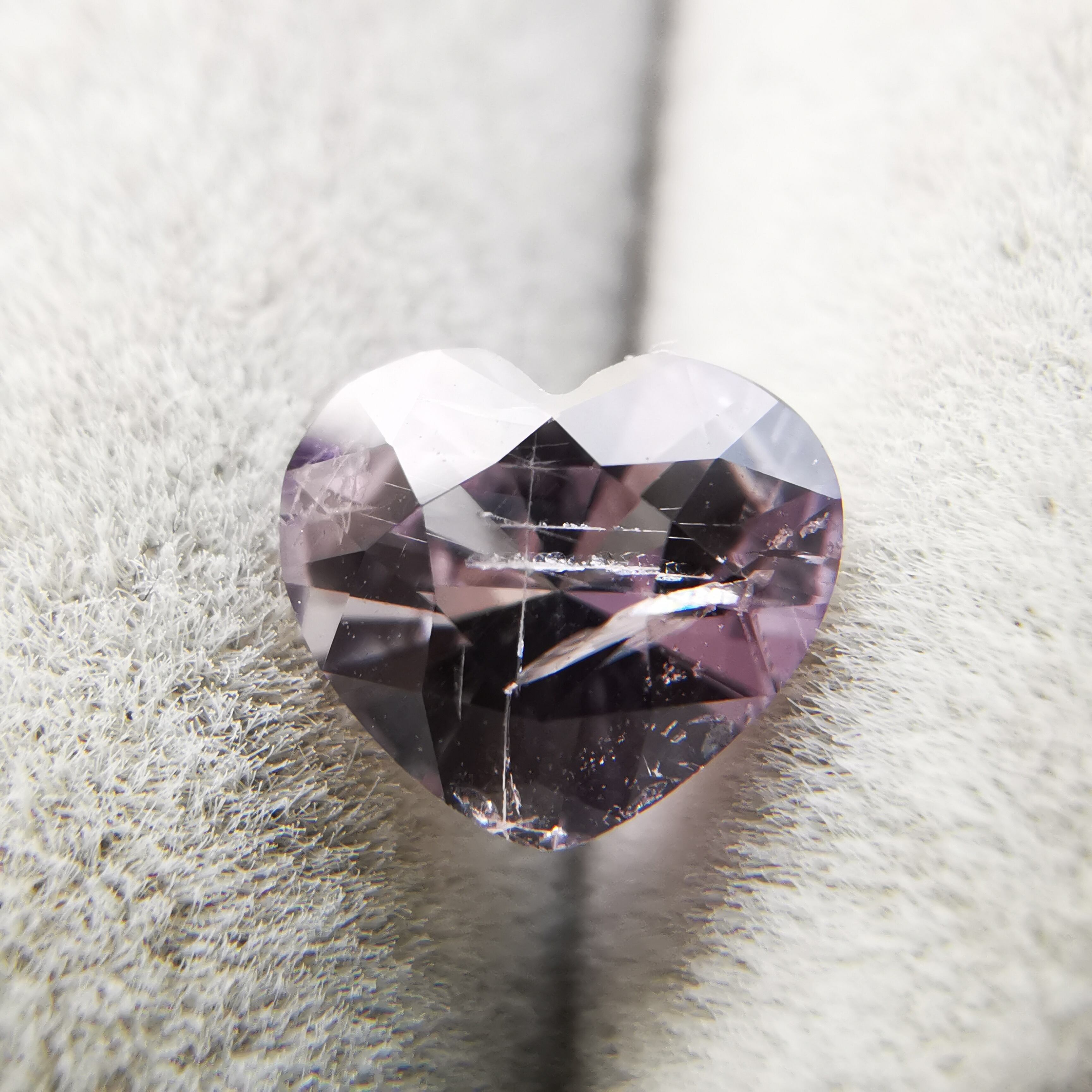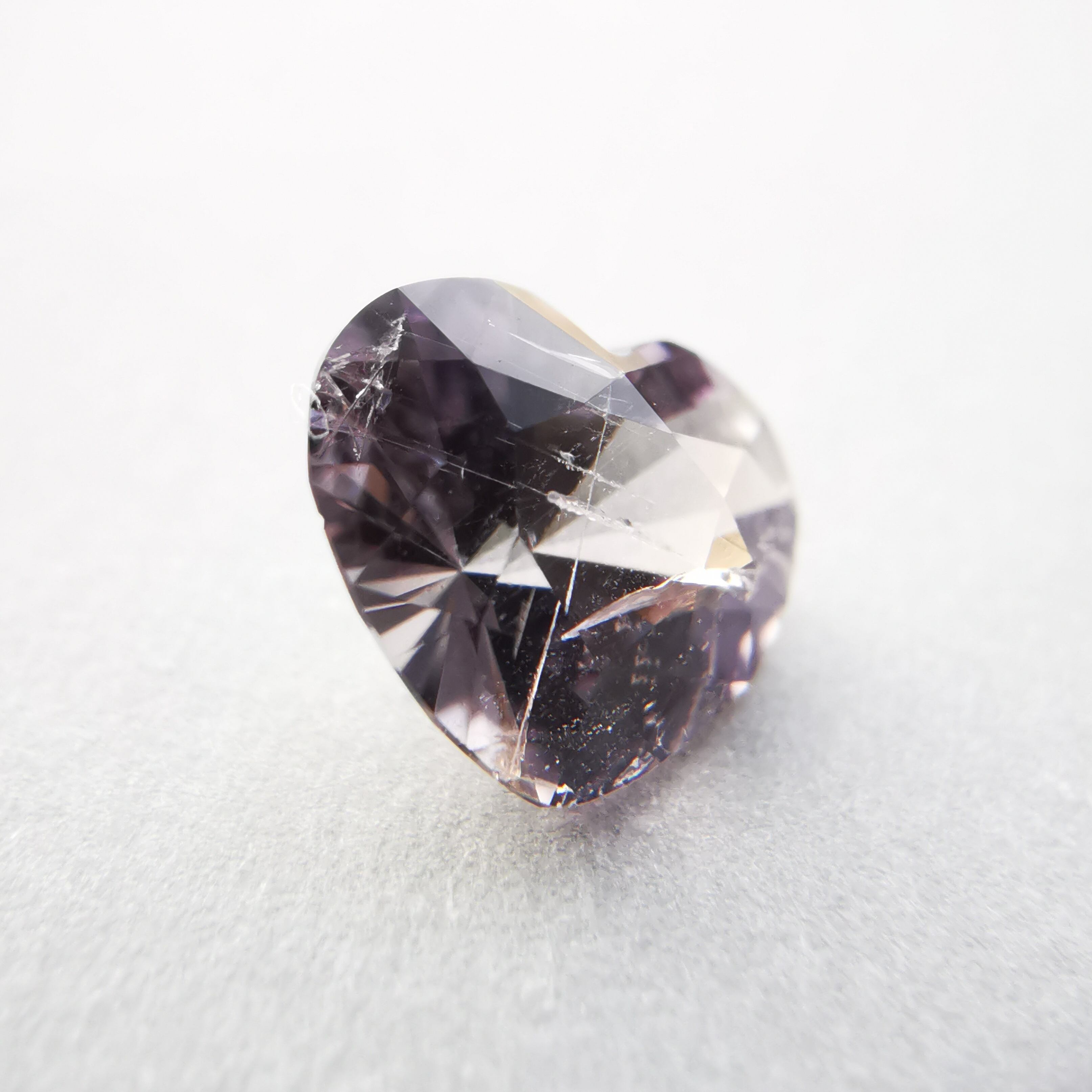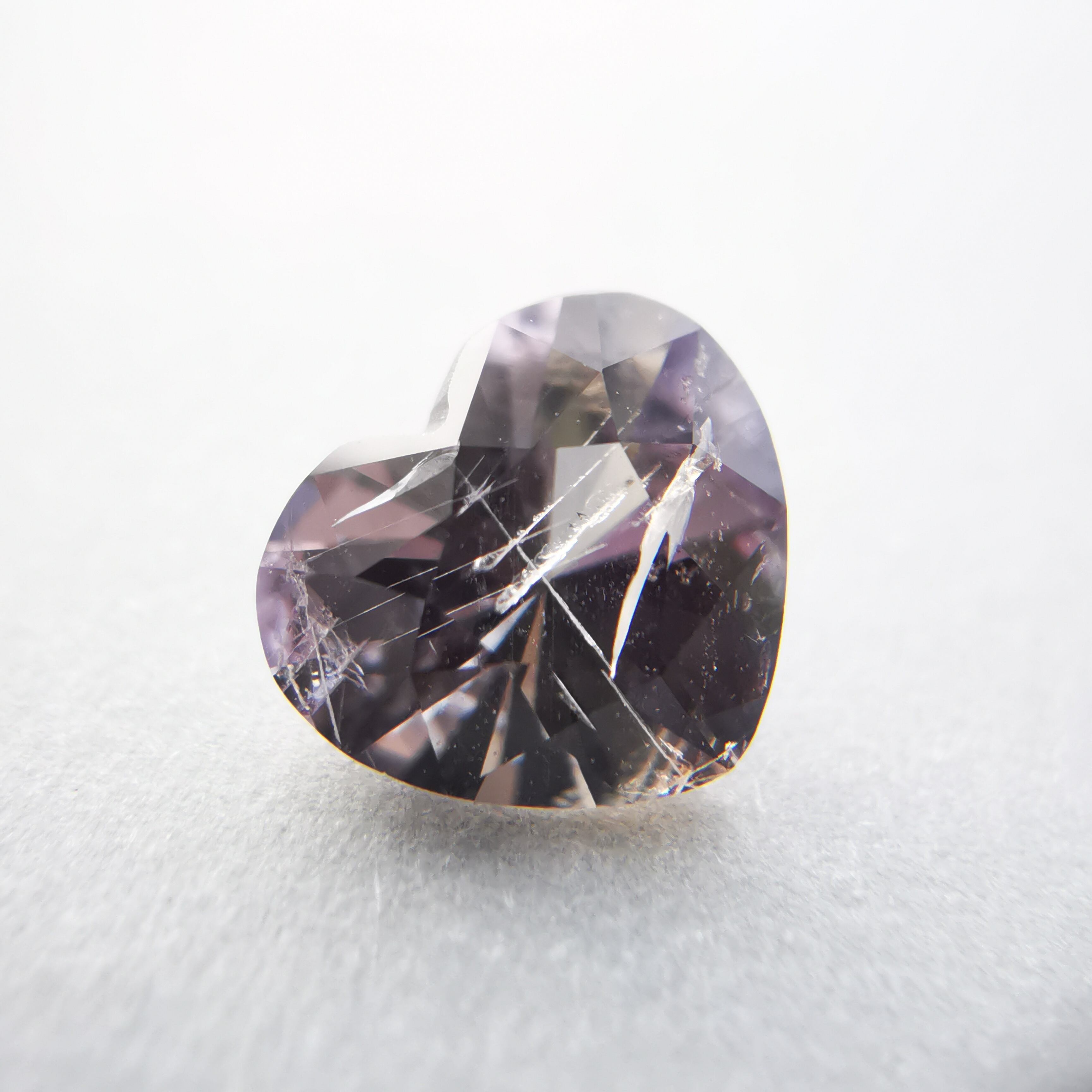 ふっくらとした可愛らしいハートカットに、内包物の多い儚げなカラー、傷ついた柔らかな心のようでそっと抱きしめたくなります。
