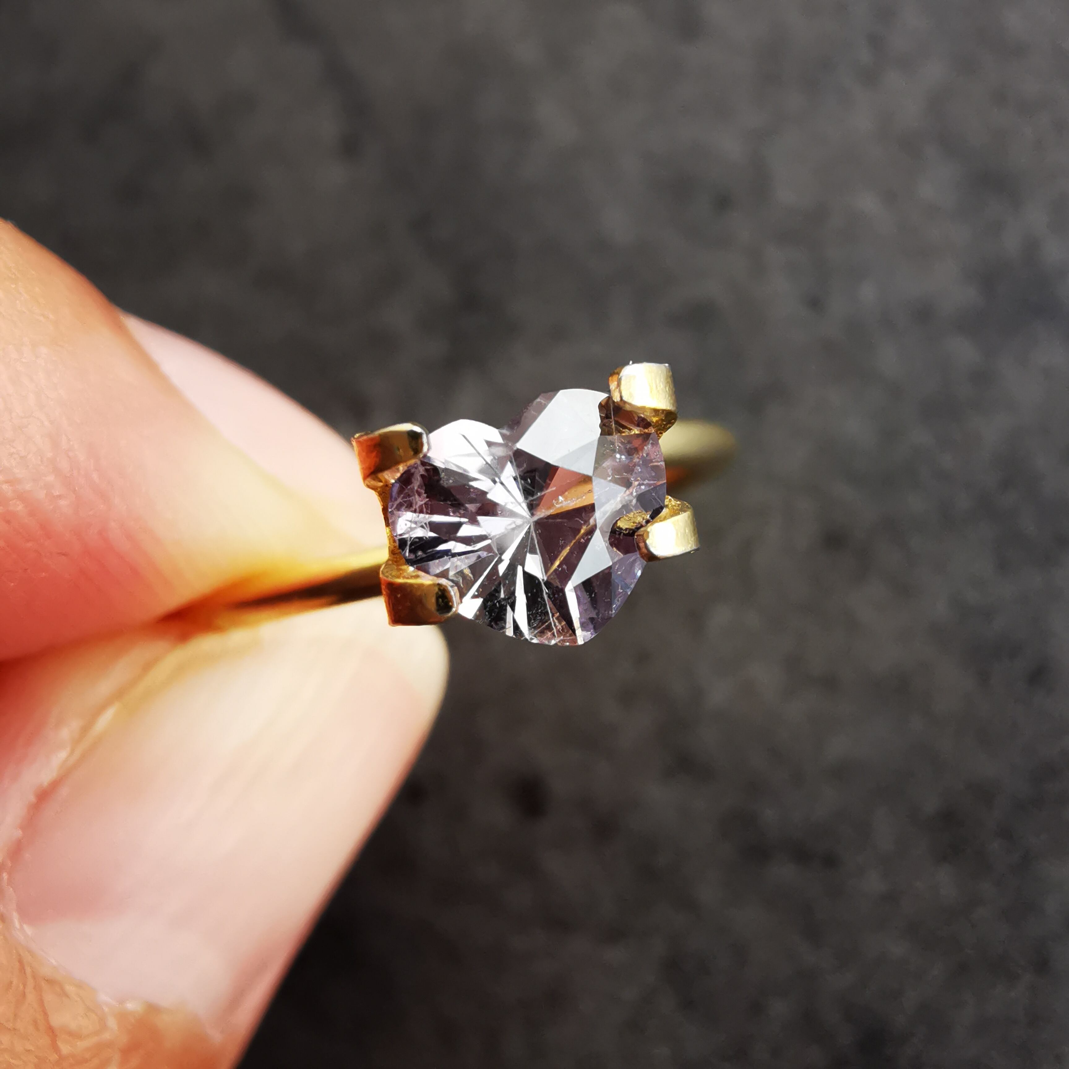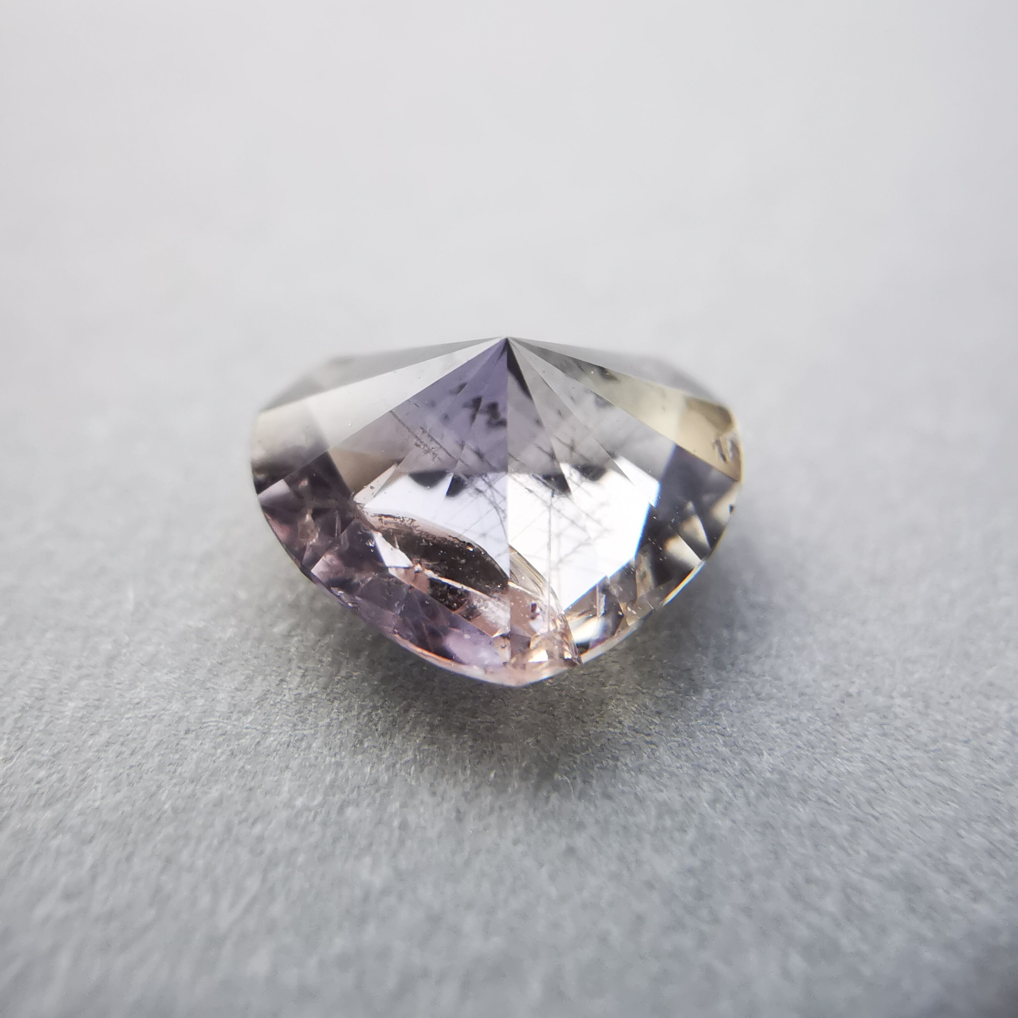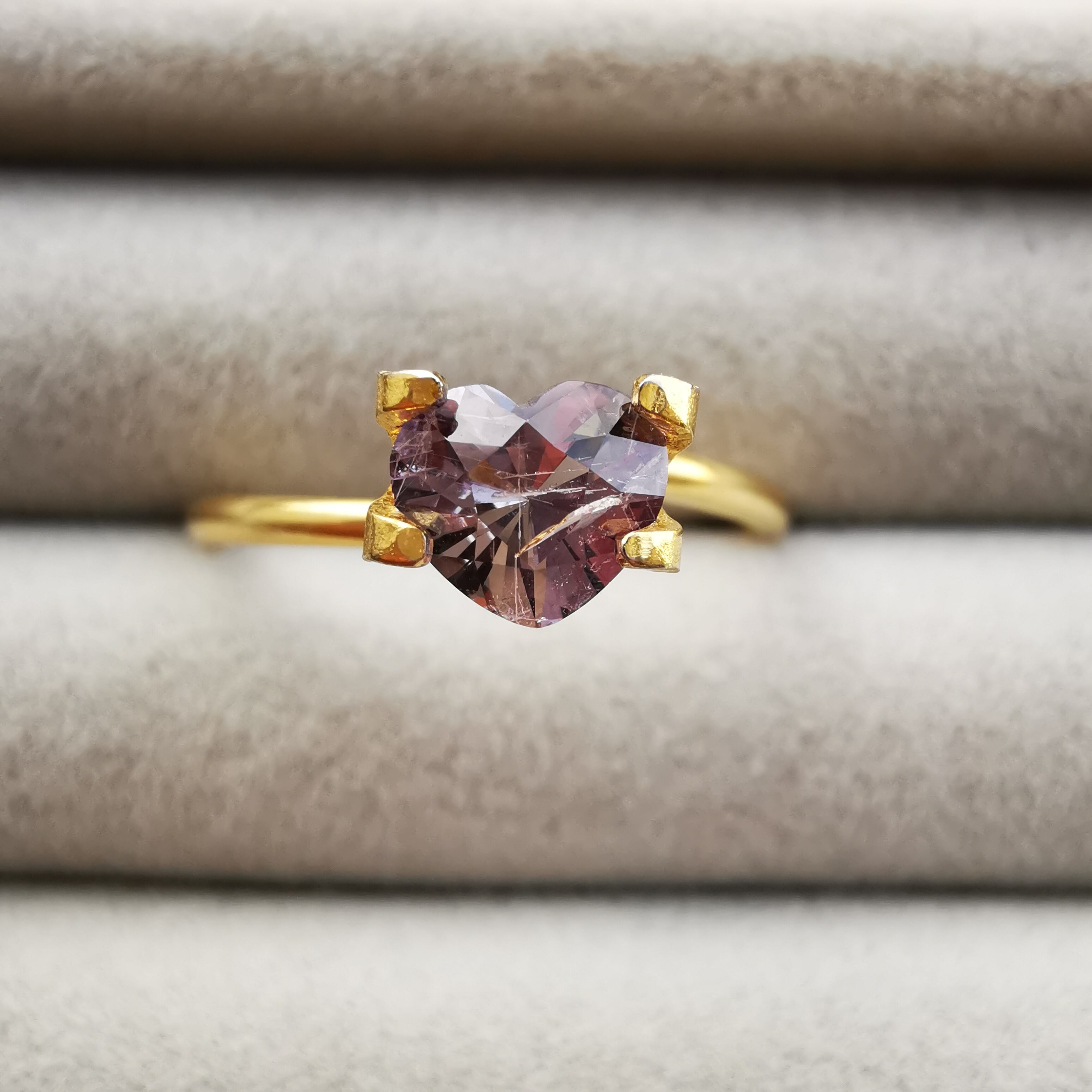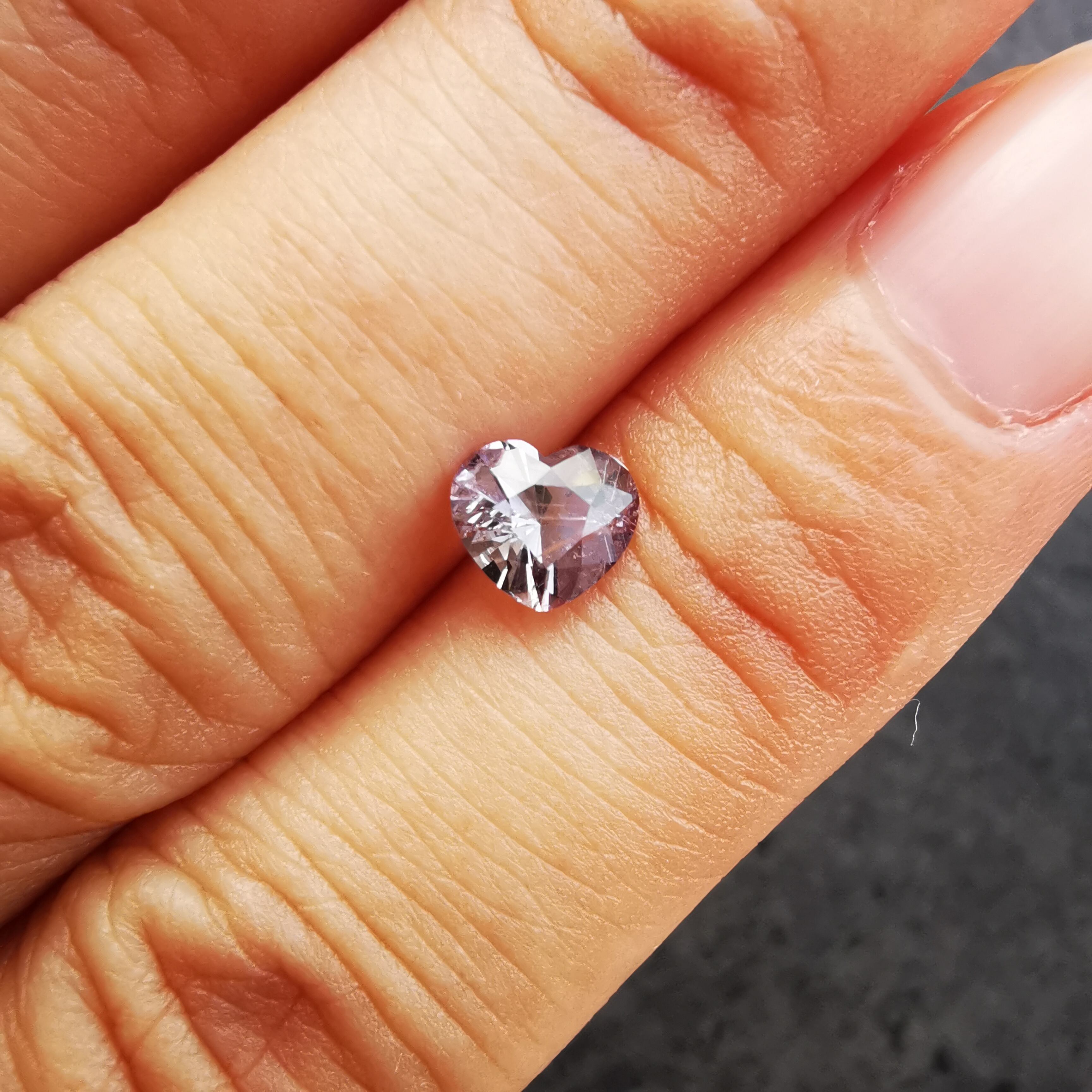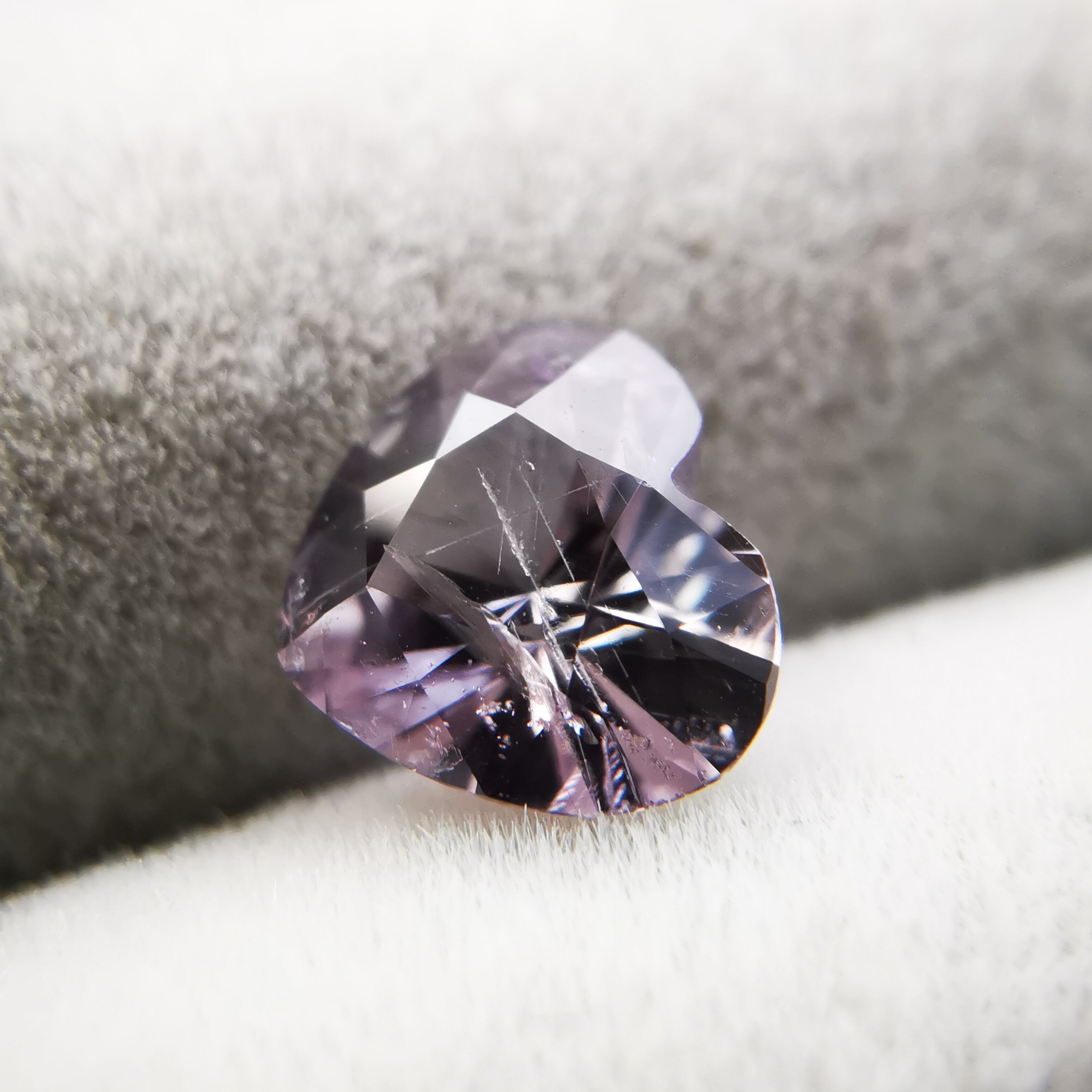 ふっくらとした可愛らしいハートカットに、内包物の多い儚げなカラー、傷ついた柔らかな心のようでそっと抱きしめたくなります。