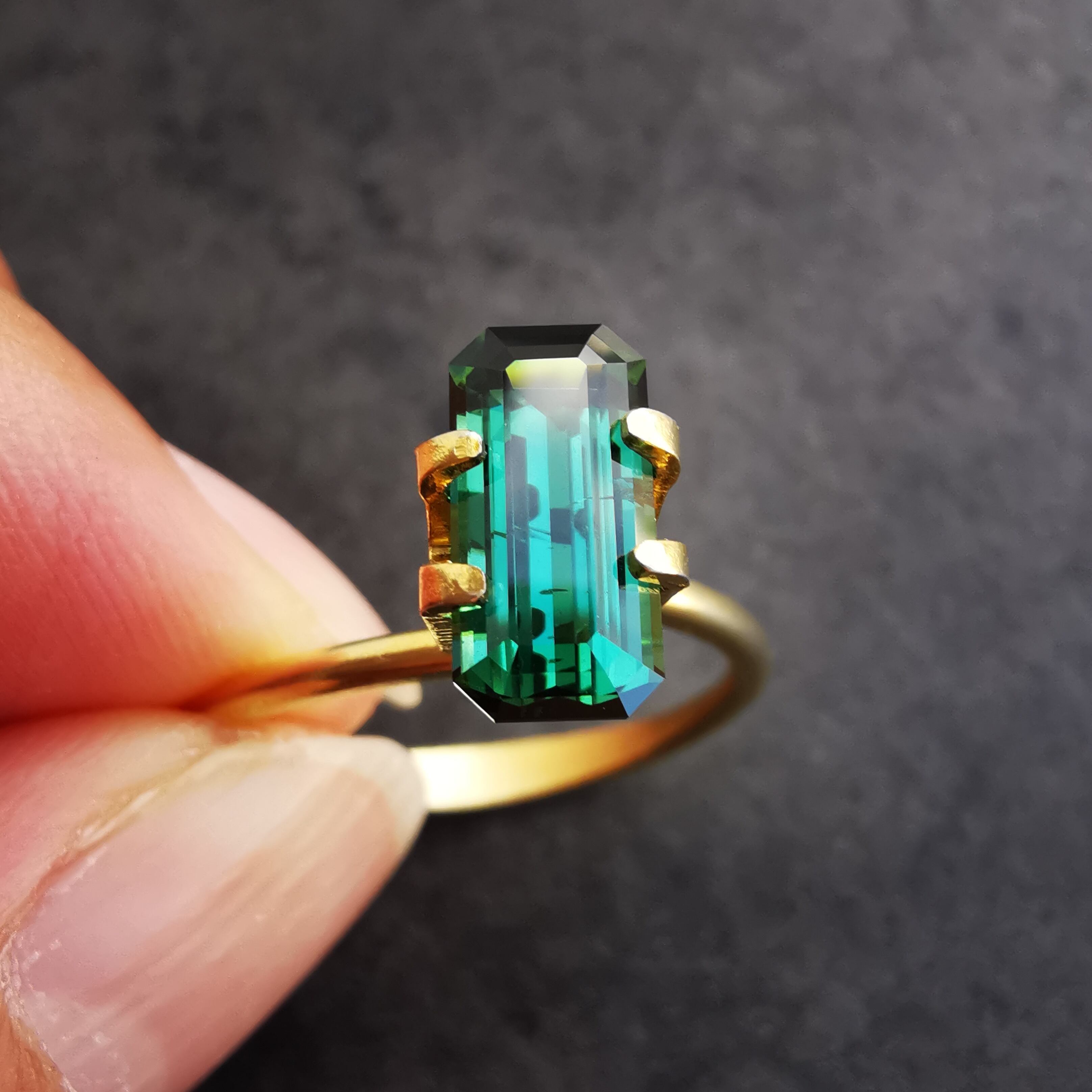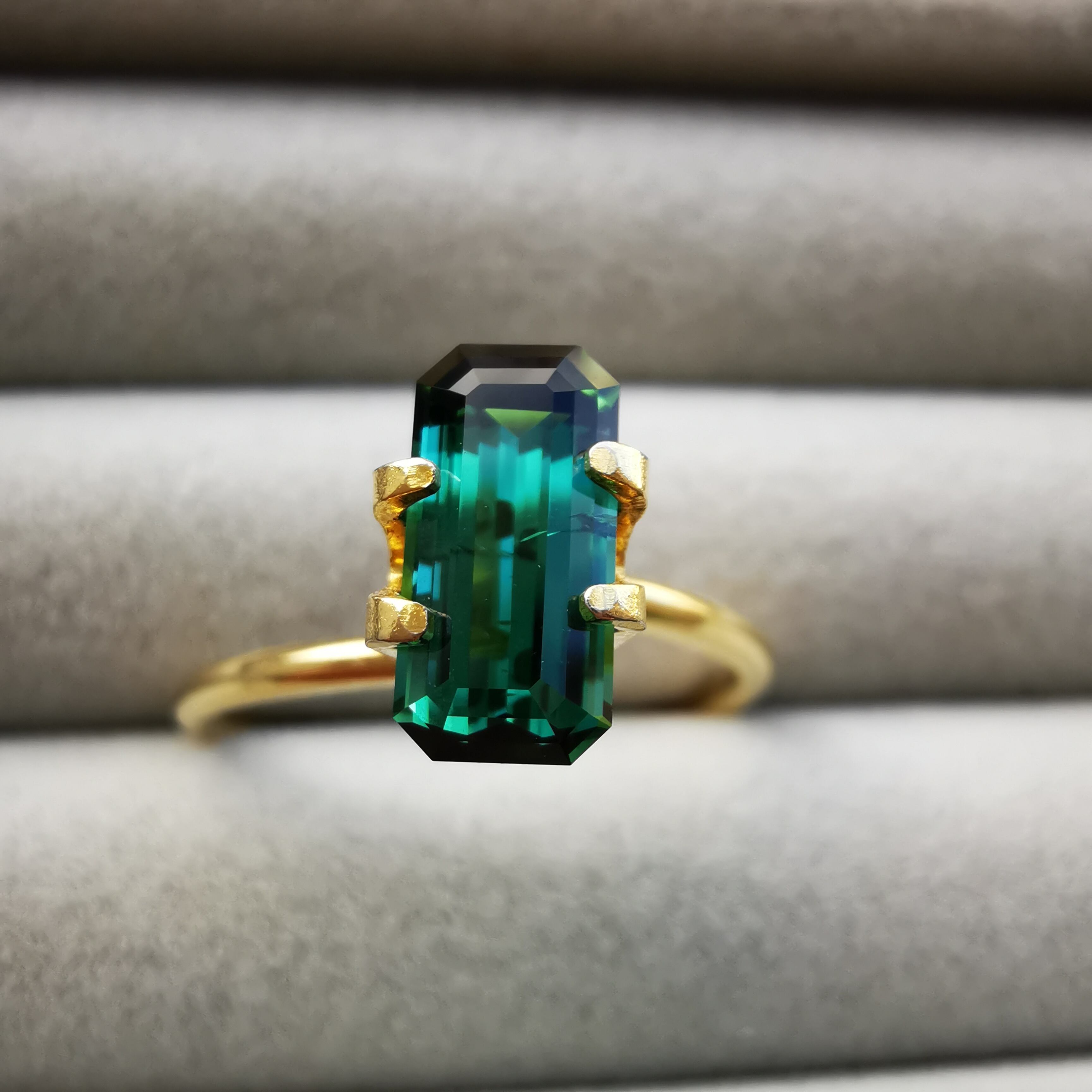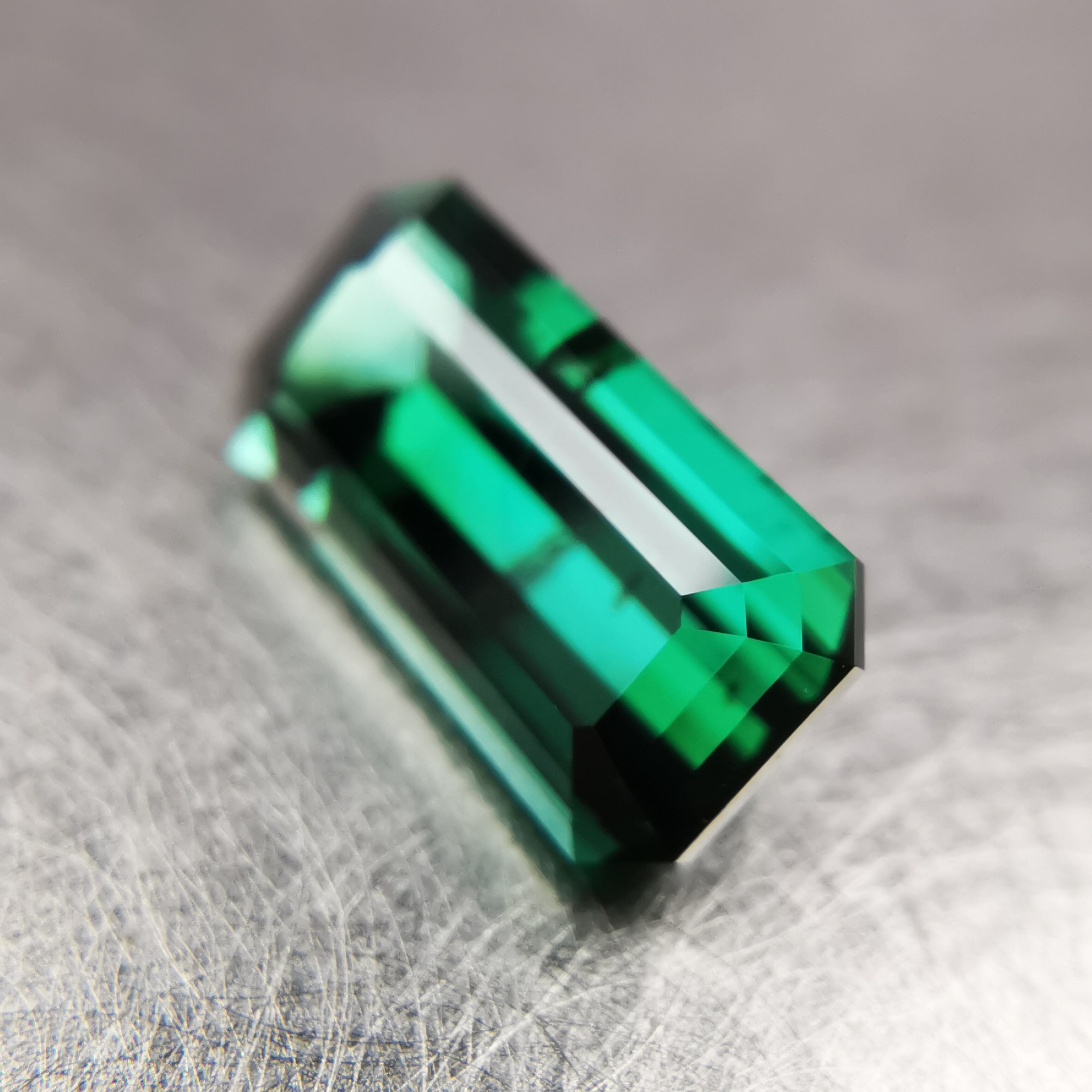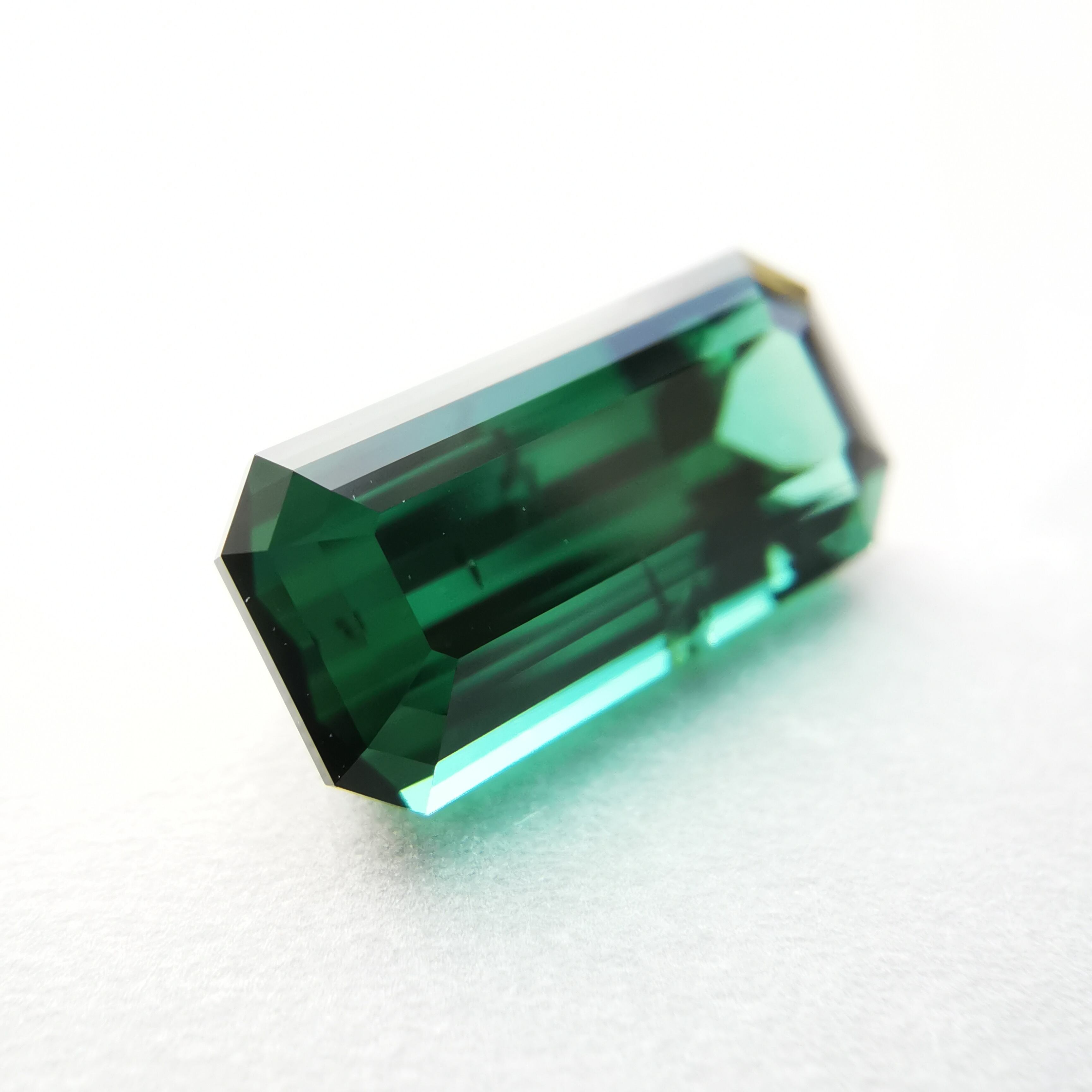 濃く深いグリーンのトルマリンですが、ある角度に傾けた時に、急に青みが強く出る瞬間があります。