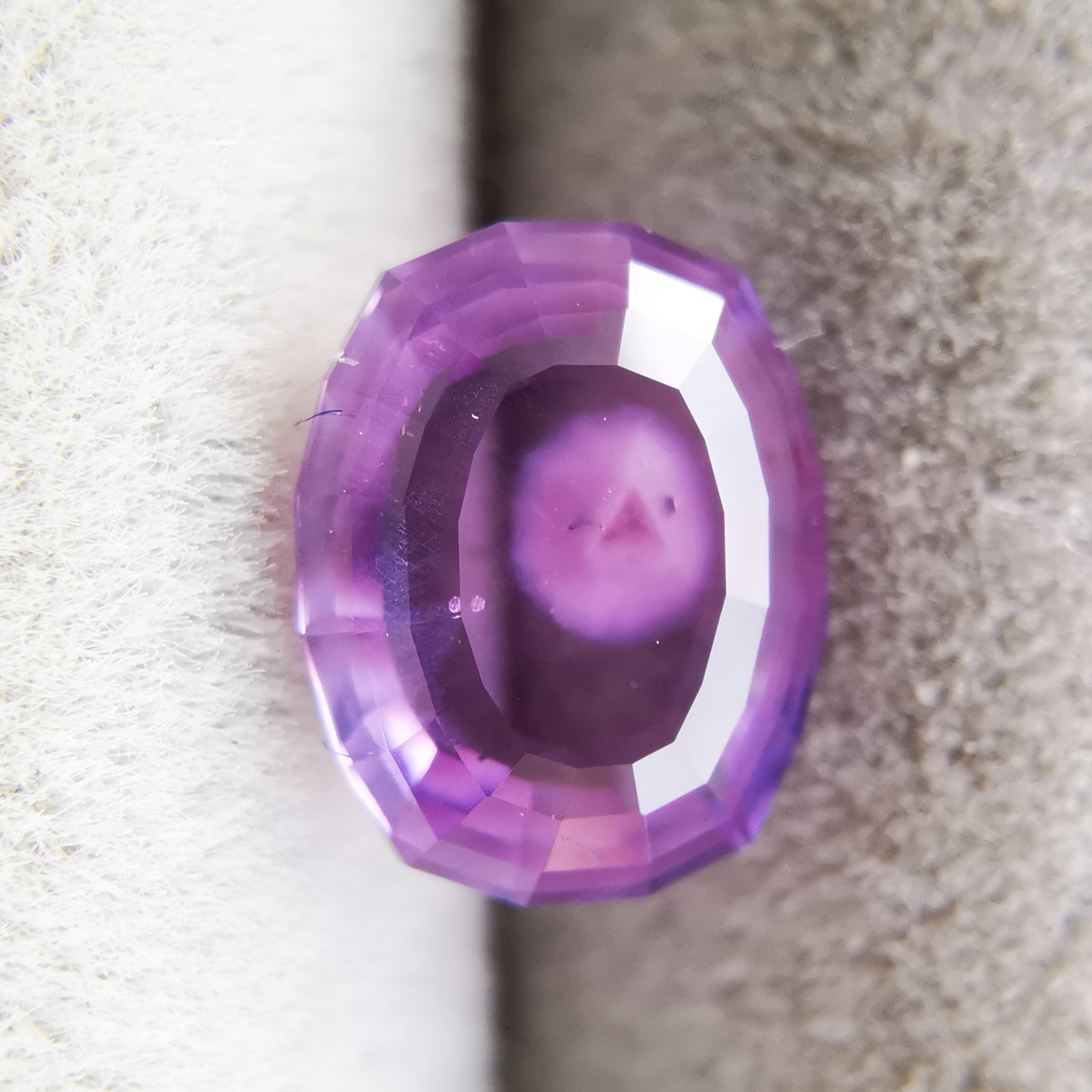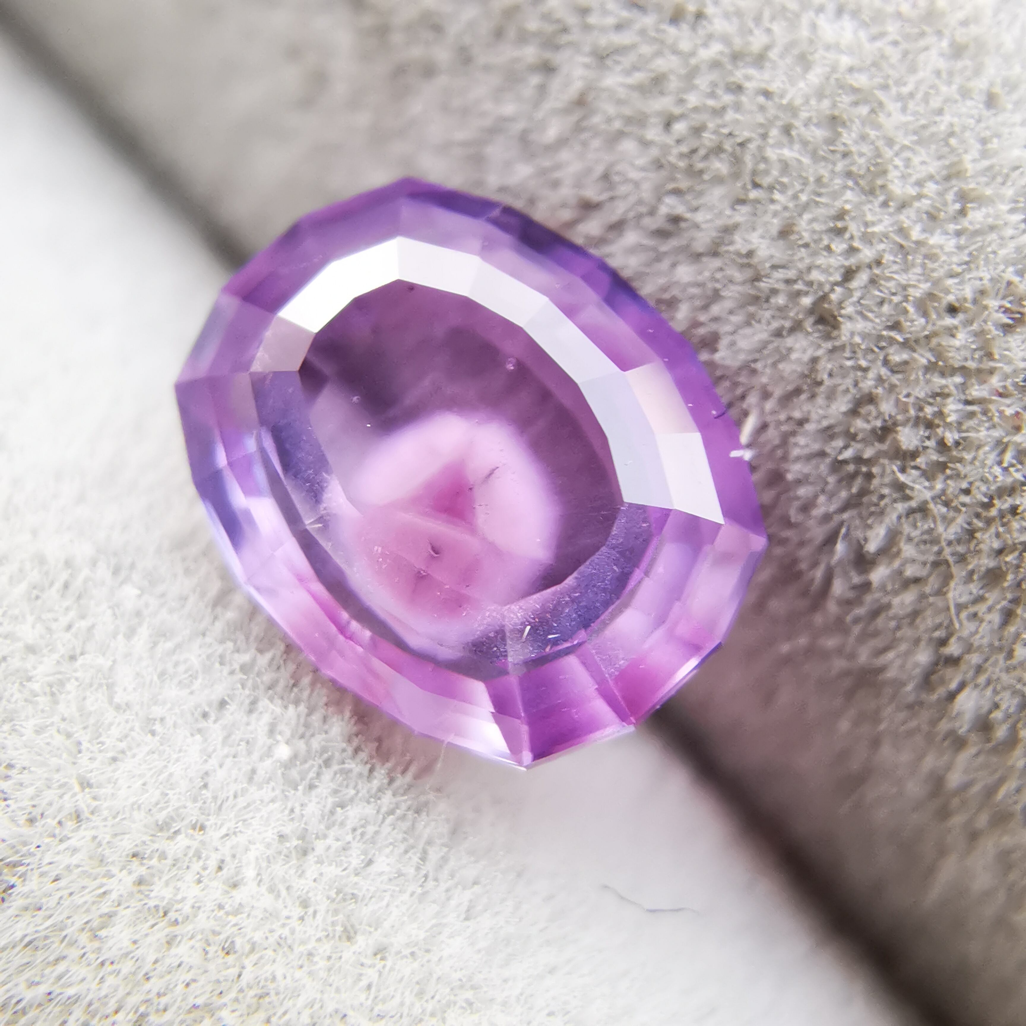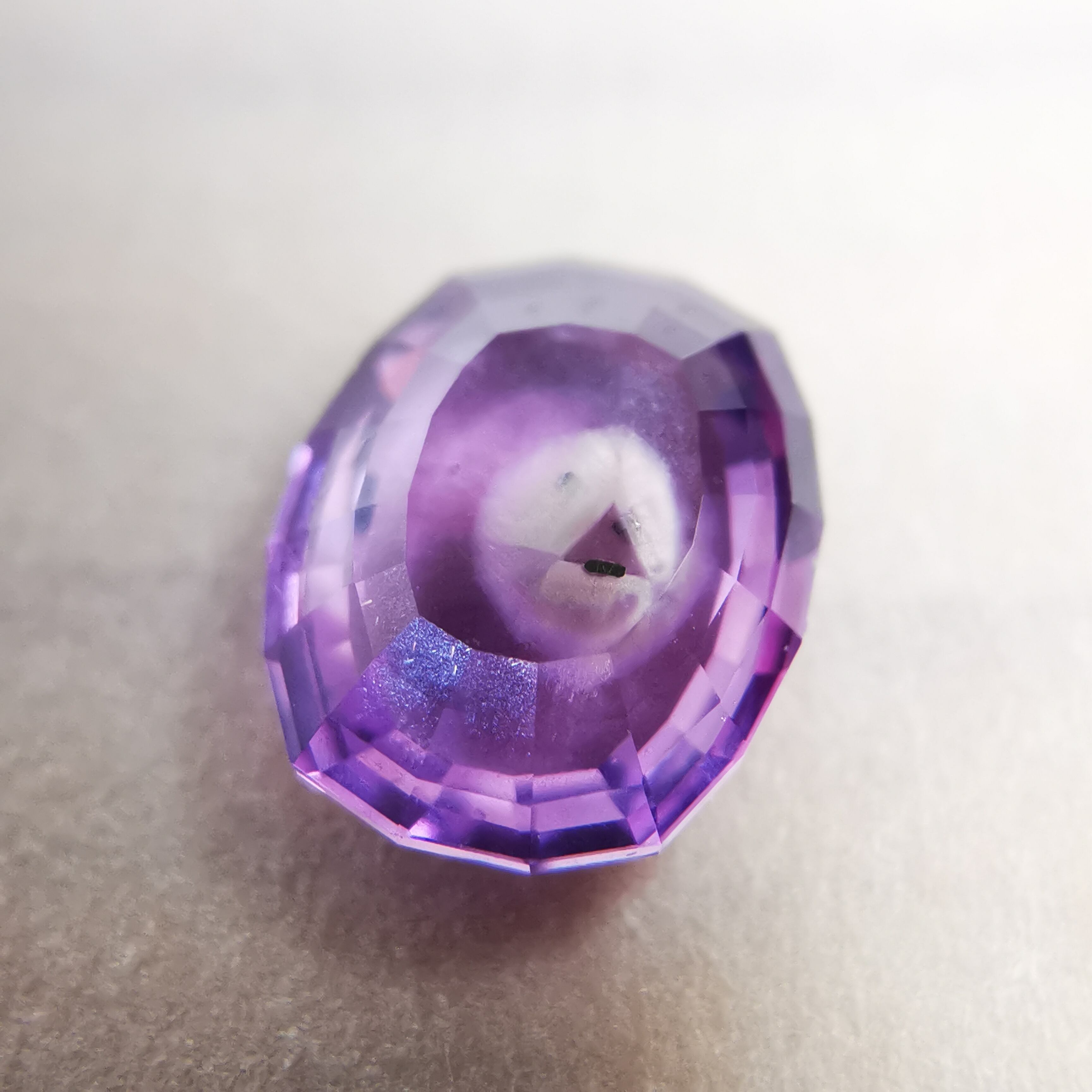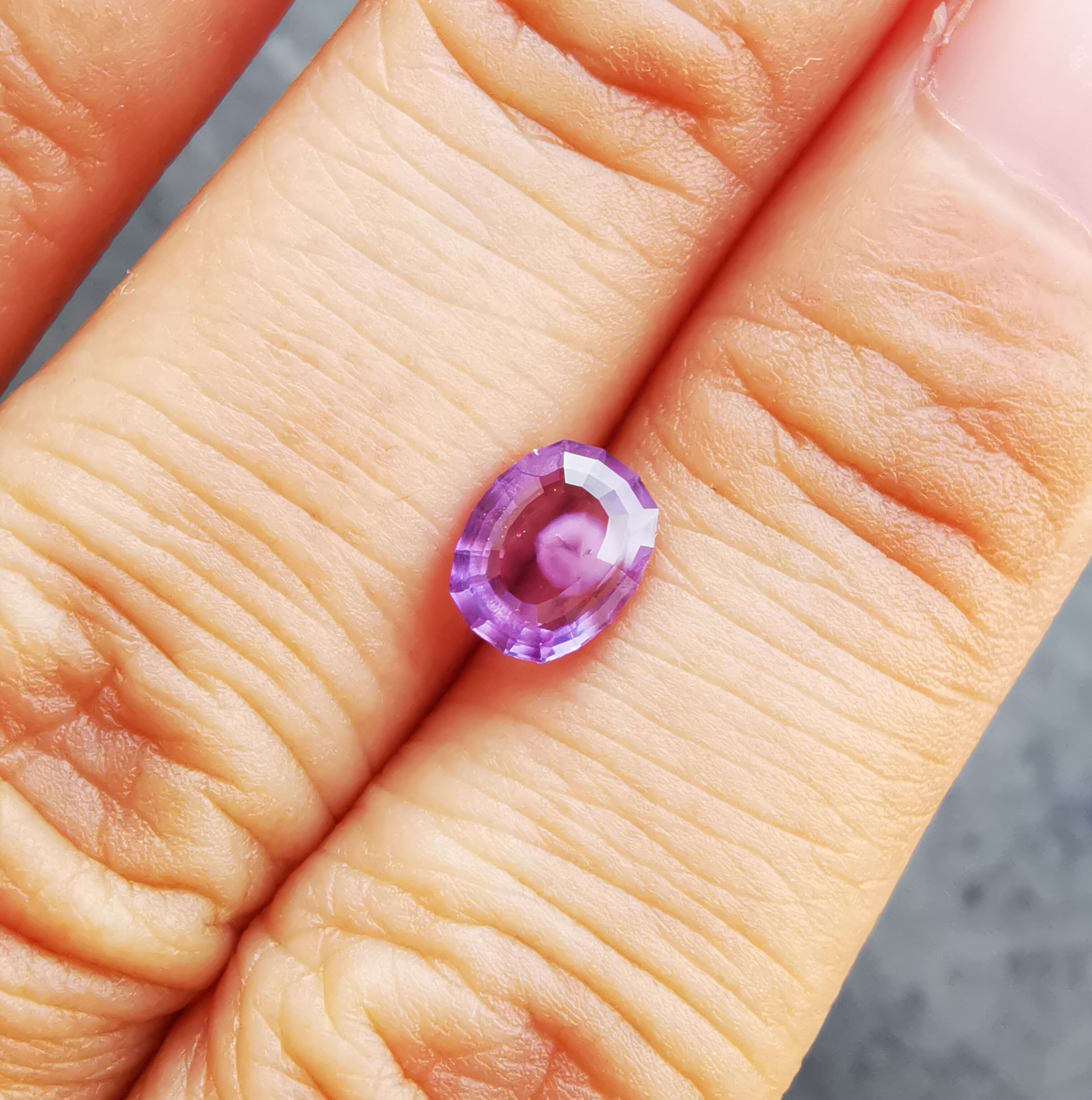 ピンクパープルに、傾きによってシルバーシラーが光るサファイアです。