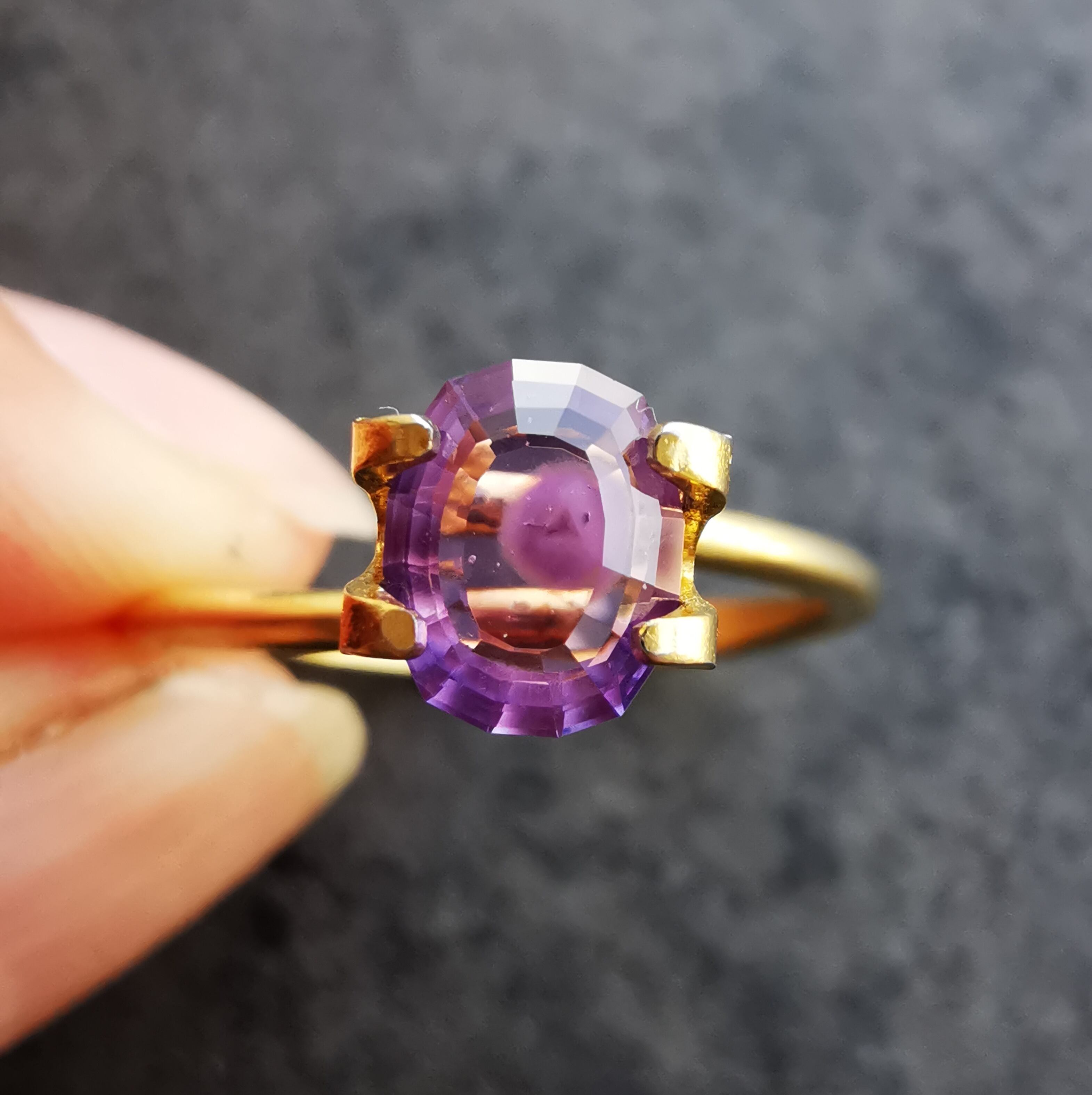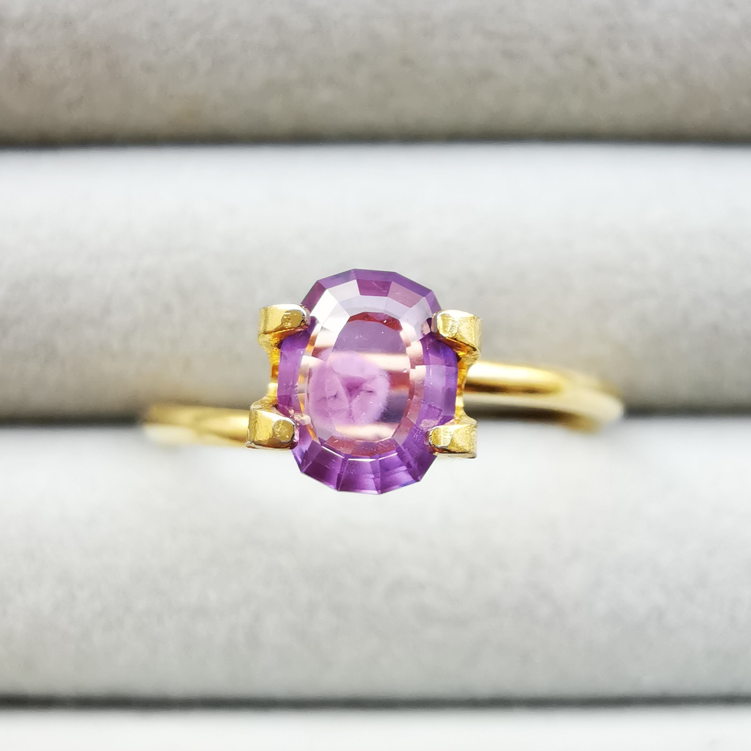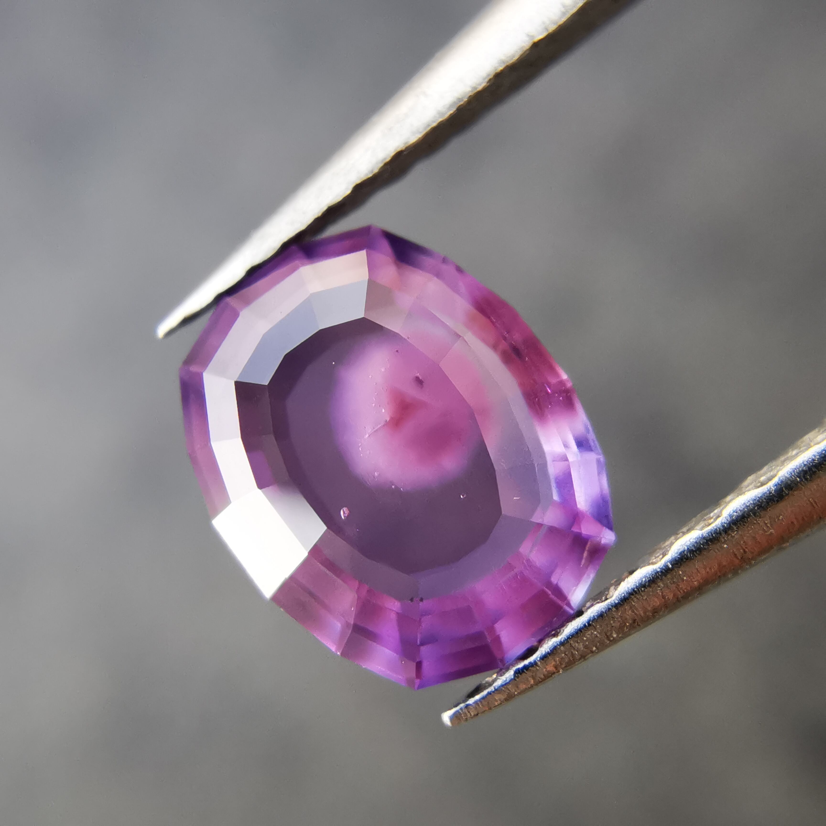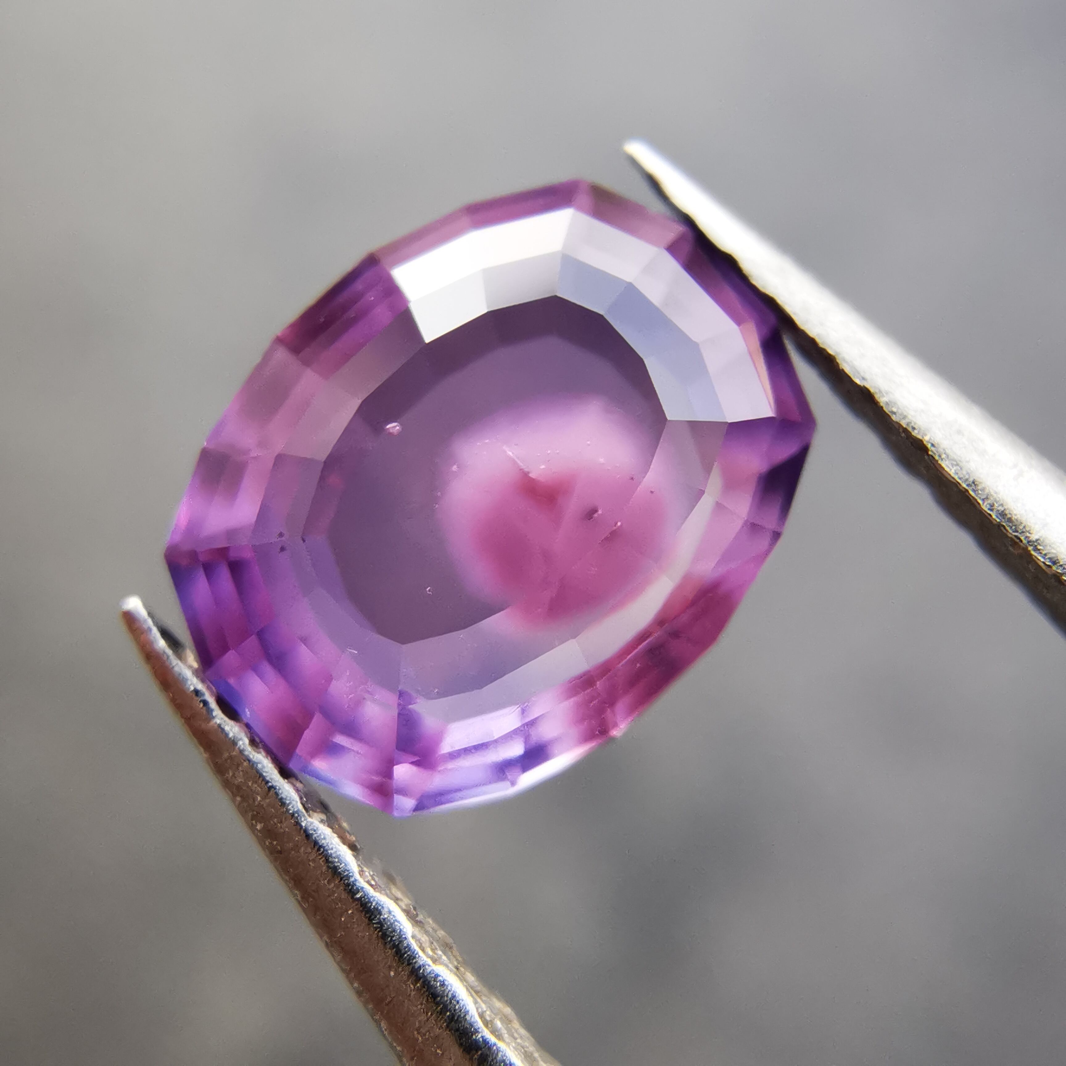 ピンクパープルに、傾きによってシルバーシラーが光るサファイアです。