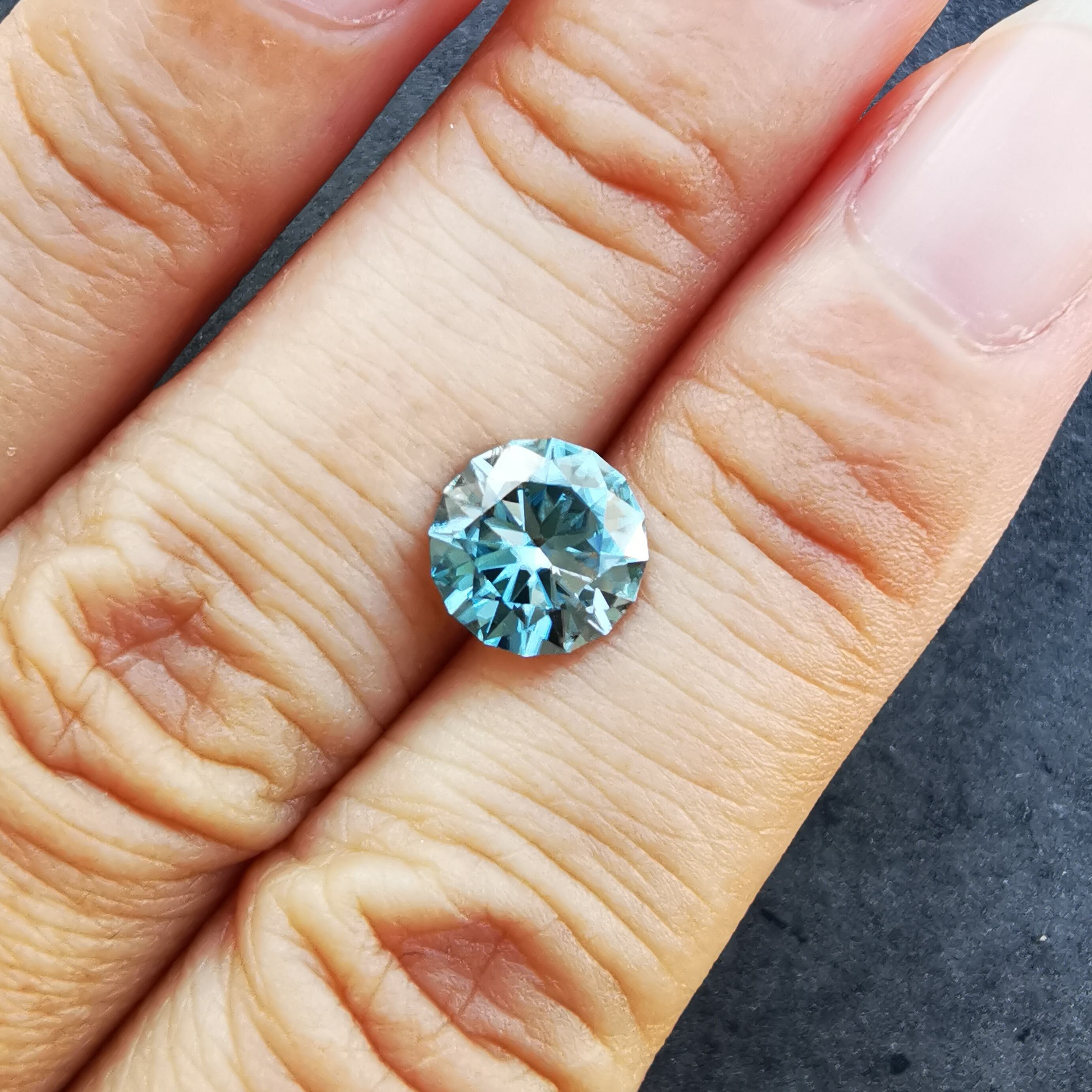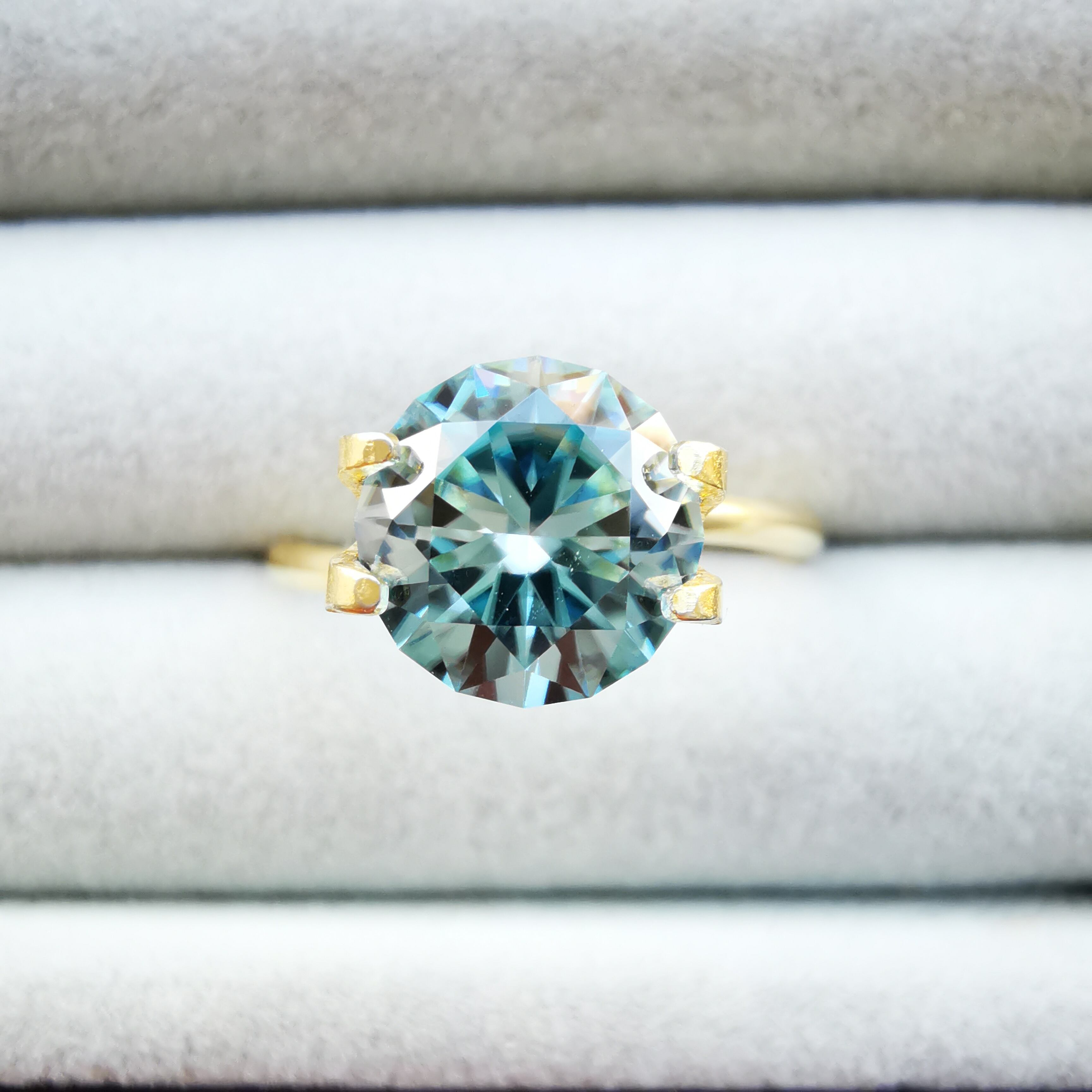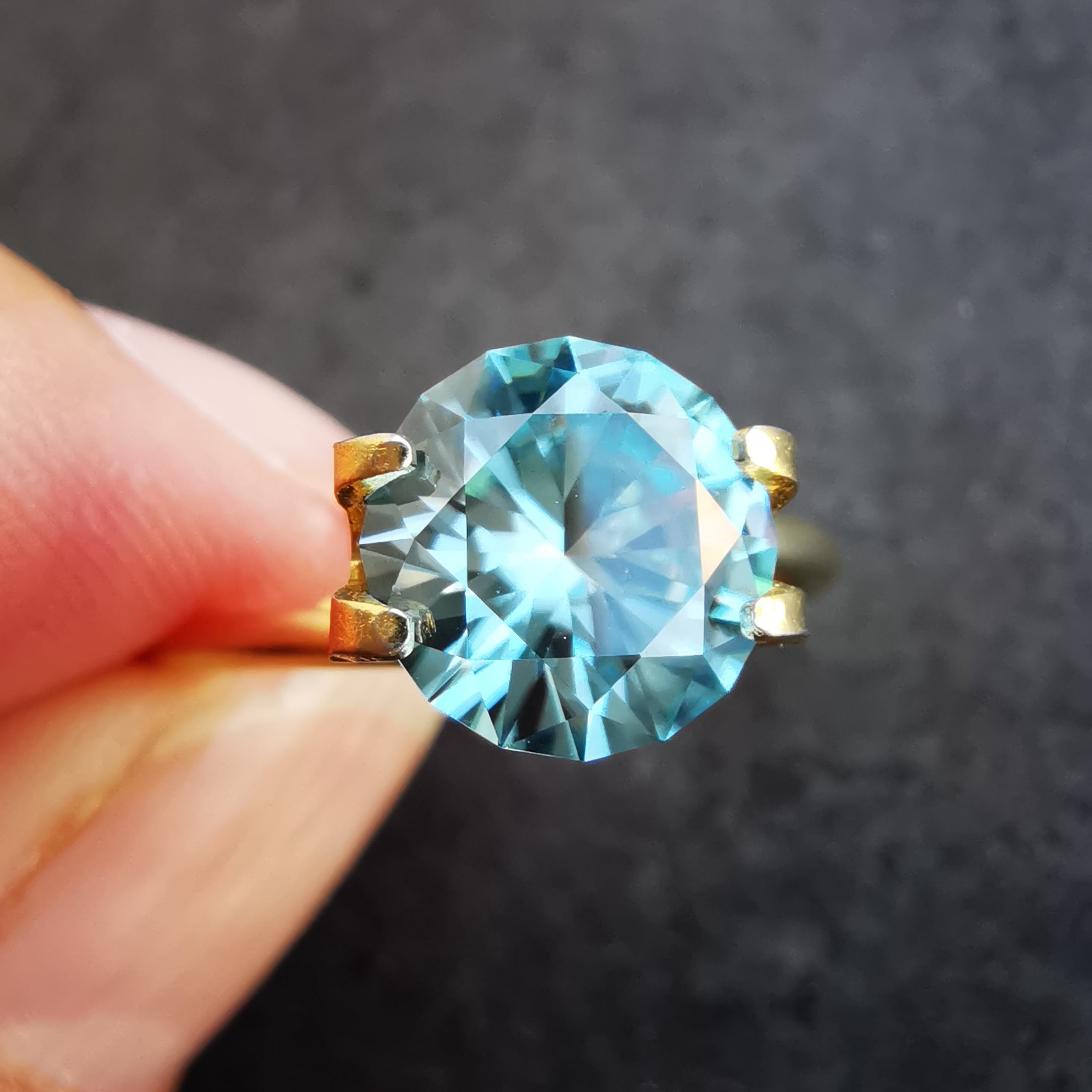 ジルコンは写真ではどうしても色が濃く写ってしまいますが、リングホルダーを持った写真や、指乗せの写真が実際色に近いので、参考になさってください。