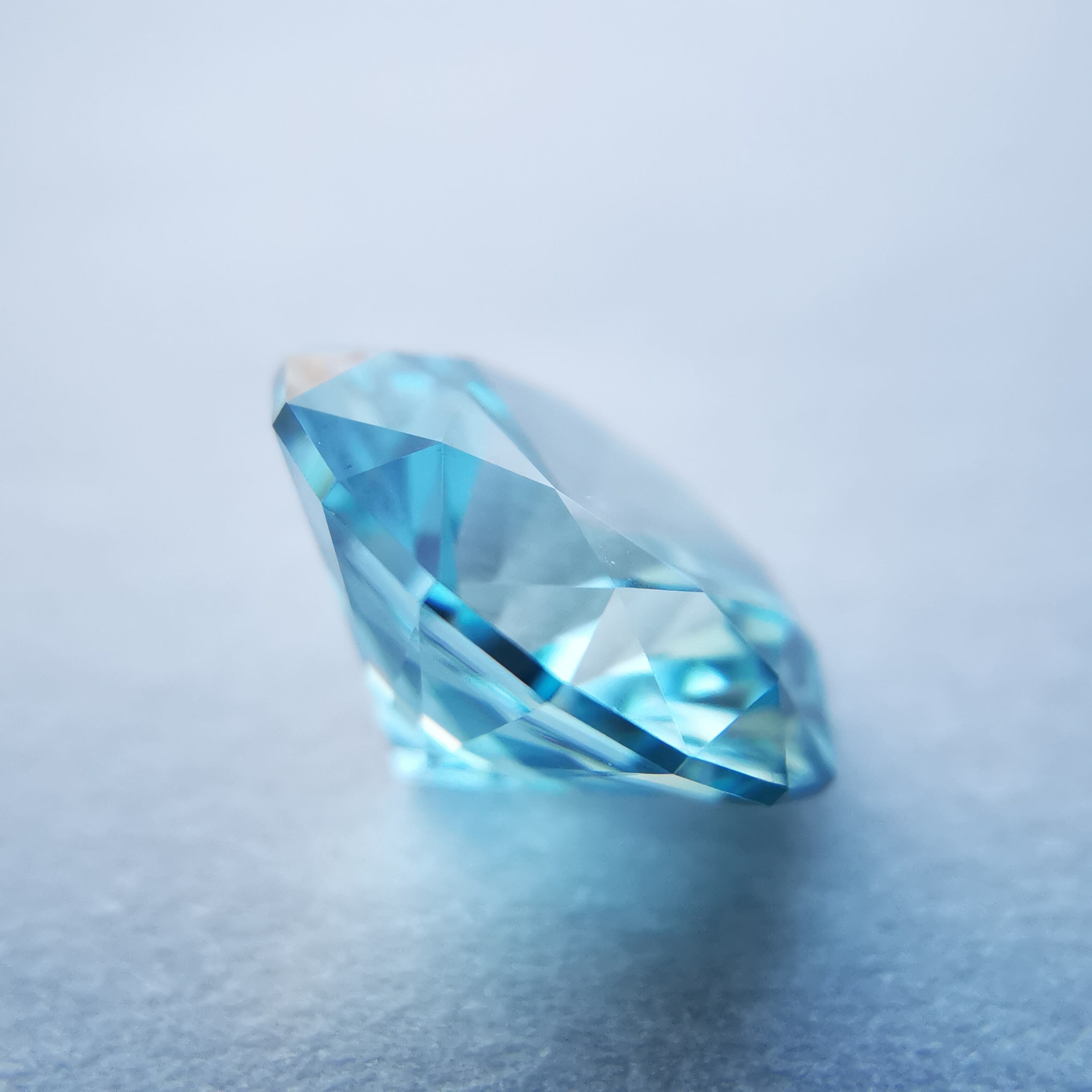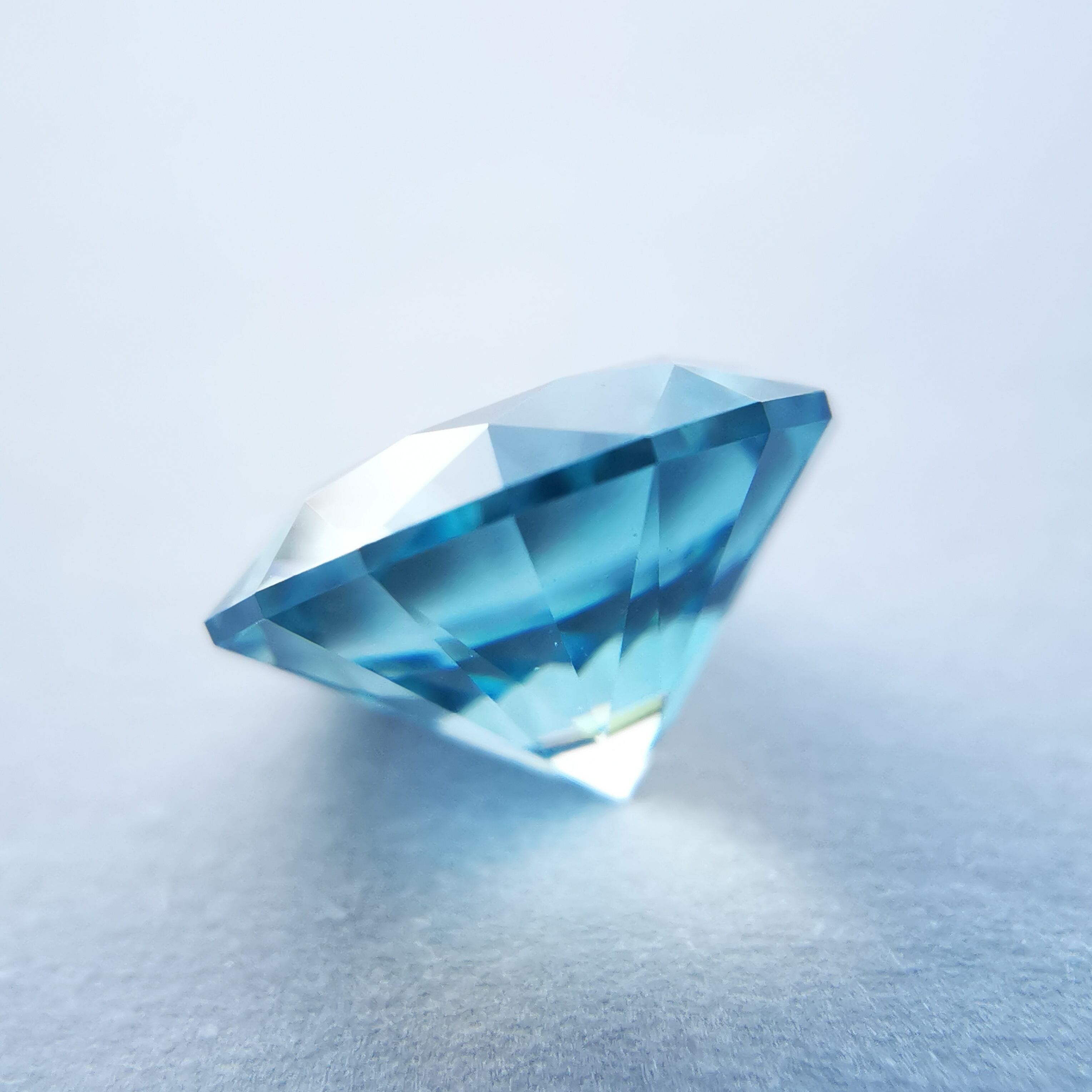 自然光では優しく輝くごく淡いホリゾンブルー、照明の下ではギラギラと輝きます。